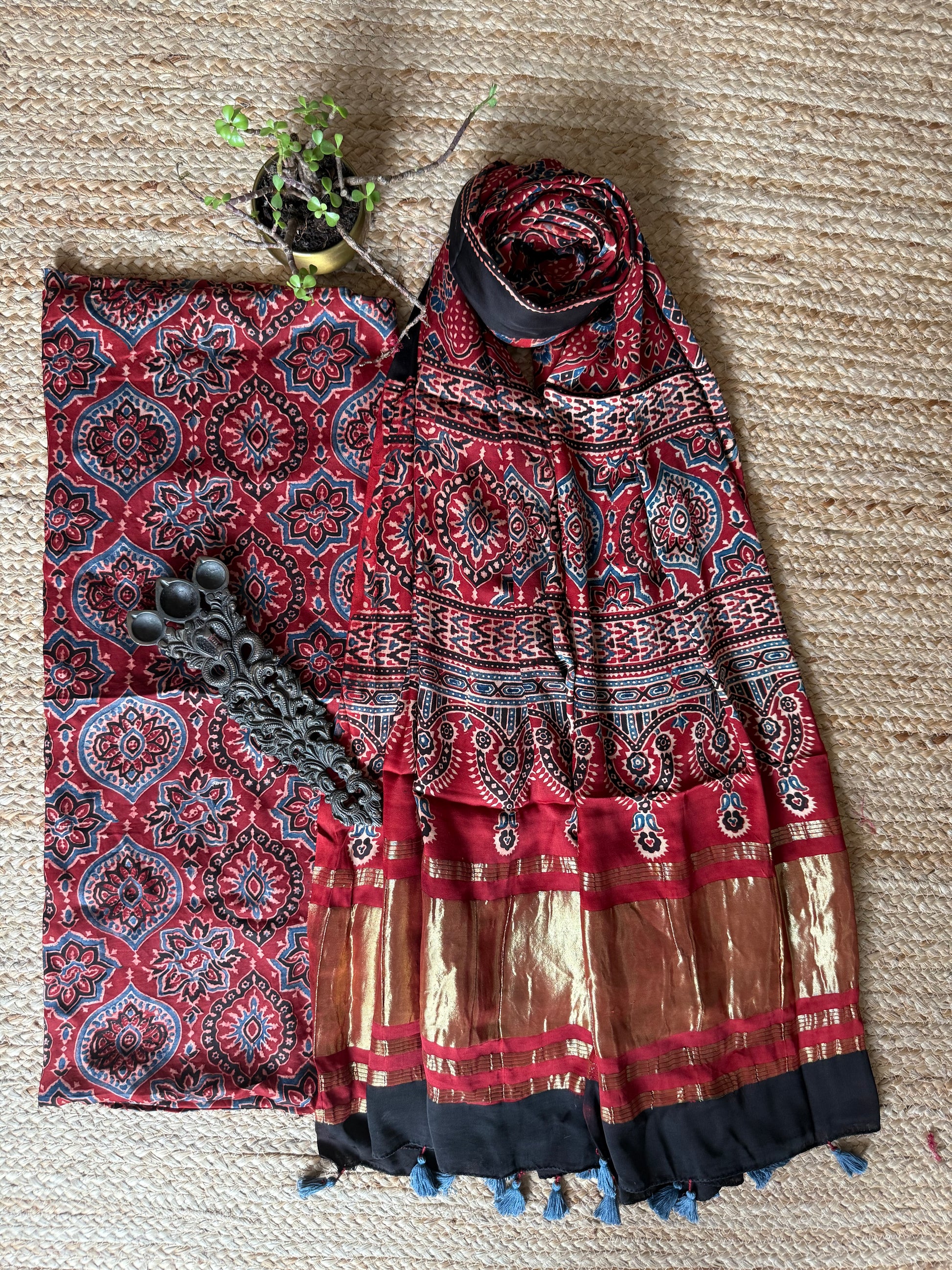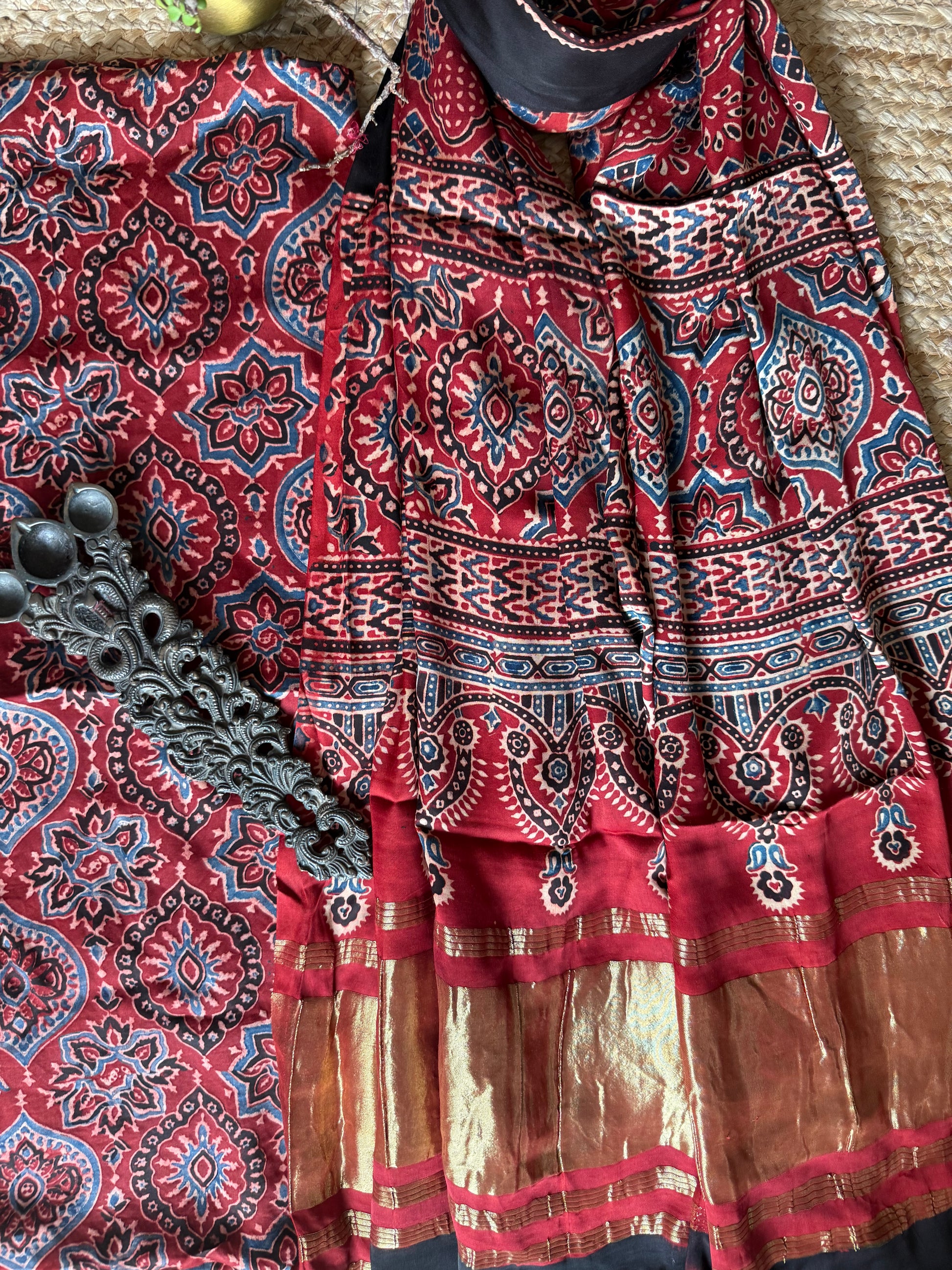 MAROON AJRAKH MODAL SILK HANDBLOCK KURTA SET