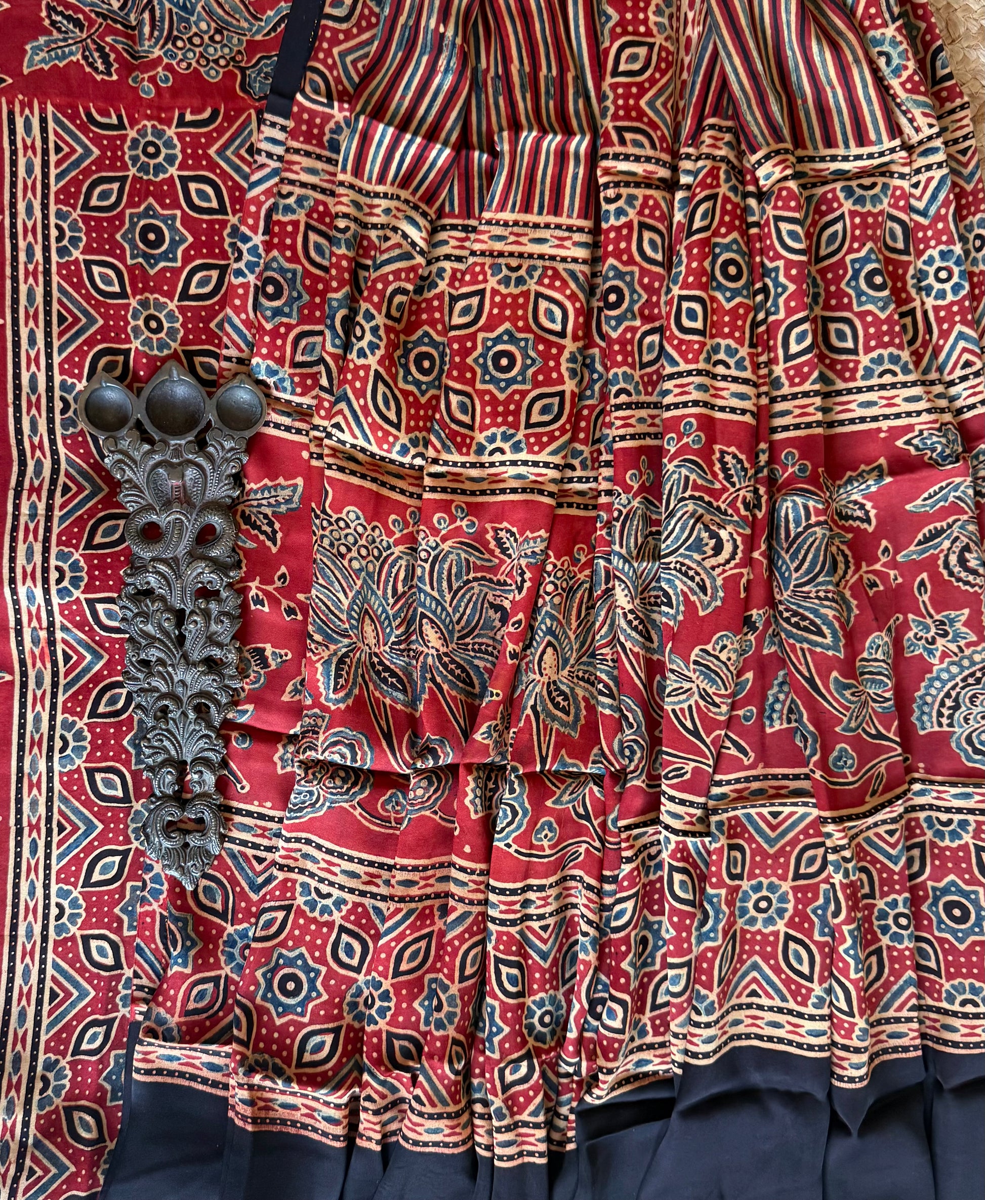 RED  AJRAKH MODAL SILK HANDBLOCK KURTA SET