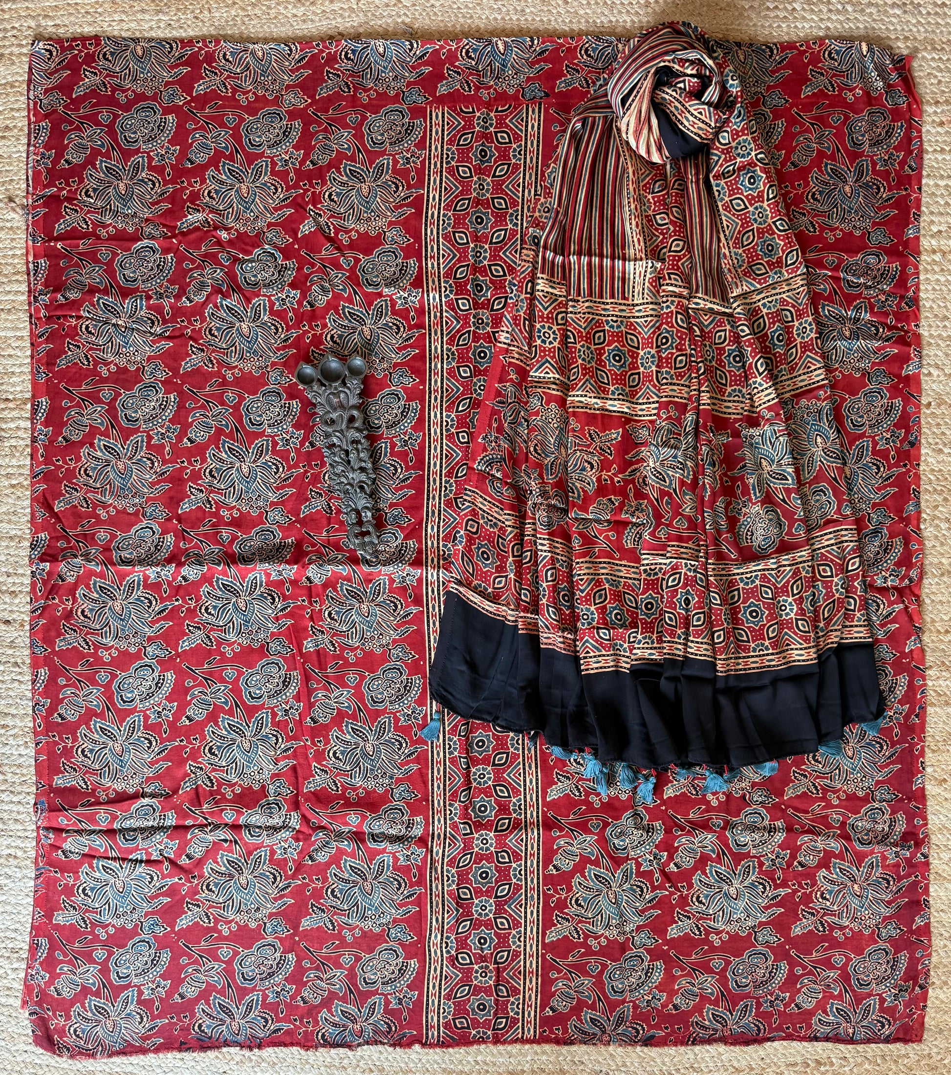 RED AJRAKH MODAL SILK HANDBLOCK KURTA SET