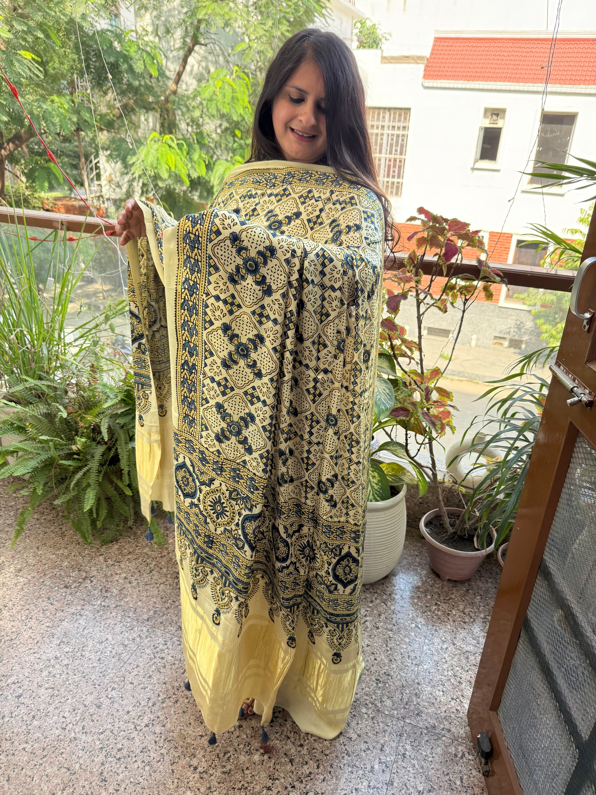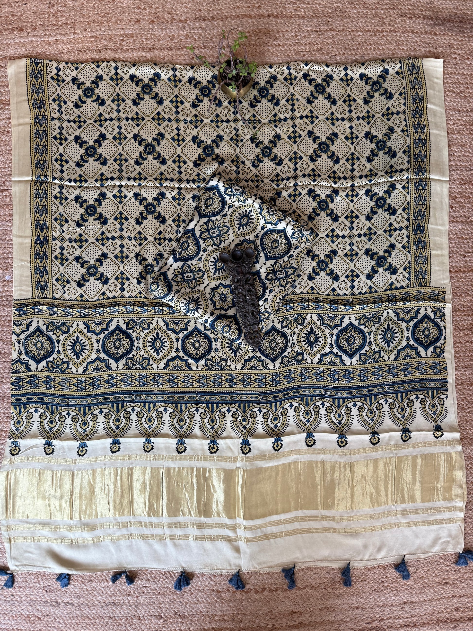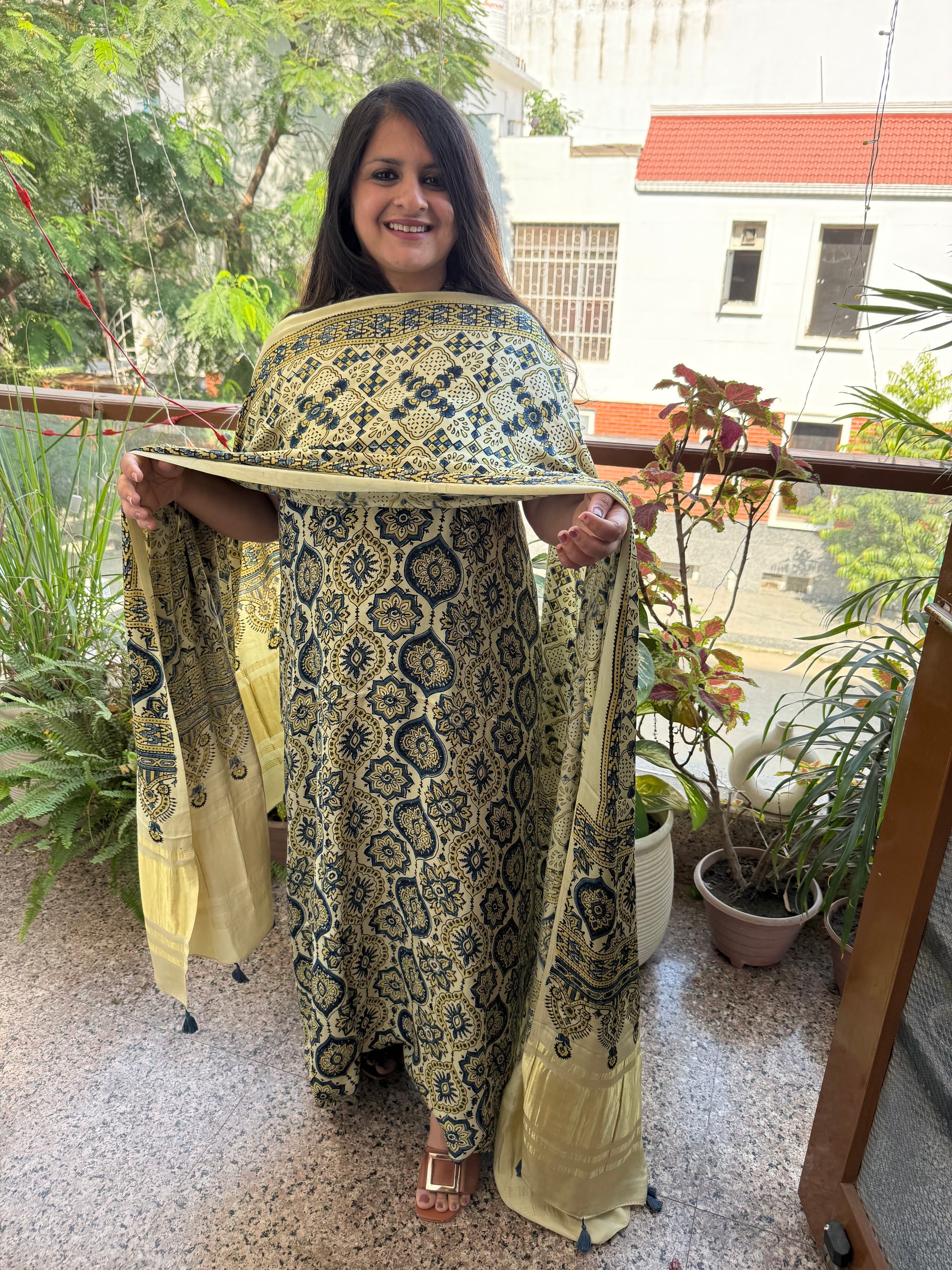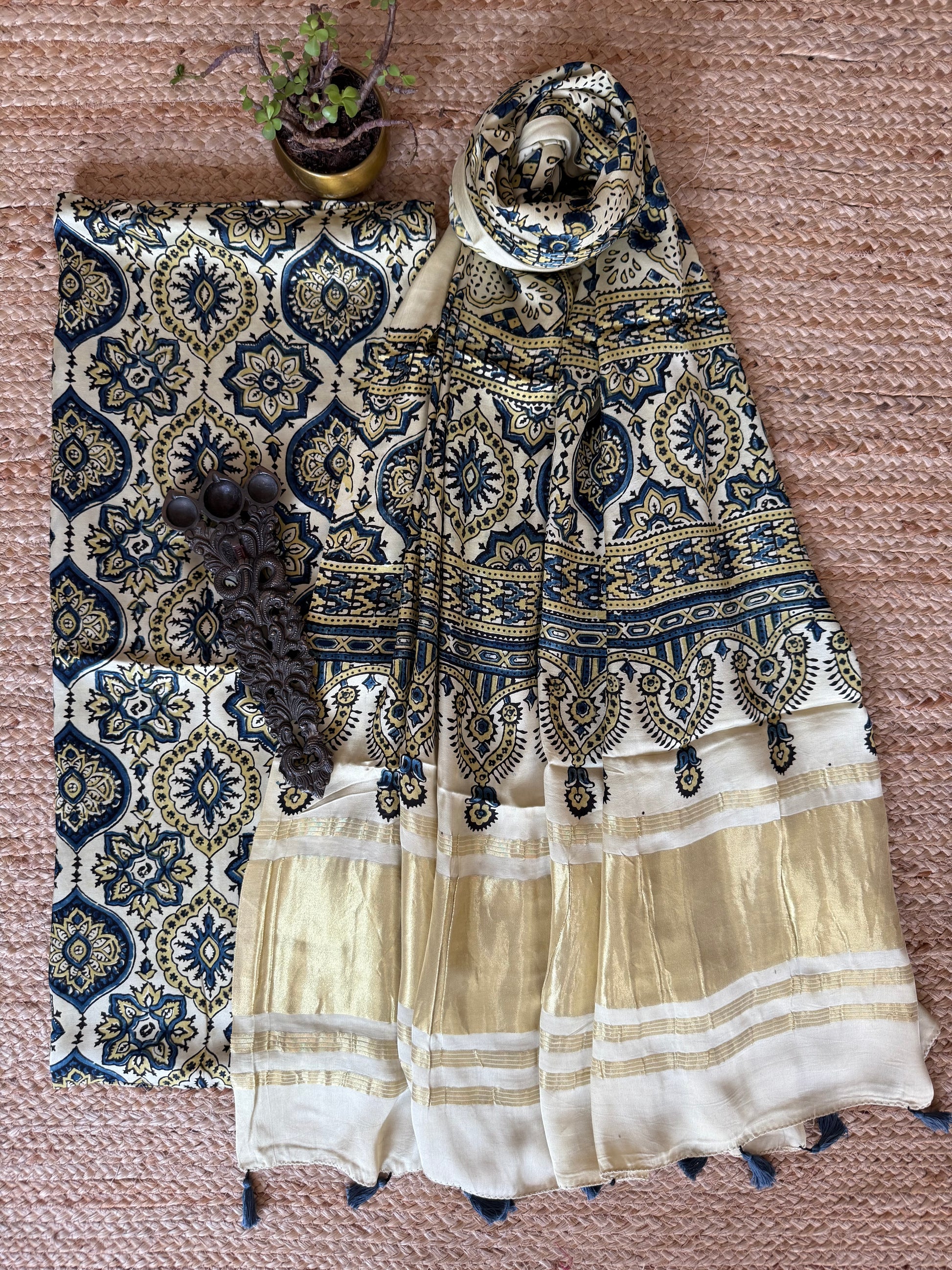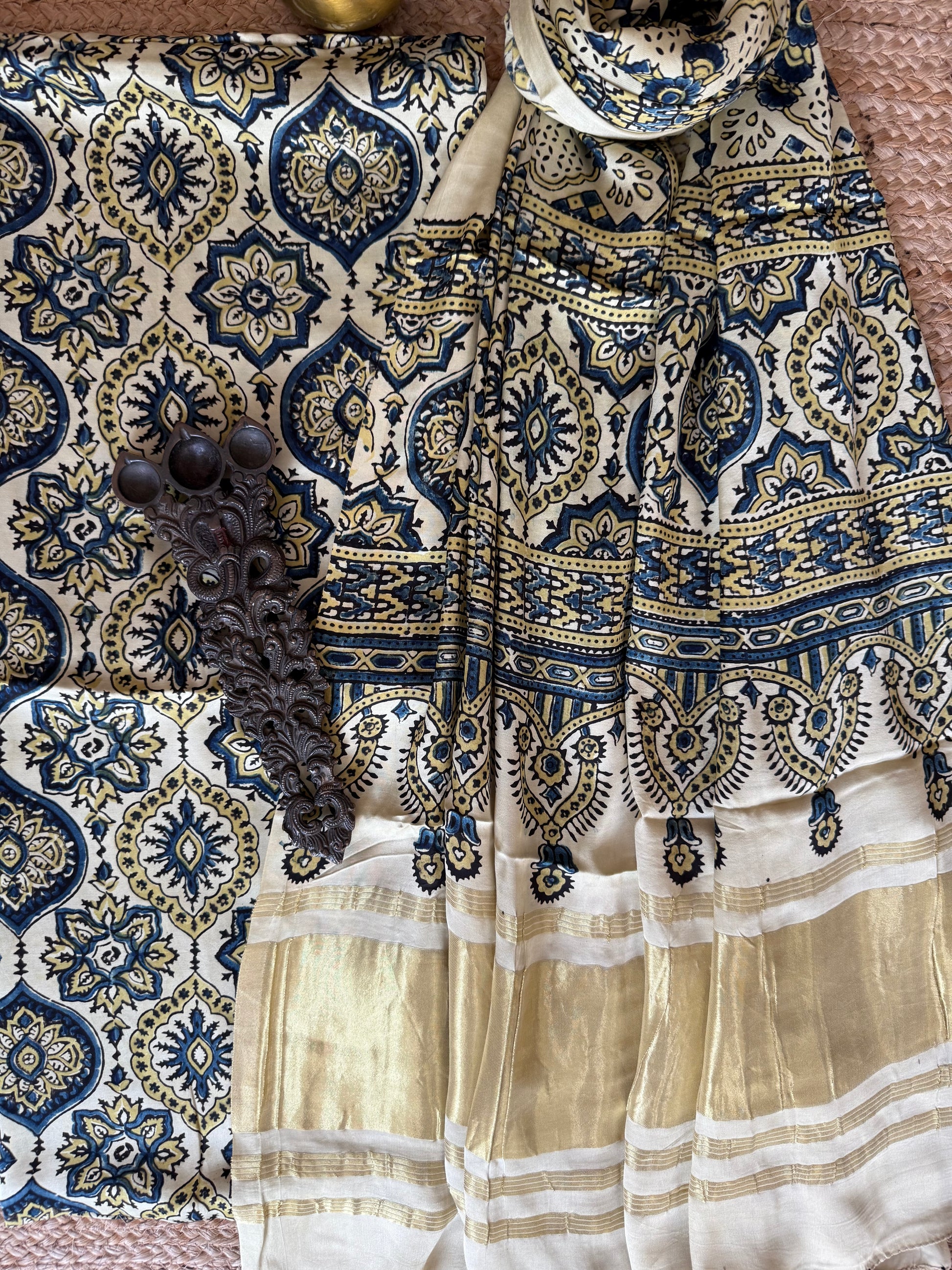 BEIGE AJRAKH MODAL SILK HANDBLOCK KURTA SET