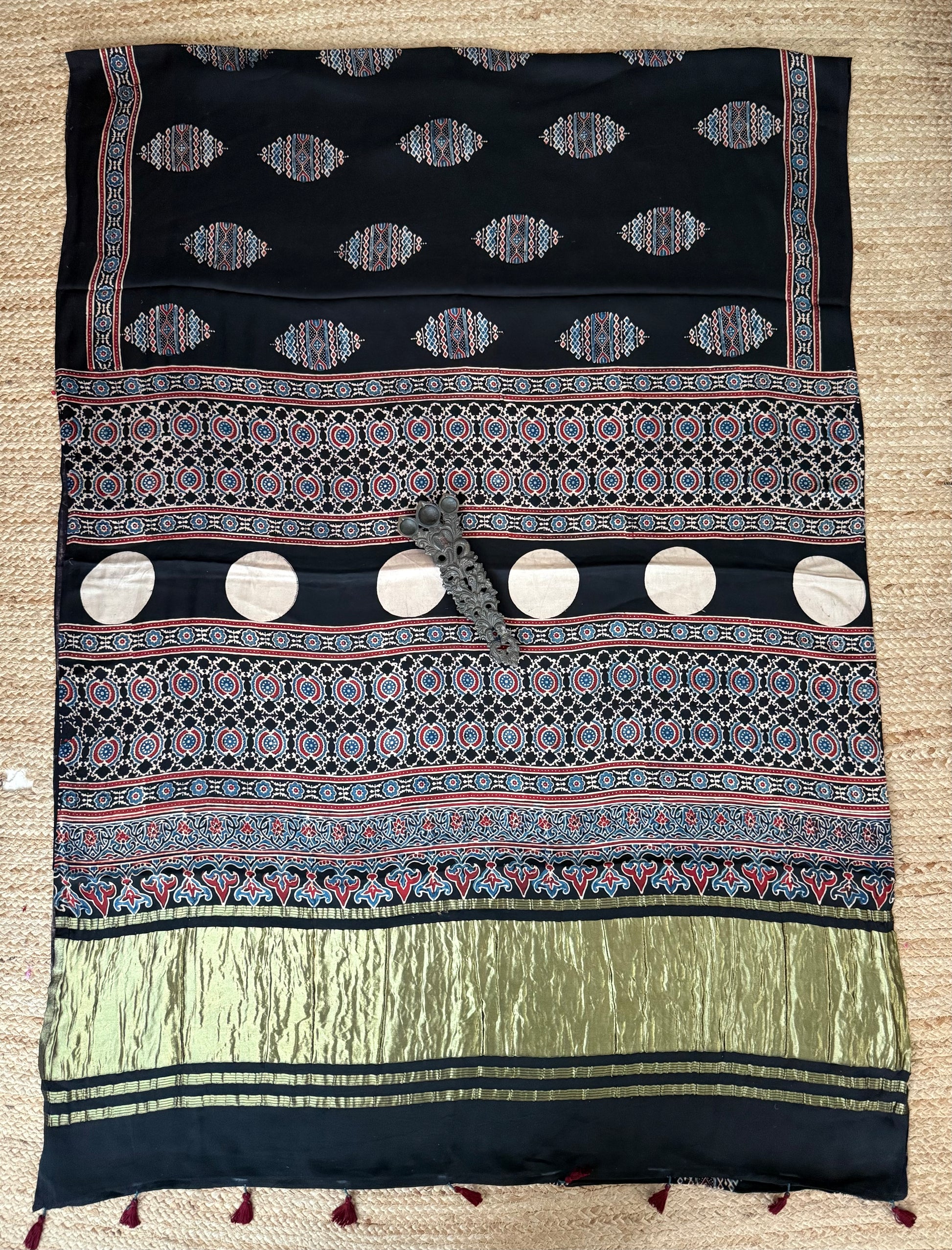 BLACK AJRAKH MODAL SILK SARI WITH ZARI PALLA WITH BLOUSE PIECE SIZE: 6.3MTRS