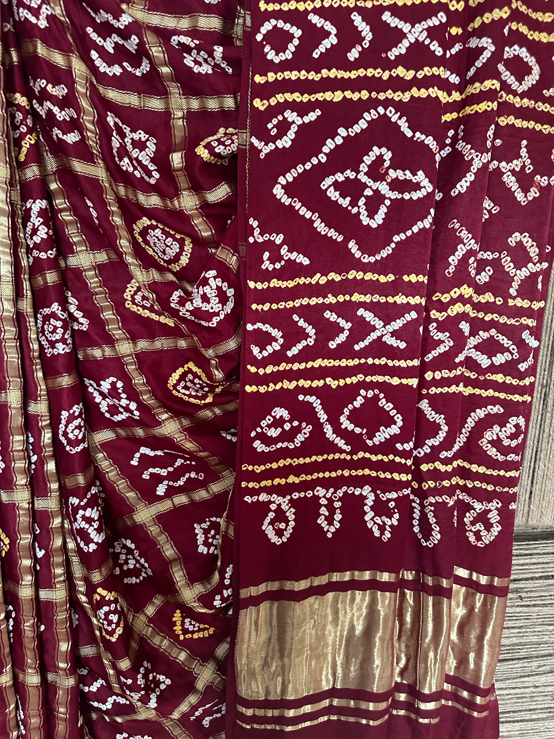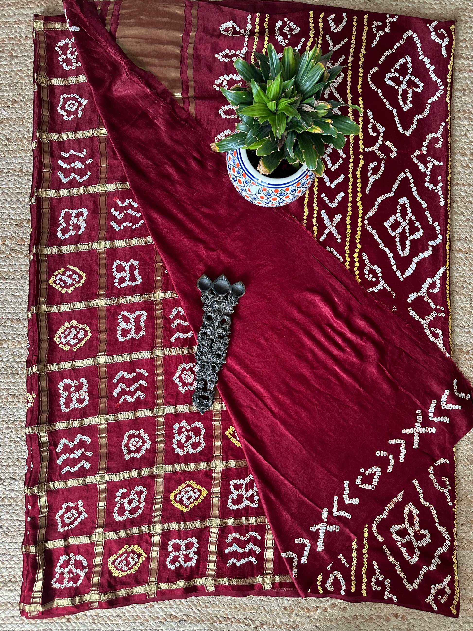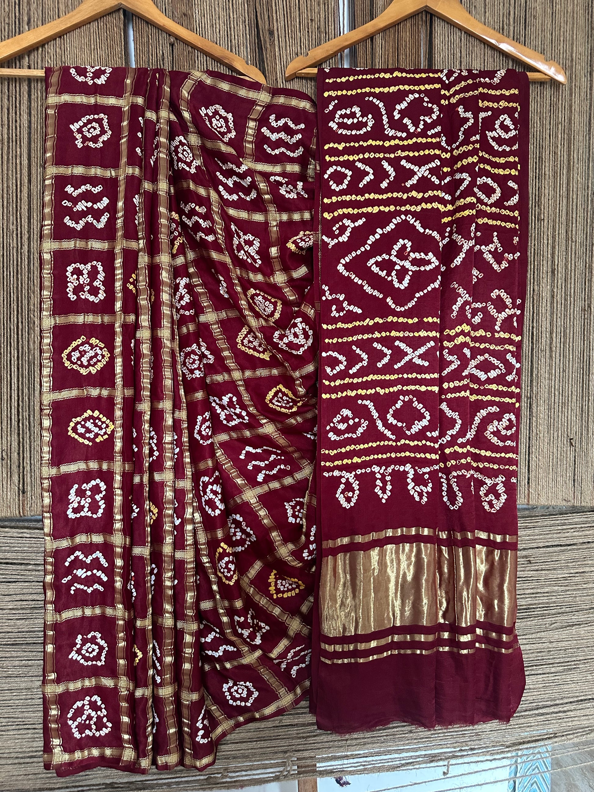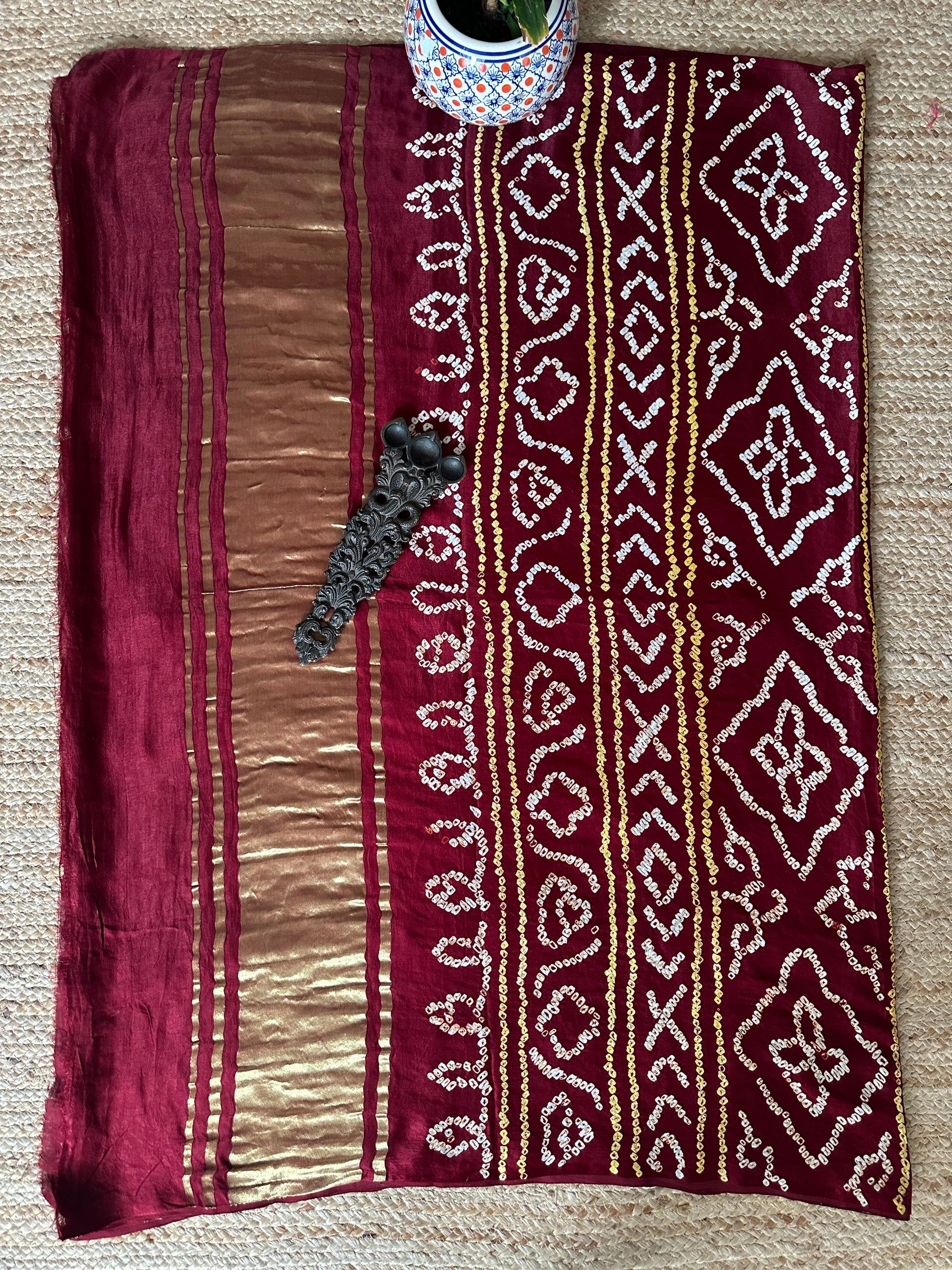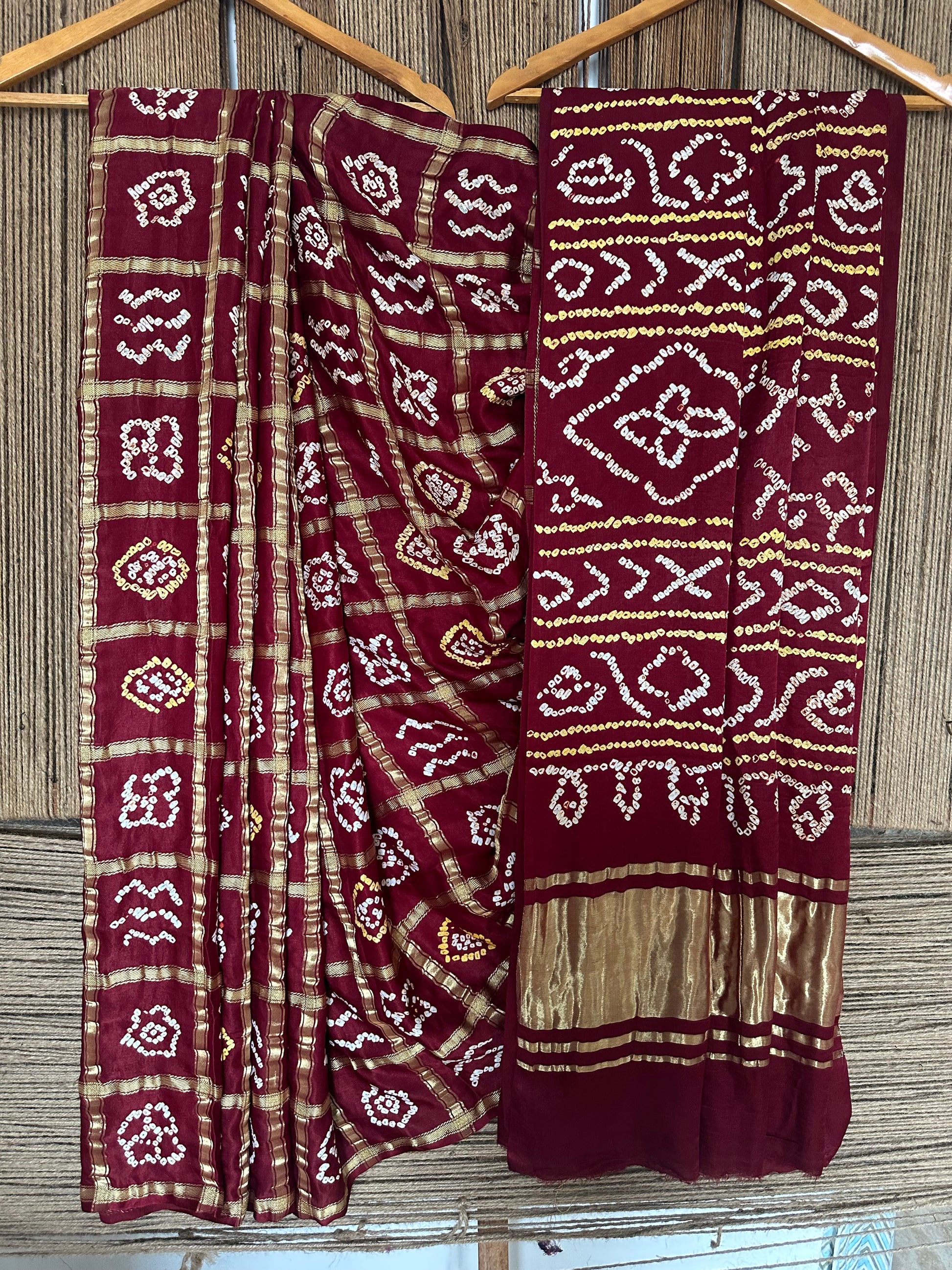BRUNT MAROON GAJJI SILK RAI BANDHANI GHARCHOLA SARI BS-36