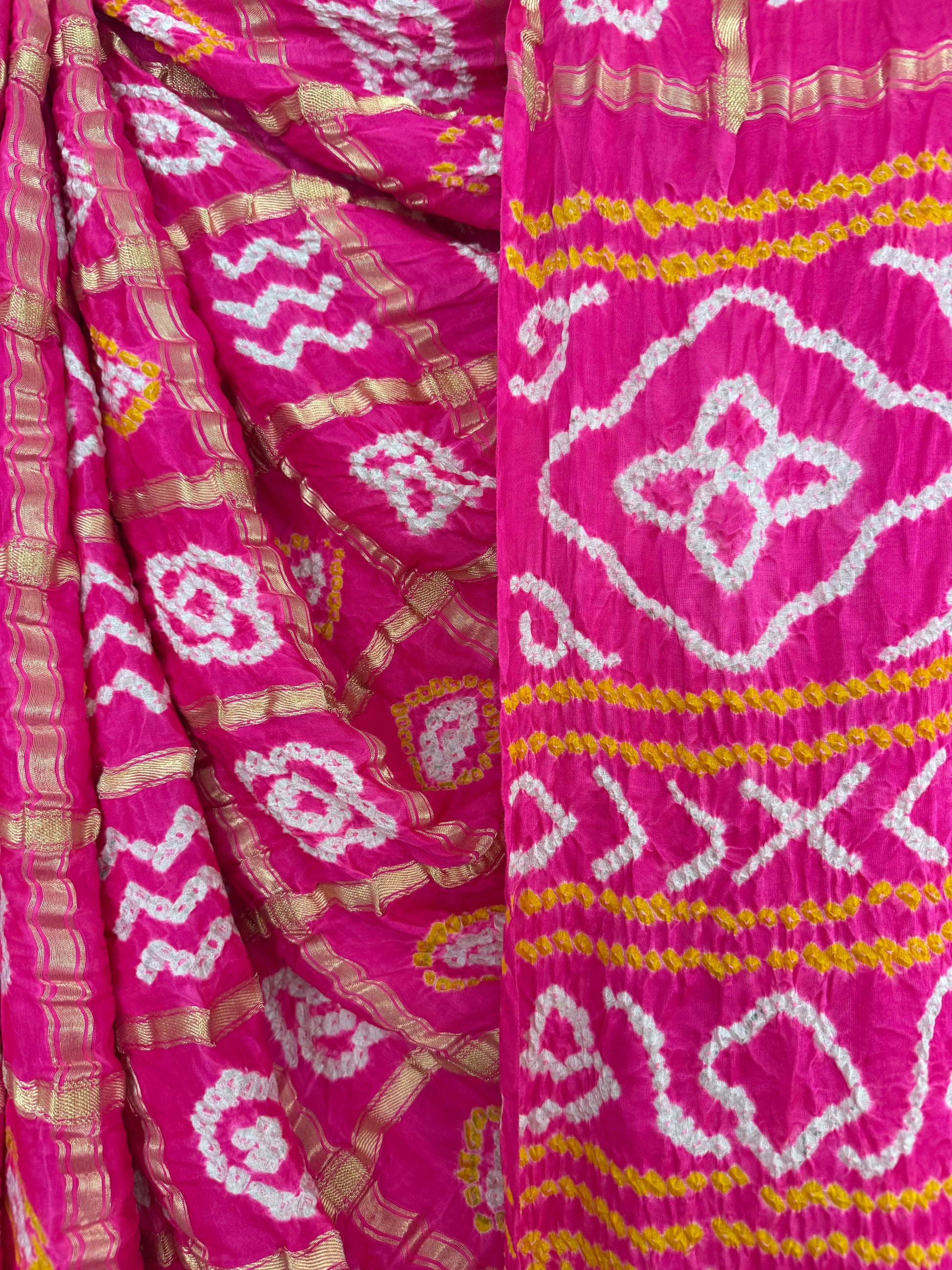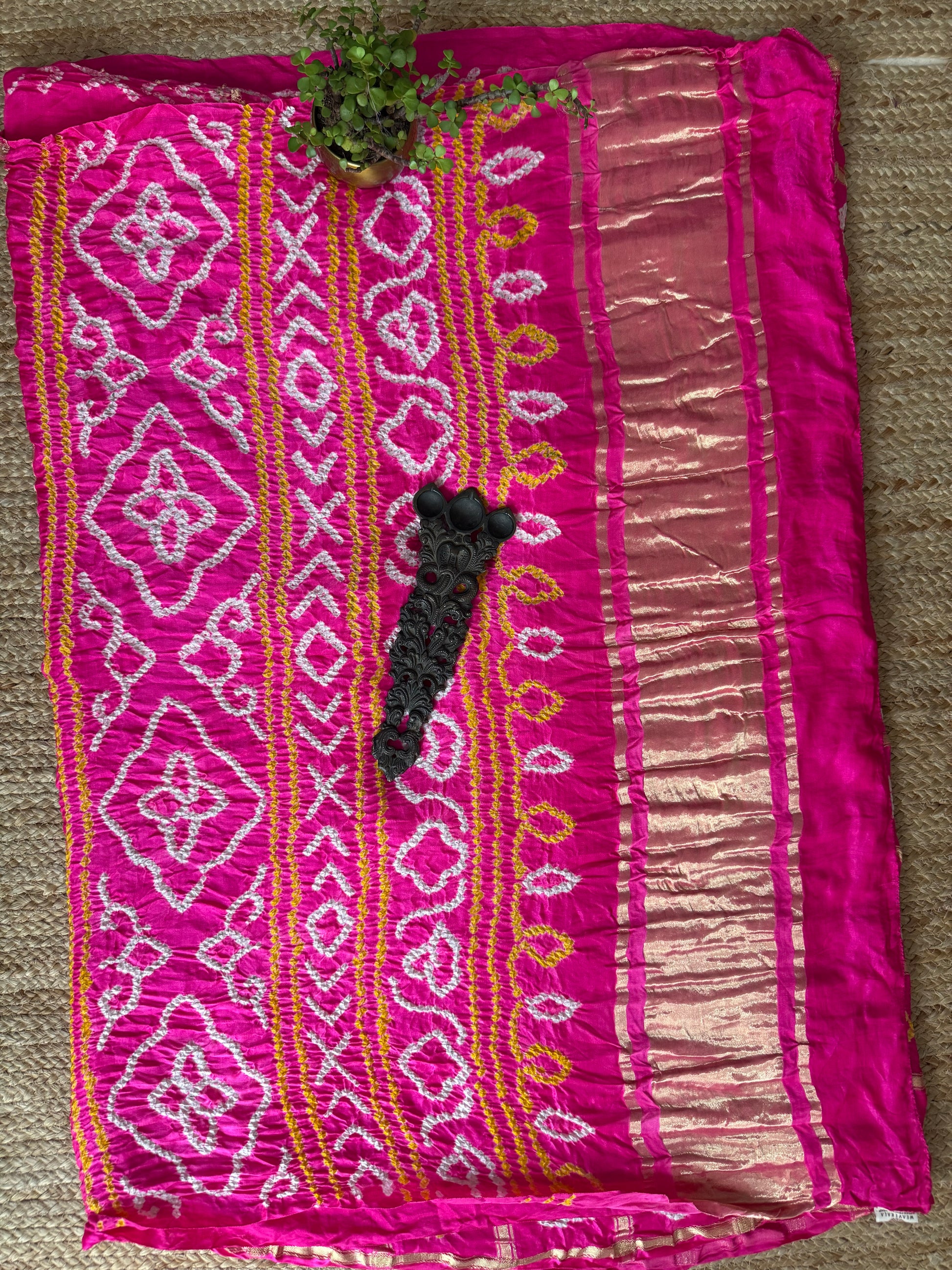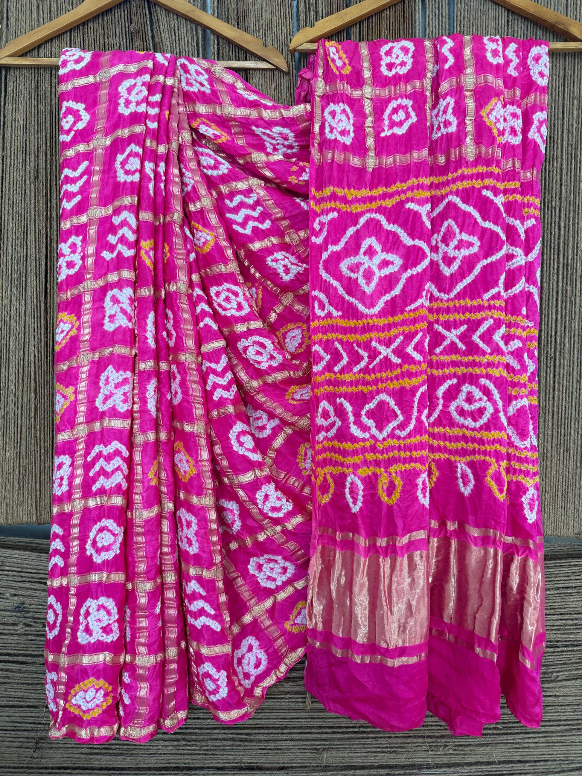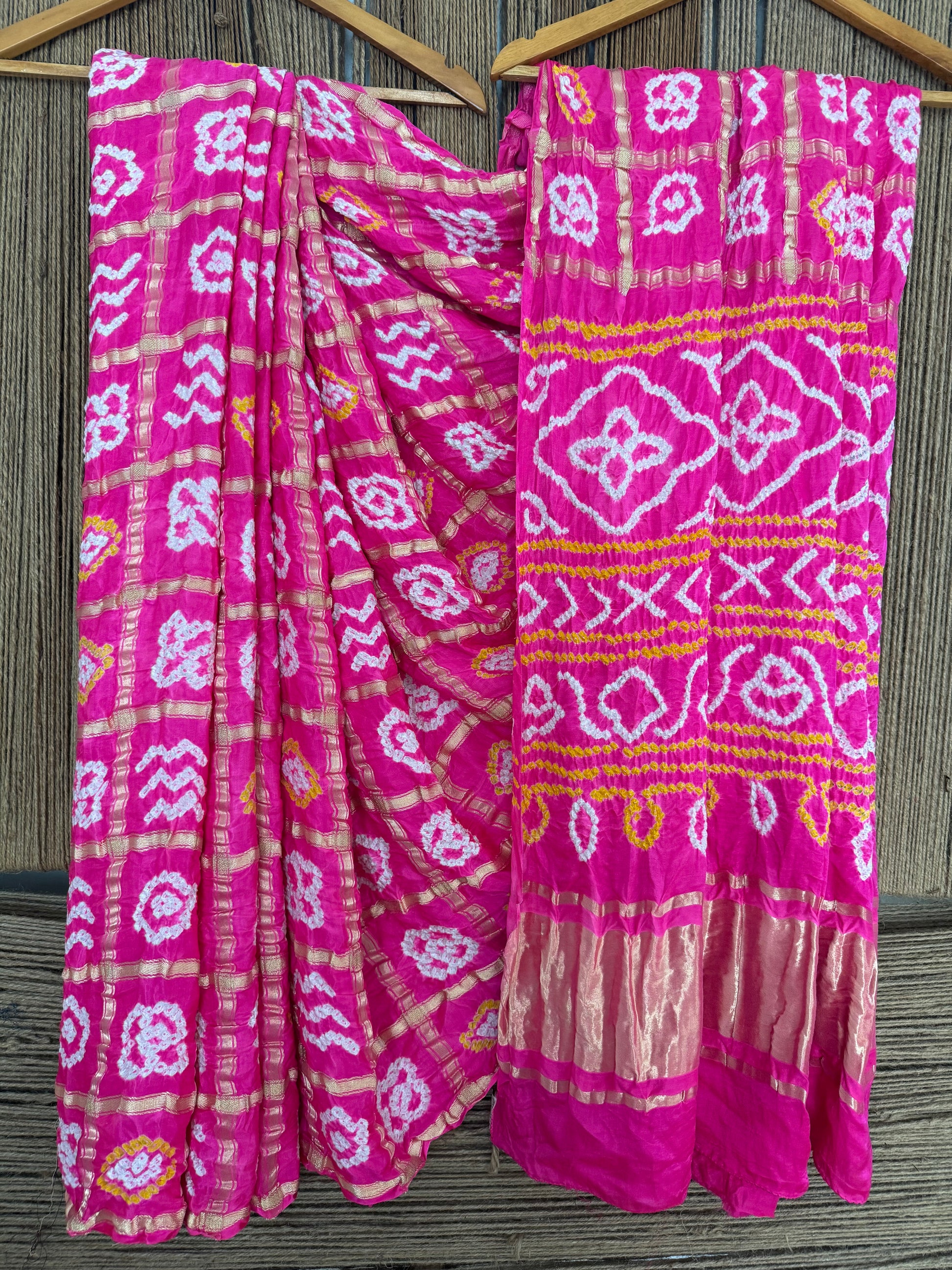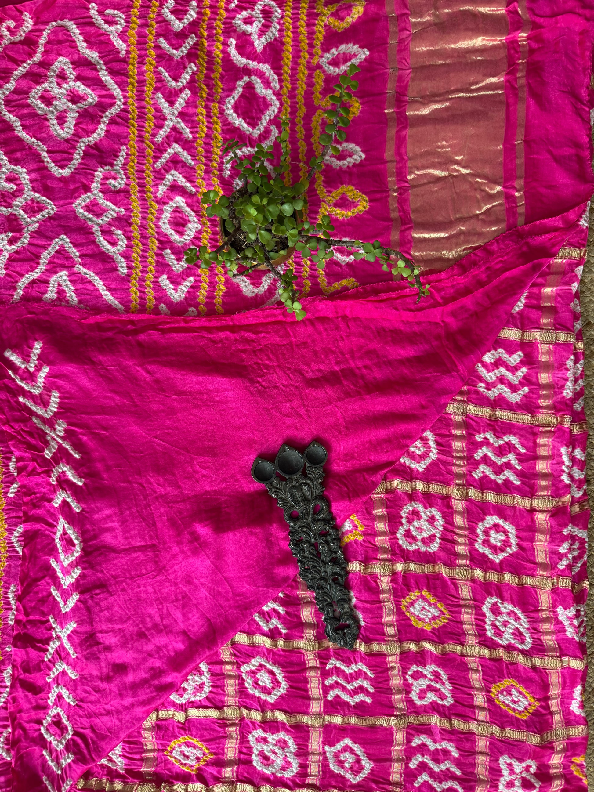 ULTRA PINK GAJJI SILK RAI BANDHANI  GHARCHOLA SARI  BS- 24