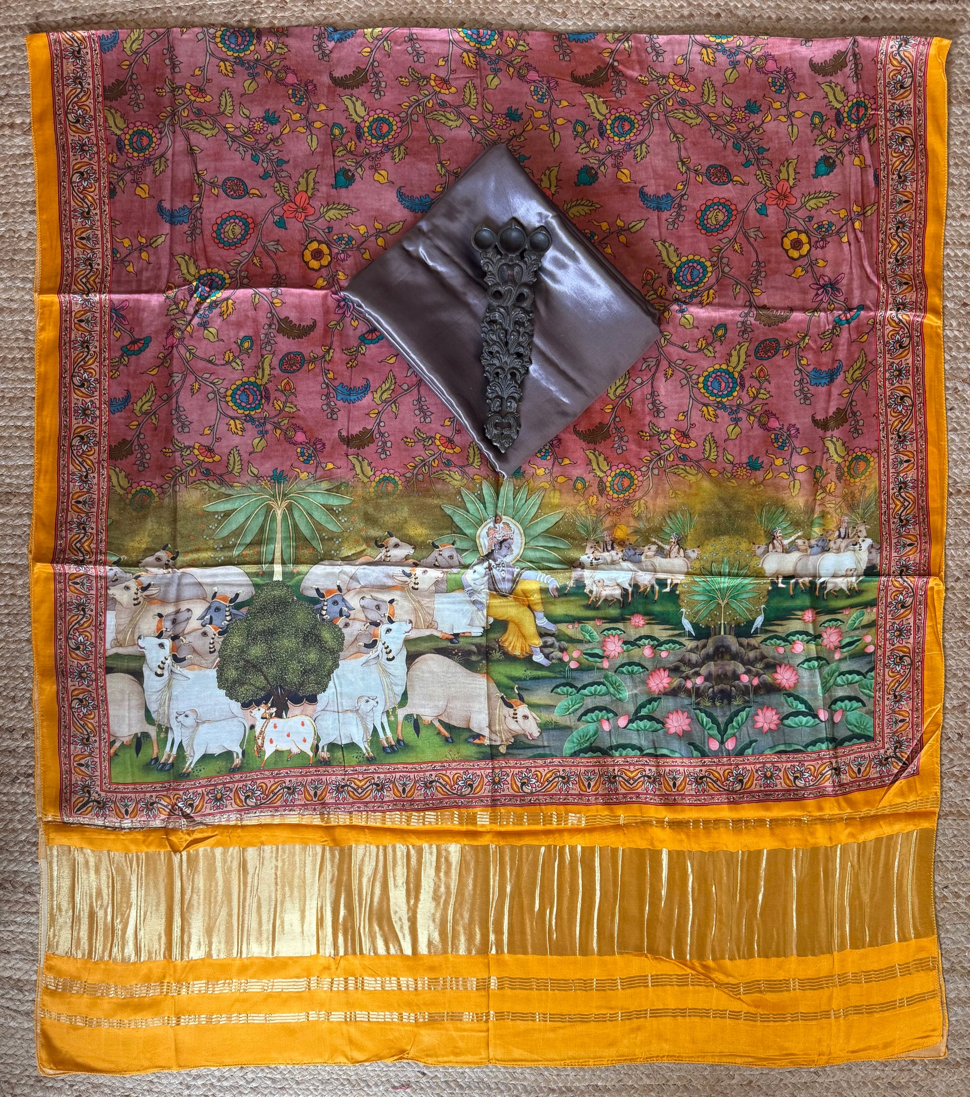GREY SOLID MASHRU SILK KURTA WITH PATOLA PICHWAI PRINTED MODAL SILK DUPATTAS PS-10137