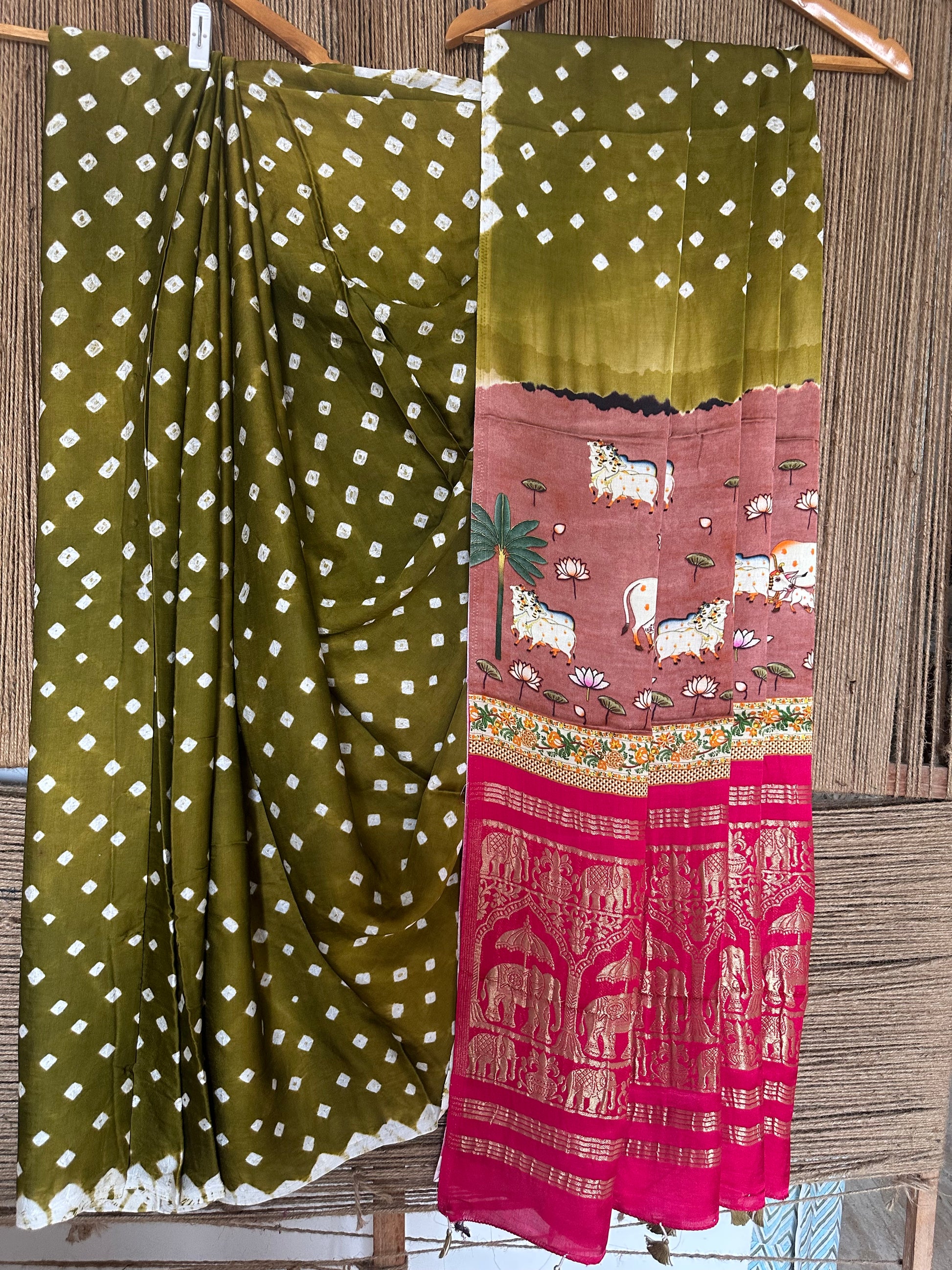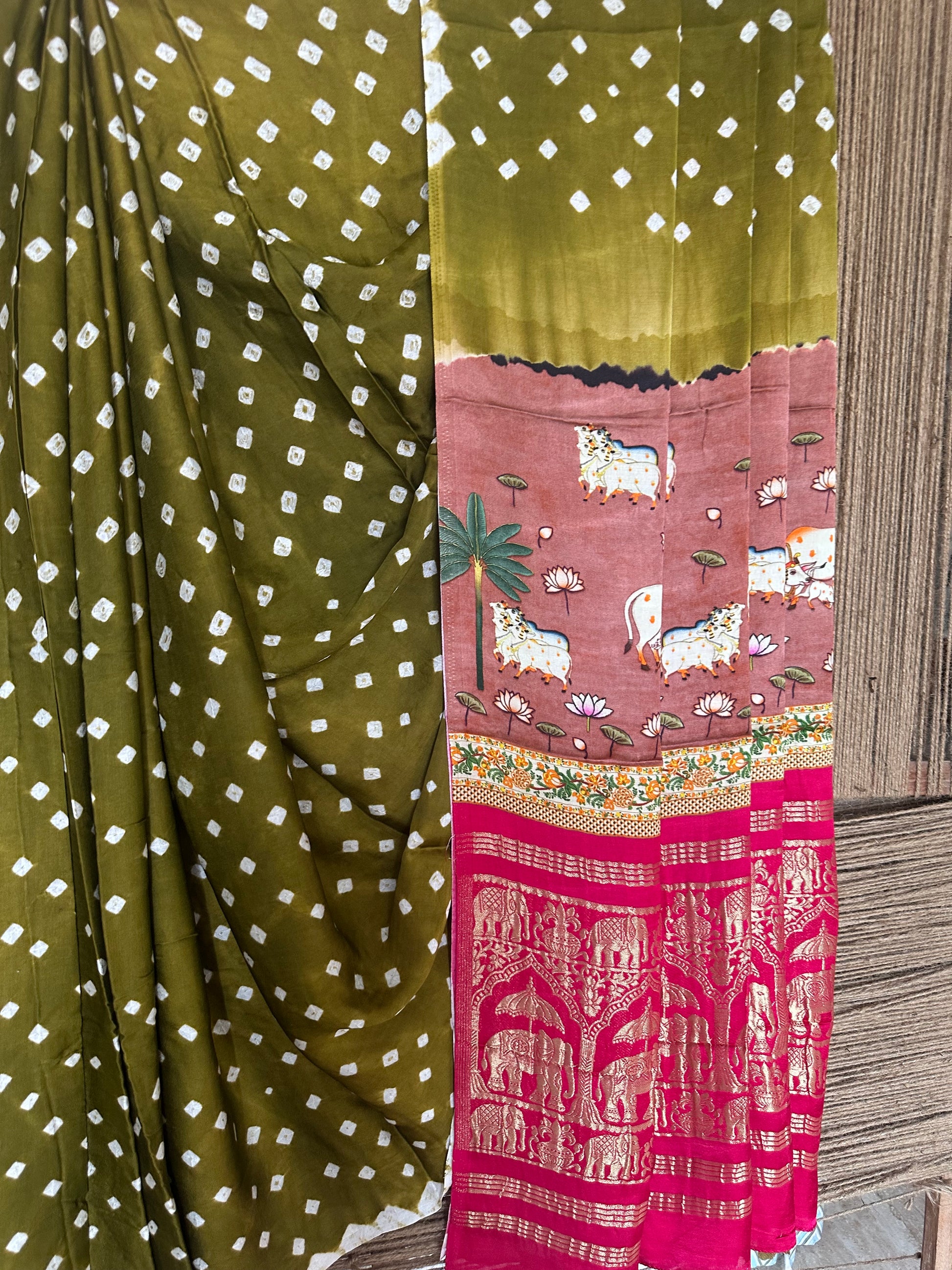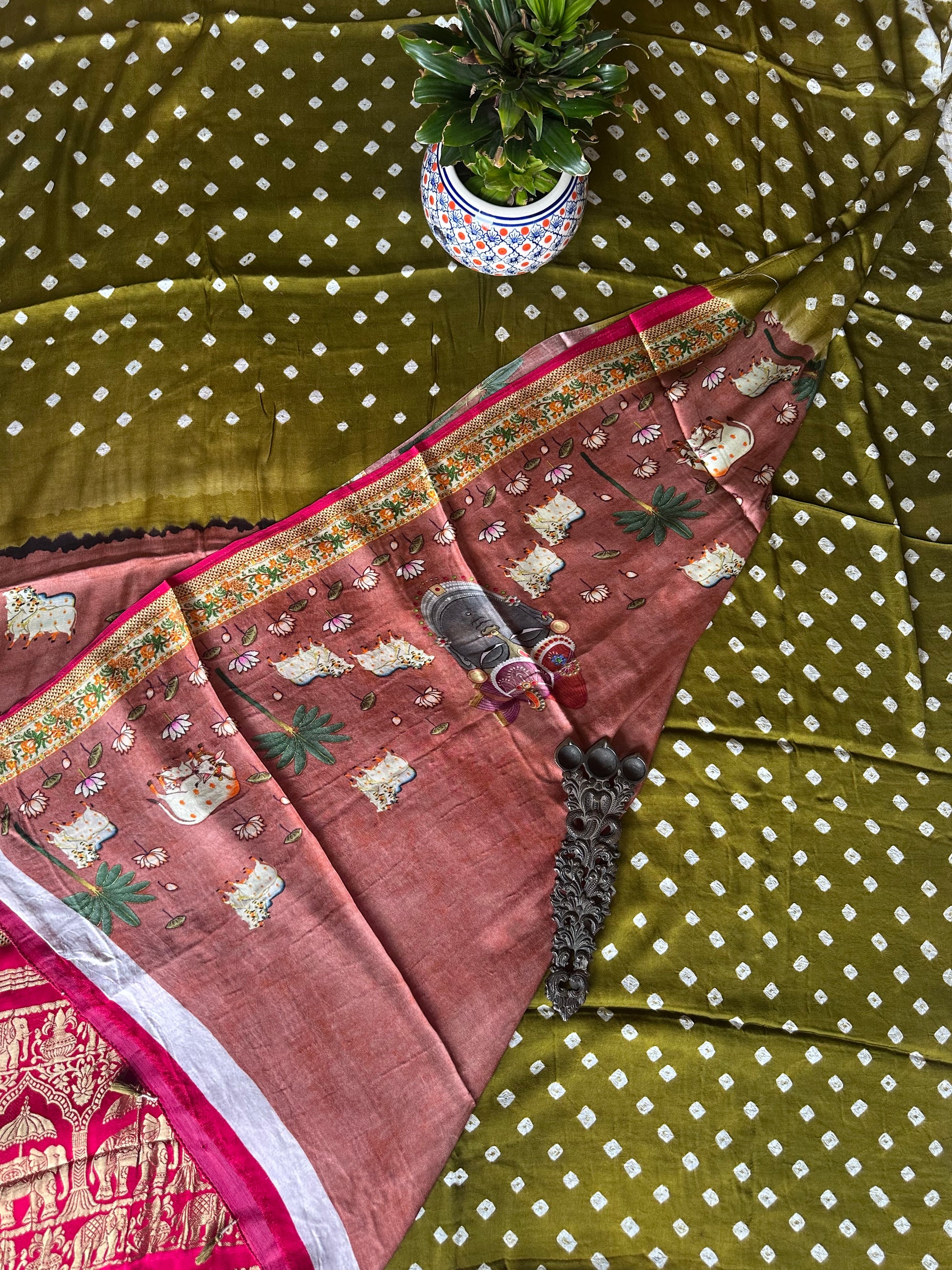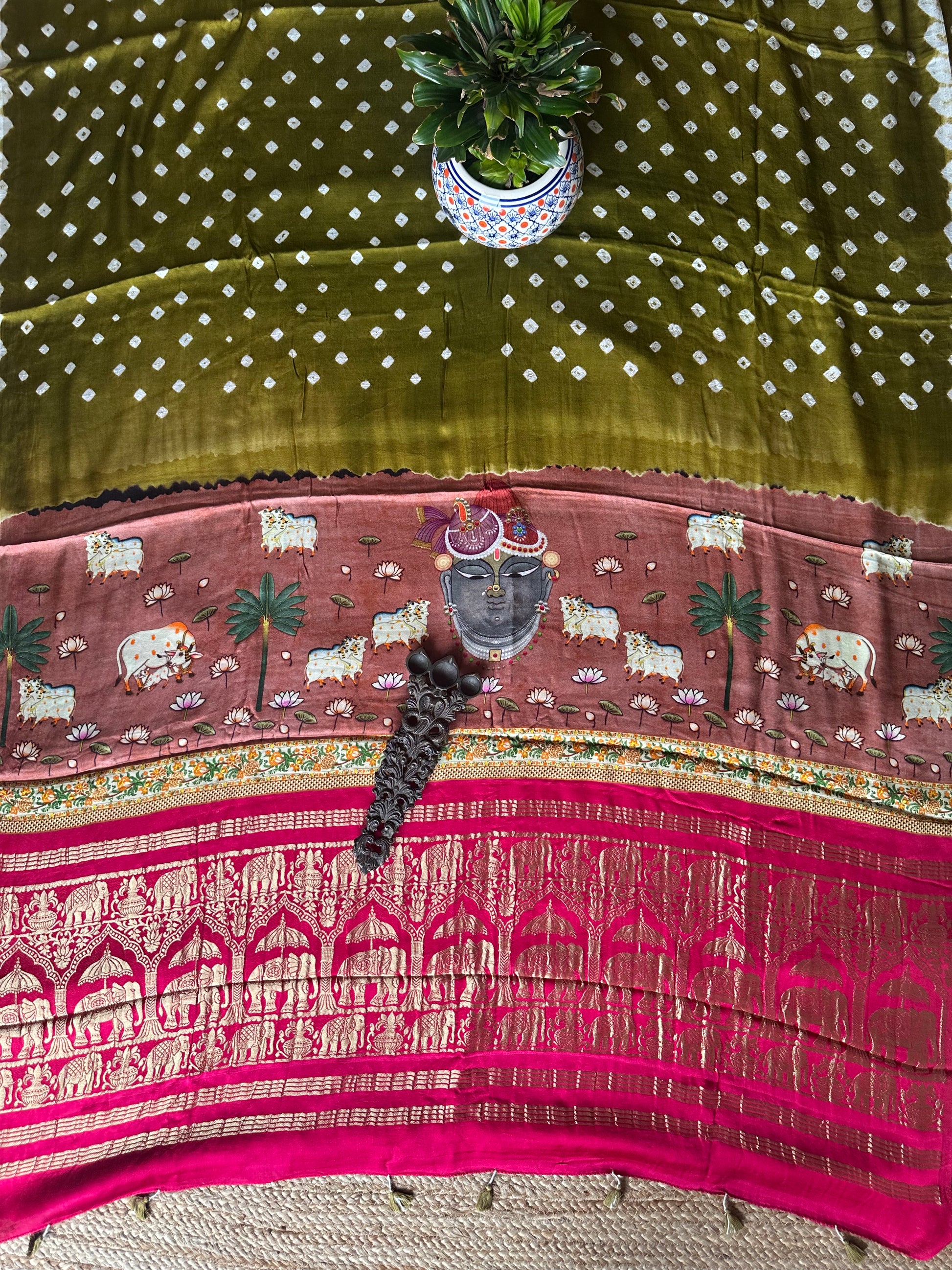 MEHENDI GREEN MODAL SILK BANDHANI SARI WITH PICHWAI PRINT BPS 31