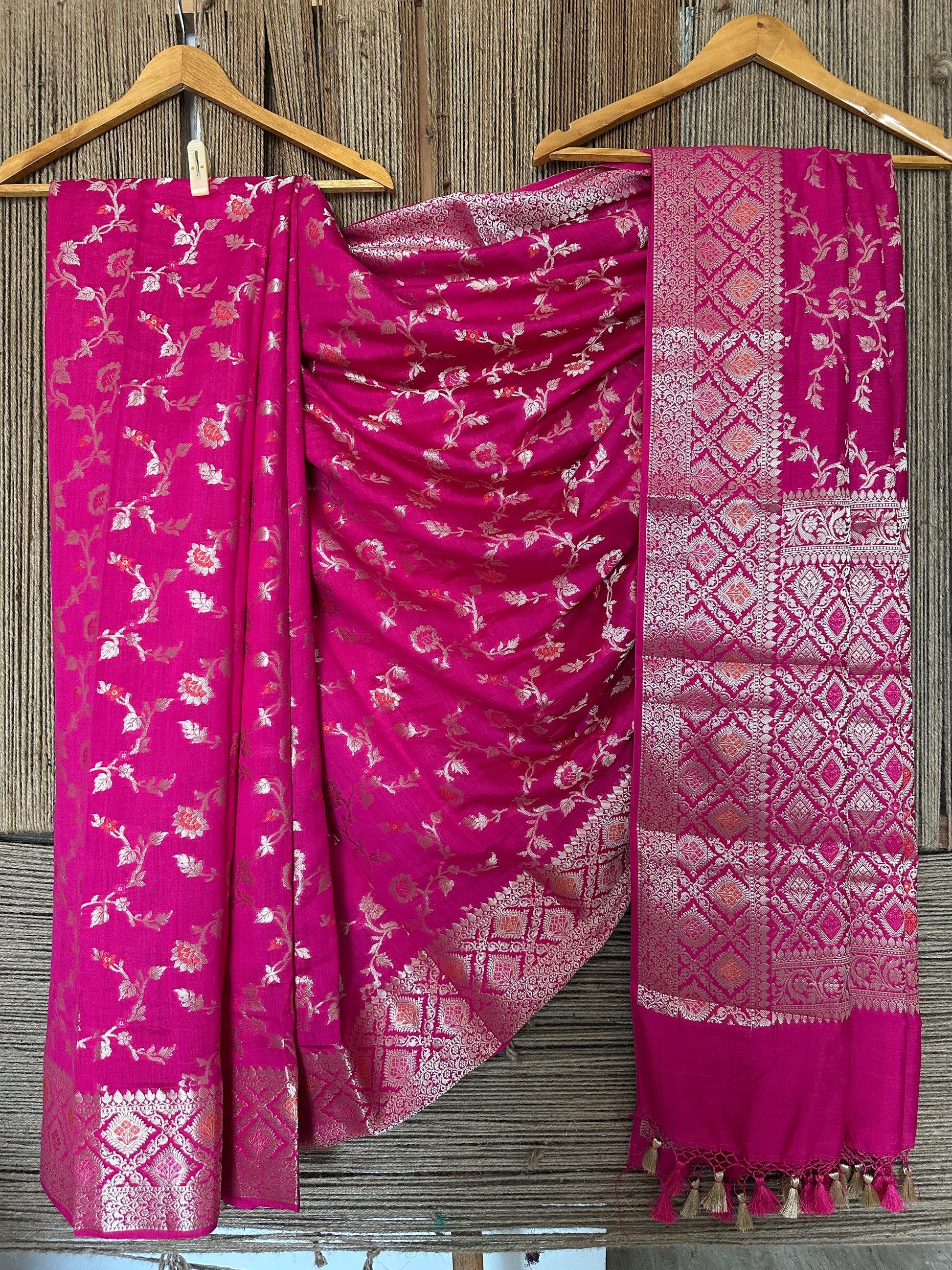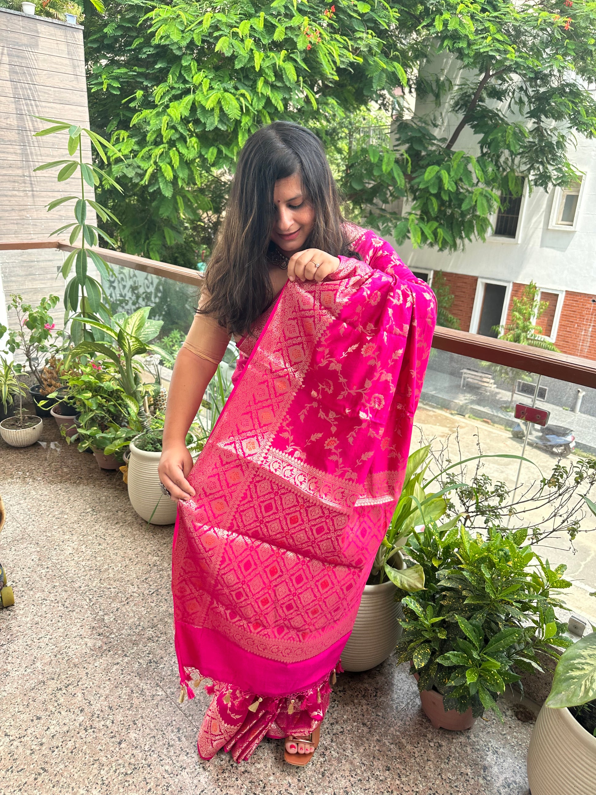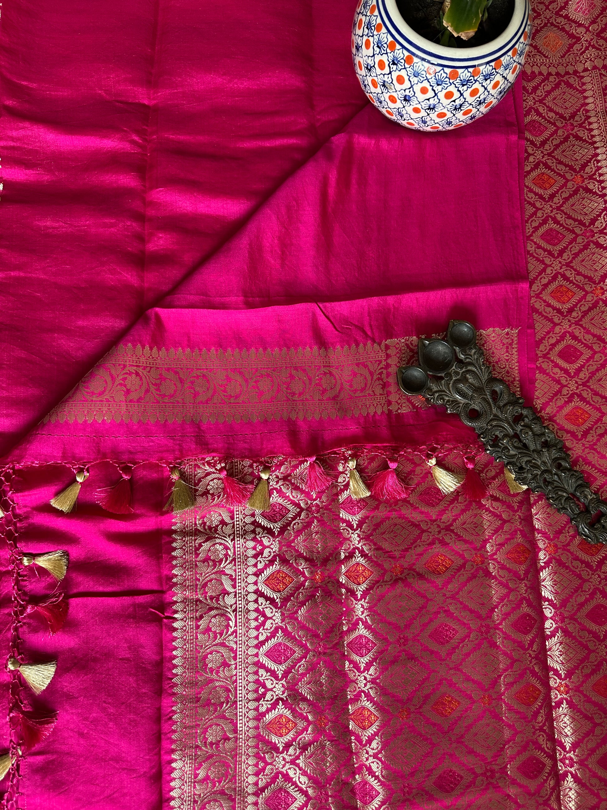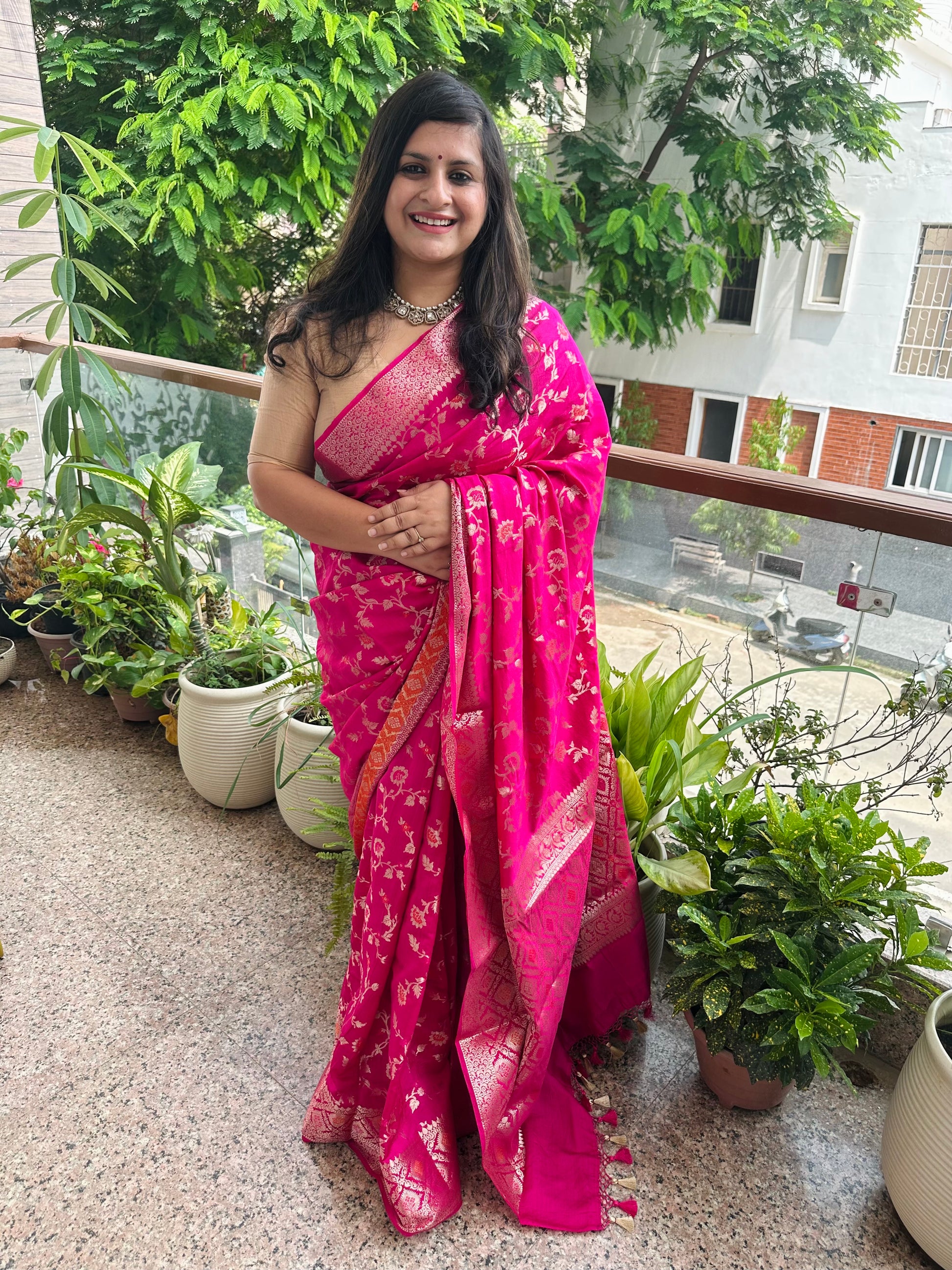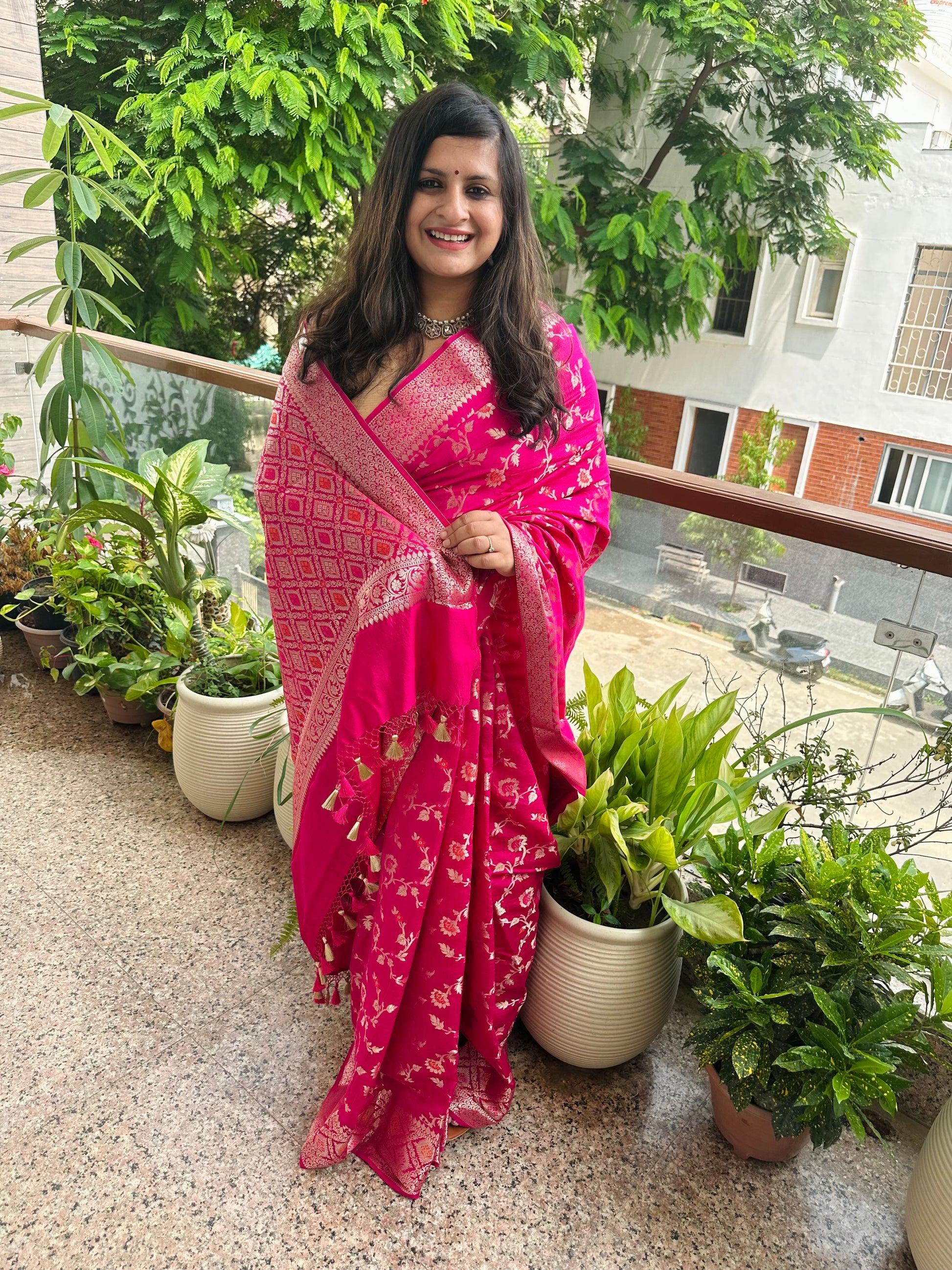 RANI PINK BANARASI CHINIYA SILK CERTIFIED ZARI WOVEN SARI
