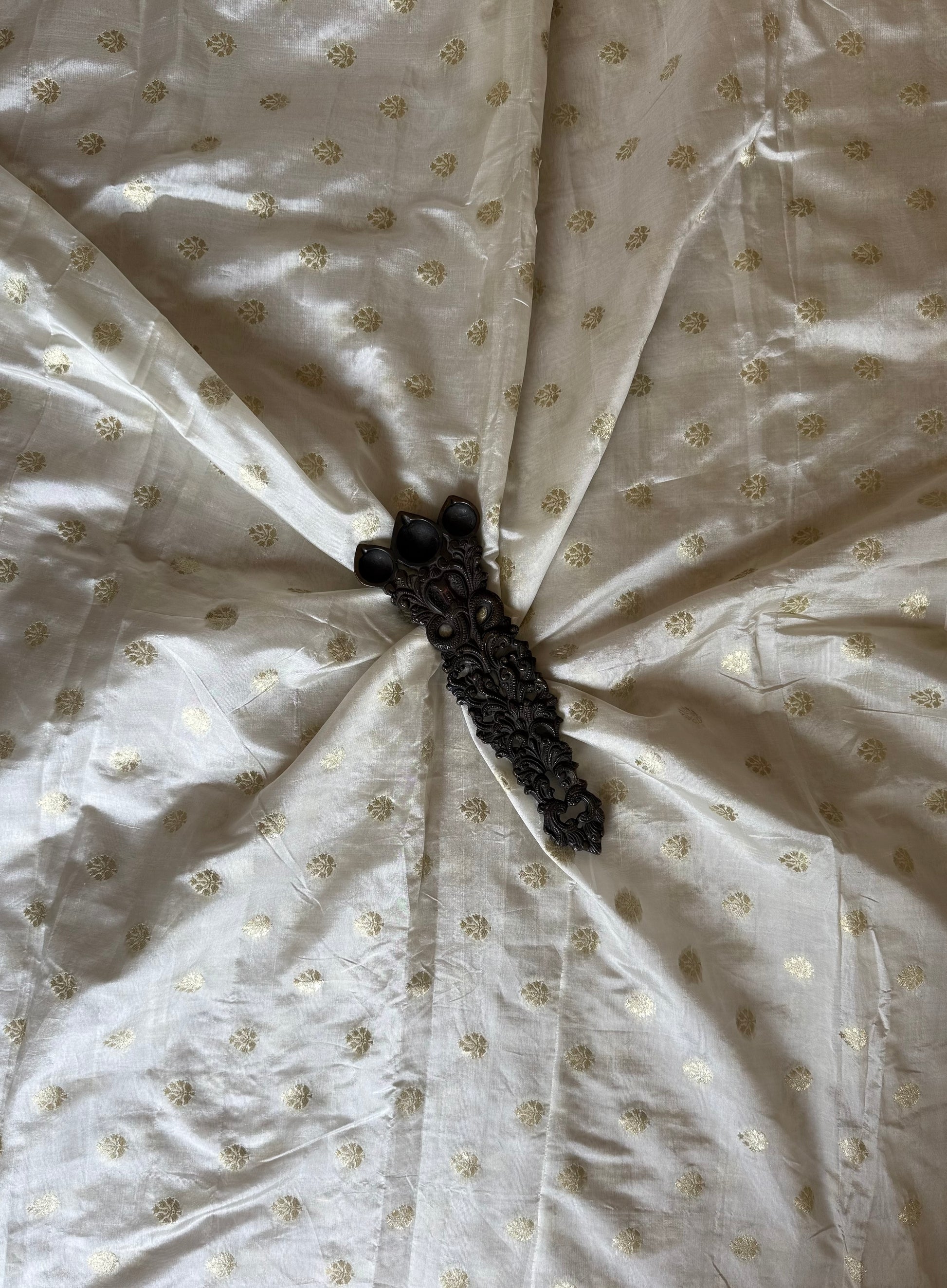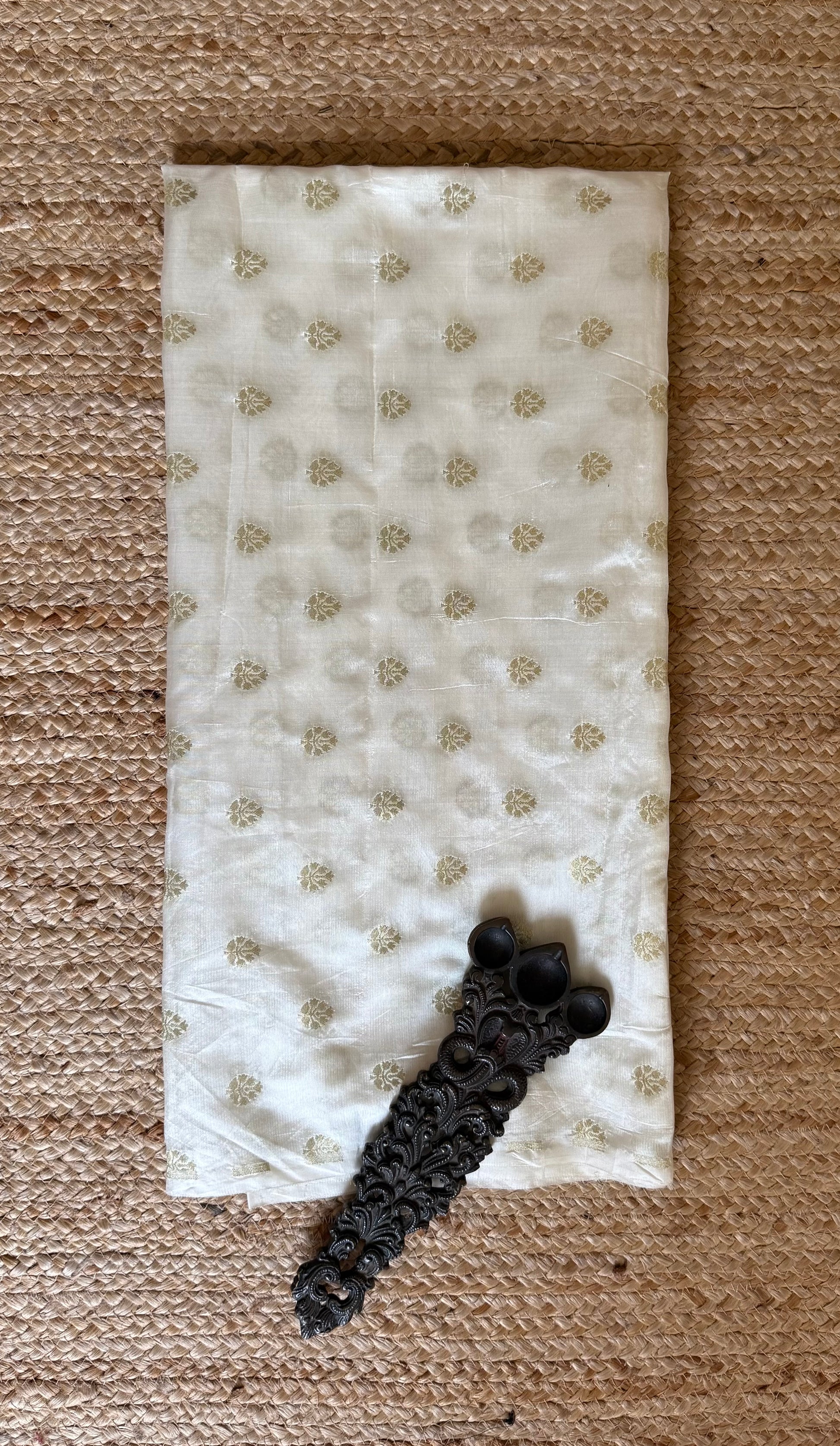 WHITE GREEN CHANDERI SILK BANARASI BUTTI UNSTITCHED BLOUSE PIECE