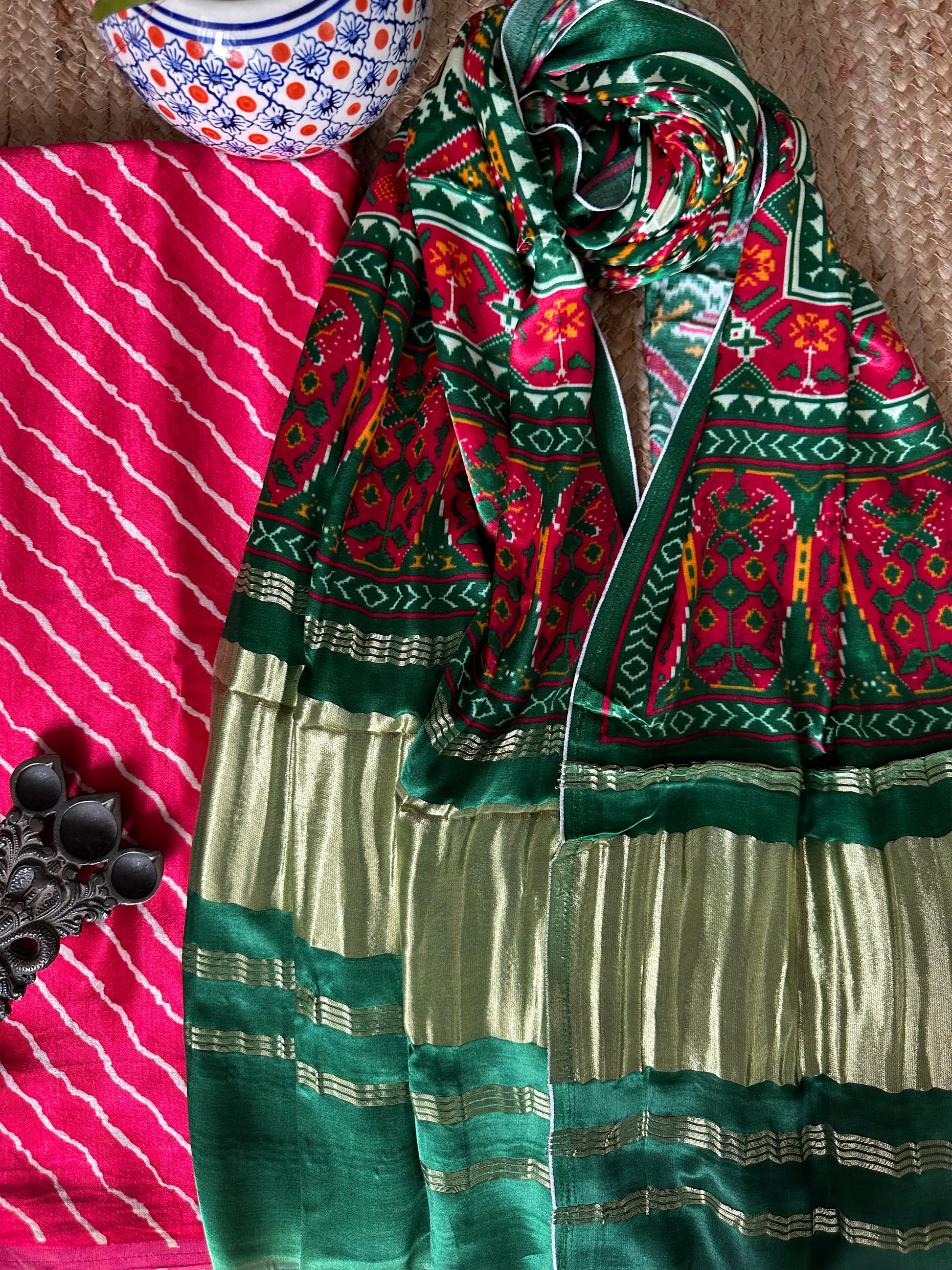 PINK LEHERIYA BANDHANI MASHRU SILK KURTA WITH PATOLAPRINT MODAL SILK DUPATTA