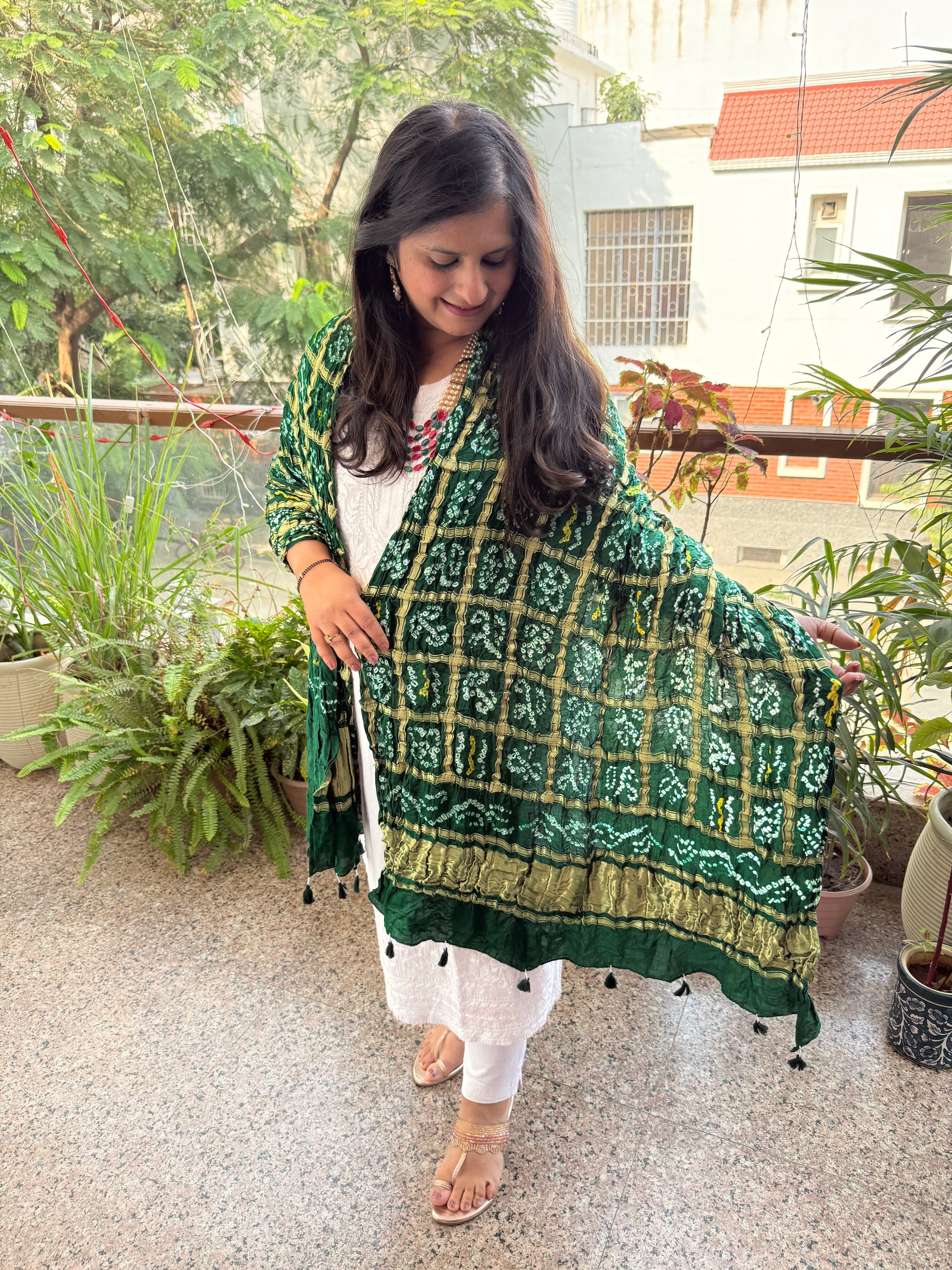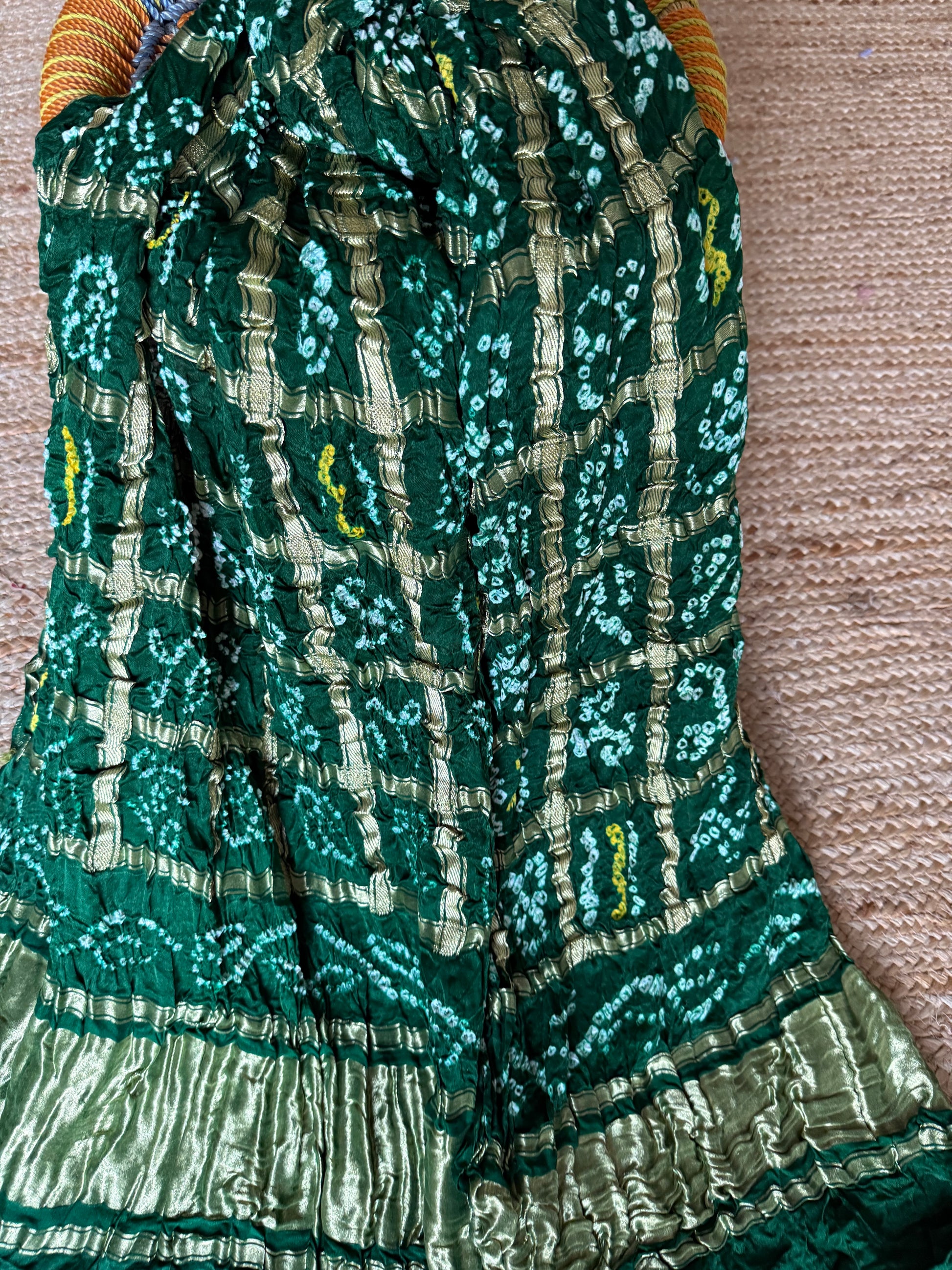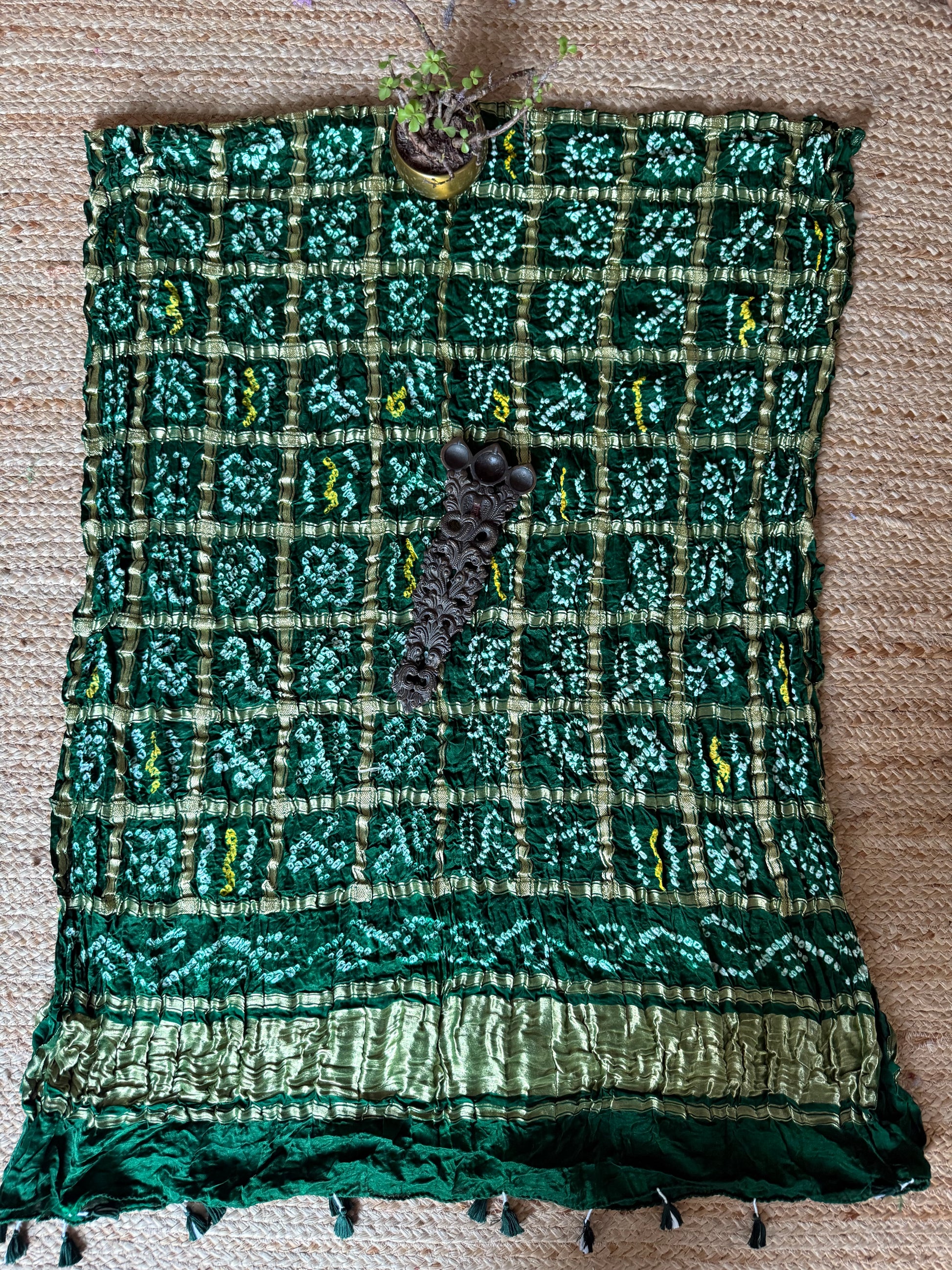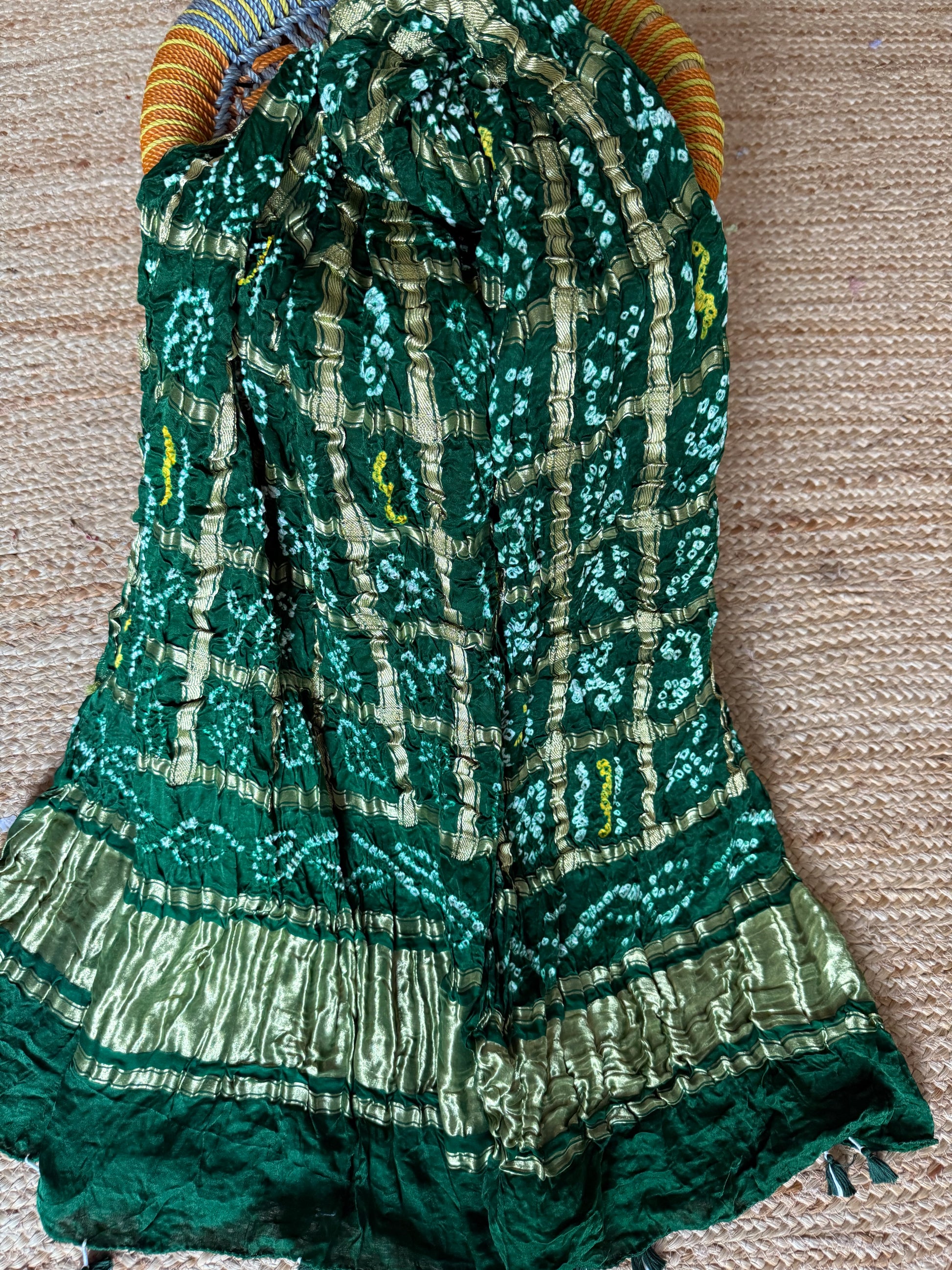 Green Handwoven handcrafted Gajji  silk GHARCHOLA dupatta