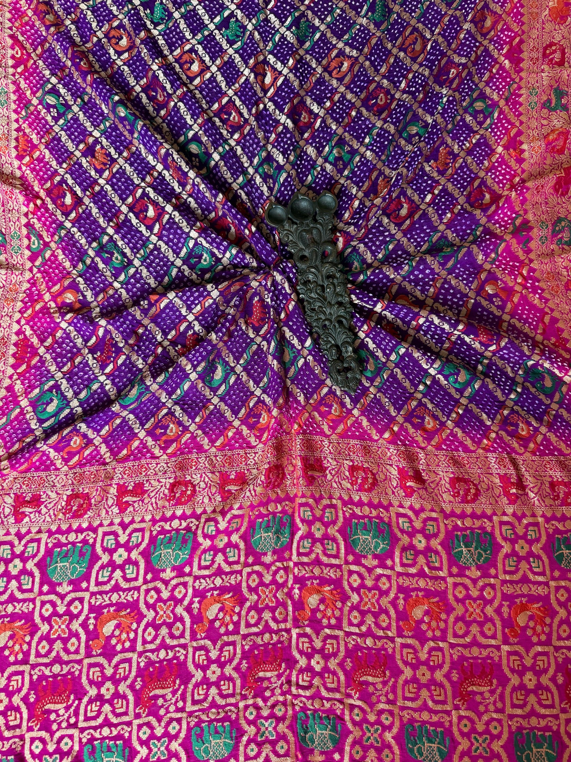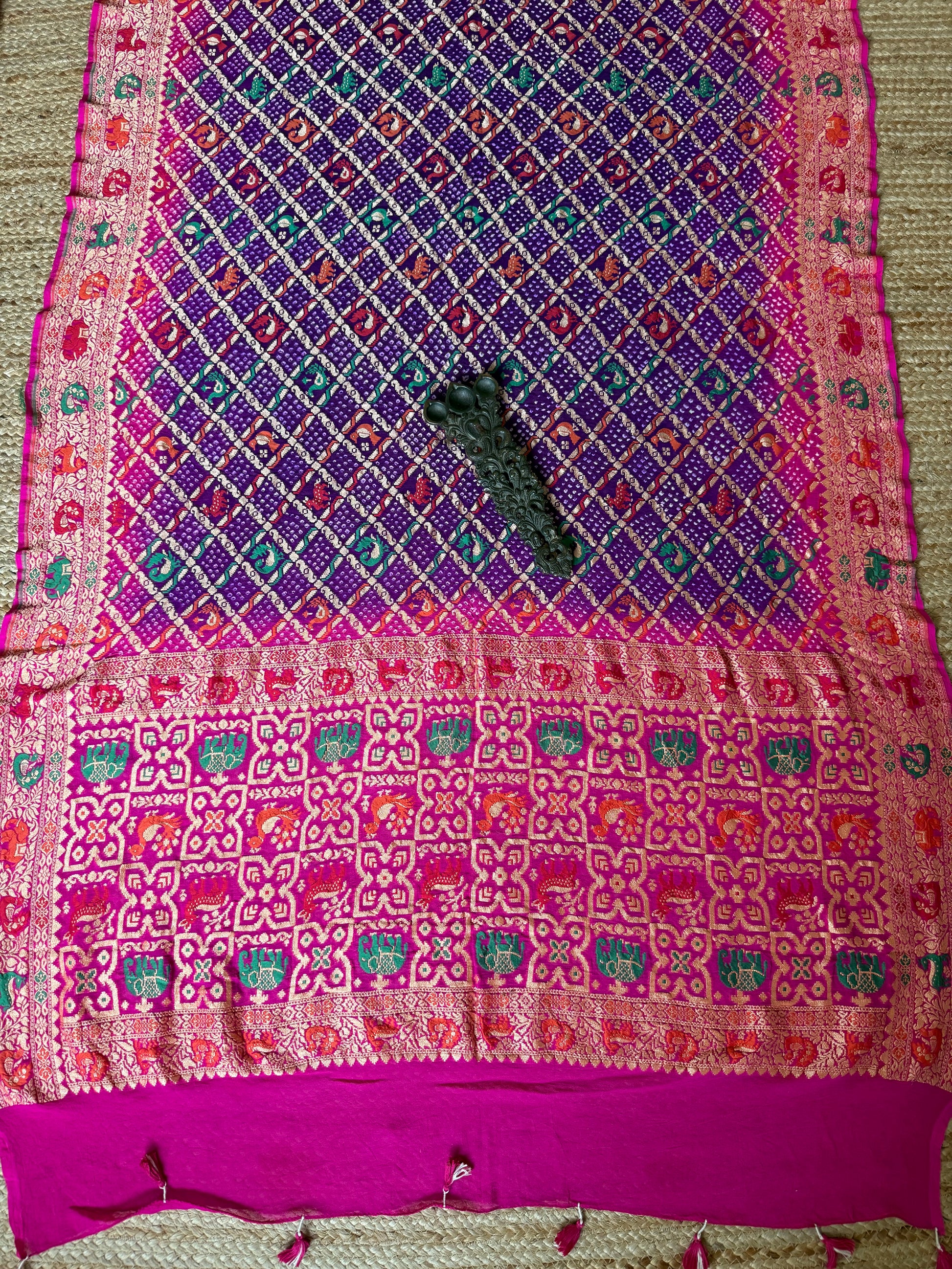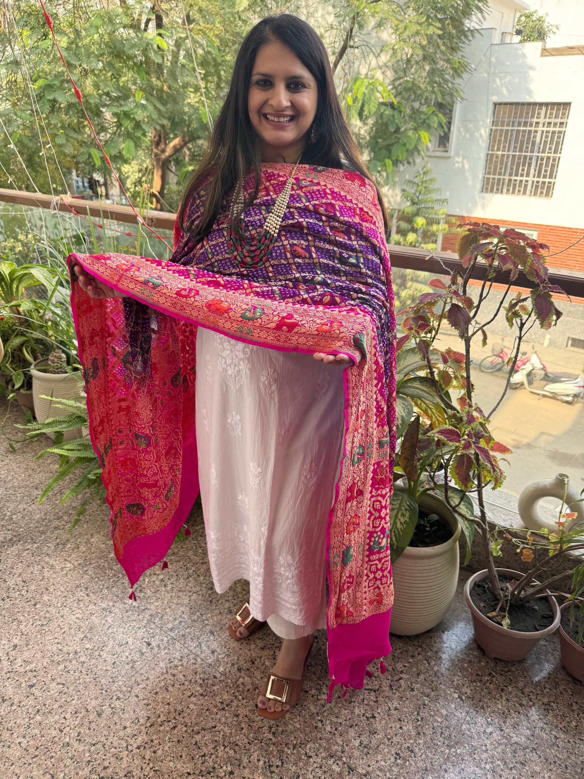 pink & pink ombré shade Handwoven Bareek Bandhani in Meenakari Jaal Premium Georgette dupatta