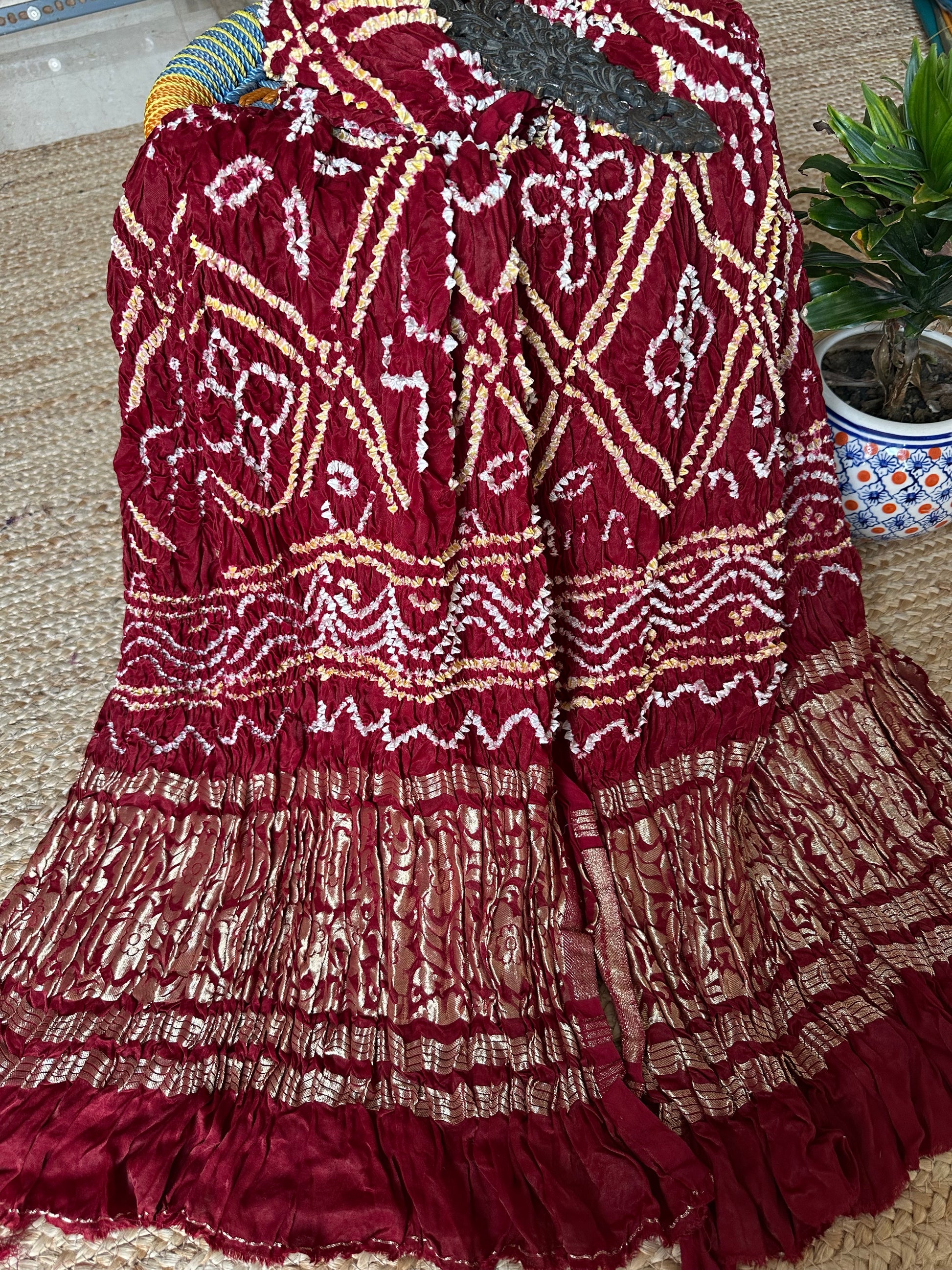 RED  MODAL SILK GHARCHOLA BANDHANI DUPATTA WITH ZARI BORDER