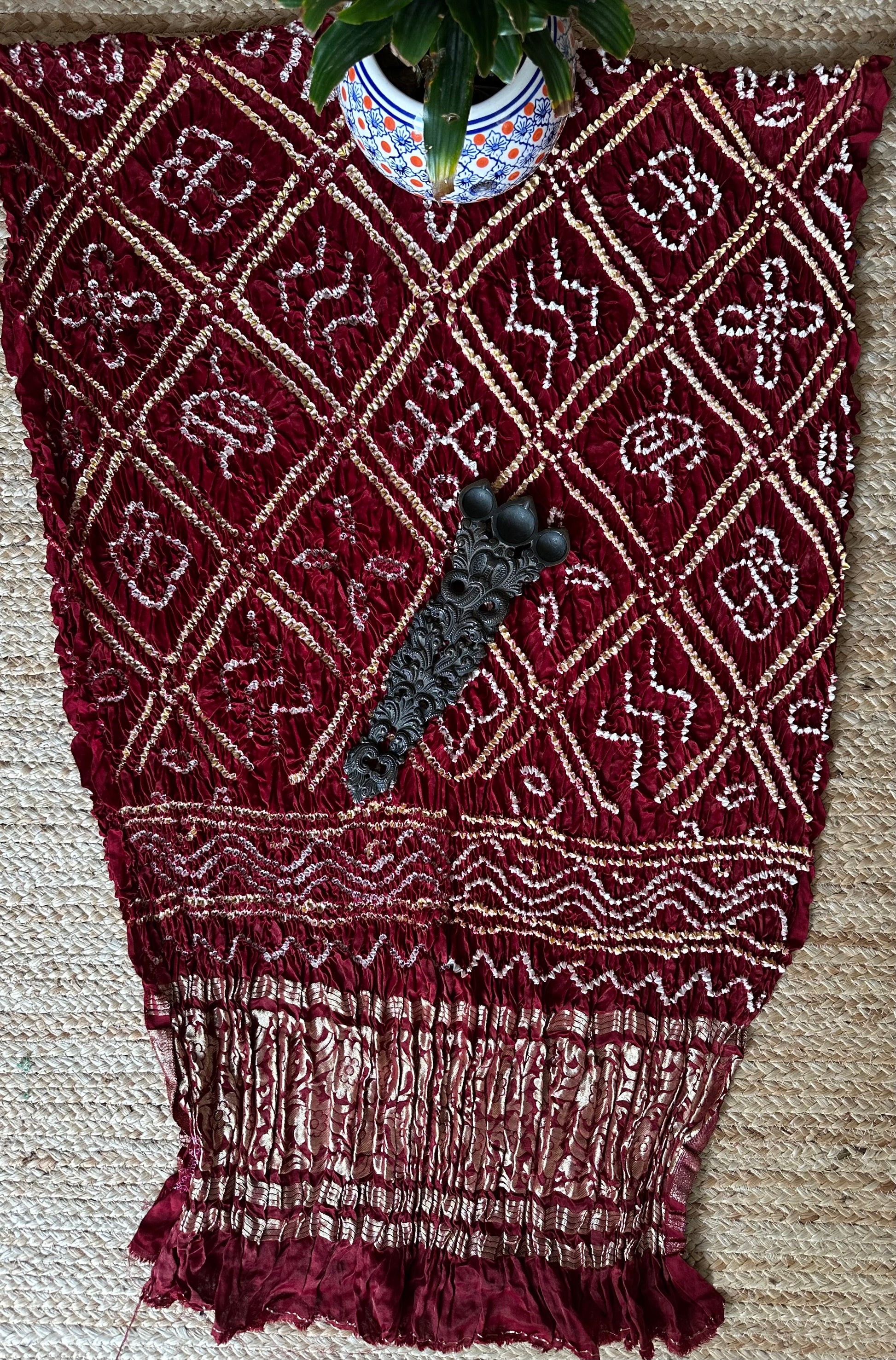 MAROON SMALL BANDHANI DUPATTA IN GHARCHOLA DESIGN WITH NAKSHI BORDER