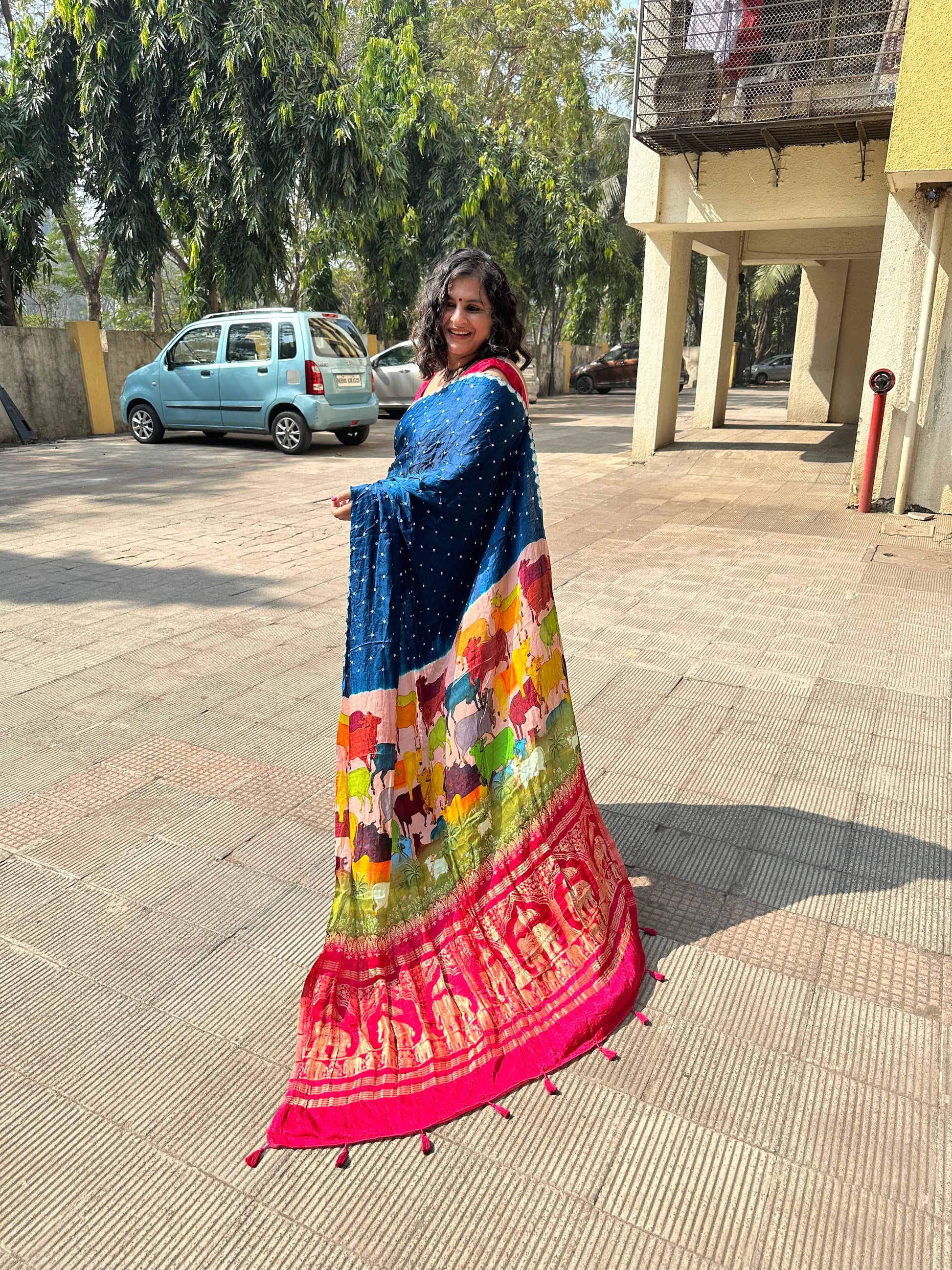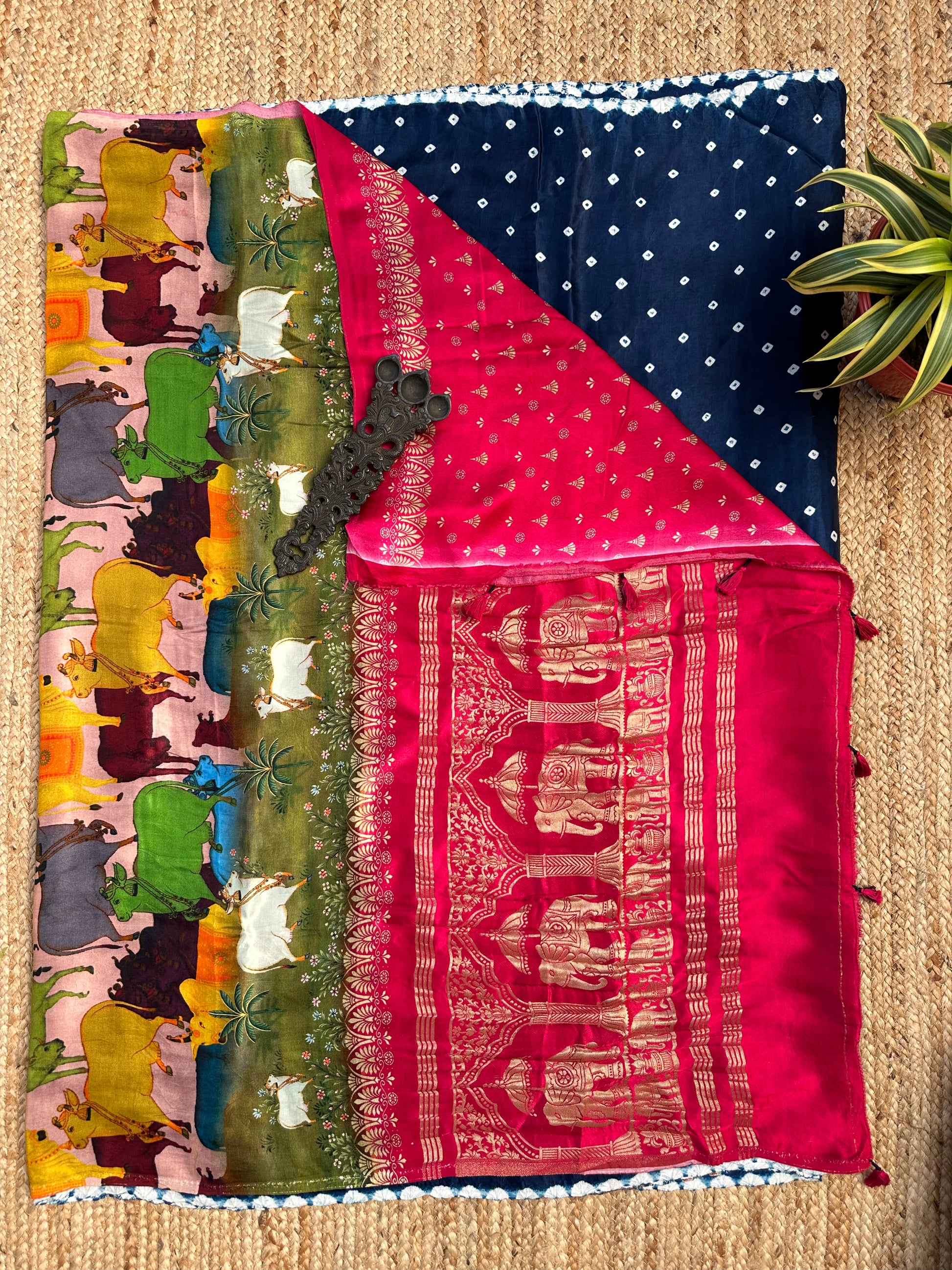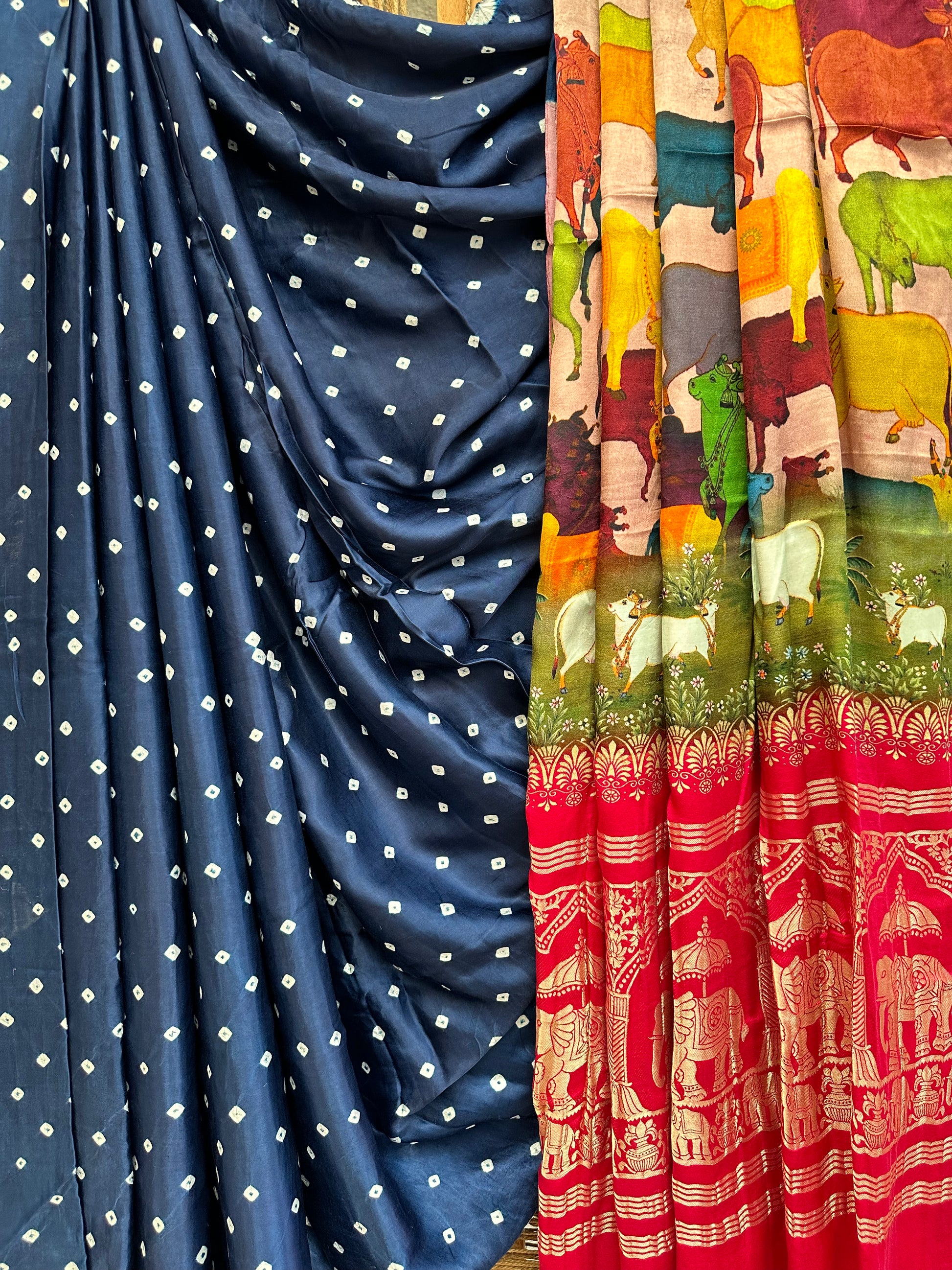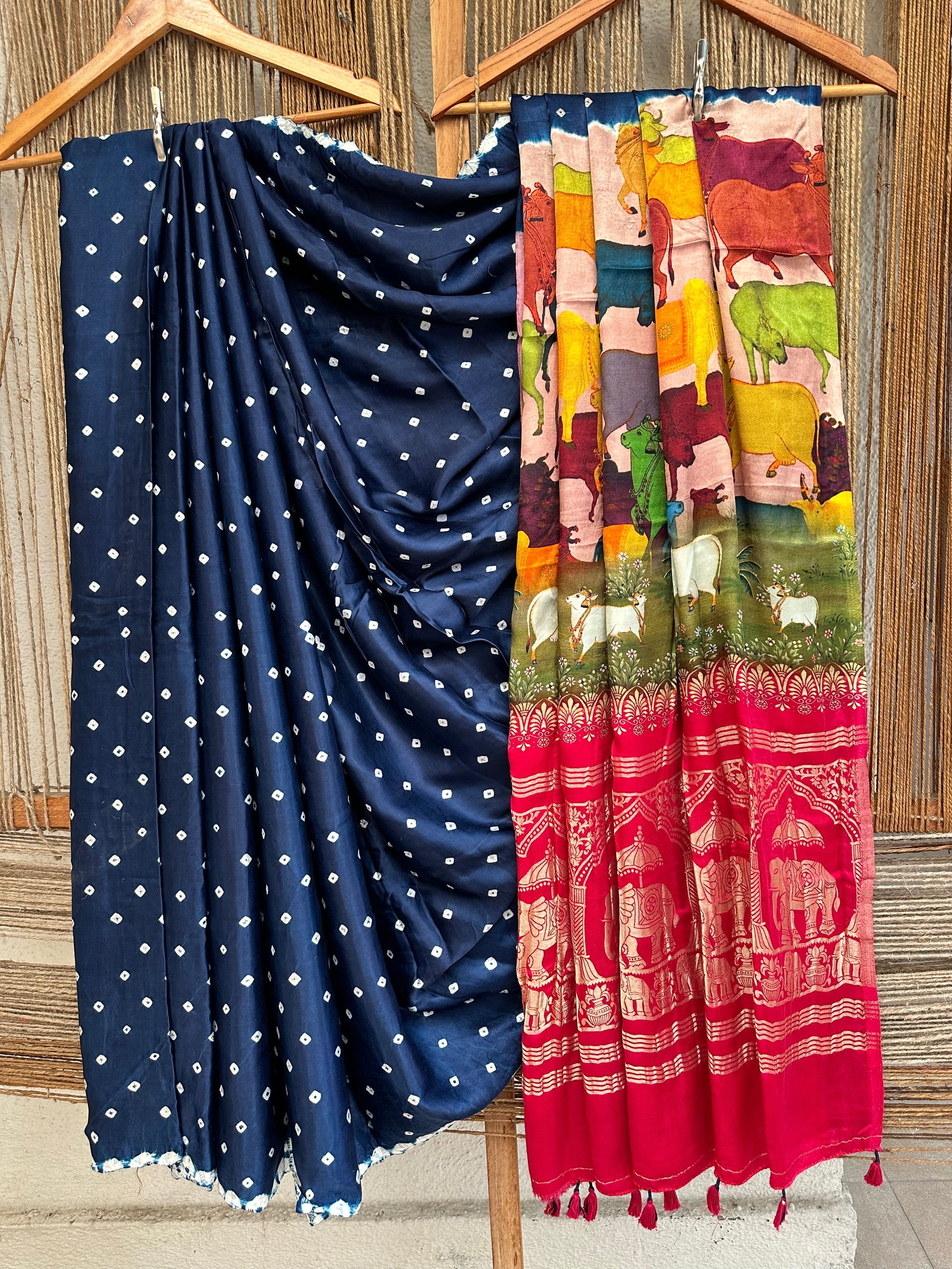 BLUE MODAL SILK BANDHANI SARI WITH PICHWAI PRINT BPS 7