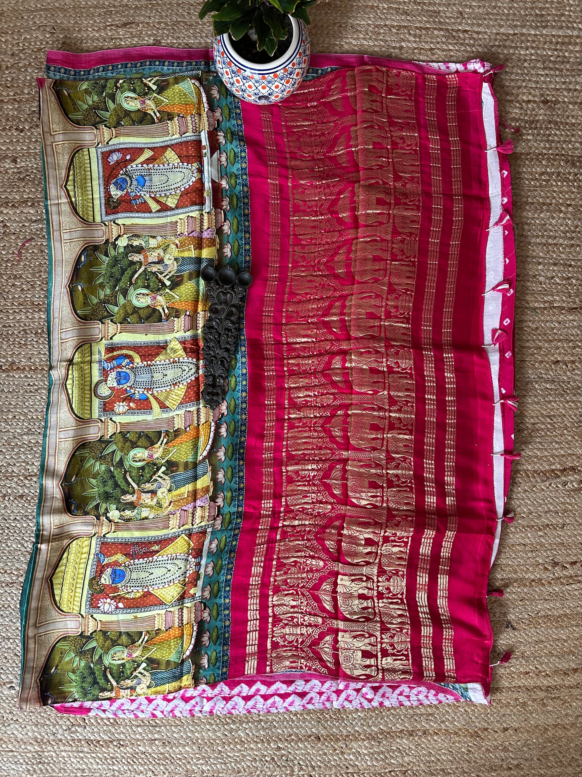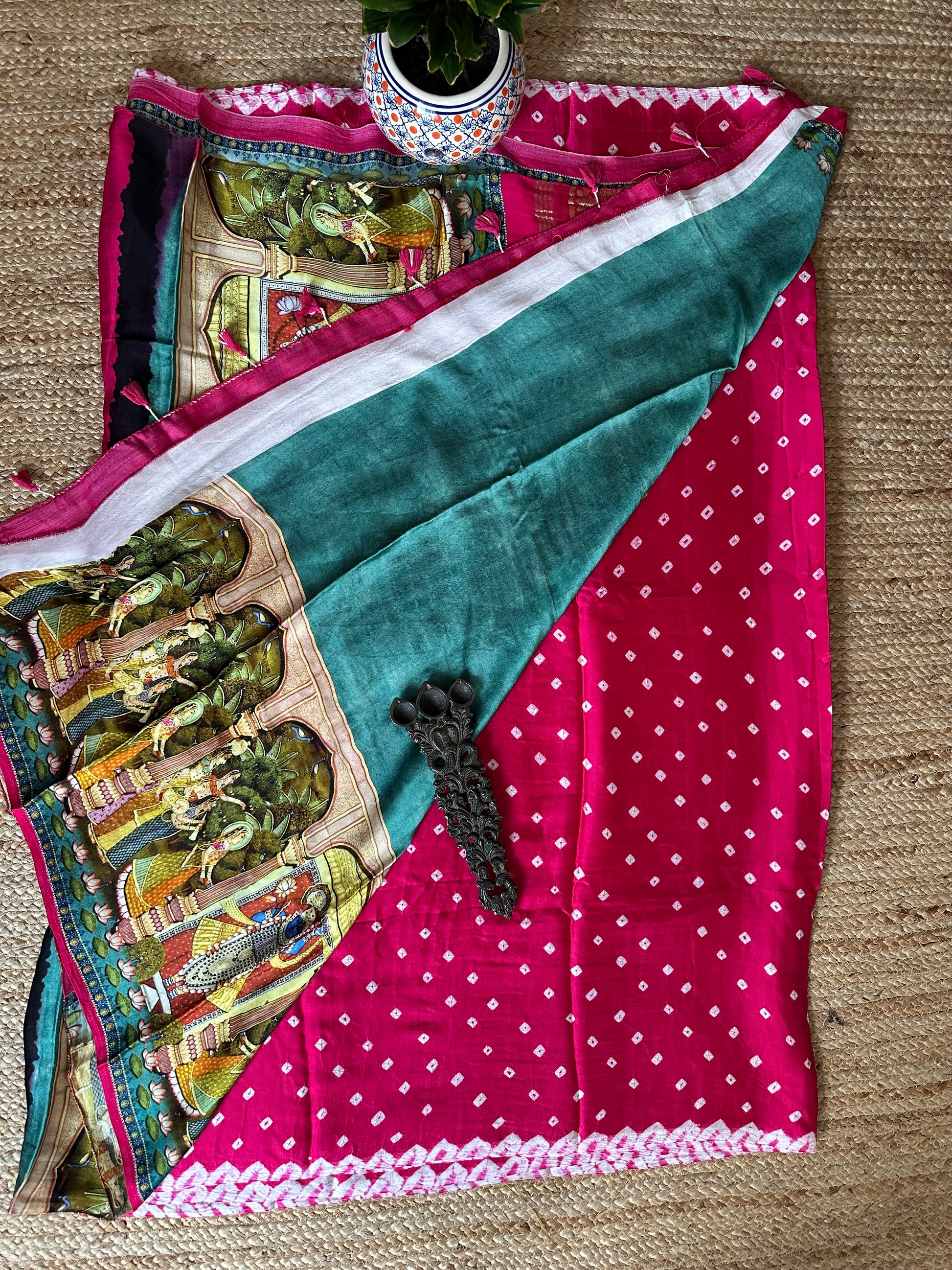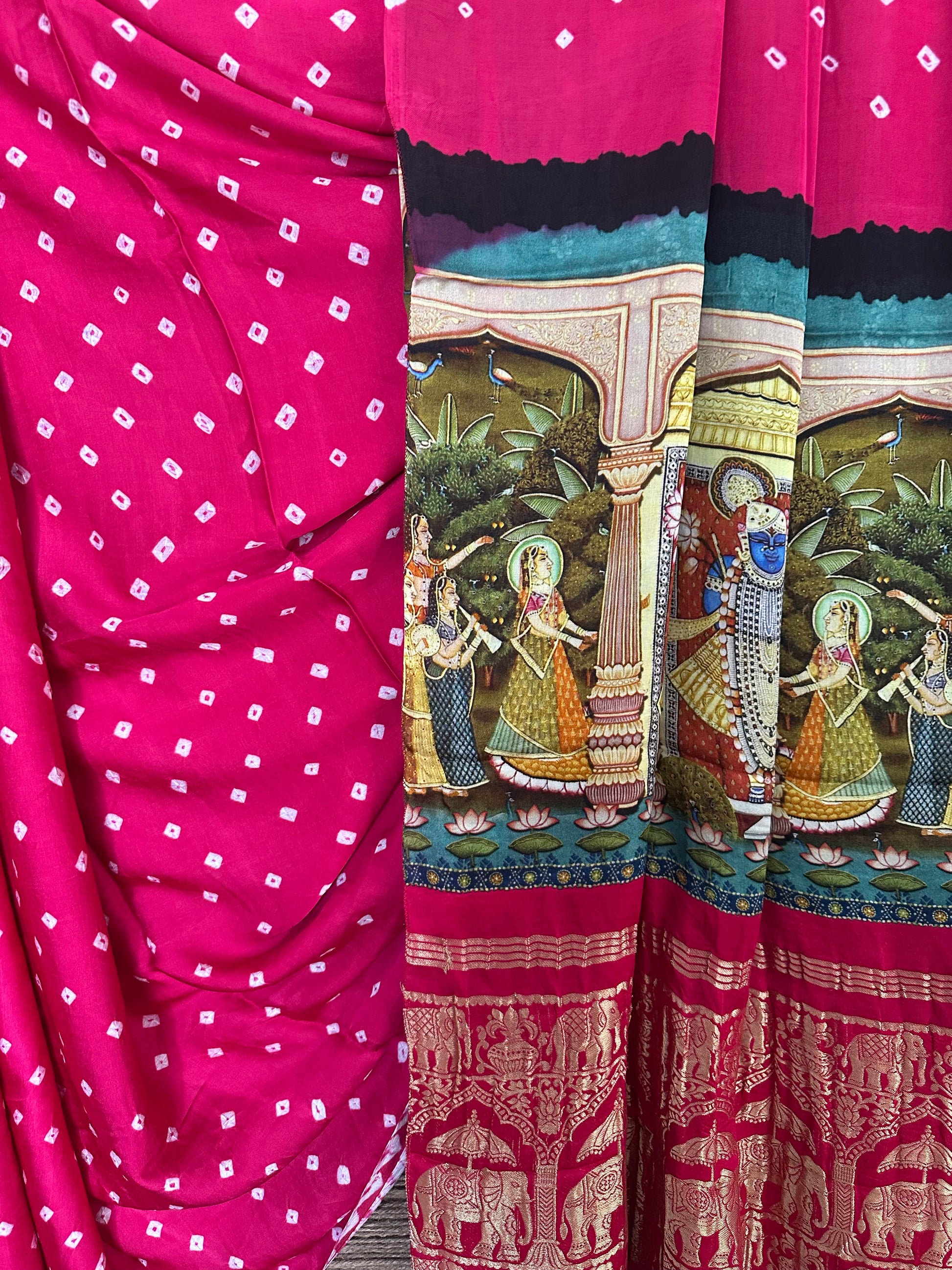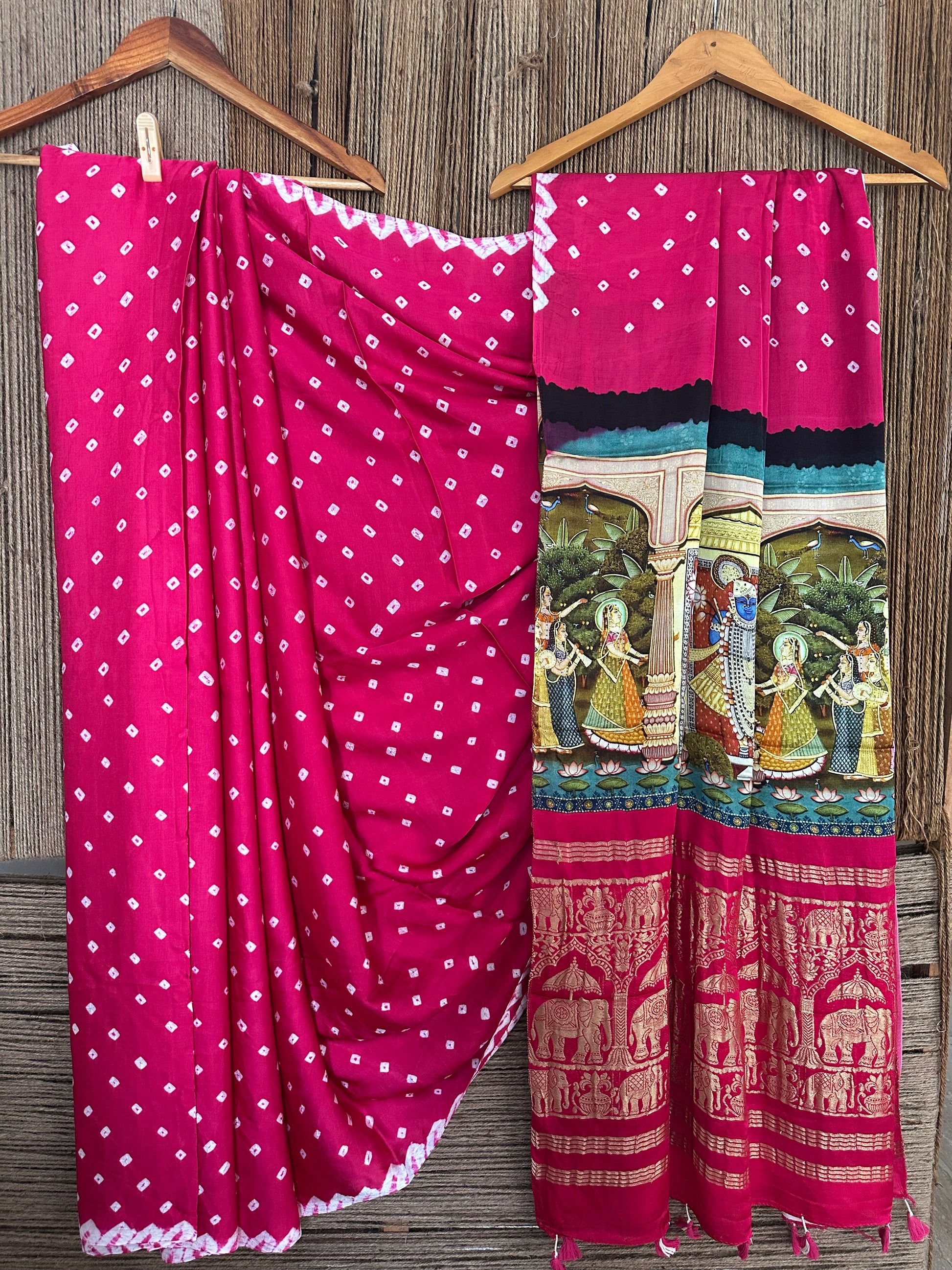 PINK MODAL SILK BANDHANI SARI WITH PICHWAI PRINT BPS 27