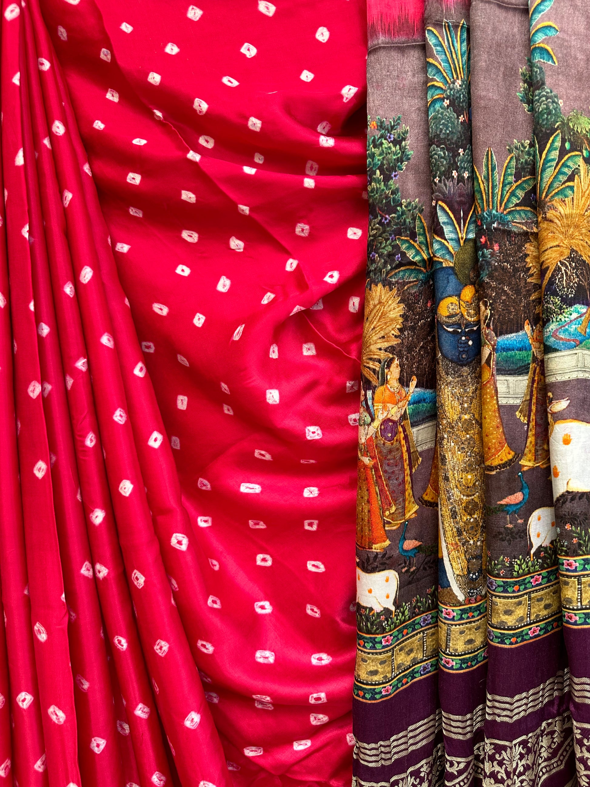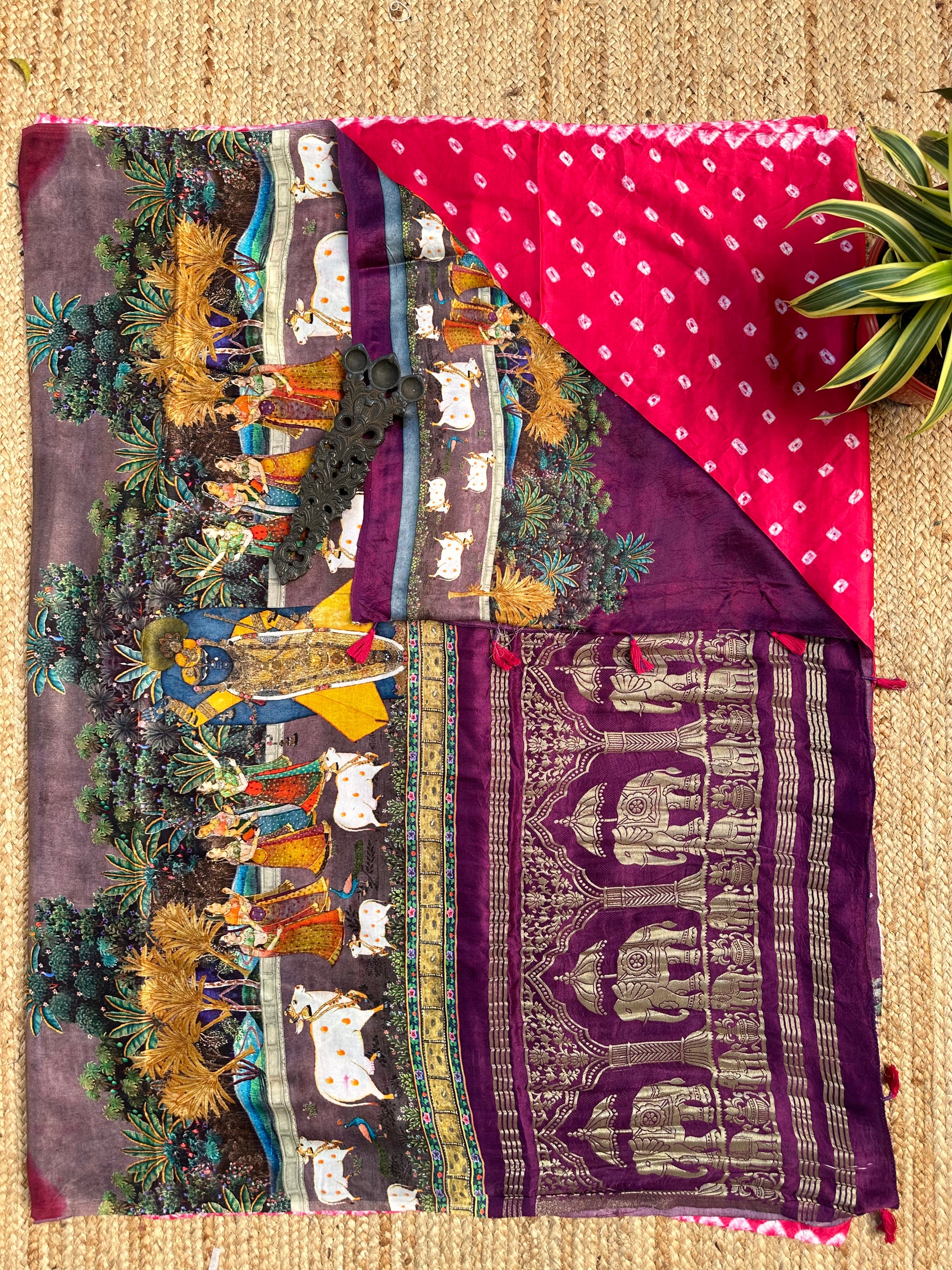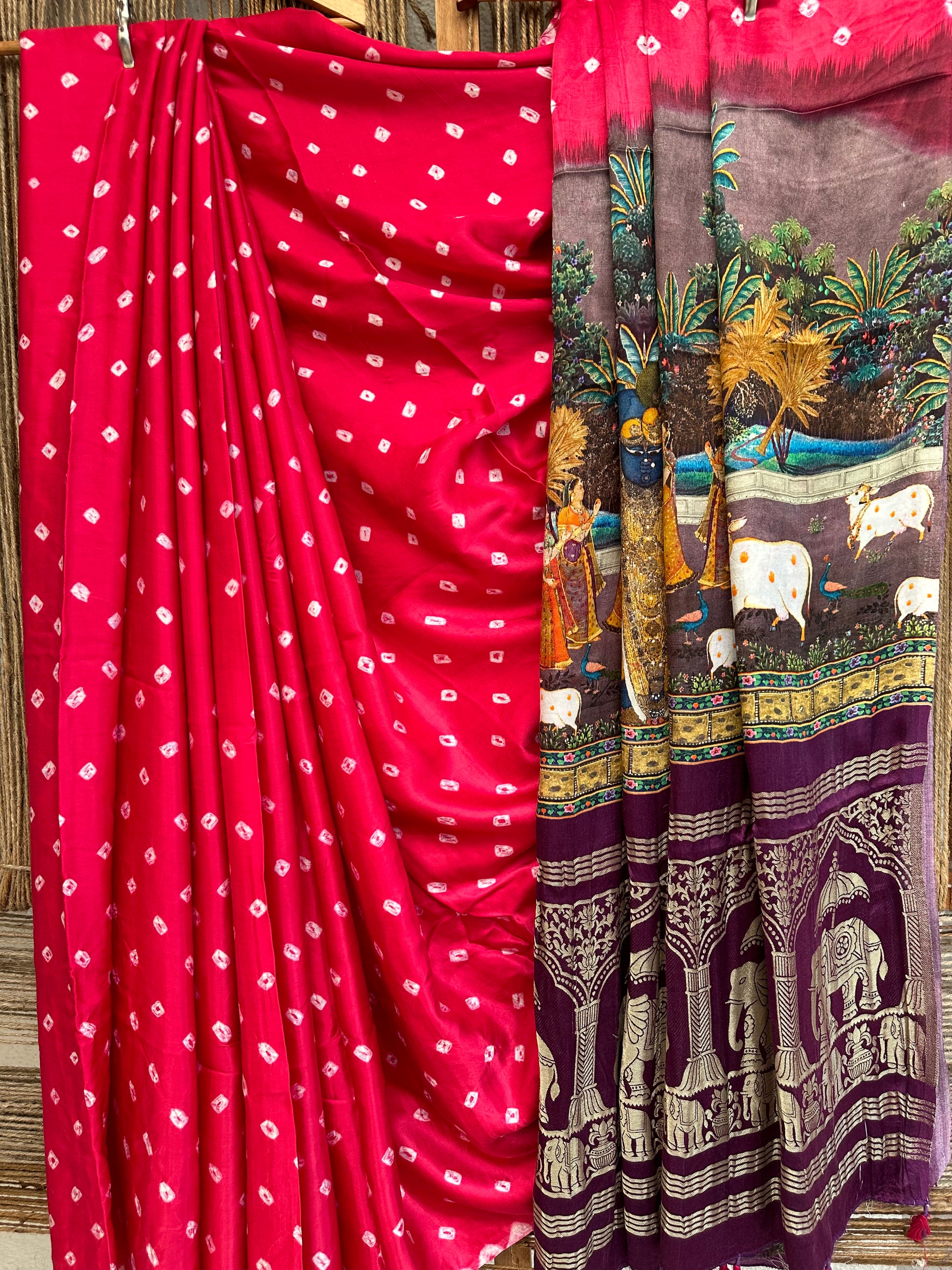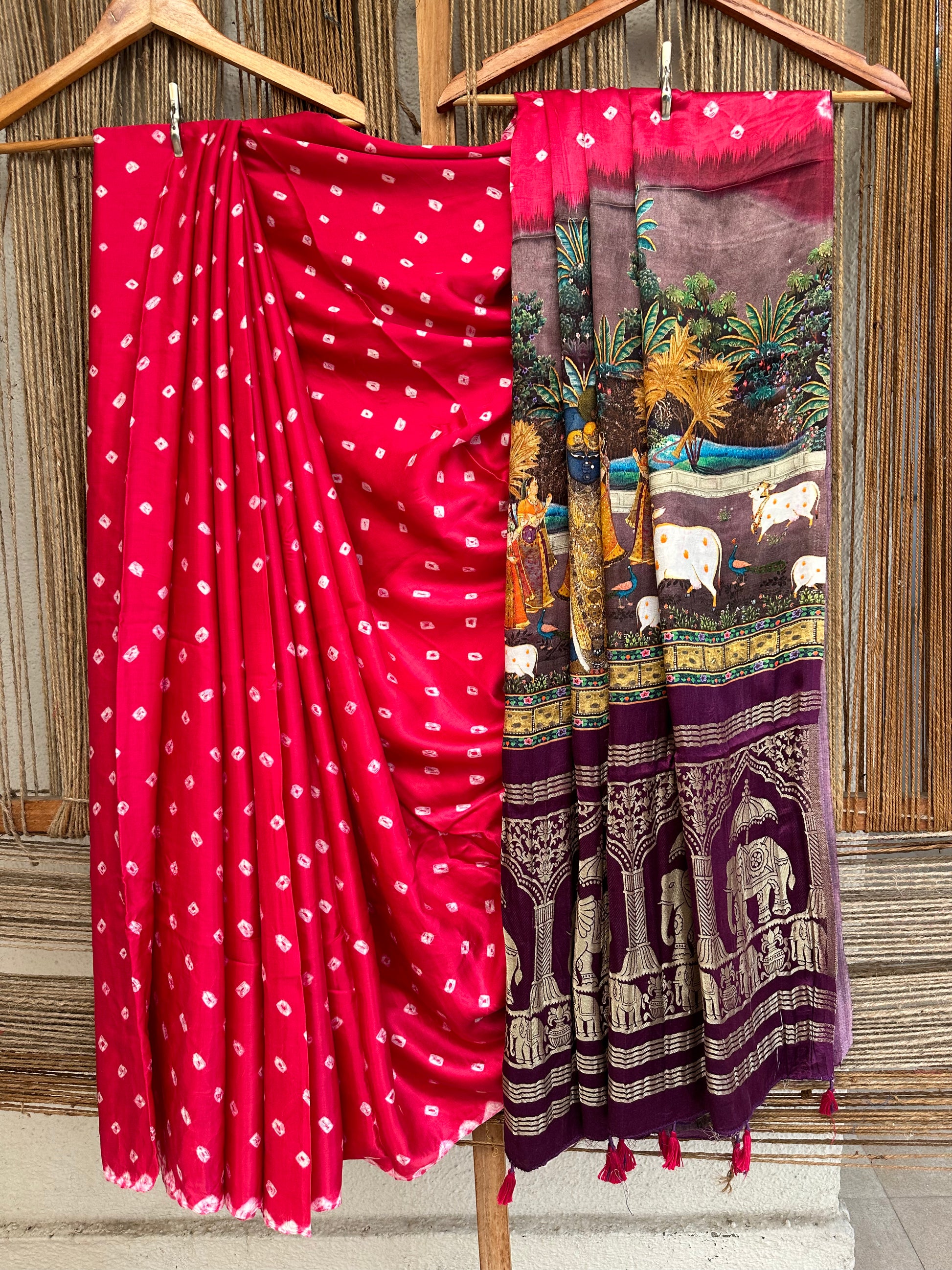 MAGENTA PINK MODAL SILK BANDHANI SARI WITH PICHWAI PRINT BPS 16