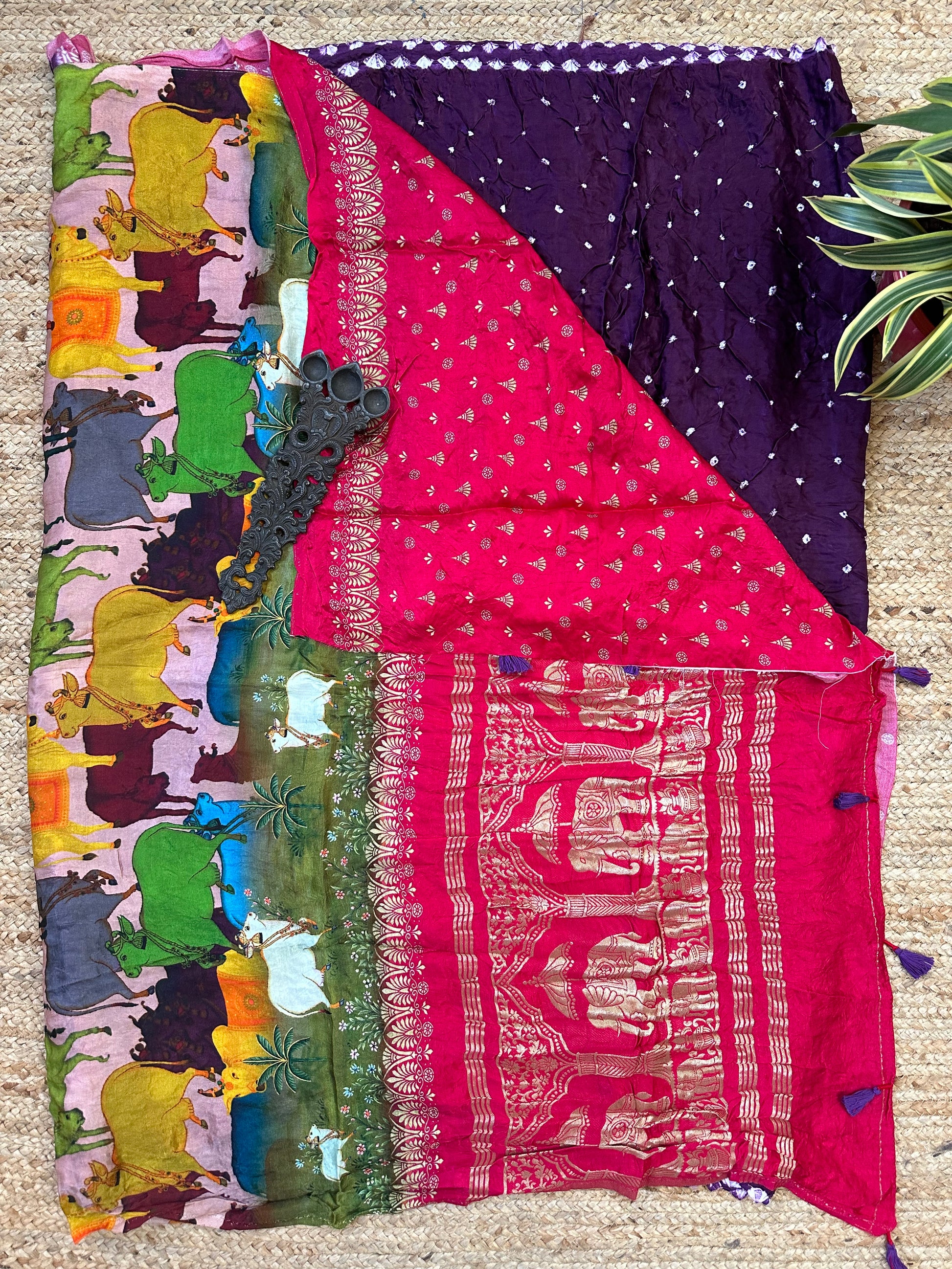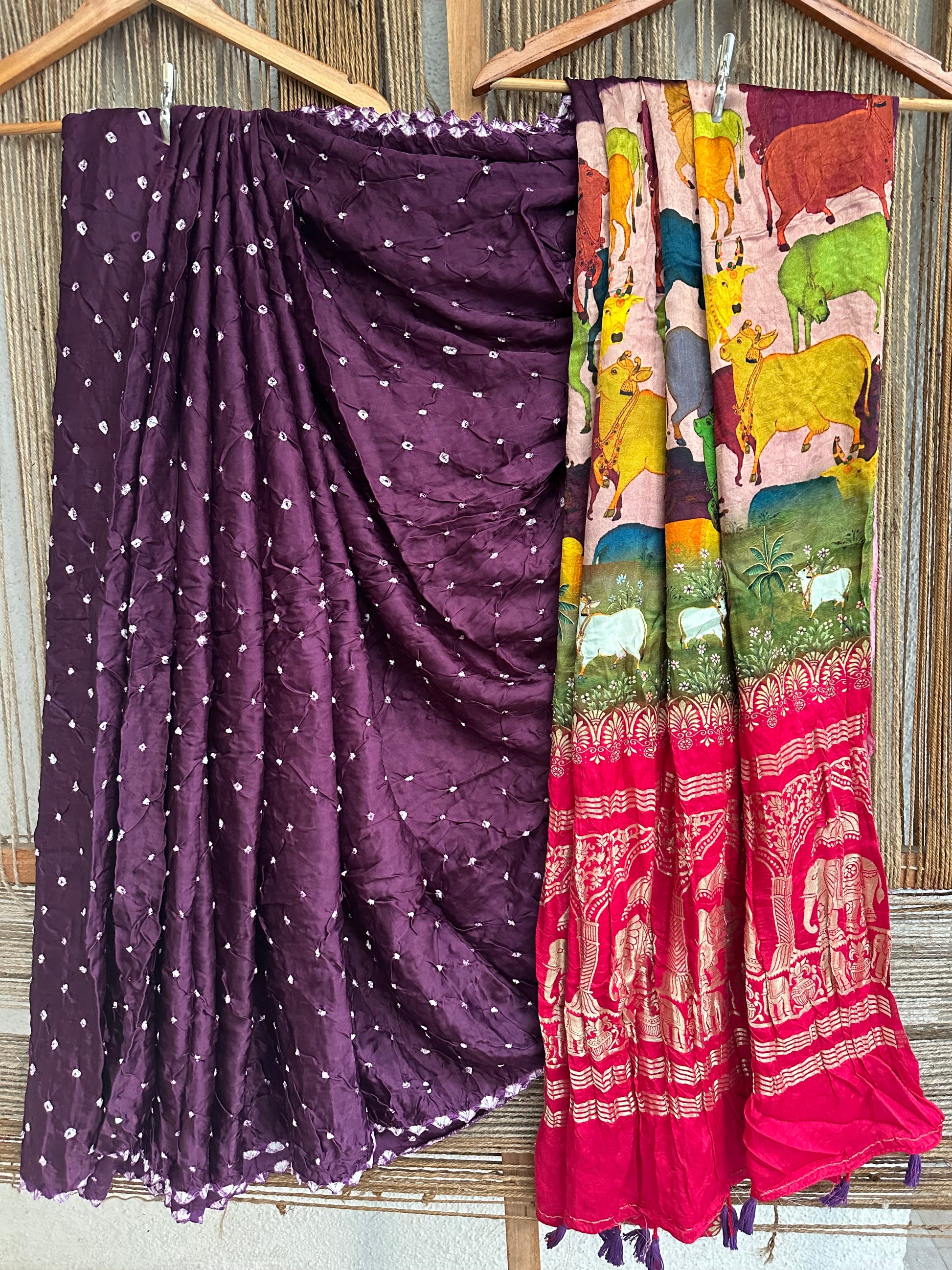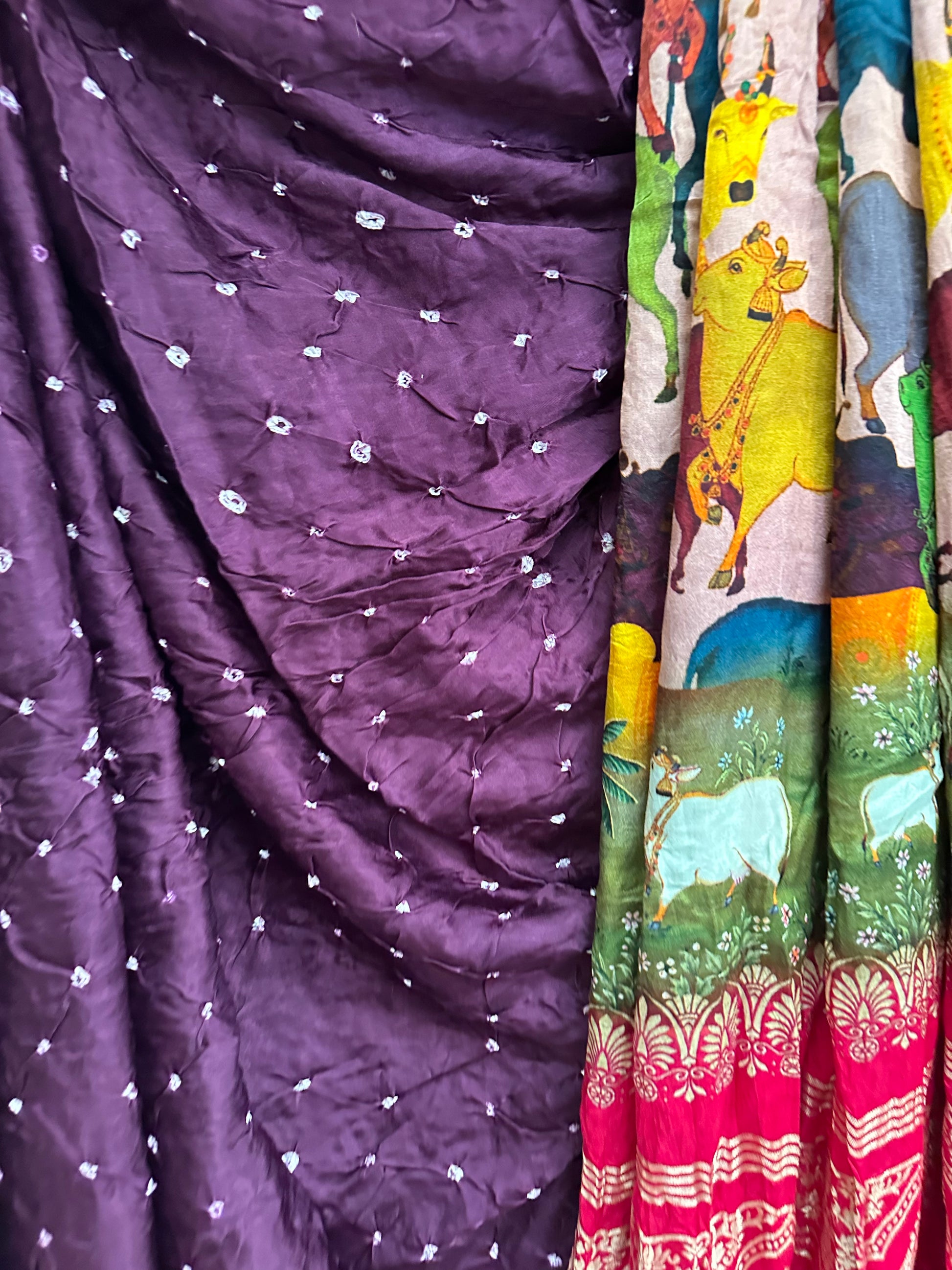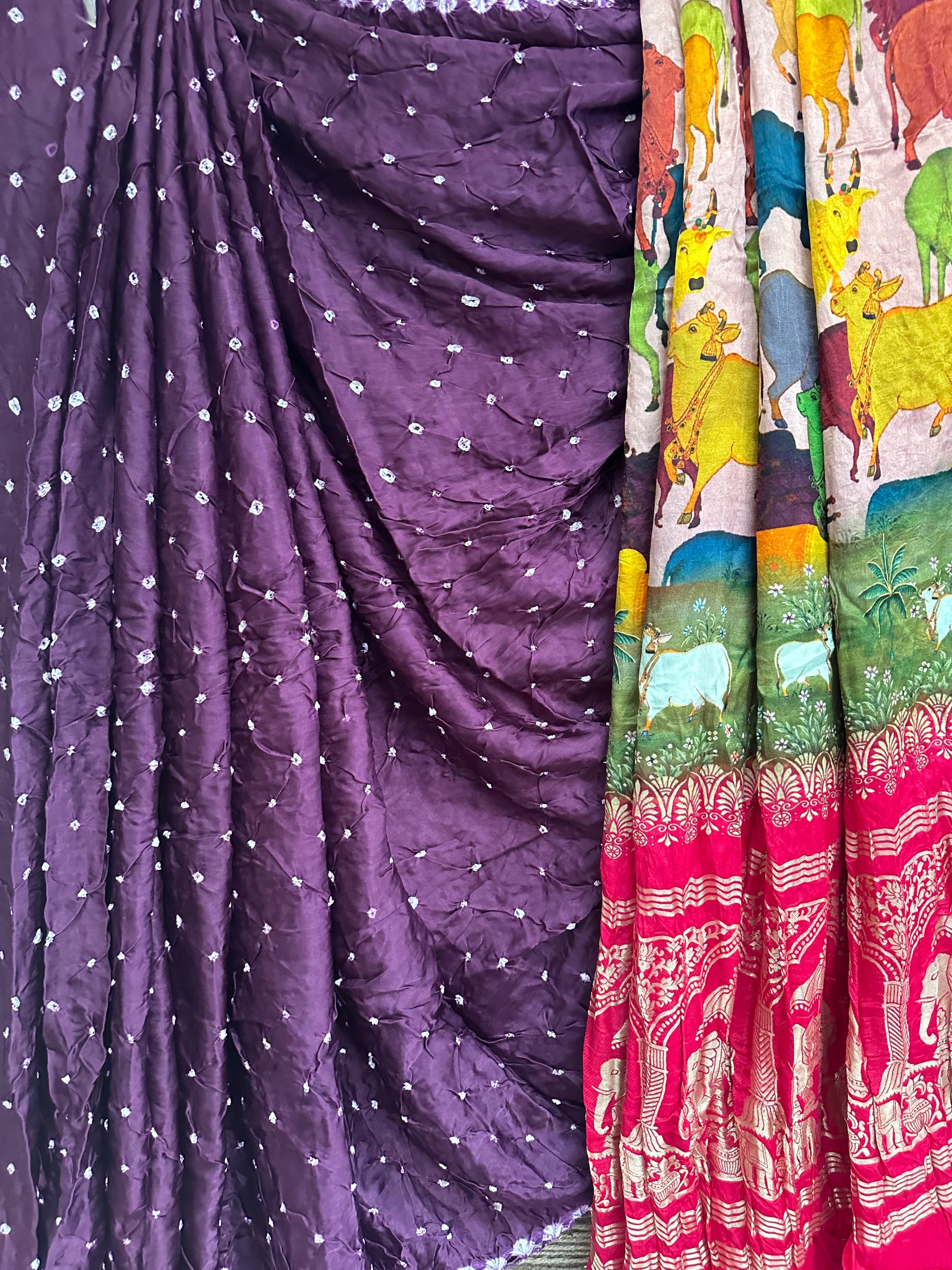 PURPLE MODAL SILK BANDHANI SARI WITH PICHWAI PRINT BPS 14