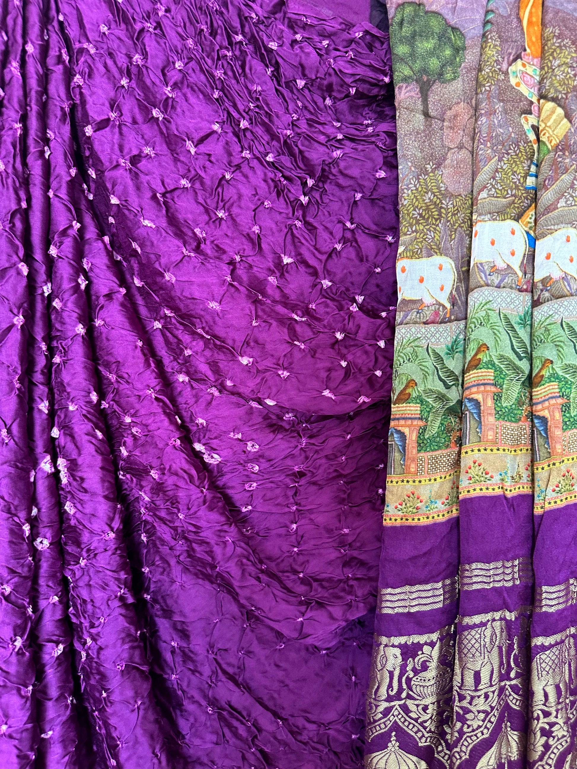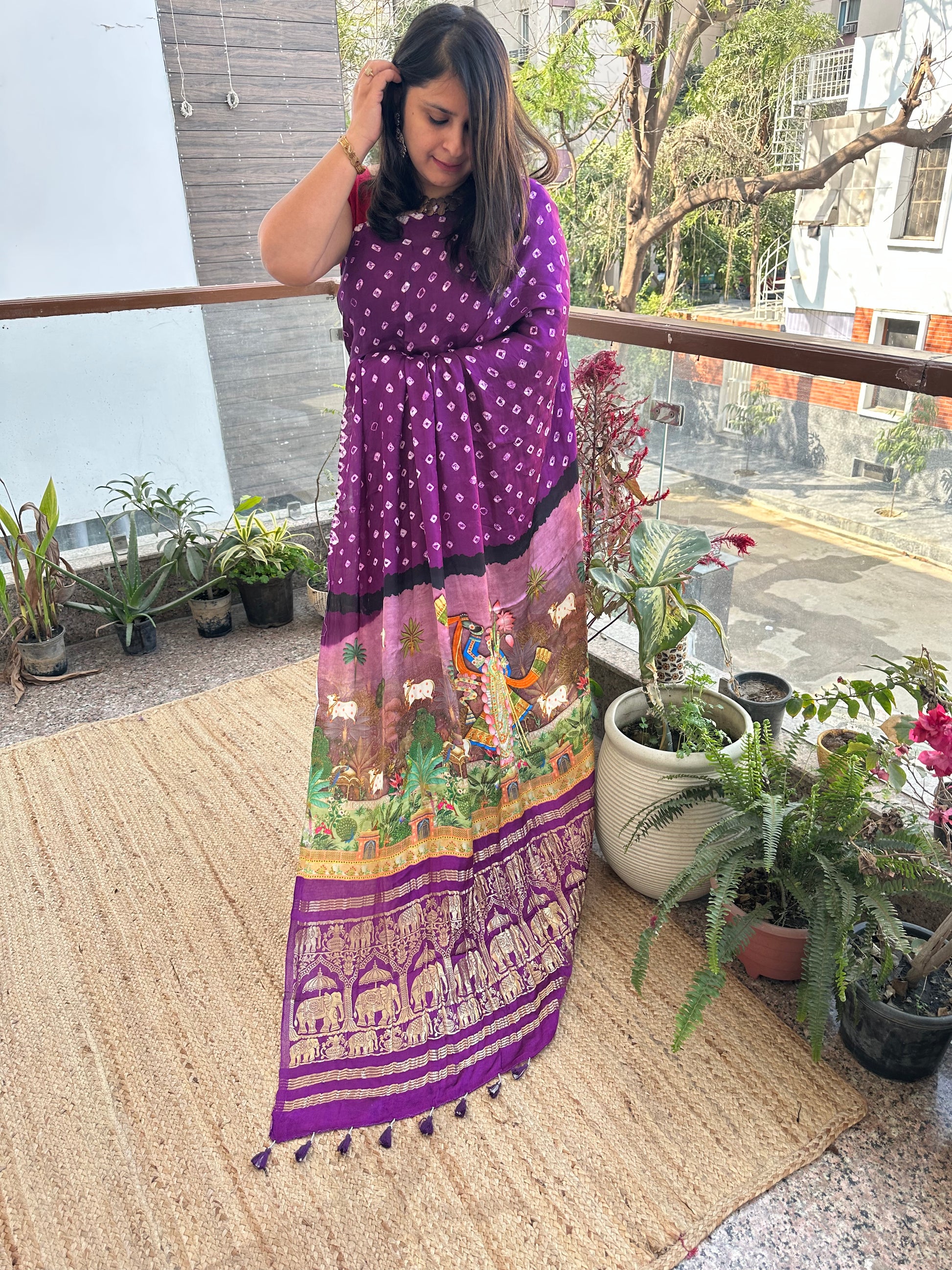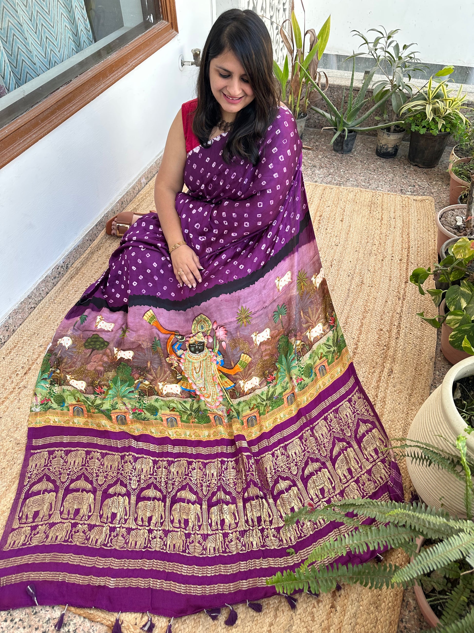 PURPLE MODAL SILK BANDHANI SARI WITH PICHWAI PRINT BPS 15