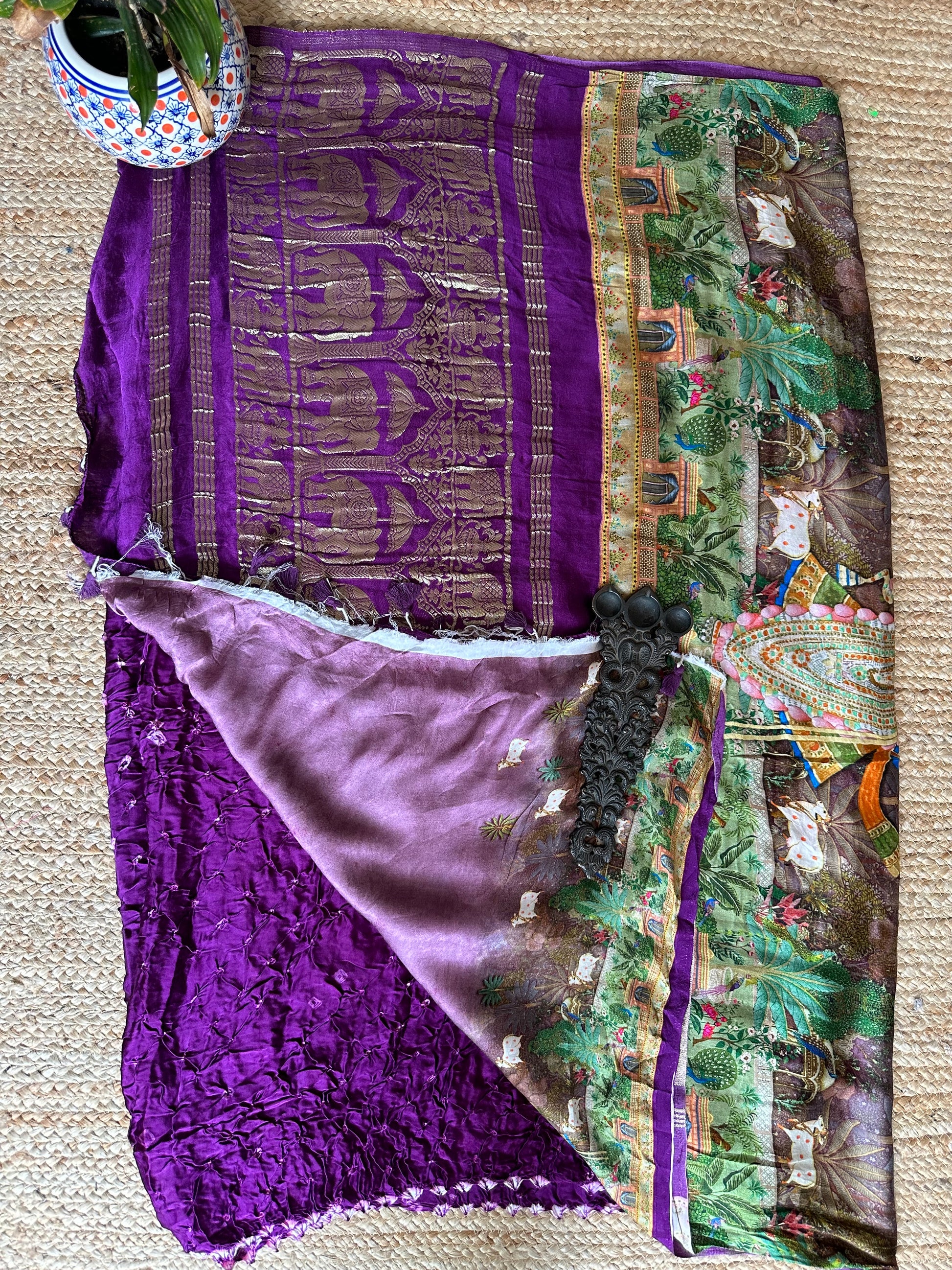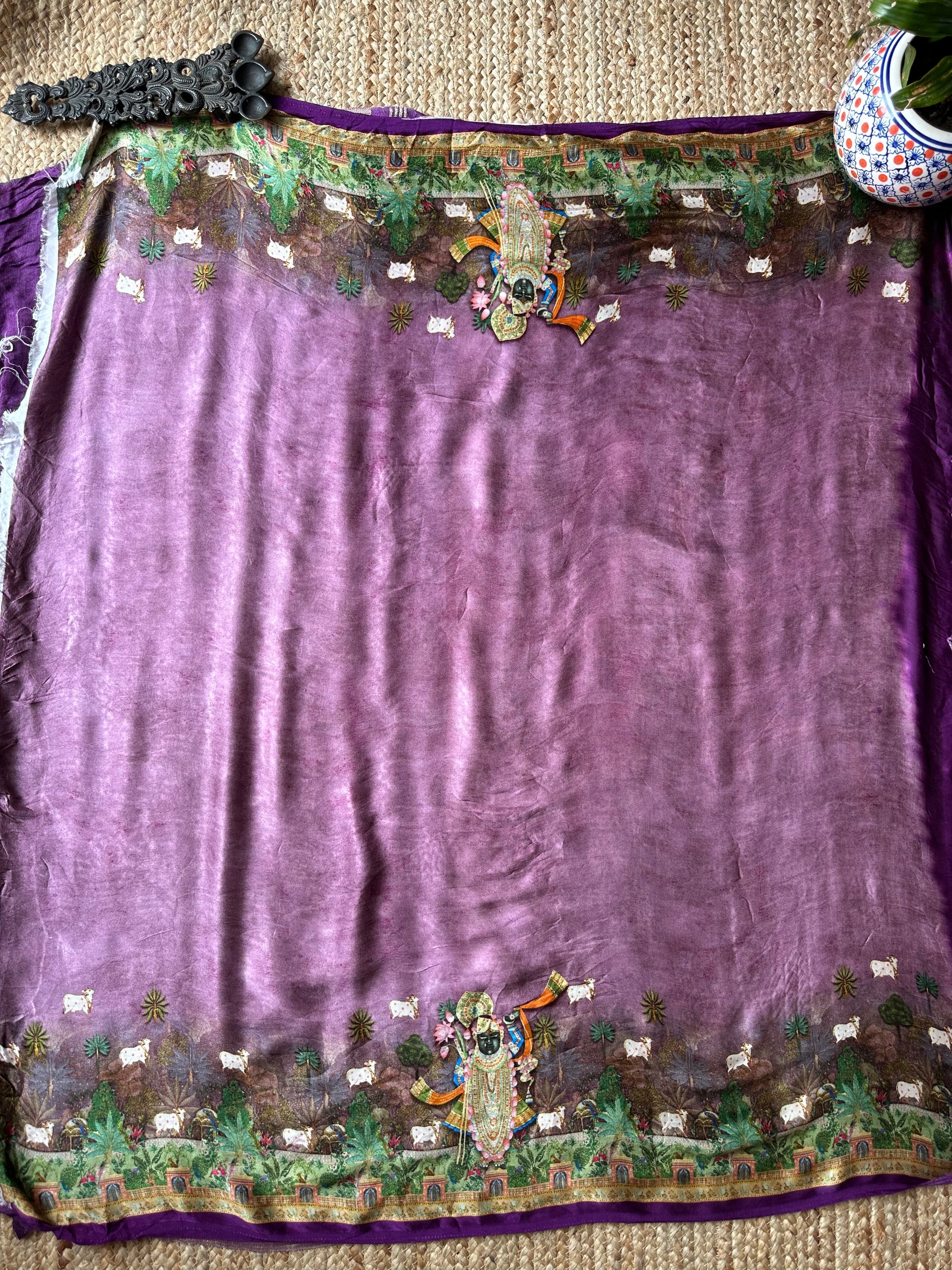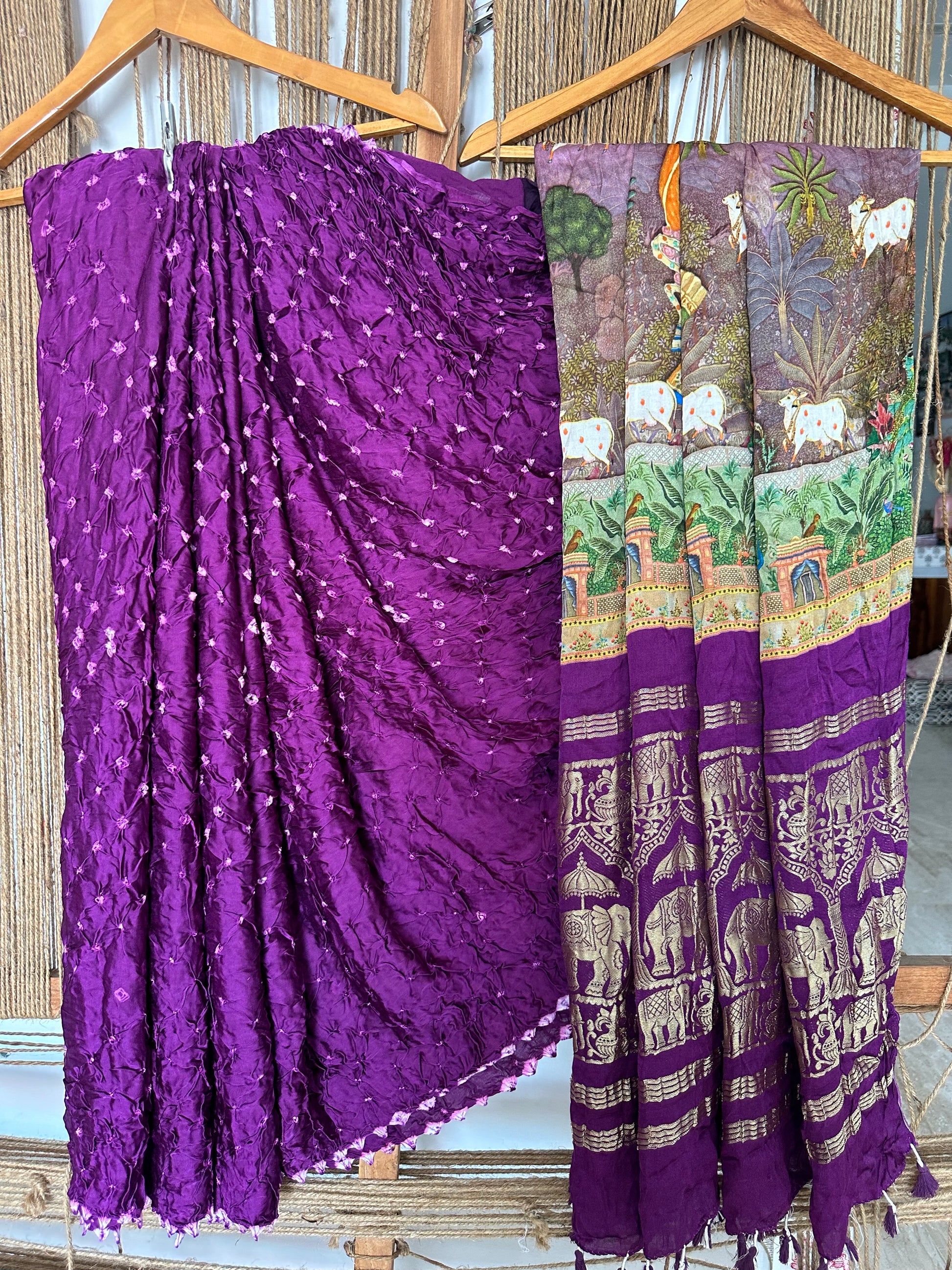 PURPLE MODAL SILK BANDHANI SARI WITH PICHWAI PRINT BPS 15