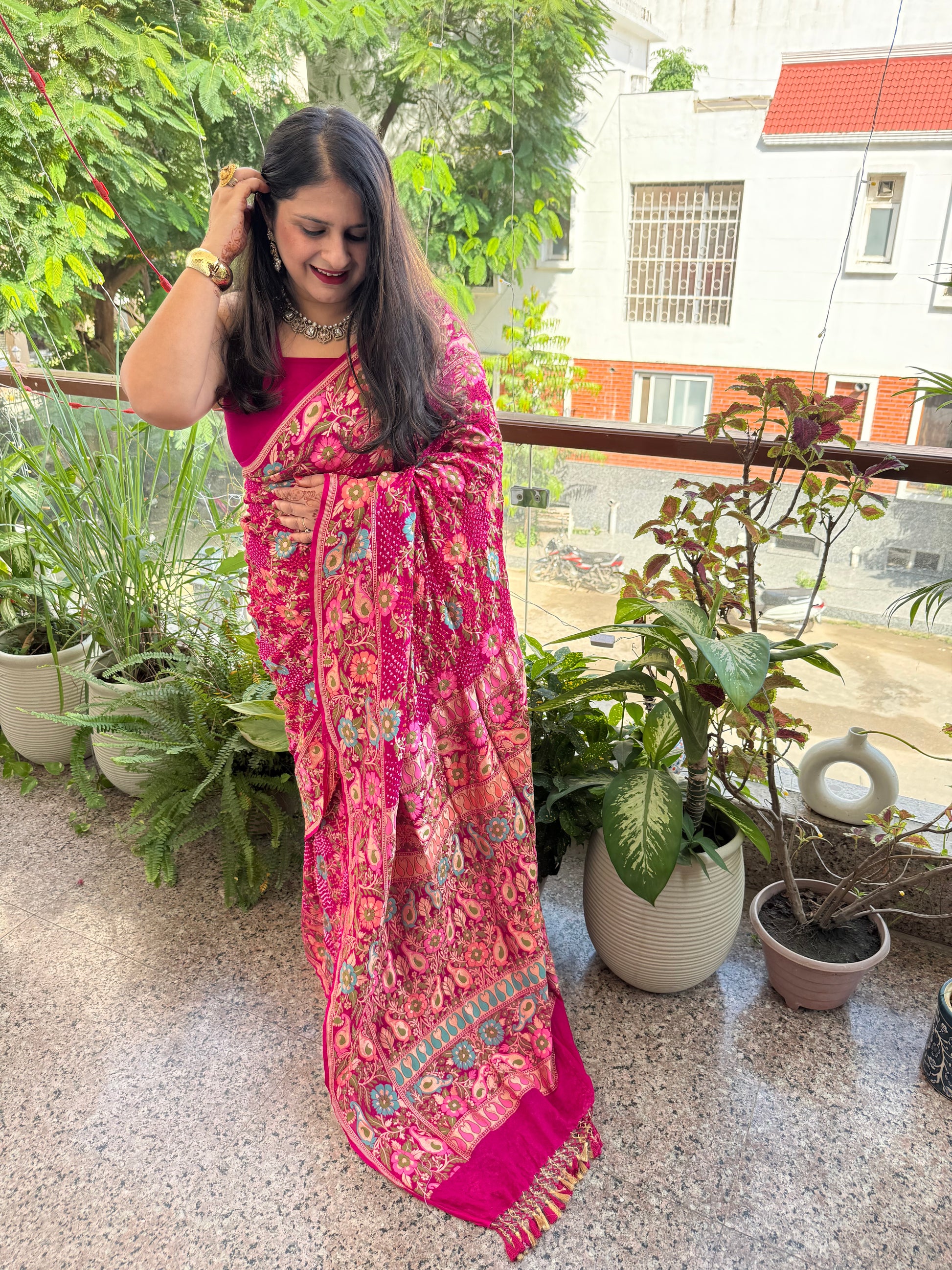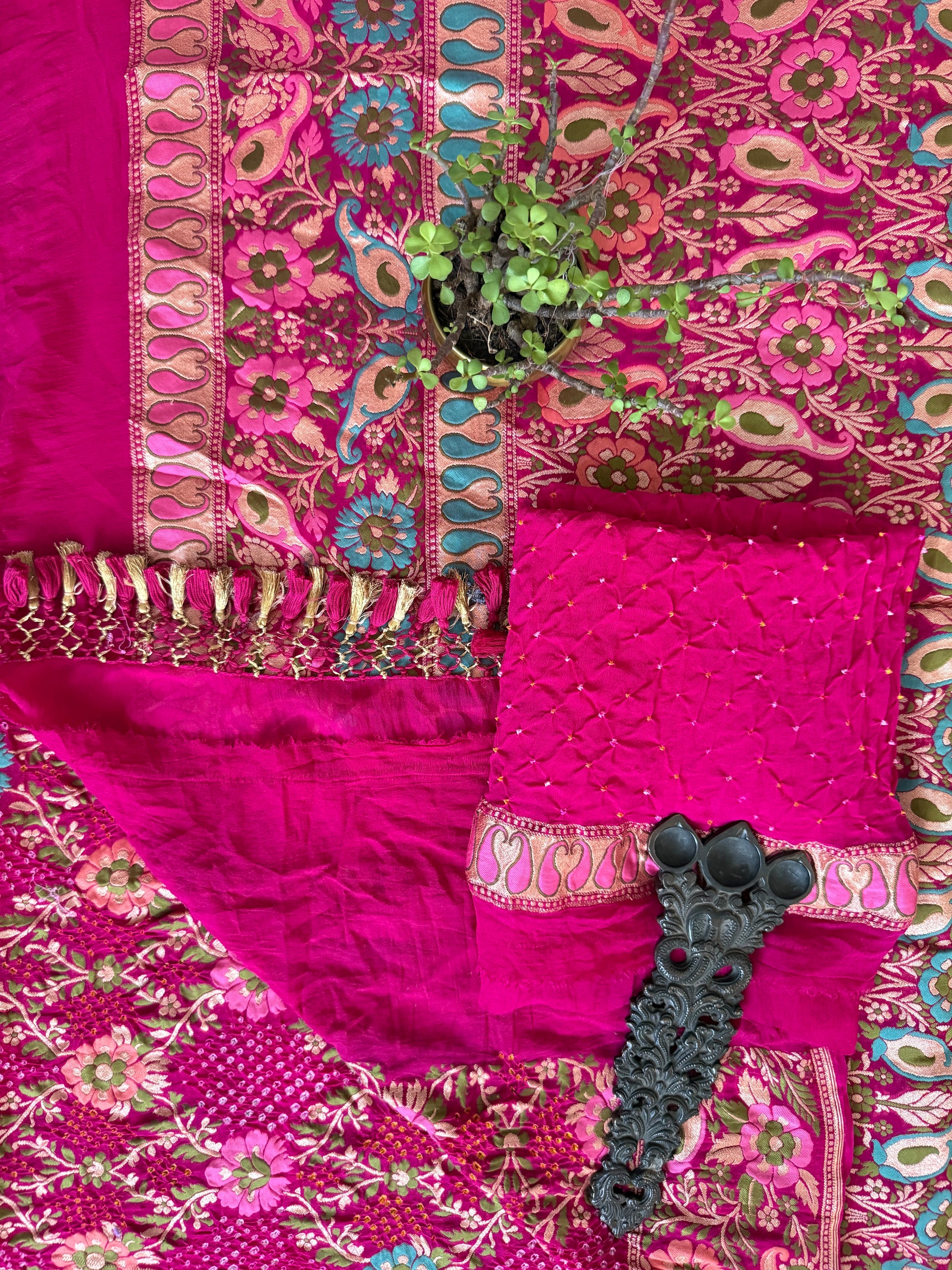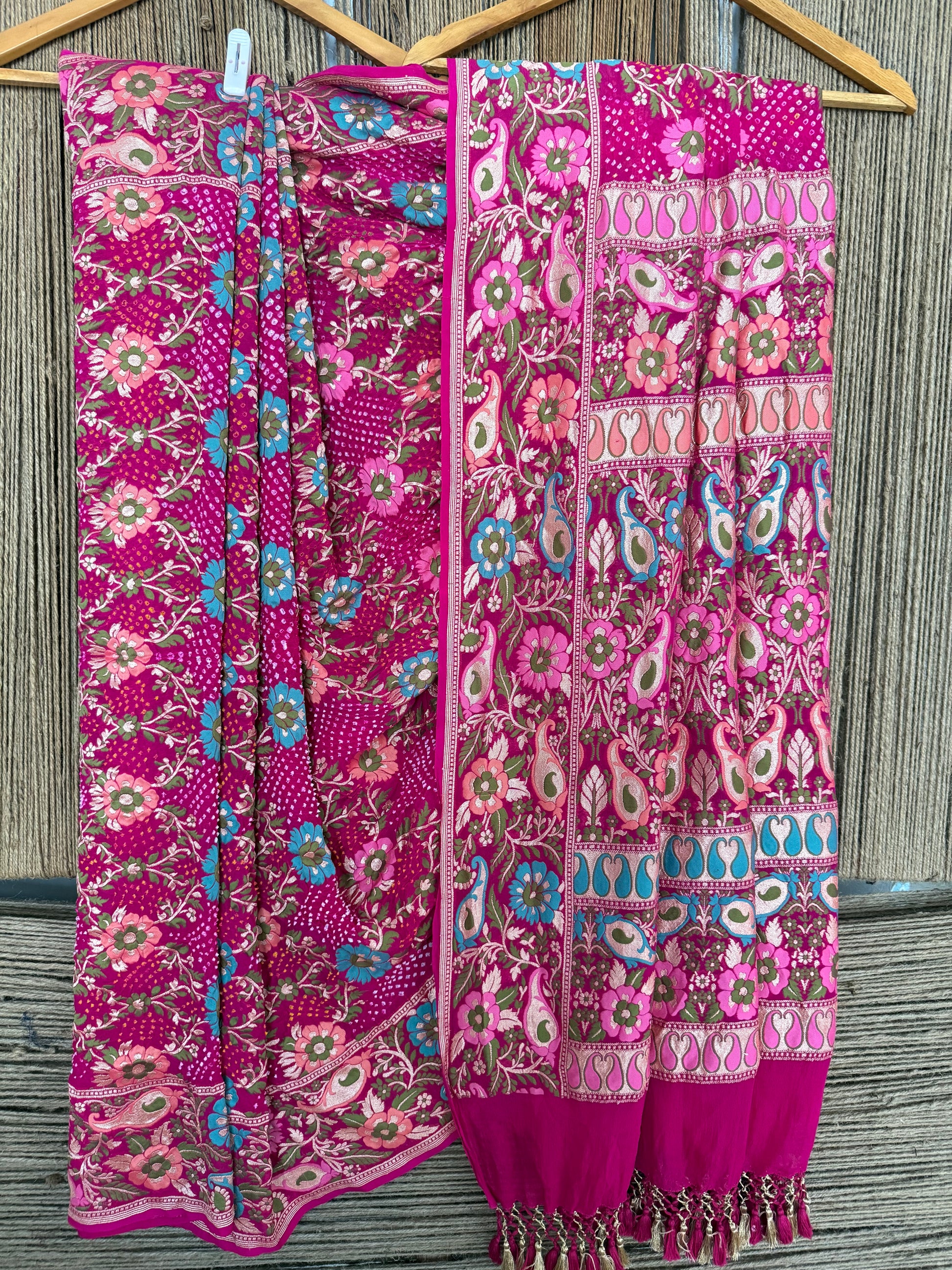 PINK Handwoven Rai Bareek Bandhani Saree Meenakari Jaal with Khaddi Georgette Mks-2