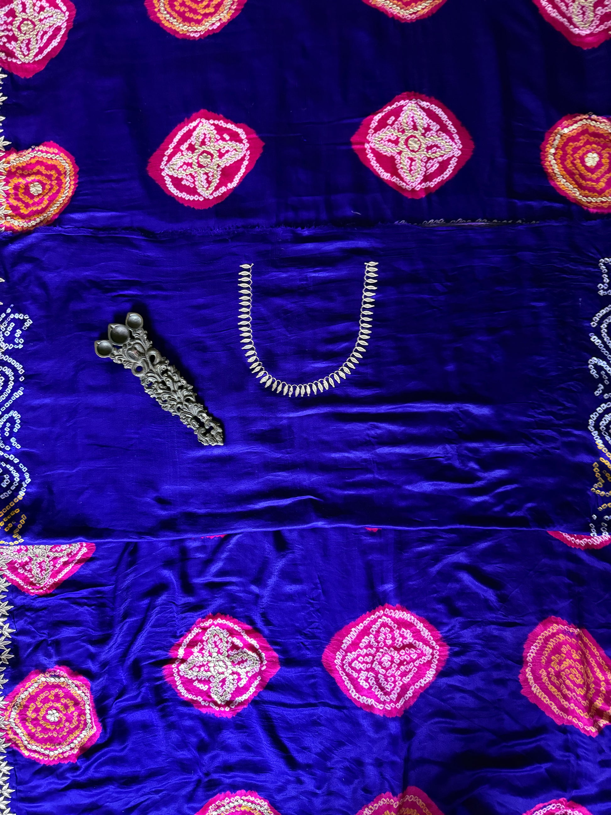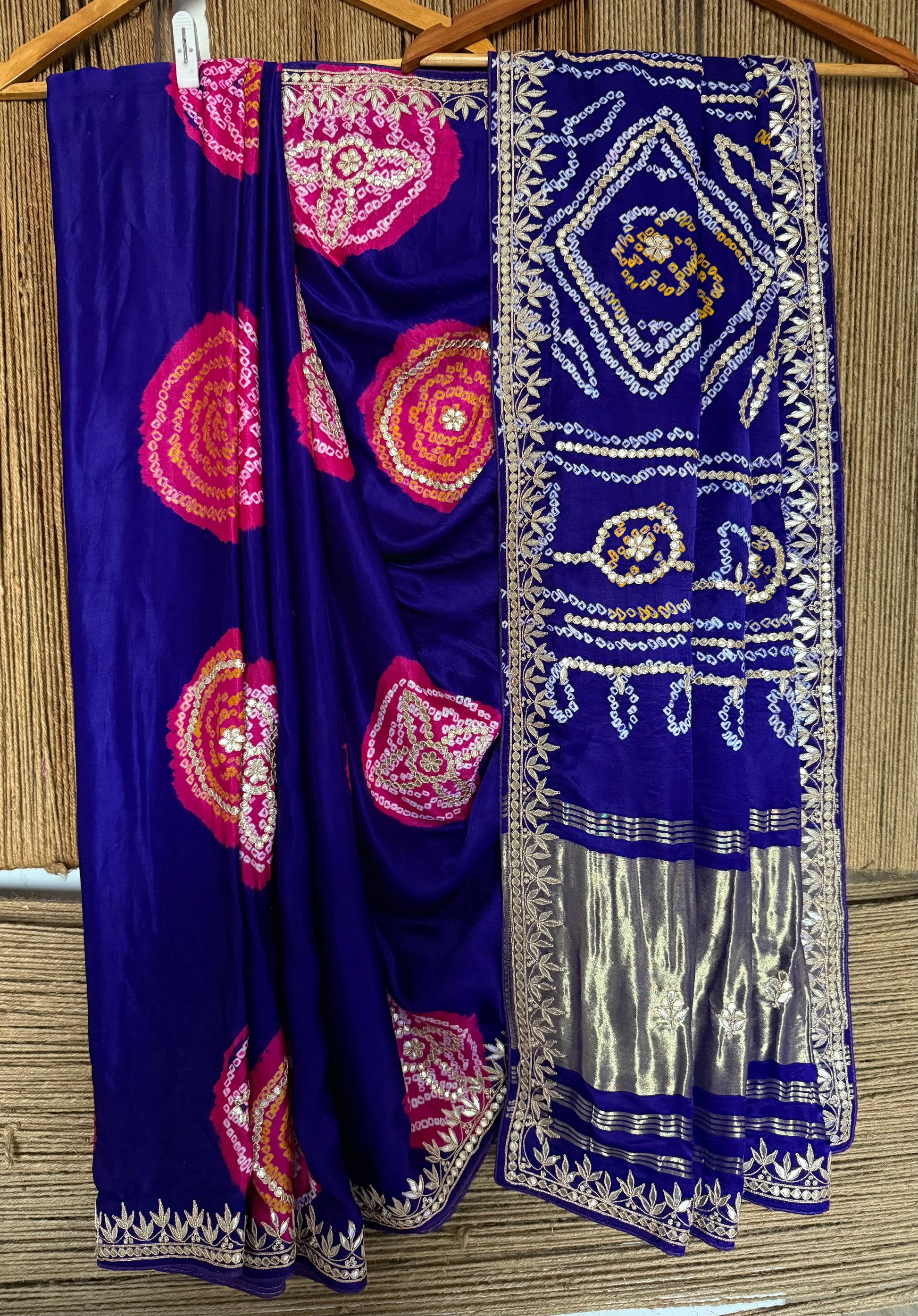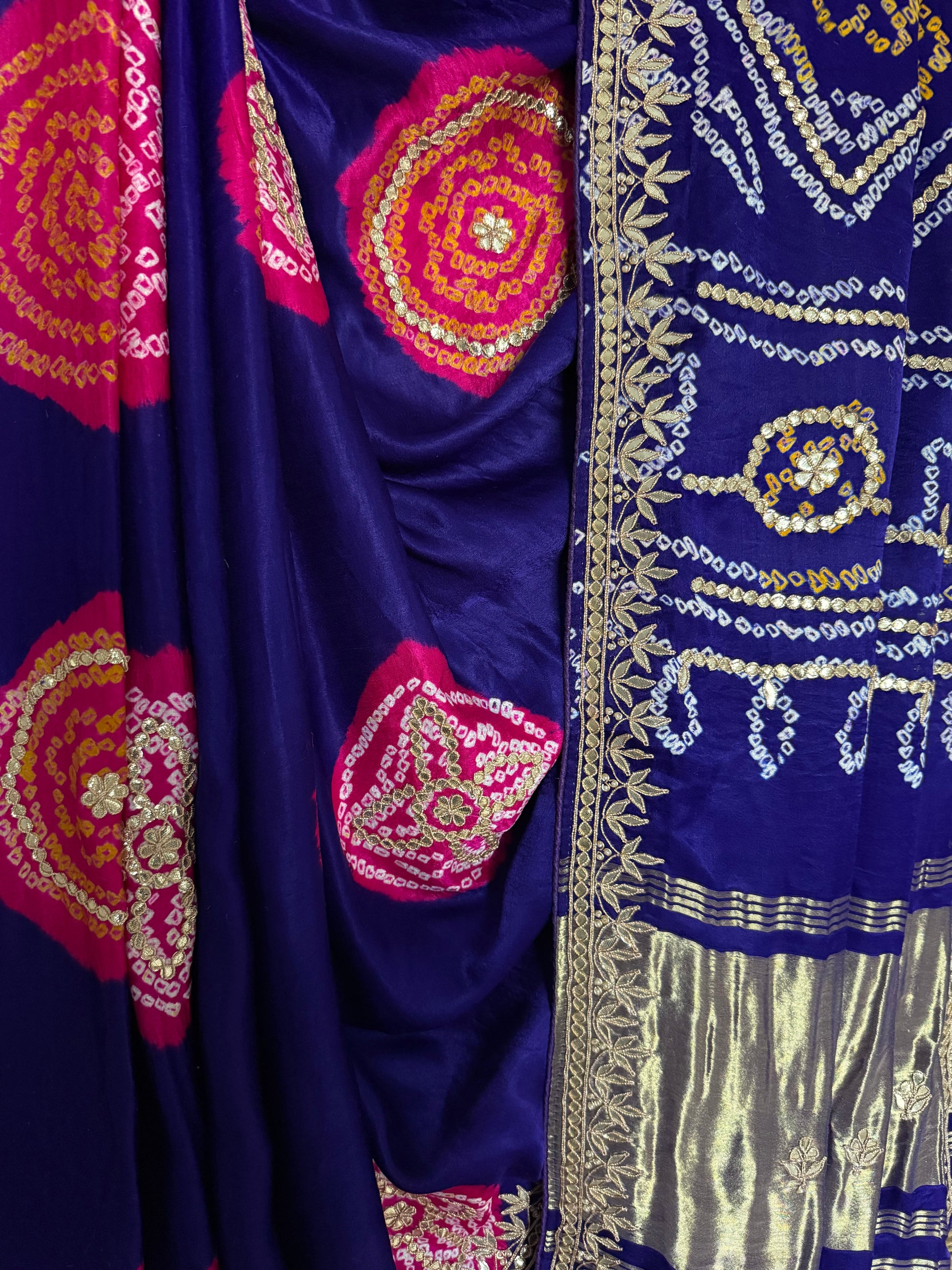 BLUE RAI BANDHANI CHAKRA THEME GAJJI SILK SARI WITH HANDEMBROIDERY GOTTA PATTI BS- 406