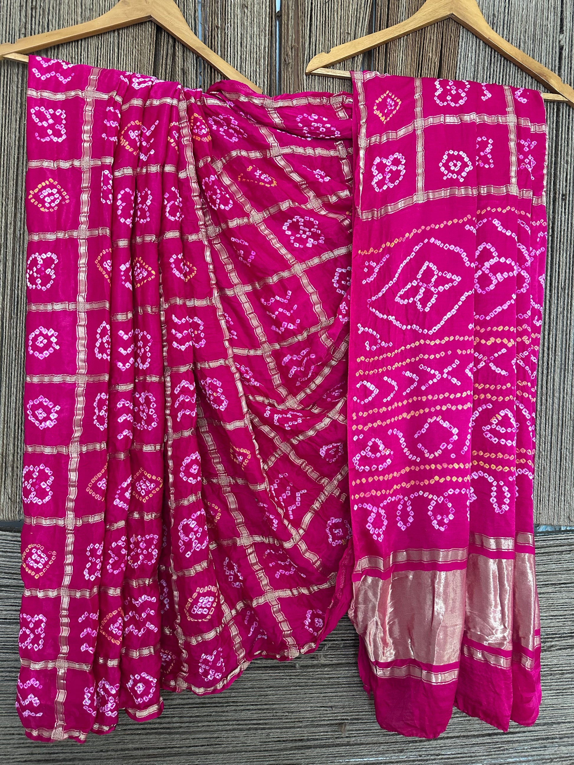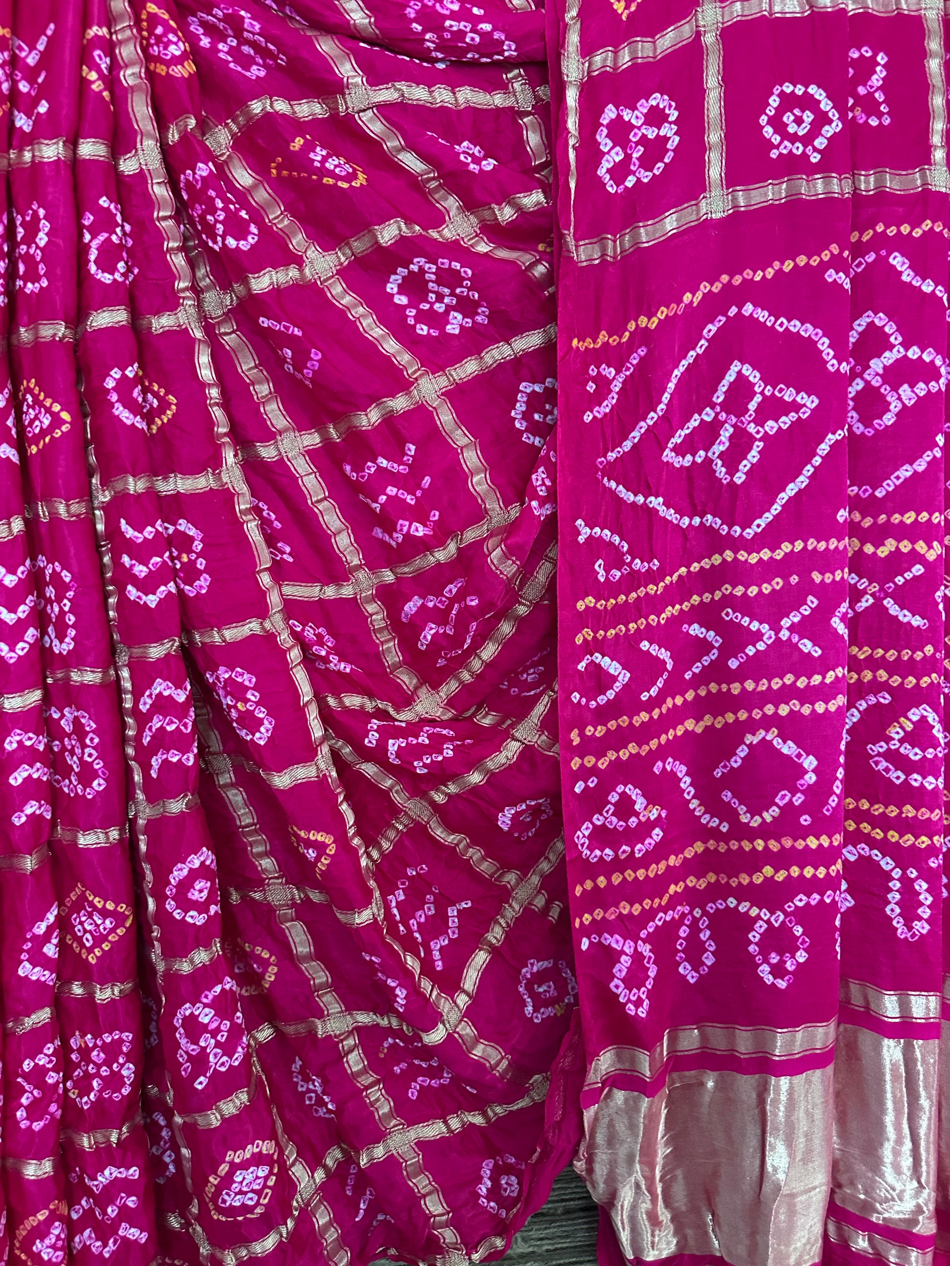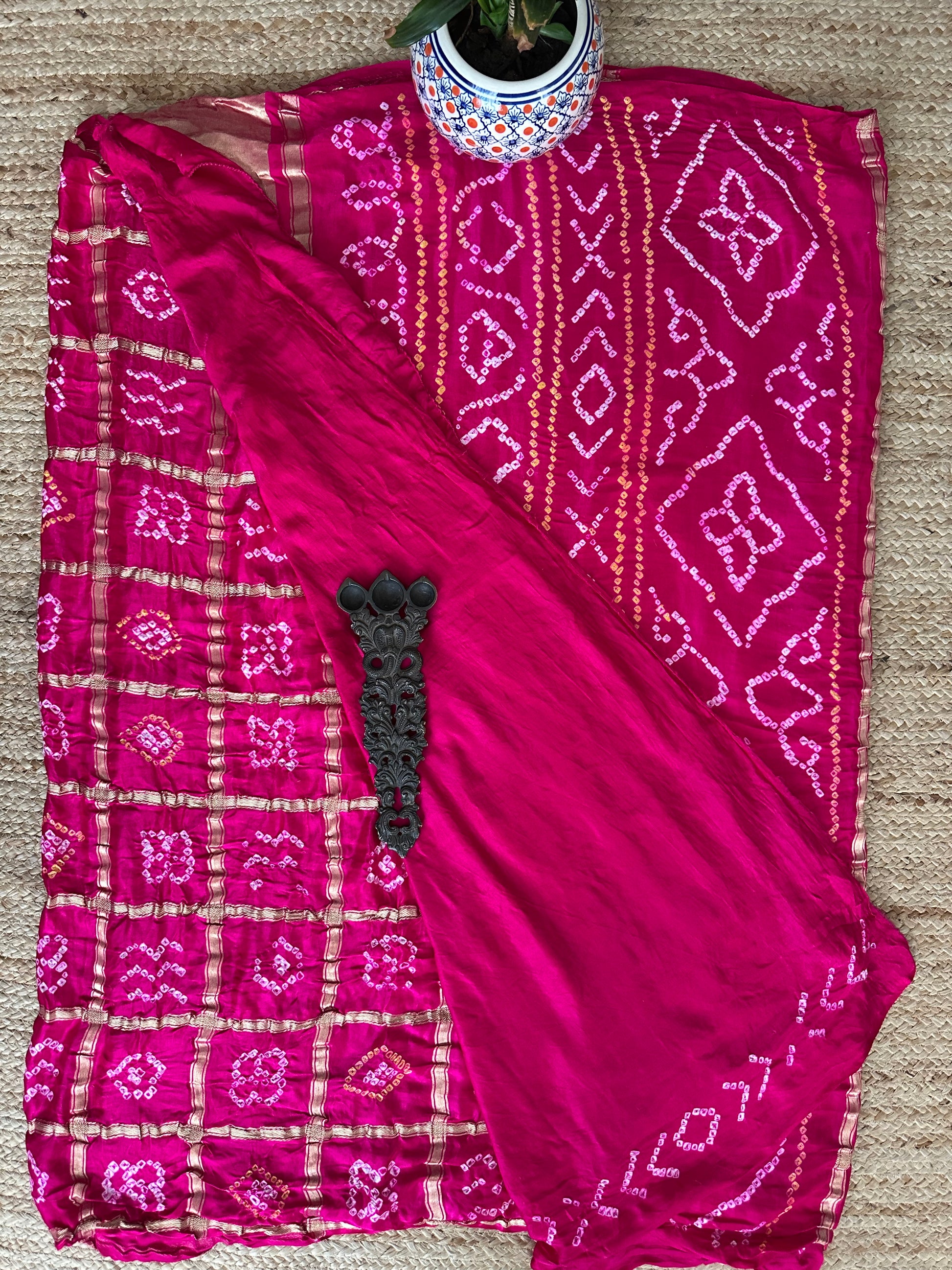 HOT PINK GAJJI SILK RAI BANDHANI GHARCHOLA SARI BS- 24