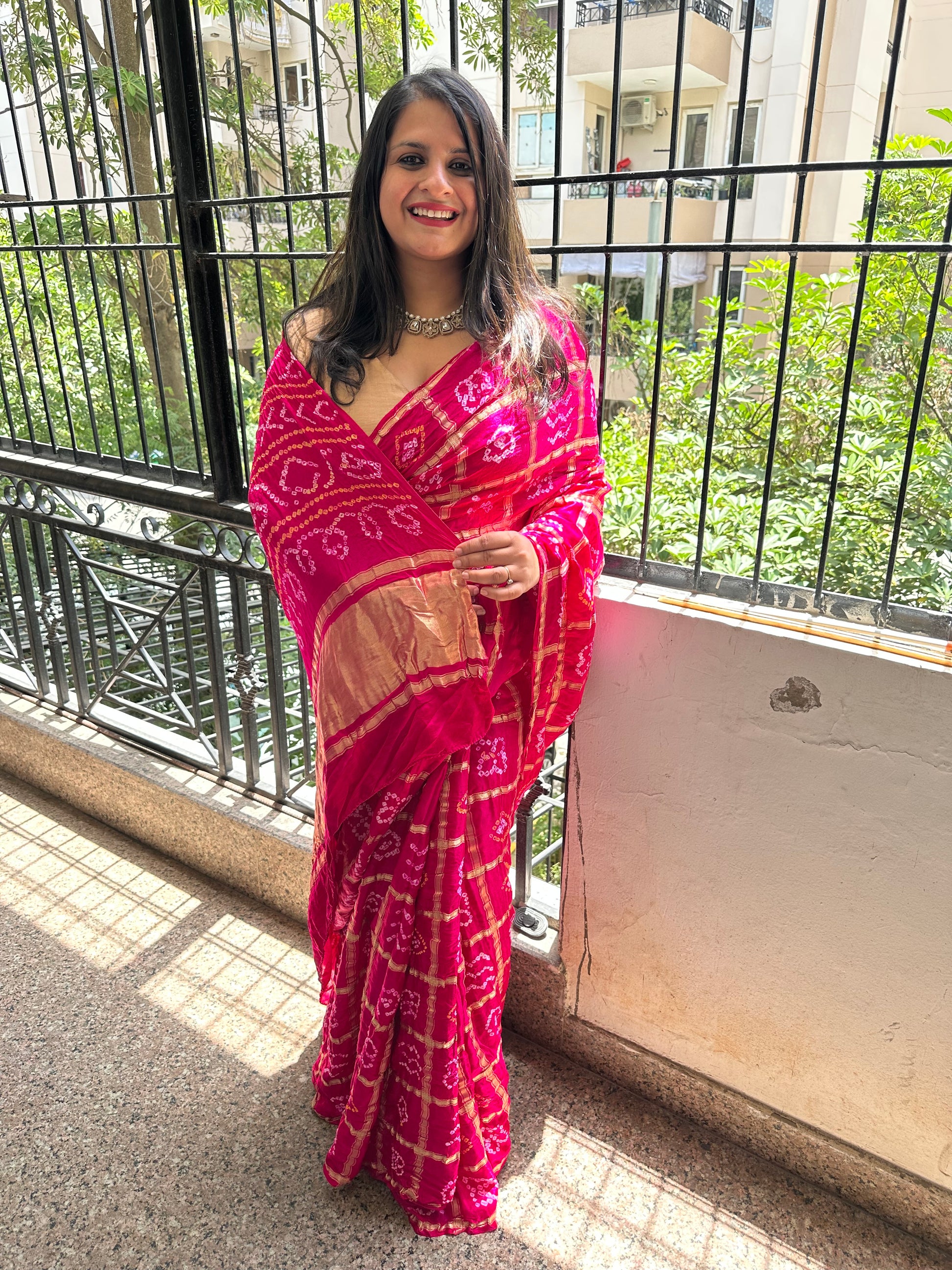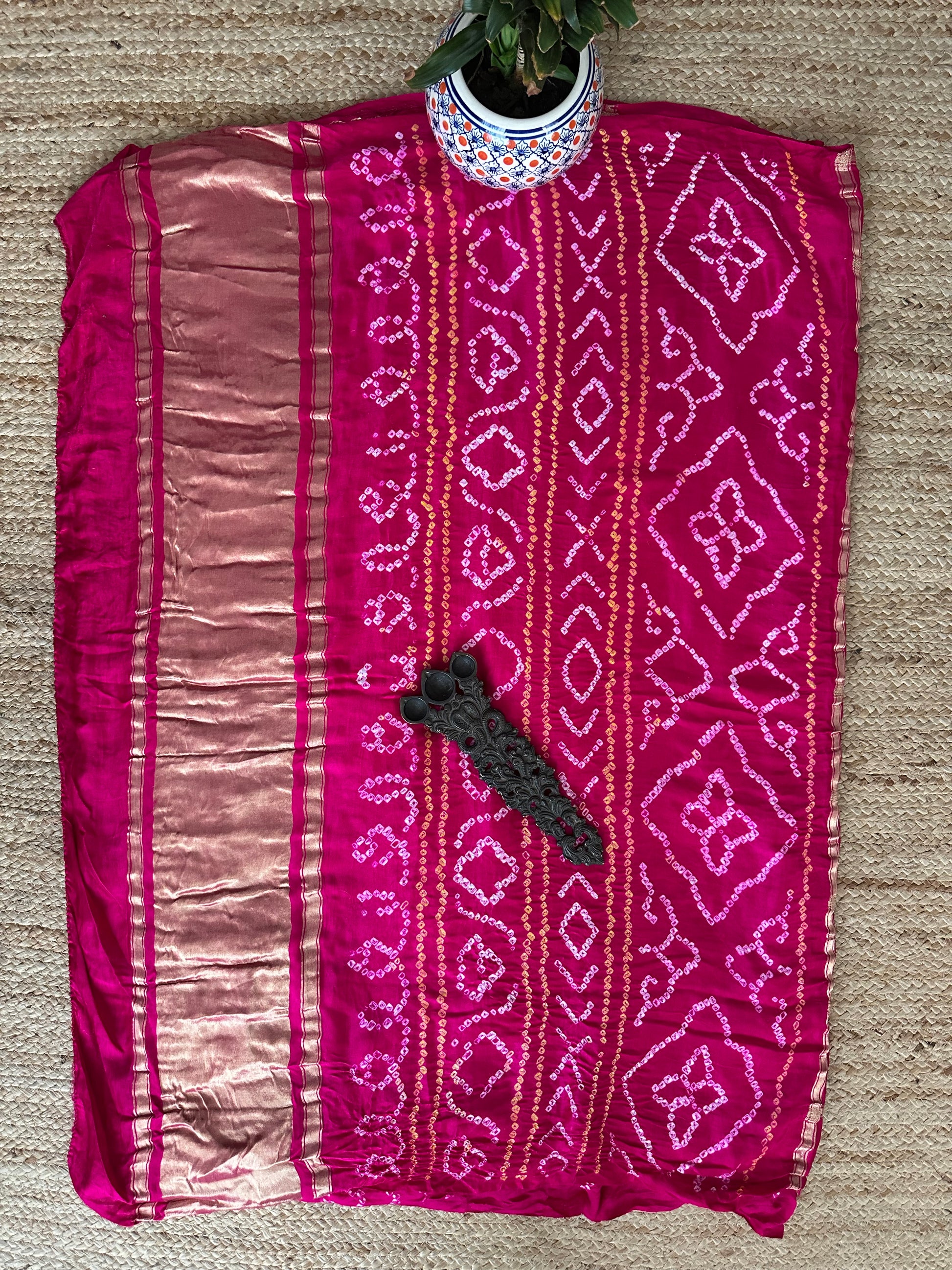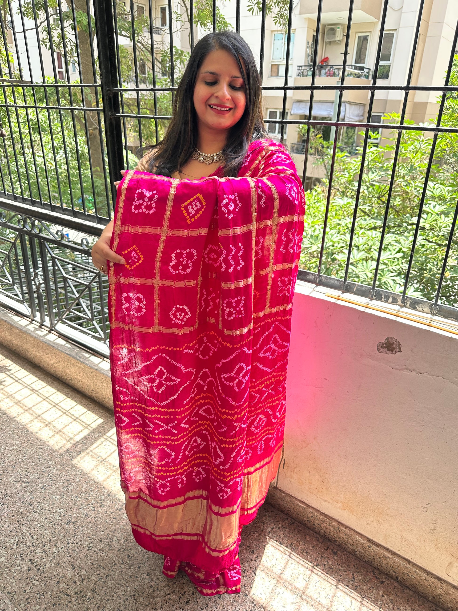 HOT PINK GAJJI SILK RAI BANDHANI GHARCHOLA SARI BS- 24
