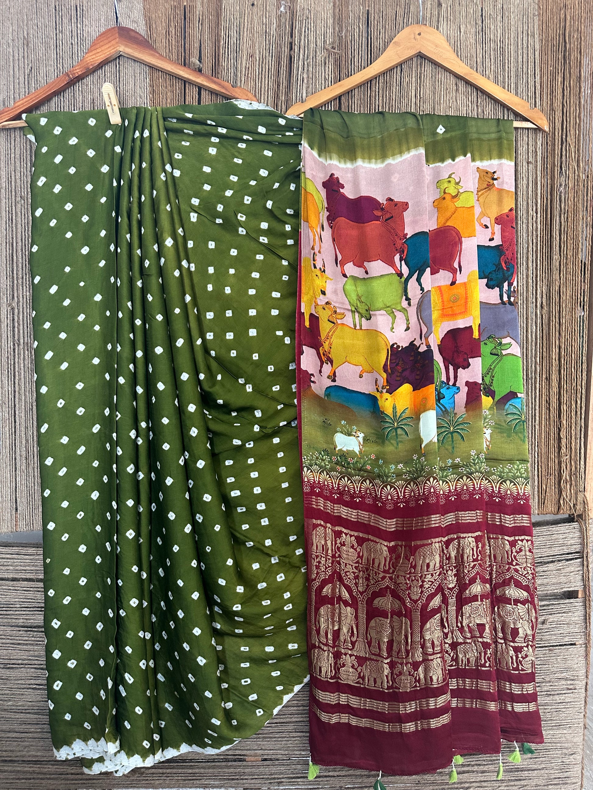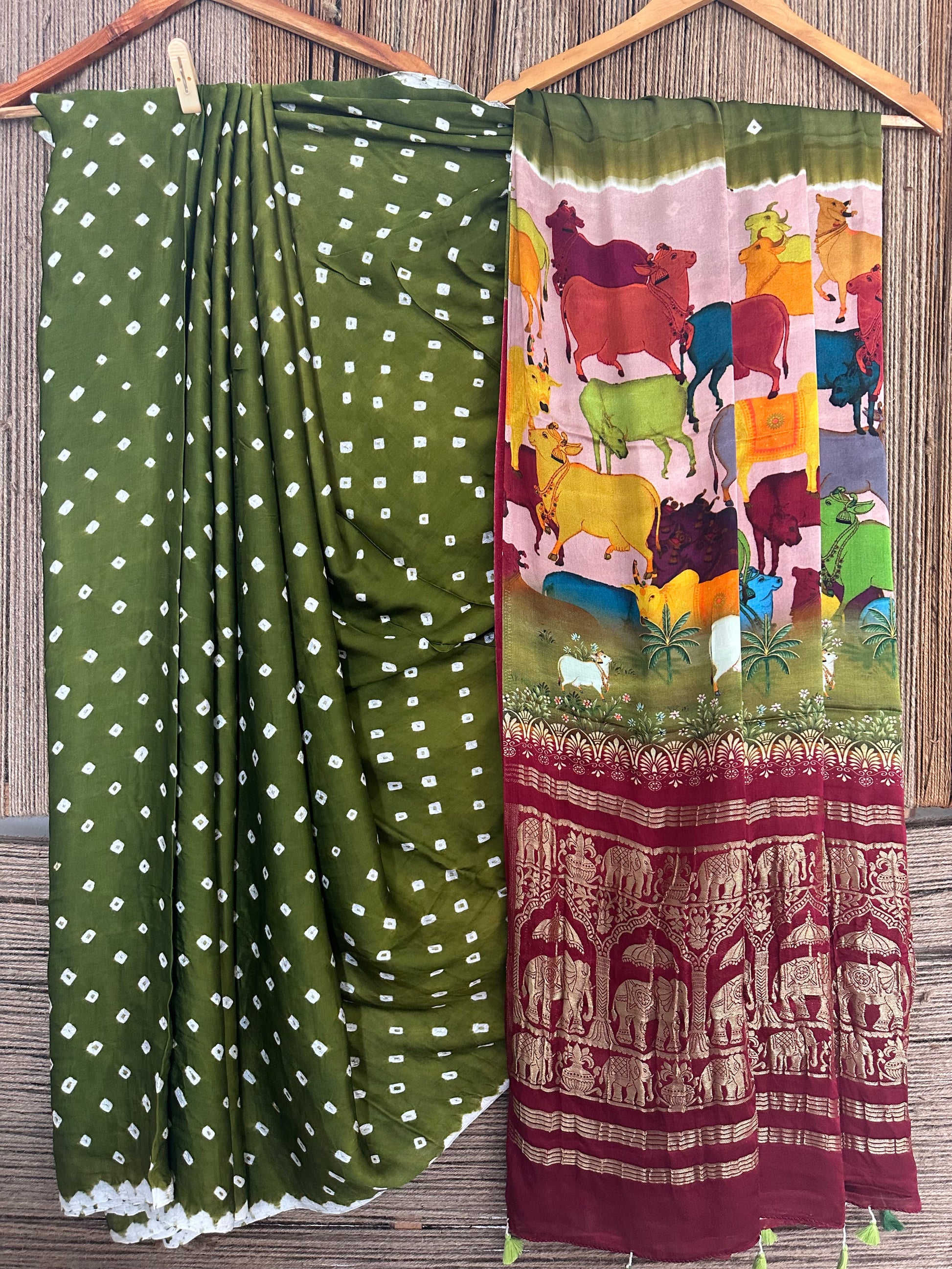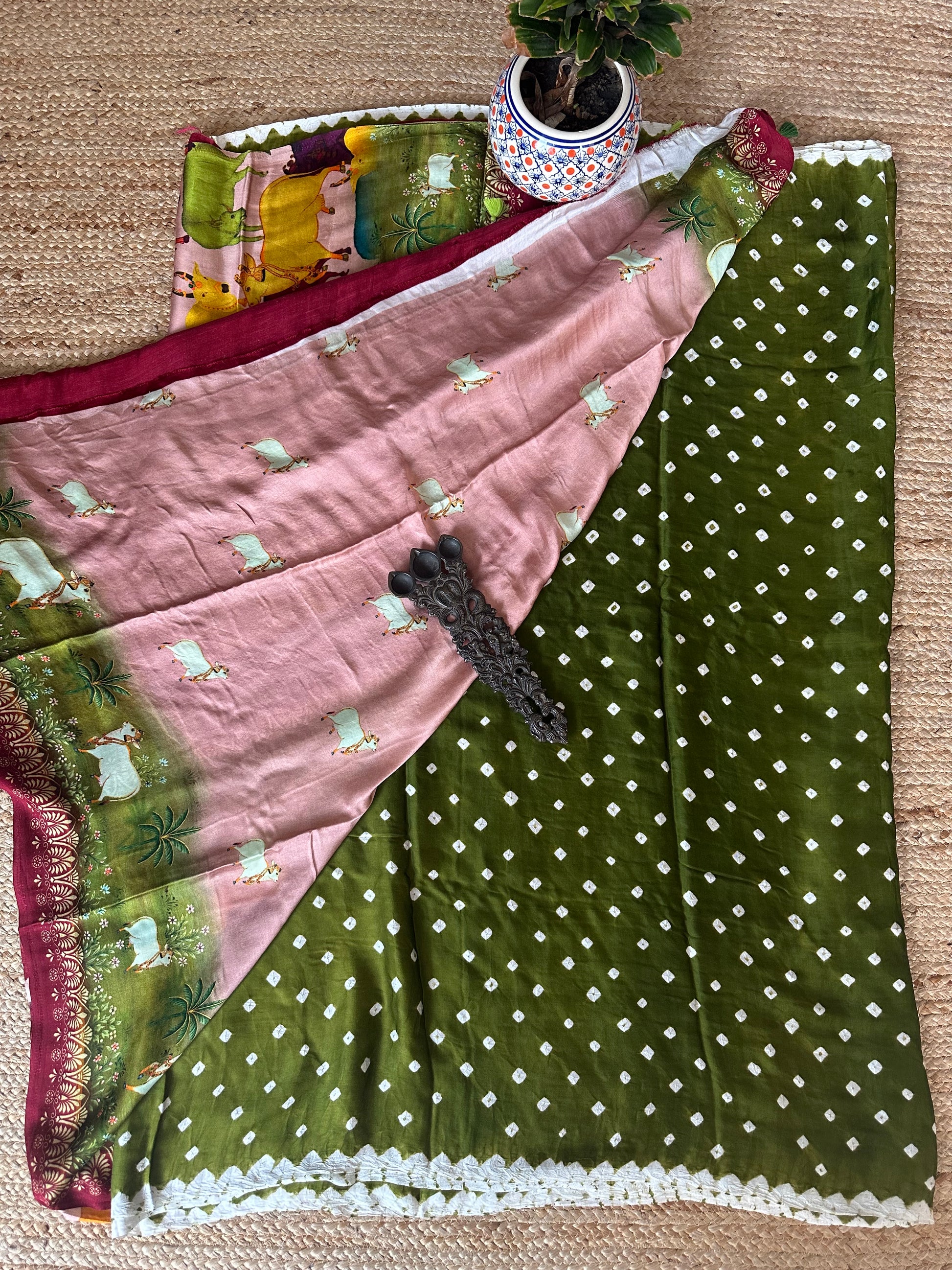 MEHENDI GREEN MODAL SILK BANDHANI SARI WITH PICHWAI PRINT BPS 29