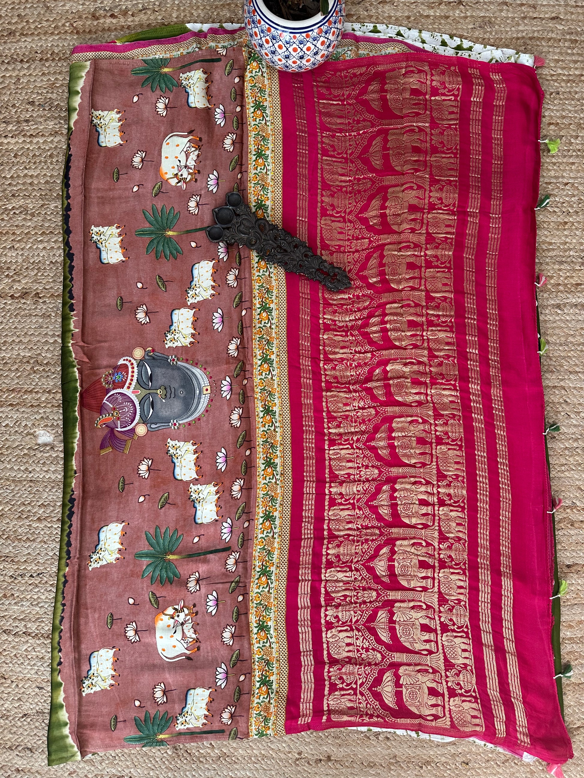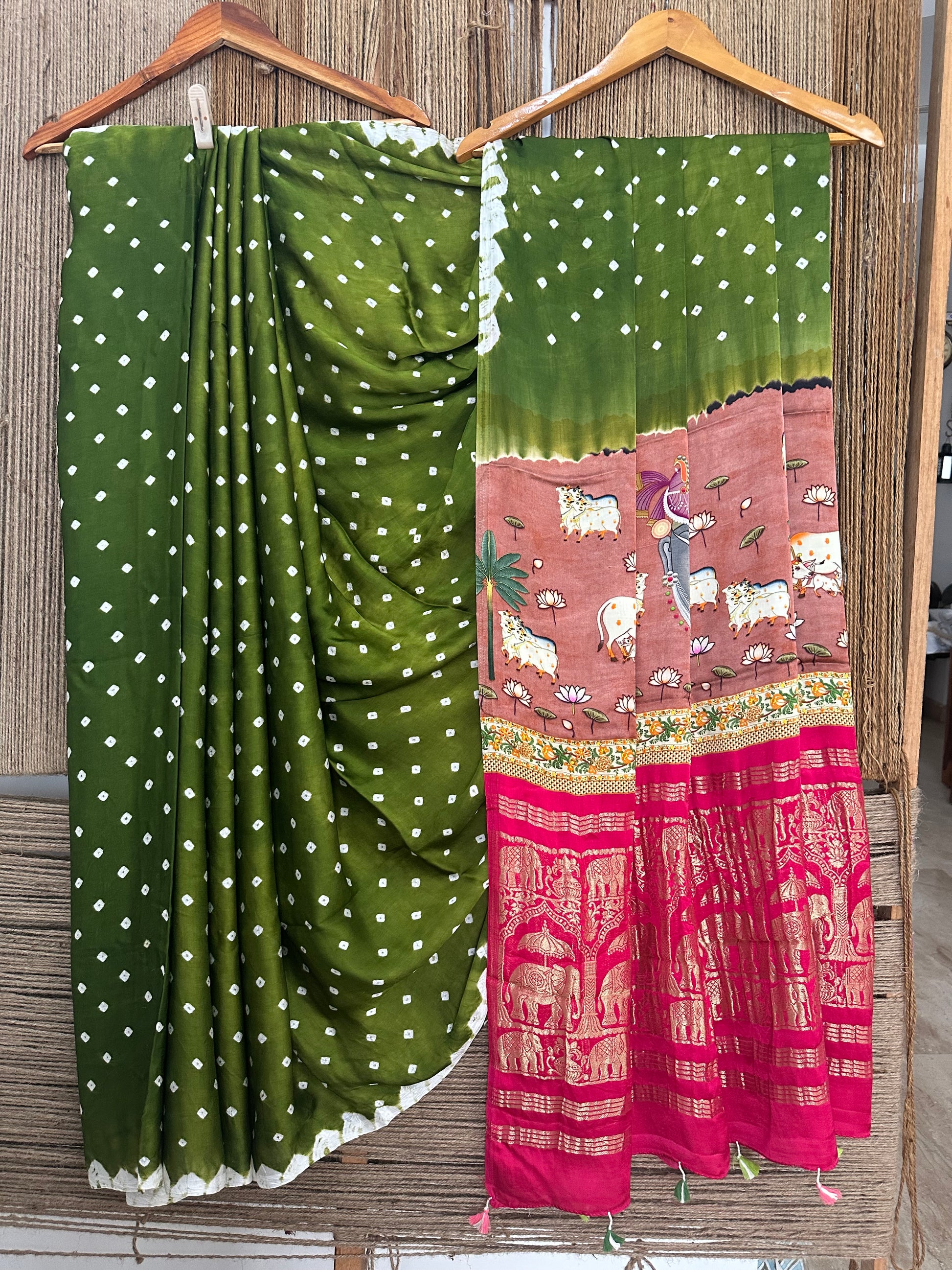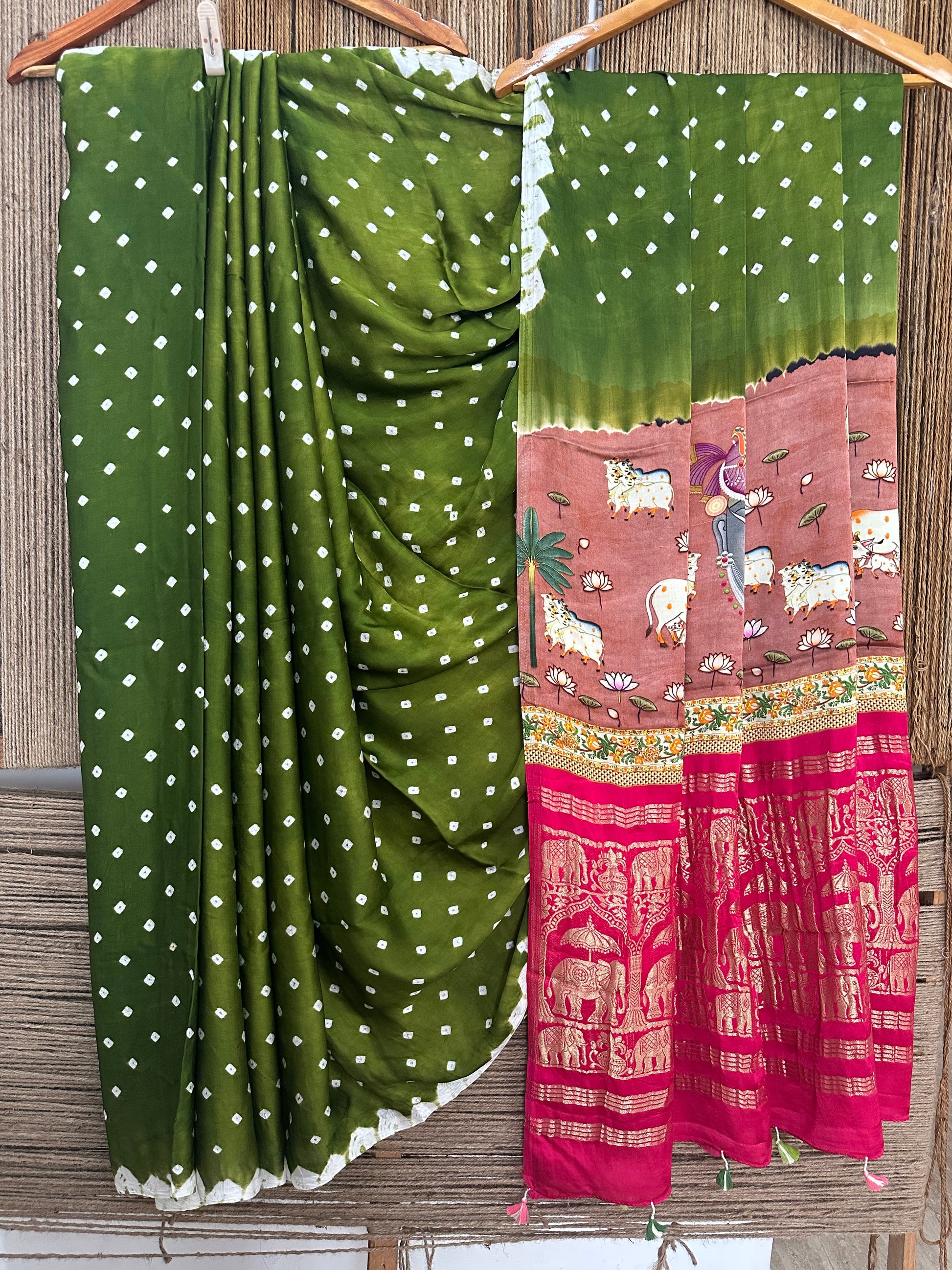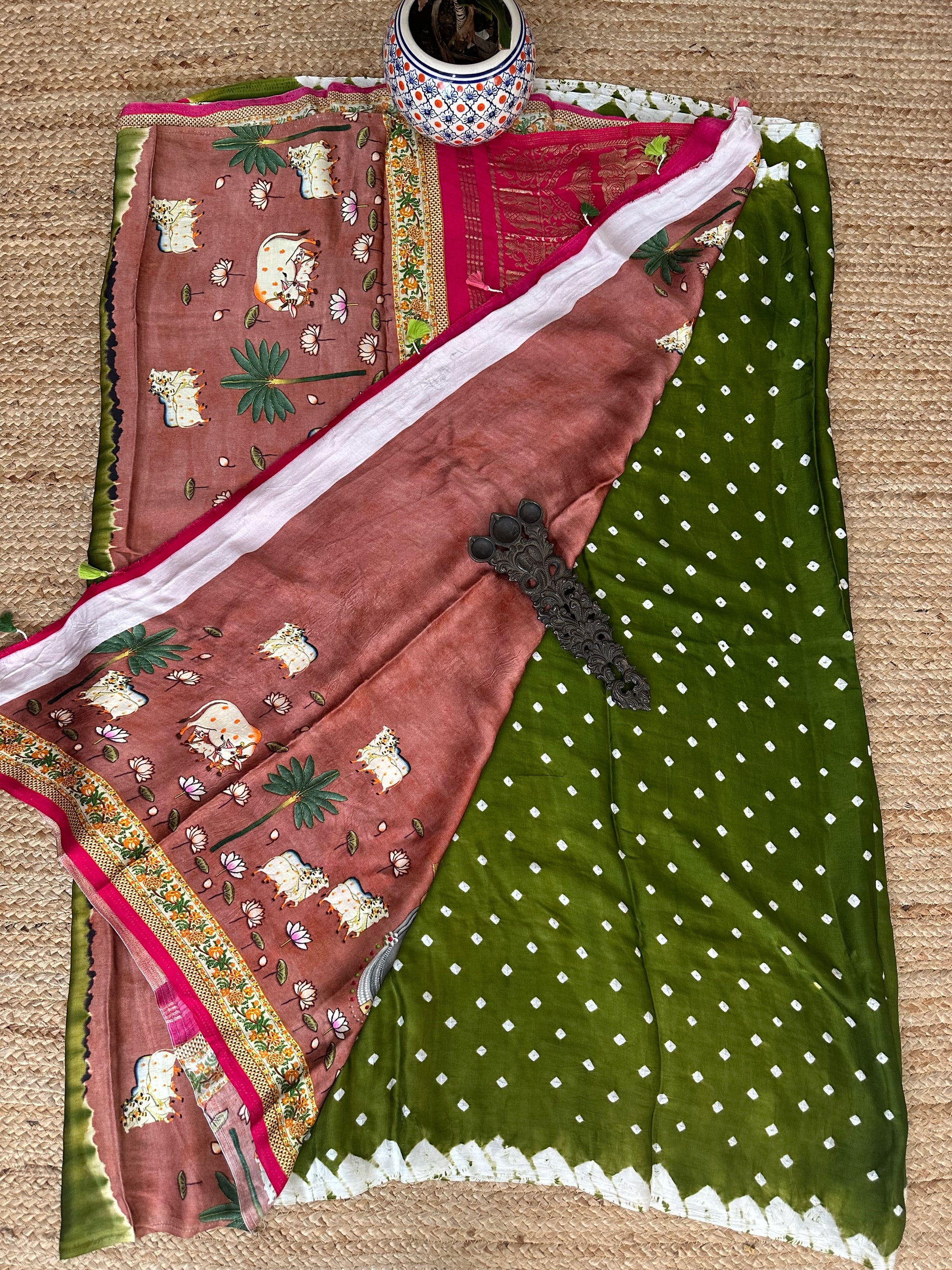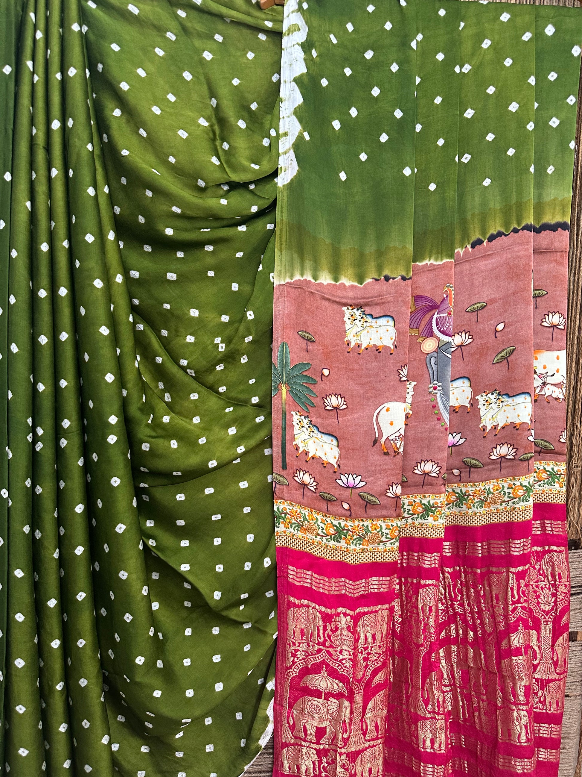 MEHENDI GREEN MODAL SILK BANDHANI SARI WITH PICHWAI PRINT BPS 20
