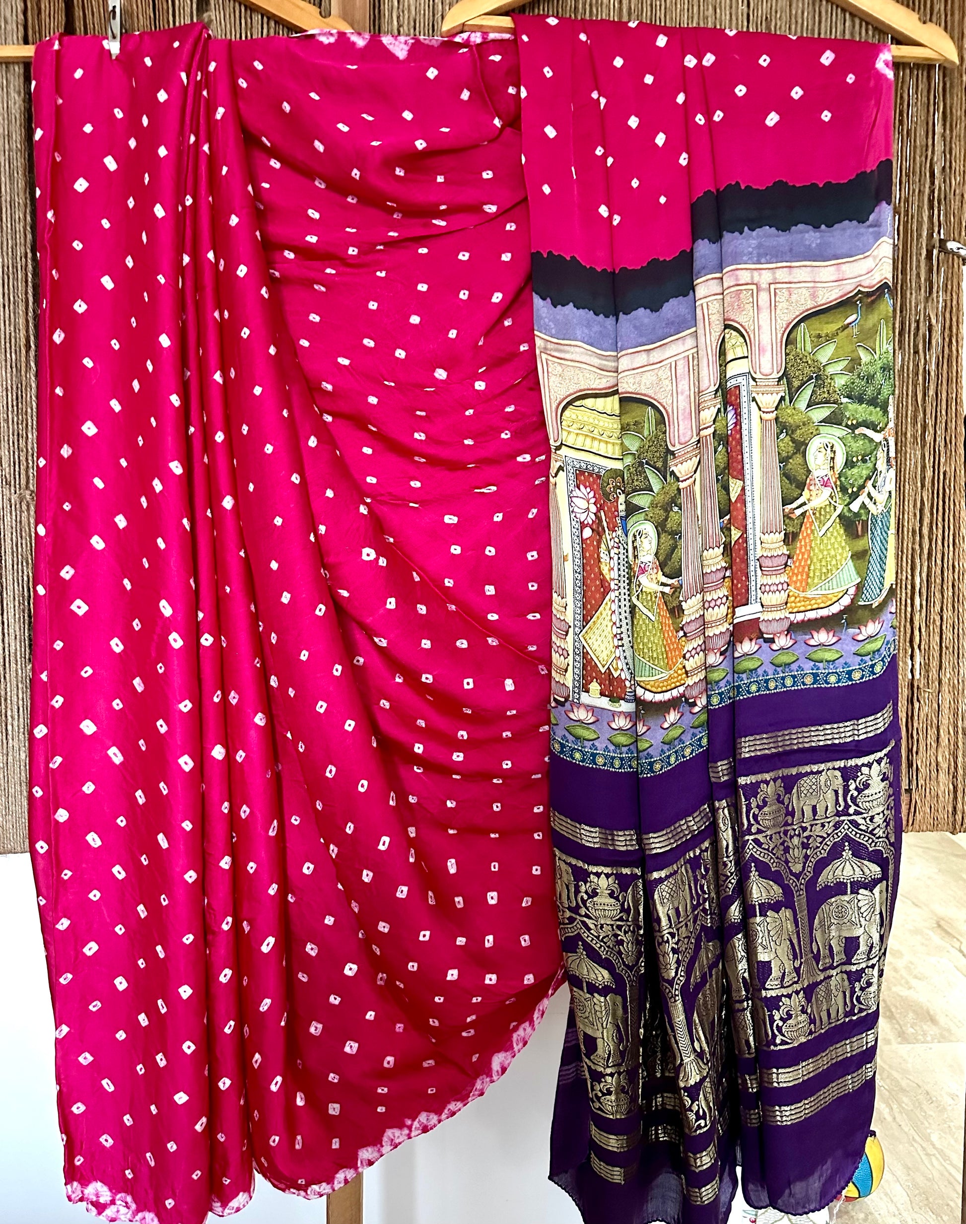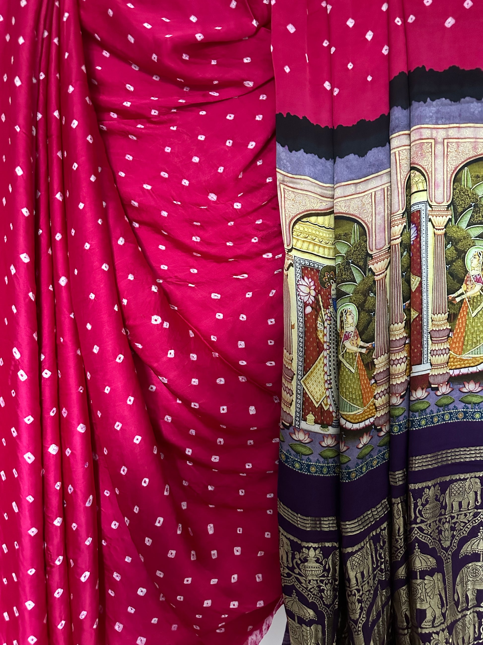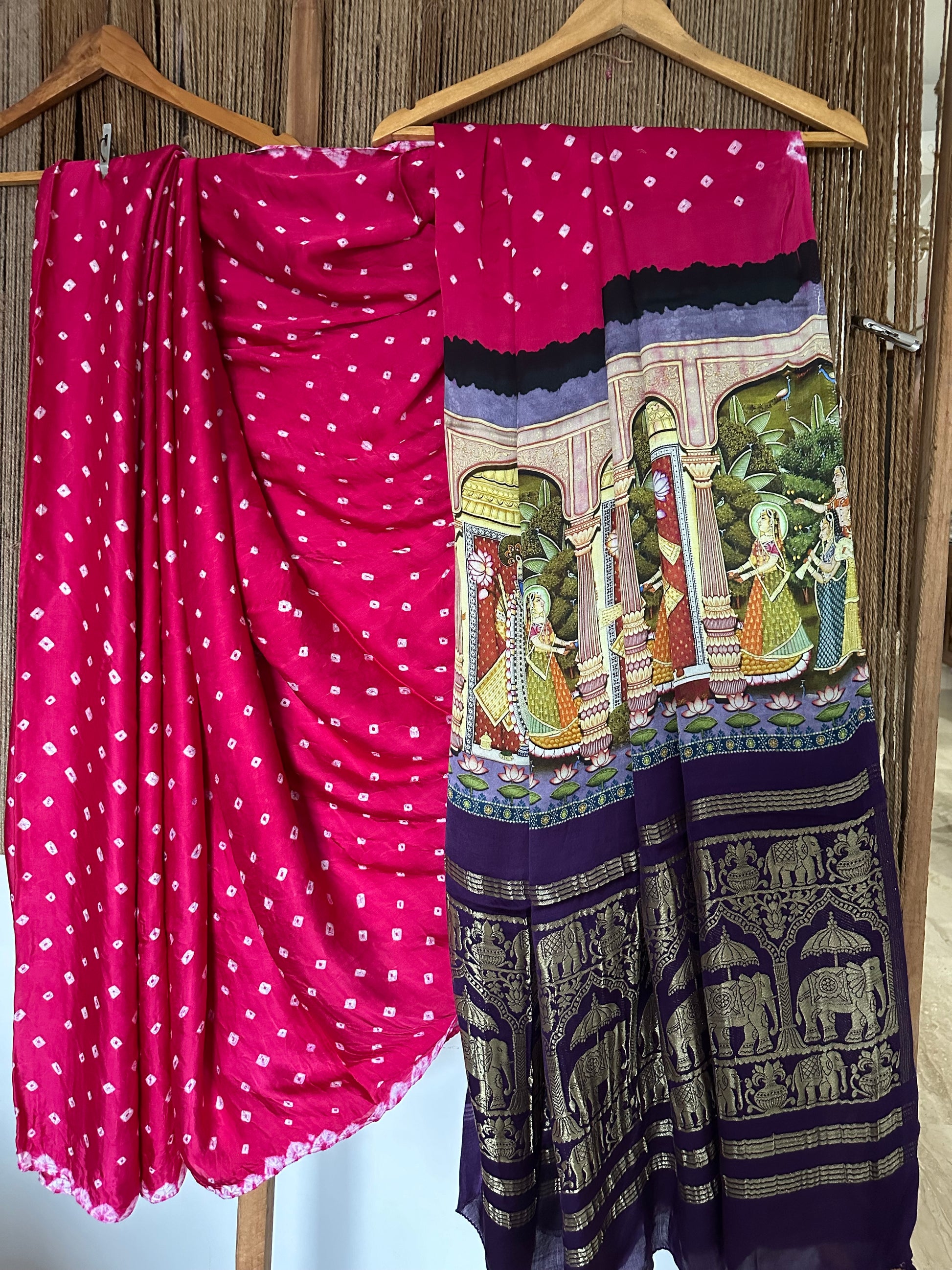 Pink Modal silkBandhani handcrafted with Pichwai Print Sari in Nakshi BORDER BPS 9