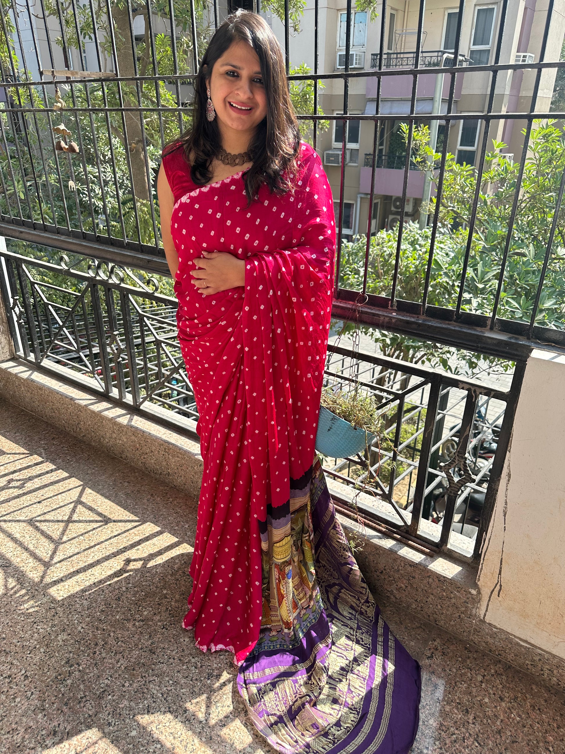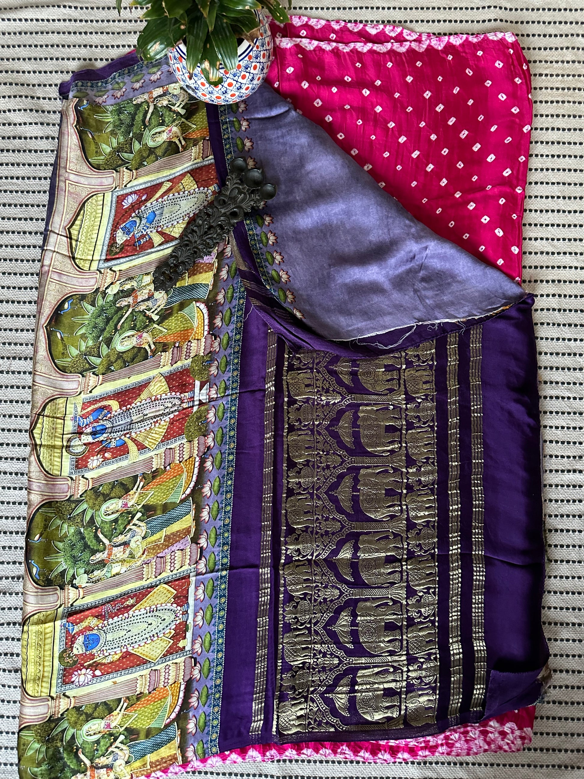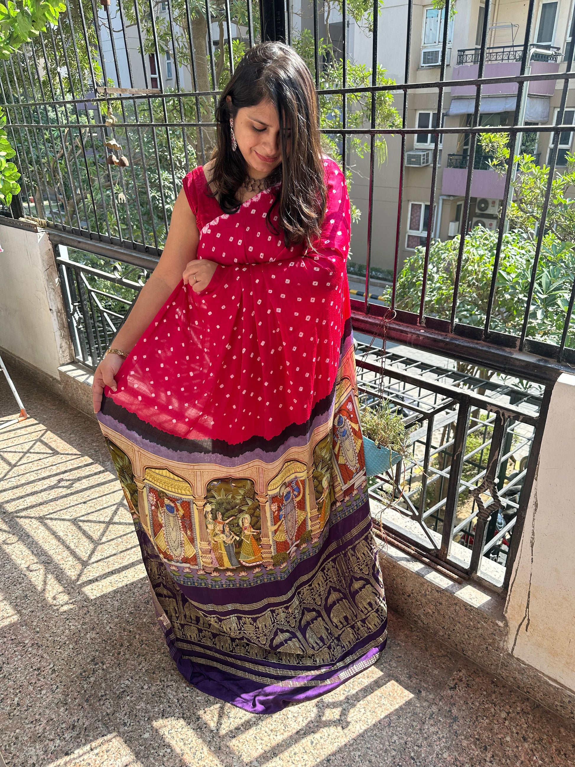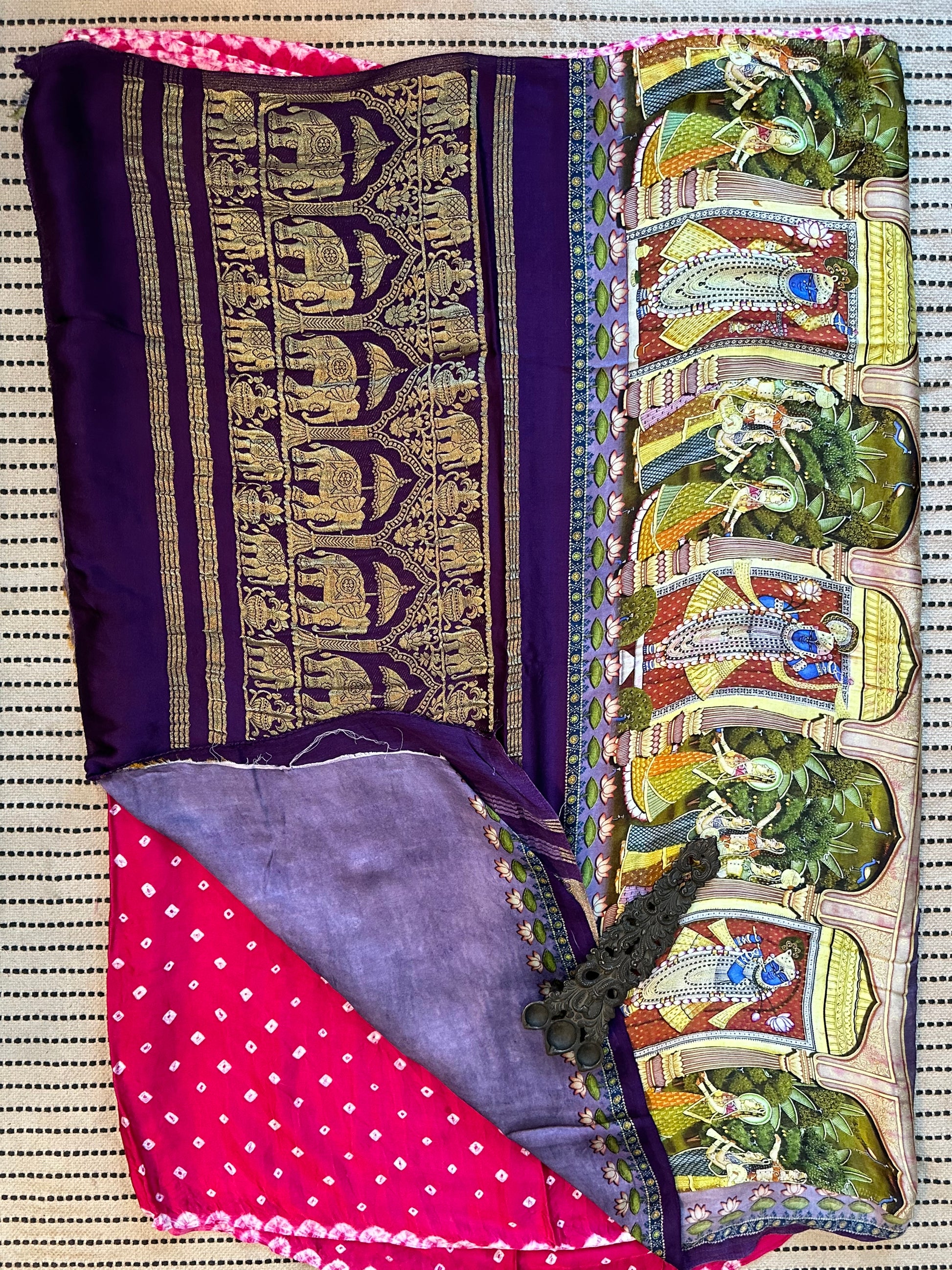 Pink Modal silkBandhani handcrafted with Pichwai Print Sari in Nakshi BORDER BPS 9