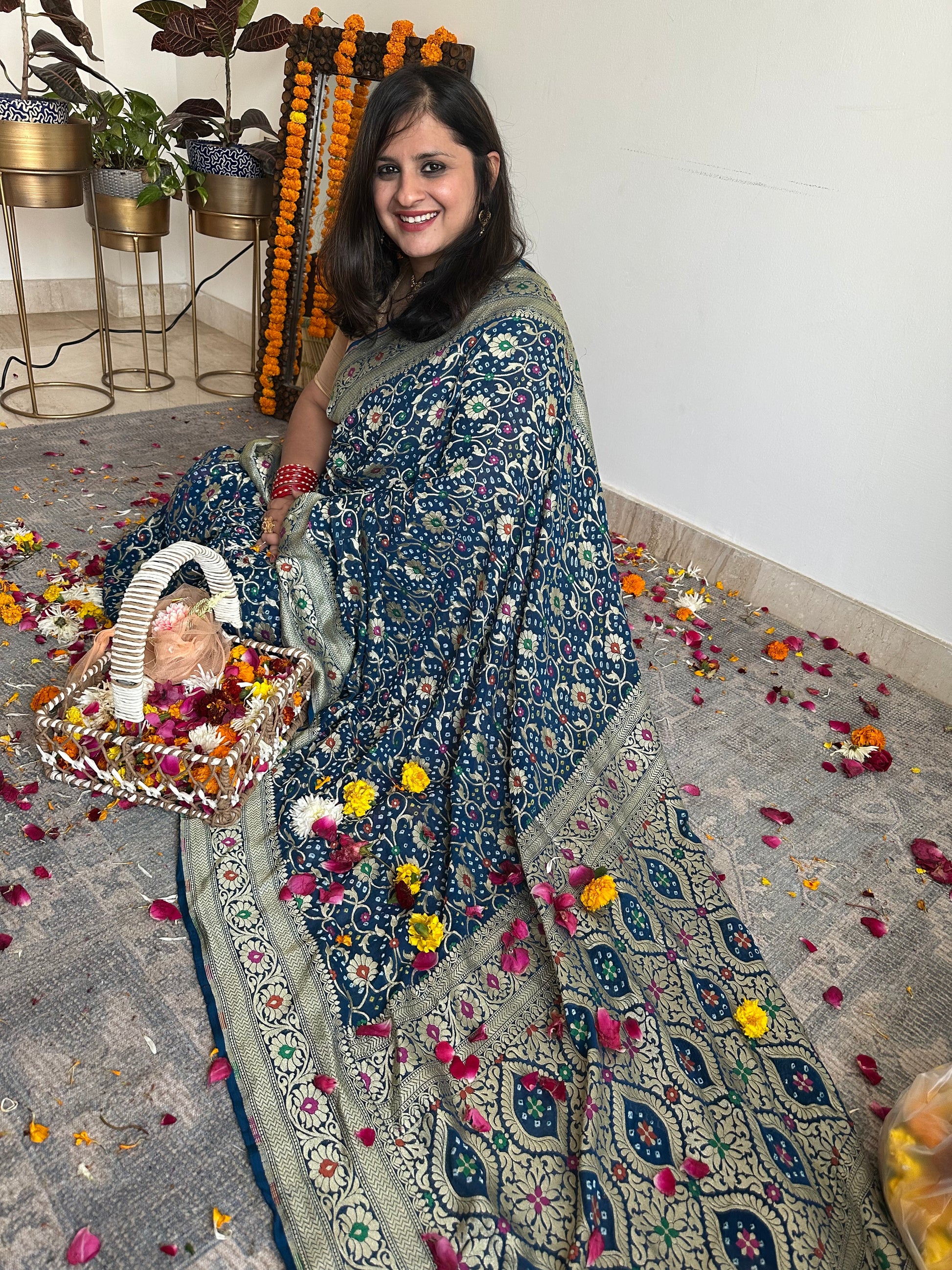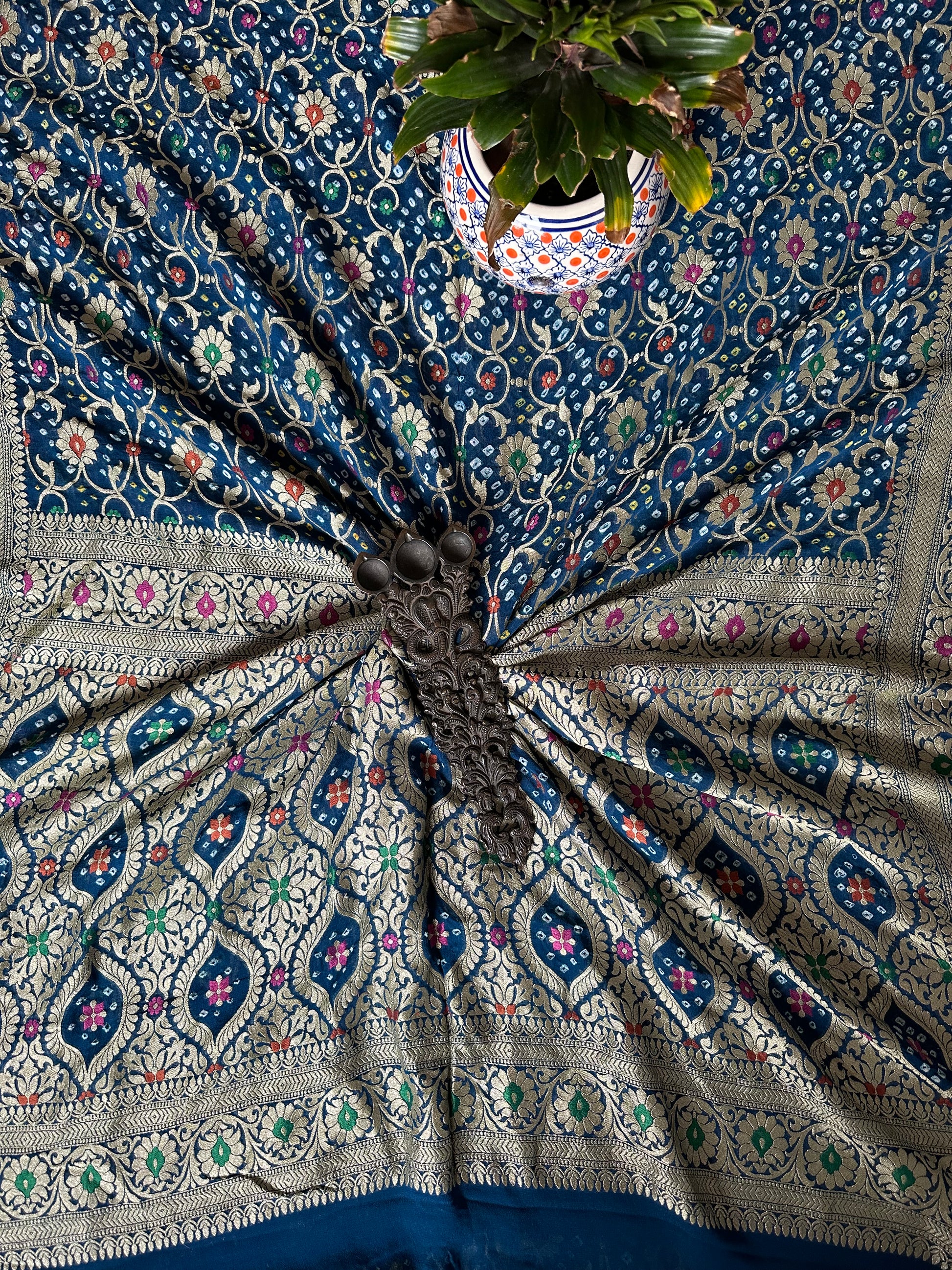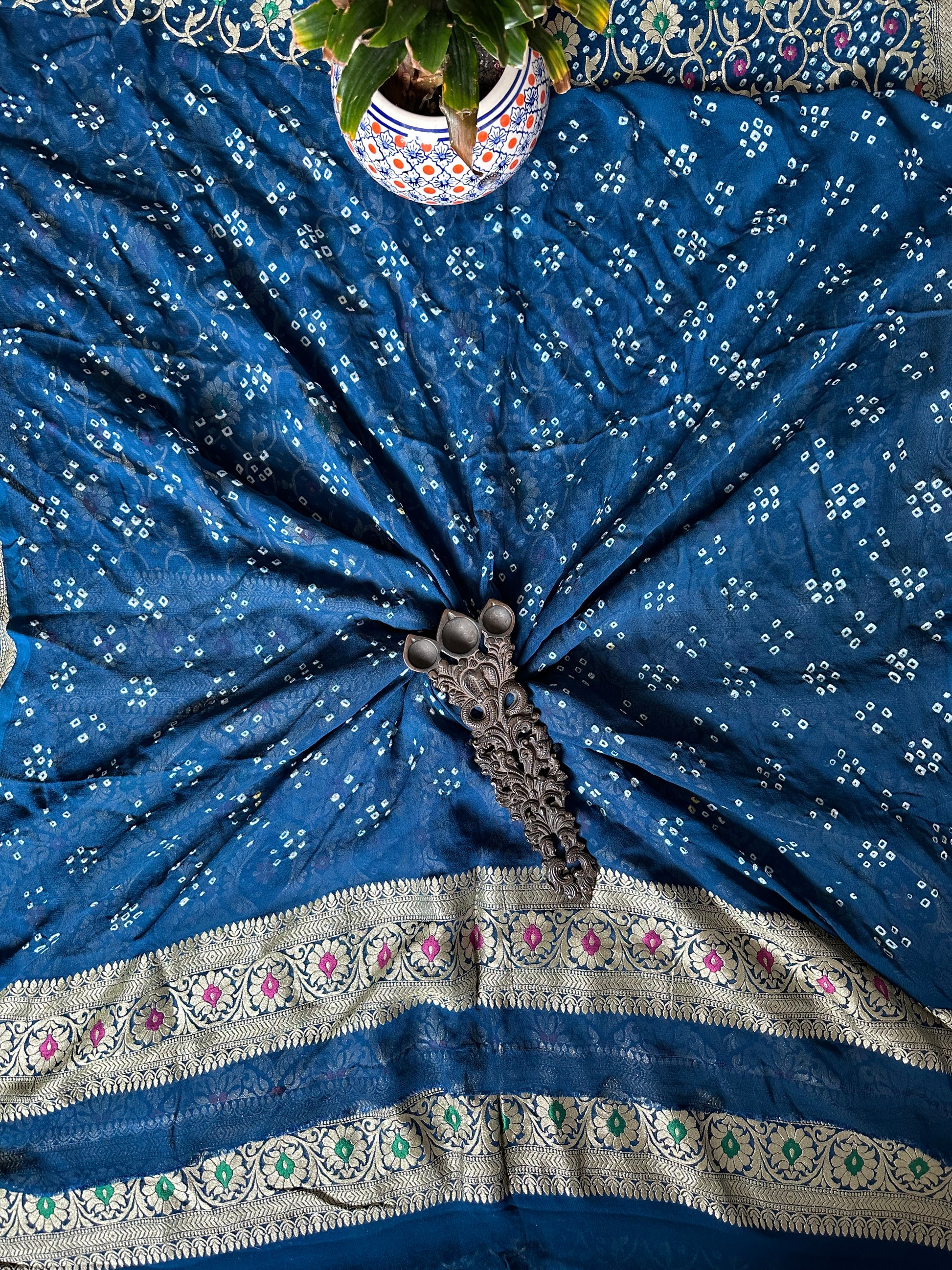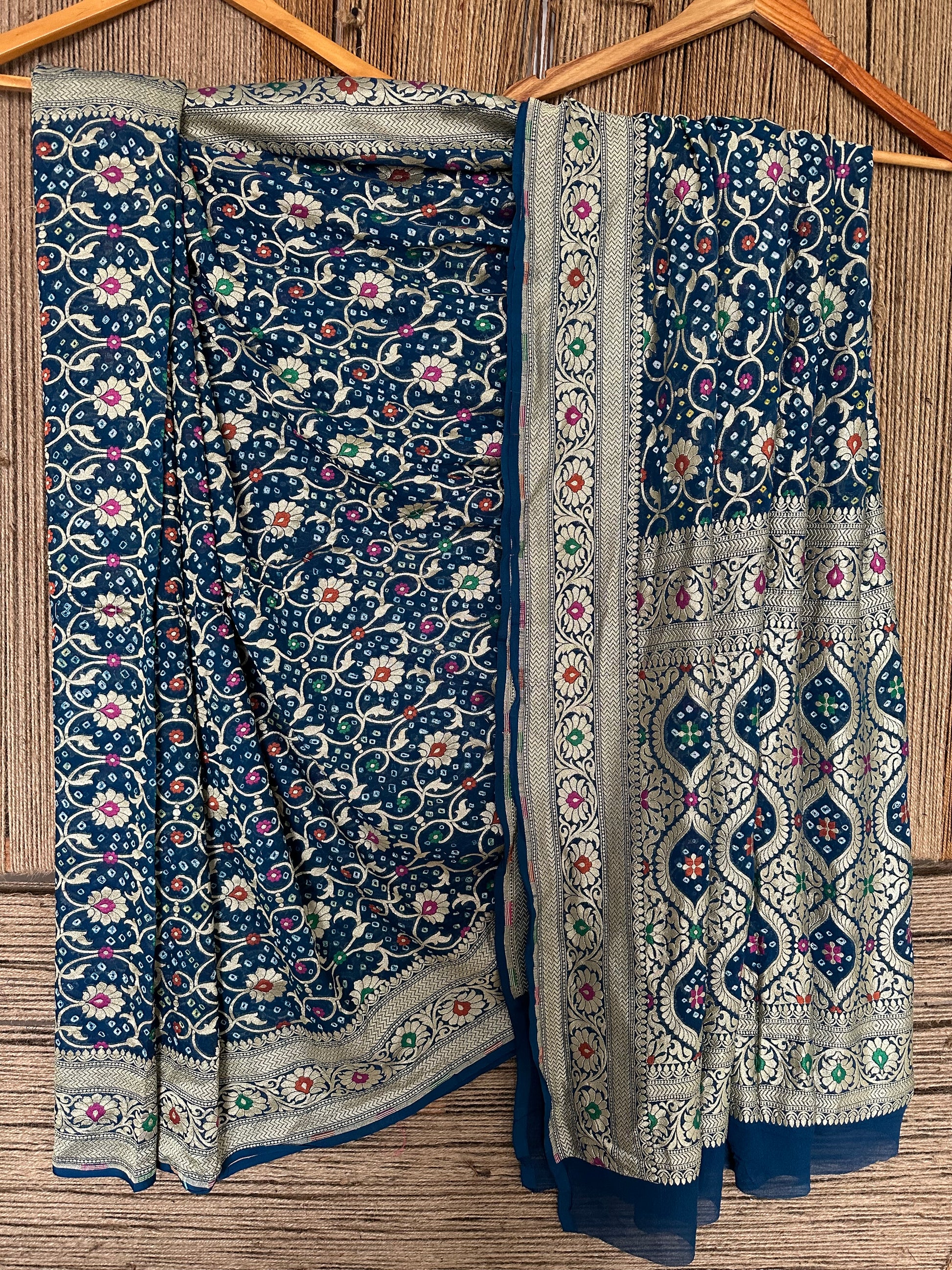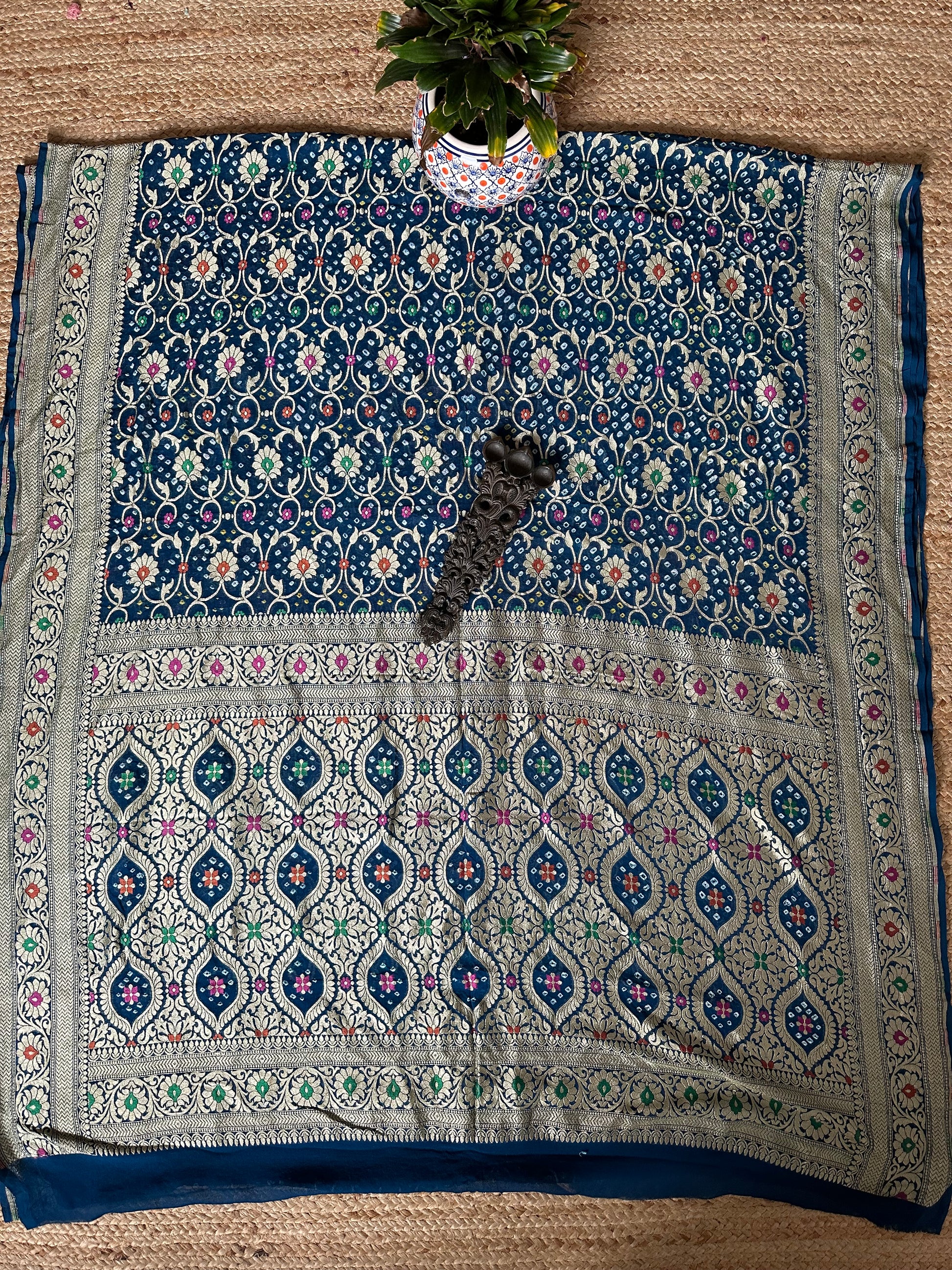 Blue Handwoven Neem Zari Bareek Bandhani Saree with Khaddi Georgette with Meenakari Work BS- 50