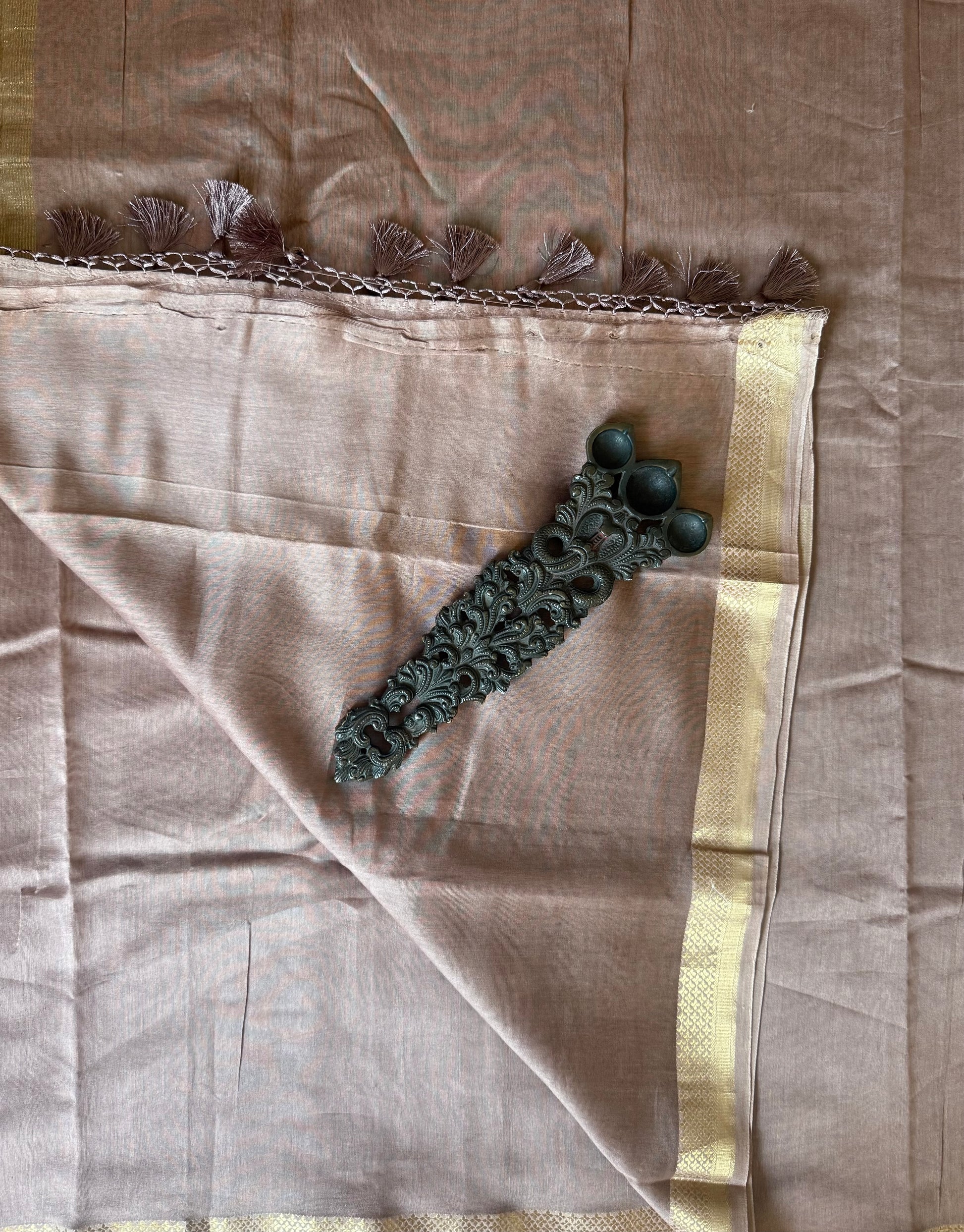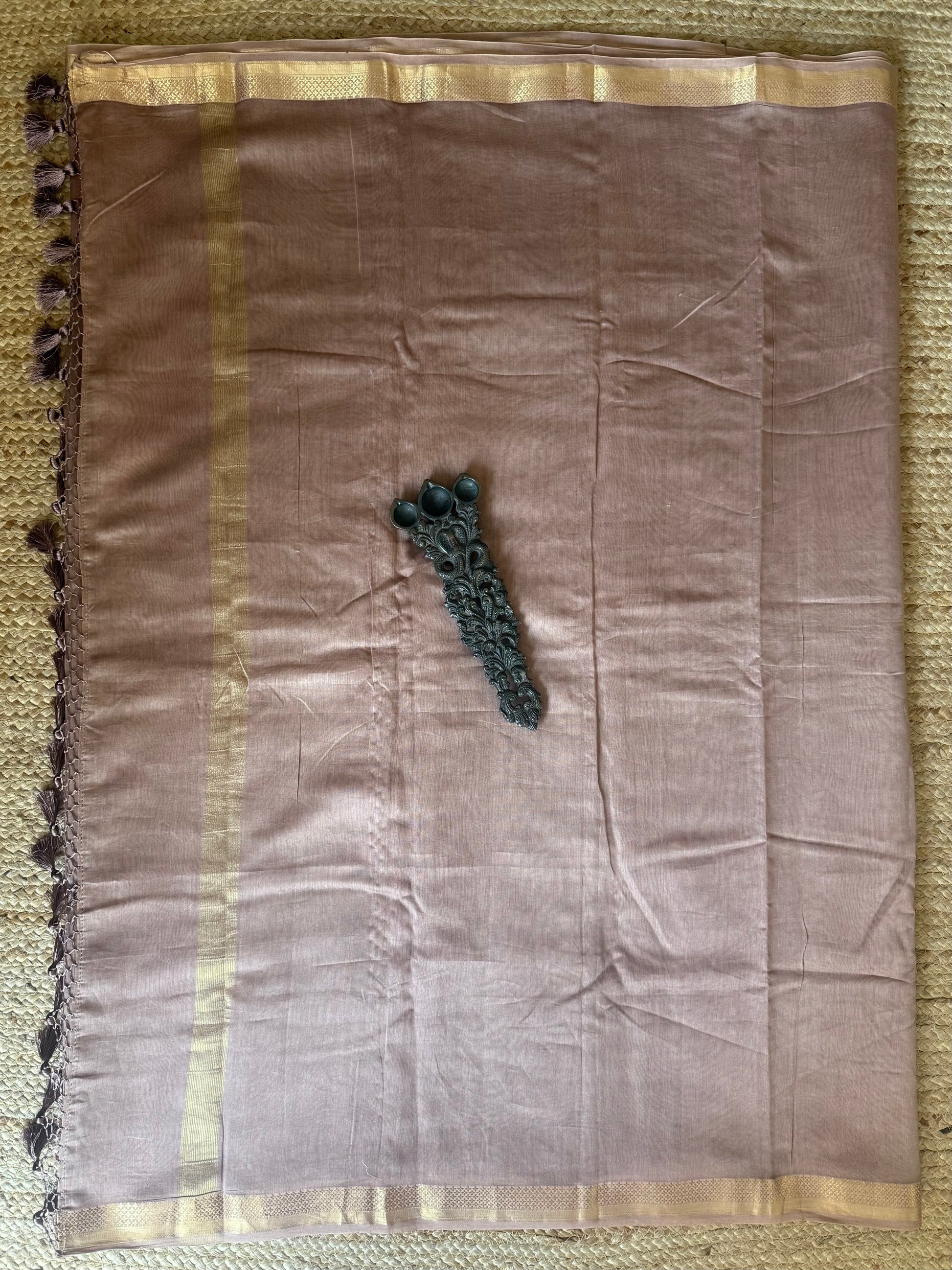 ROSY BROWN CHANDERI COTTON SILK MAHESHWARI BORDER HANDLOOM SARI
