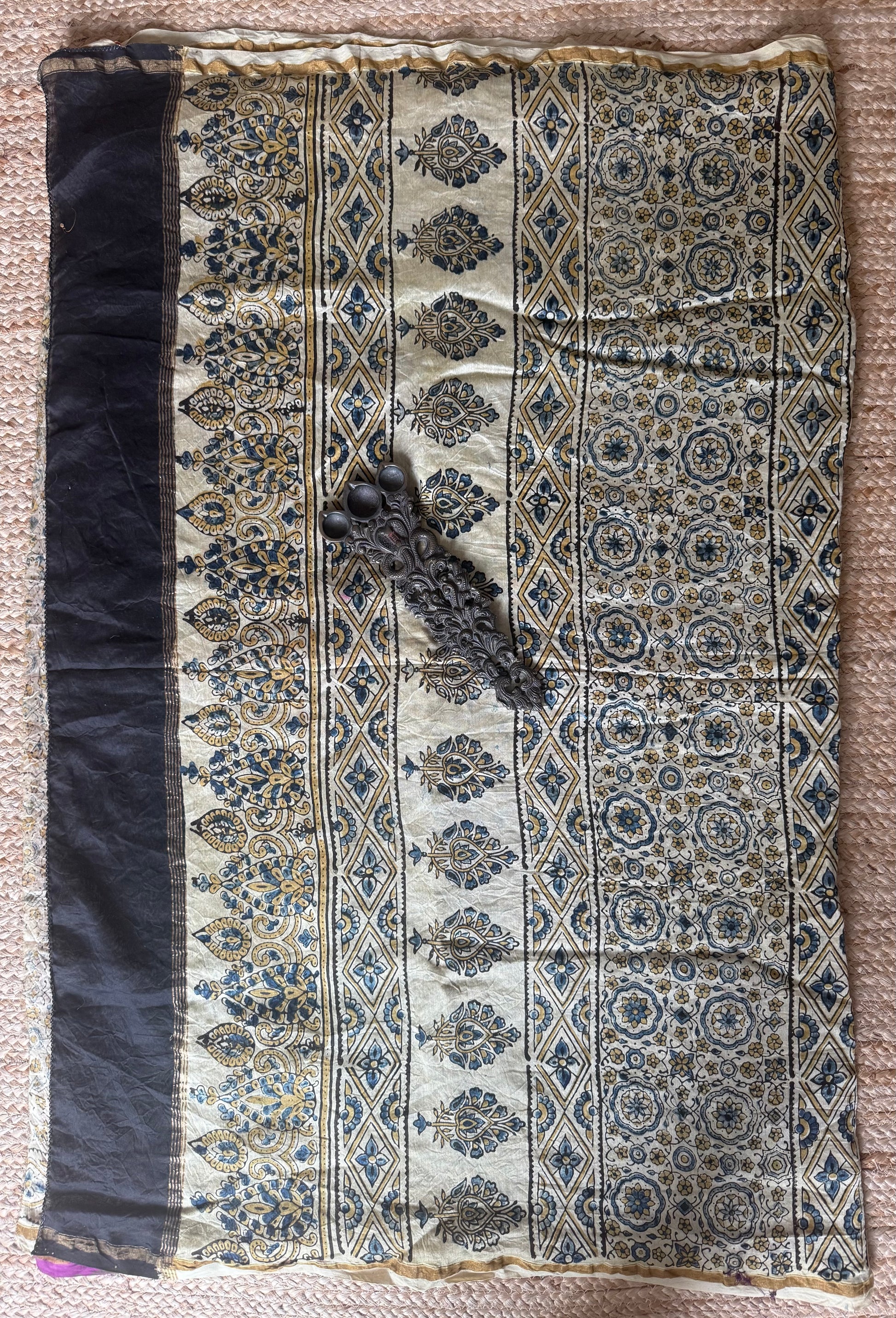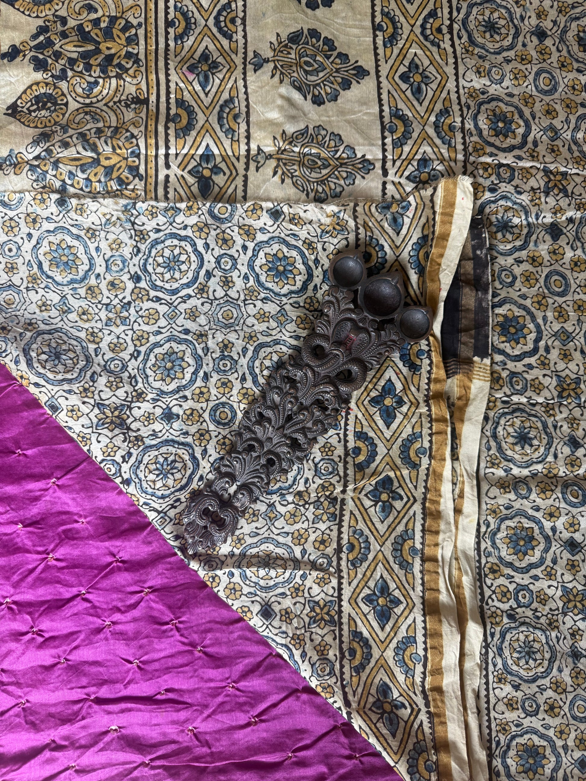 BRIGHT PURPLE CHANDERI SILK BANDHANI AJRAKH HANDCRAFTED SAREE WITH BLOUSE PIECE