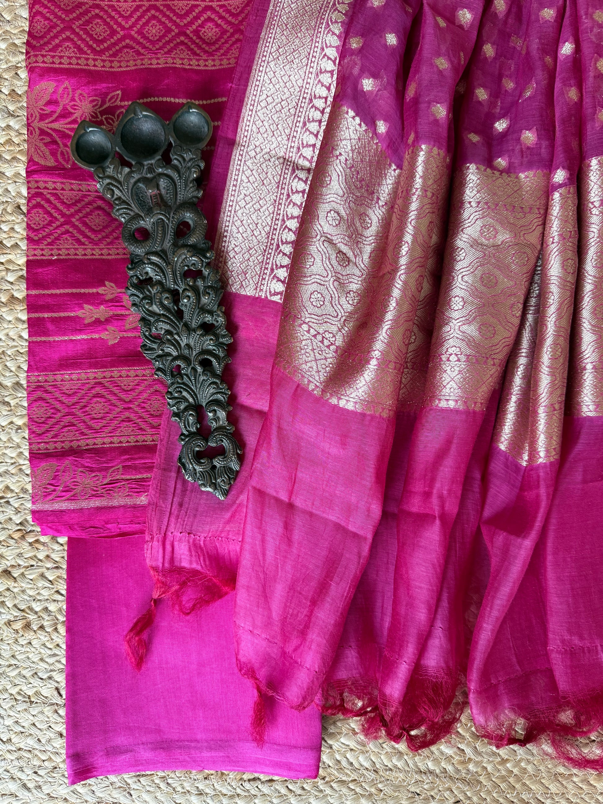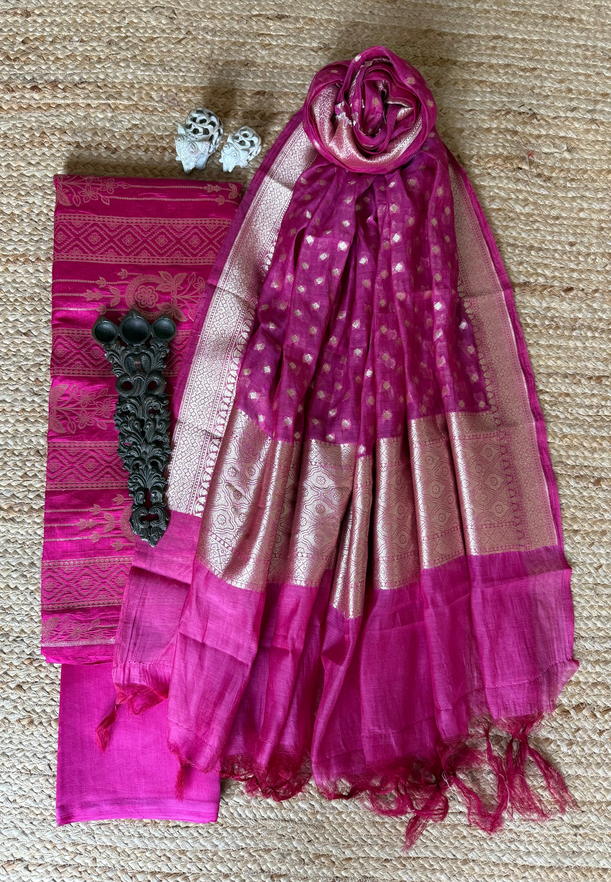 Fuschia Pink  Chinia   Silk certified  handloom  3 piece suit set