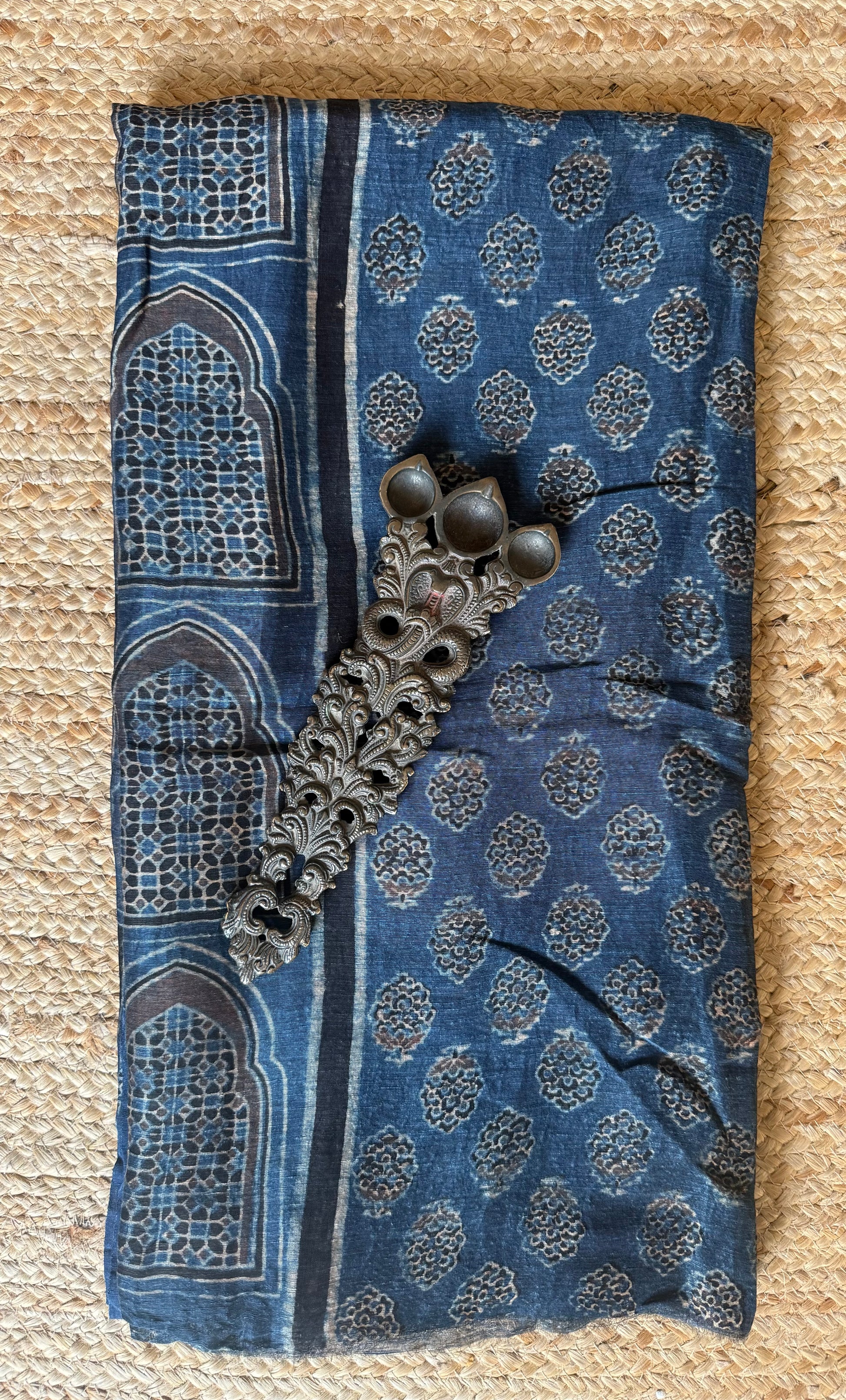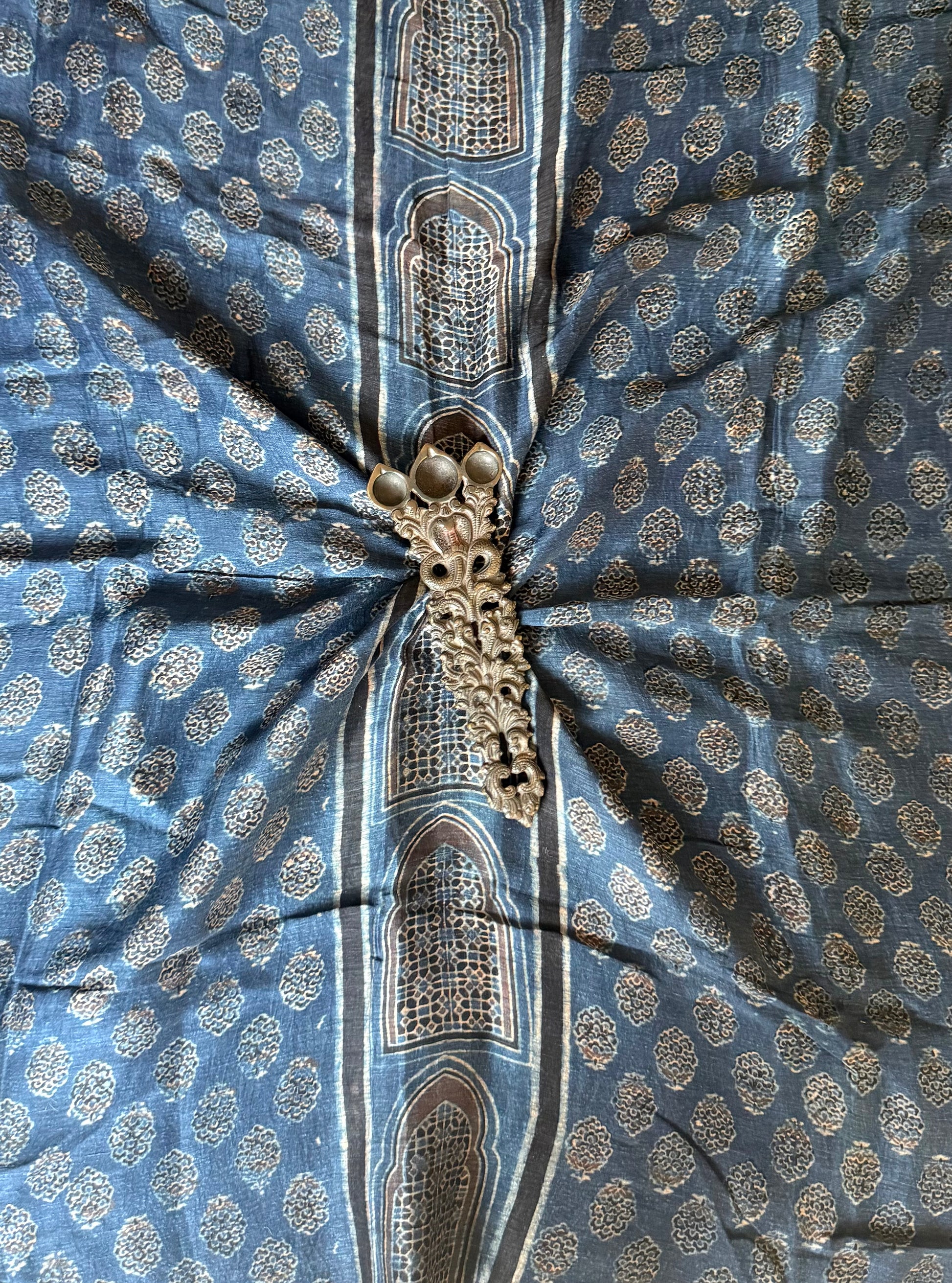 INDIGO BLUE AJRAKH LINEN SILK KURTA FABRIC