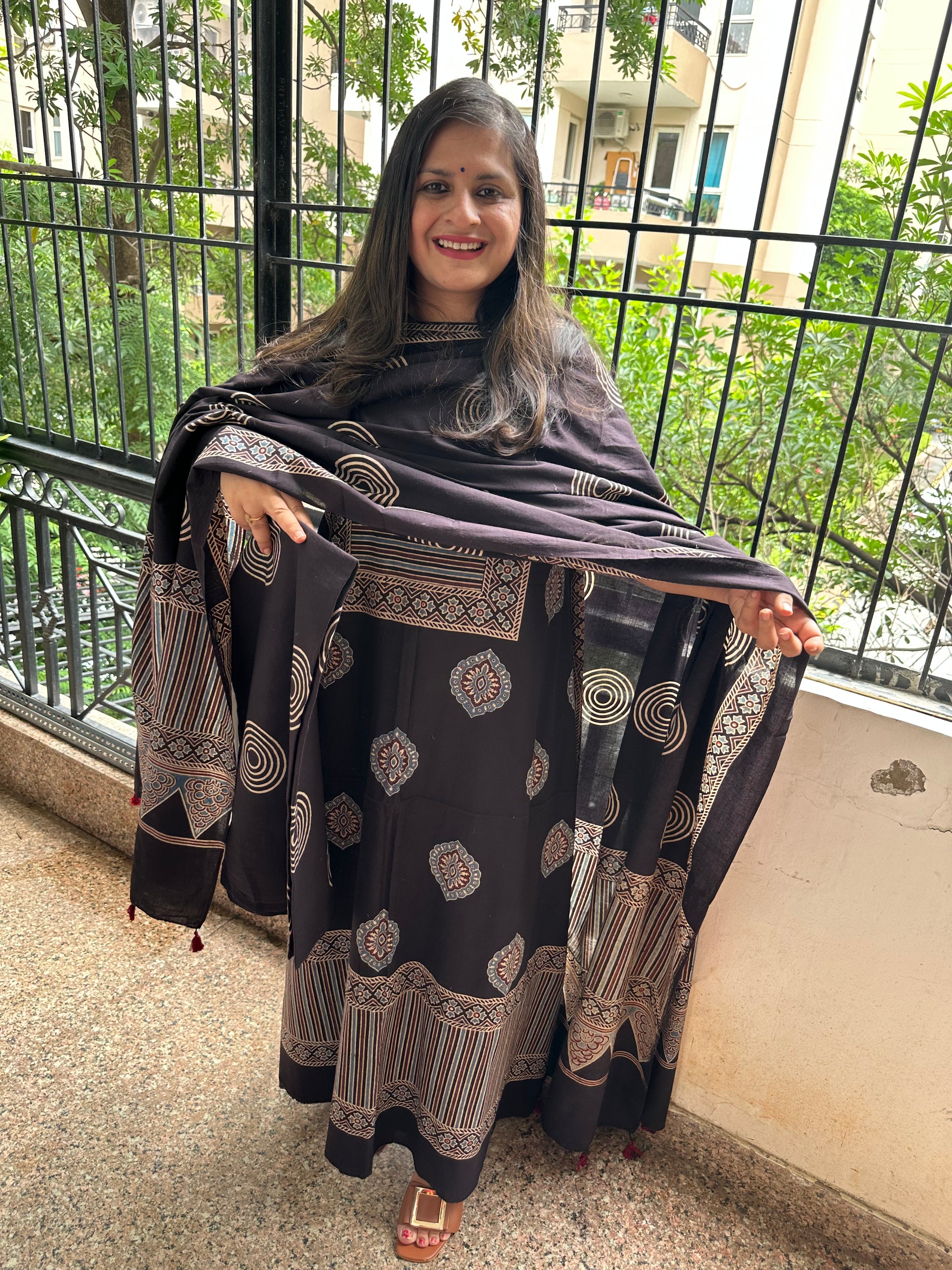 BLACK AJRAKH HANDBLOCK AND HAND CRAFTED CONTEMPORARY THREE PIECE SUIT SET