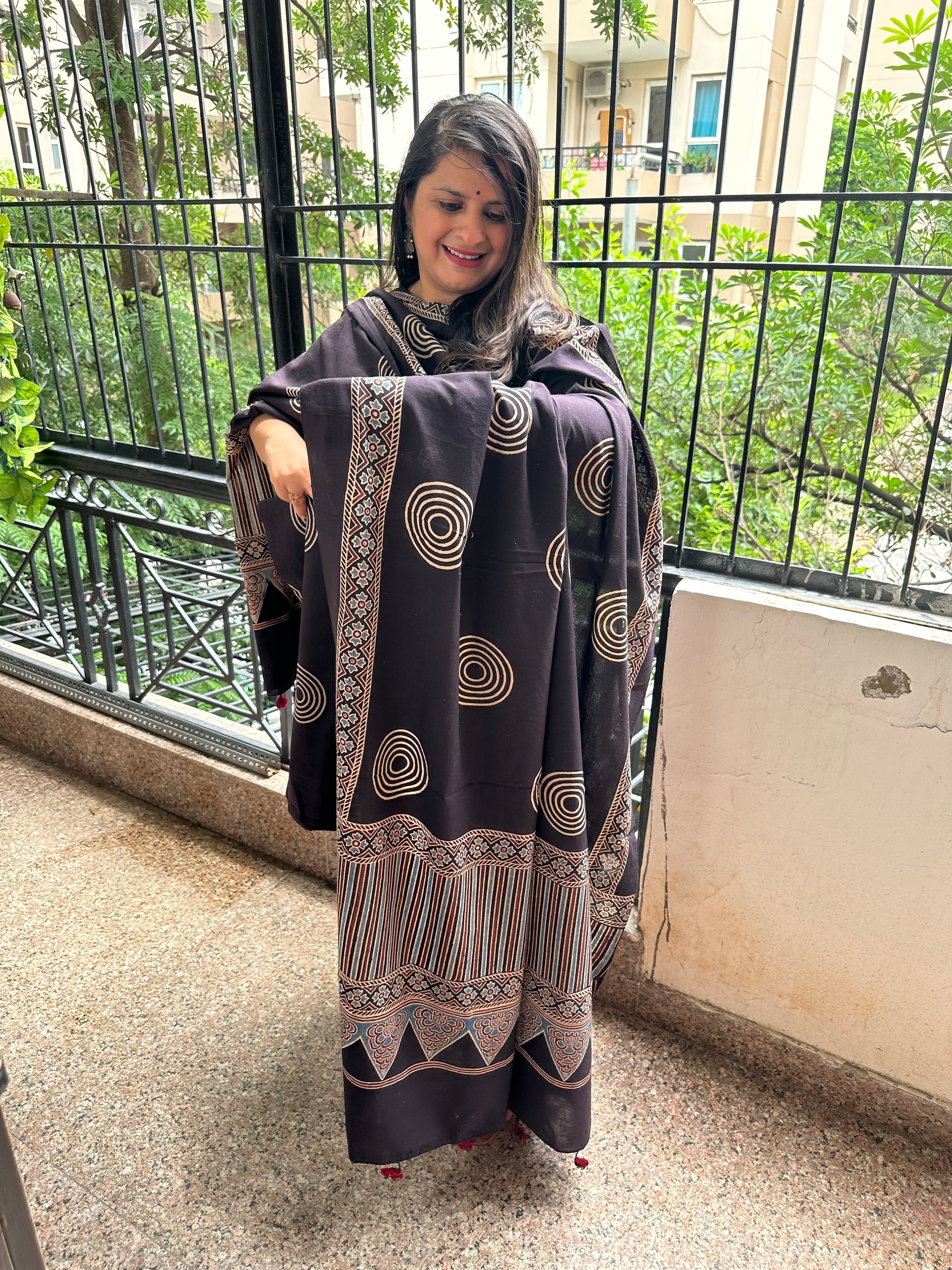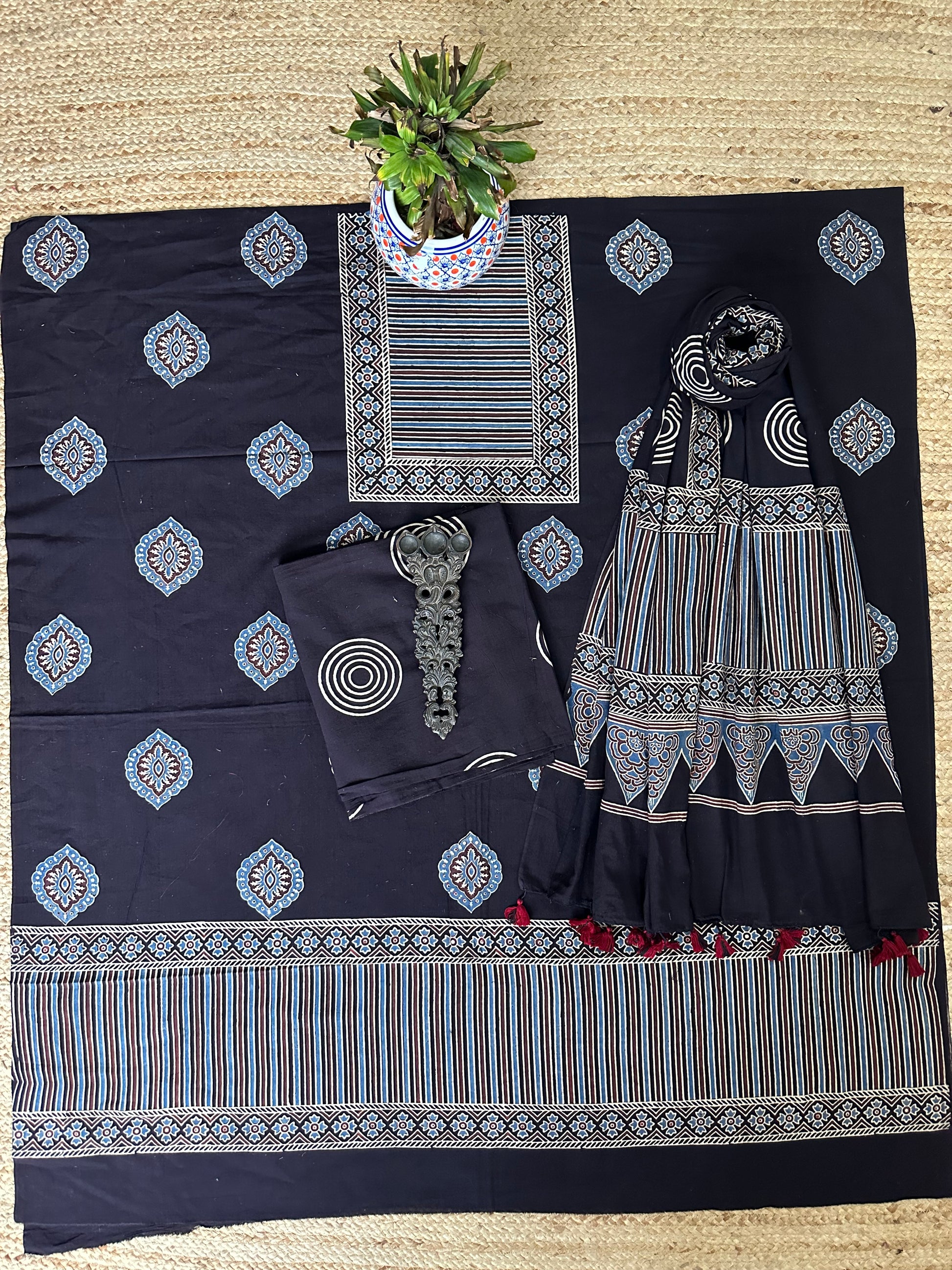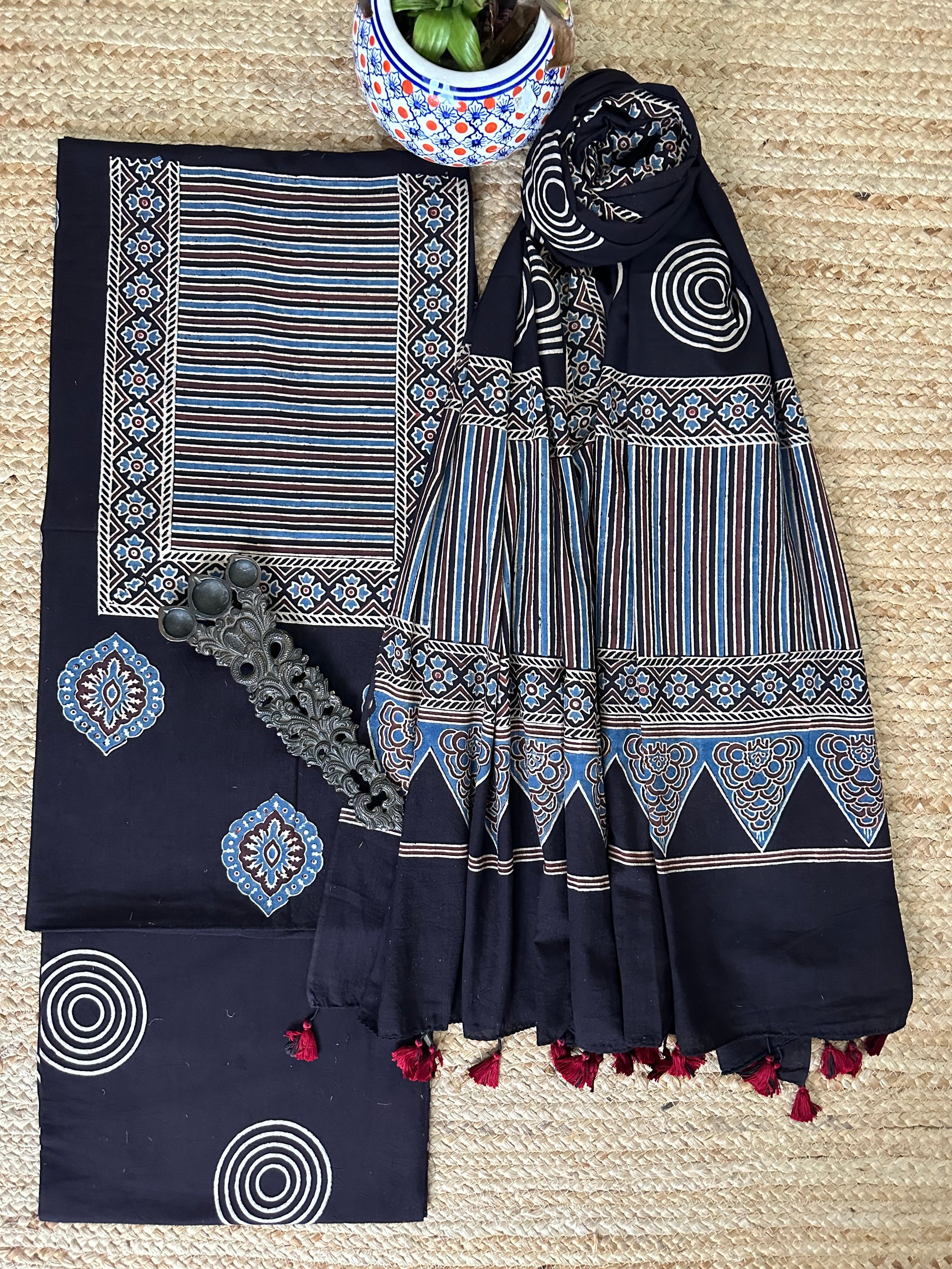 BLACK AJRAKH HANDBLOCK  HANDCRAFTED CONTEMPORARY THREE PIECE SUIT SET