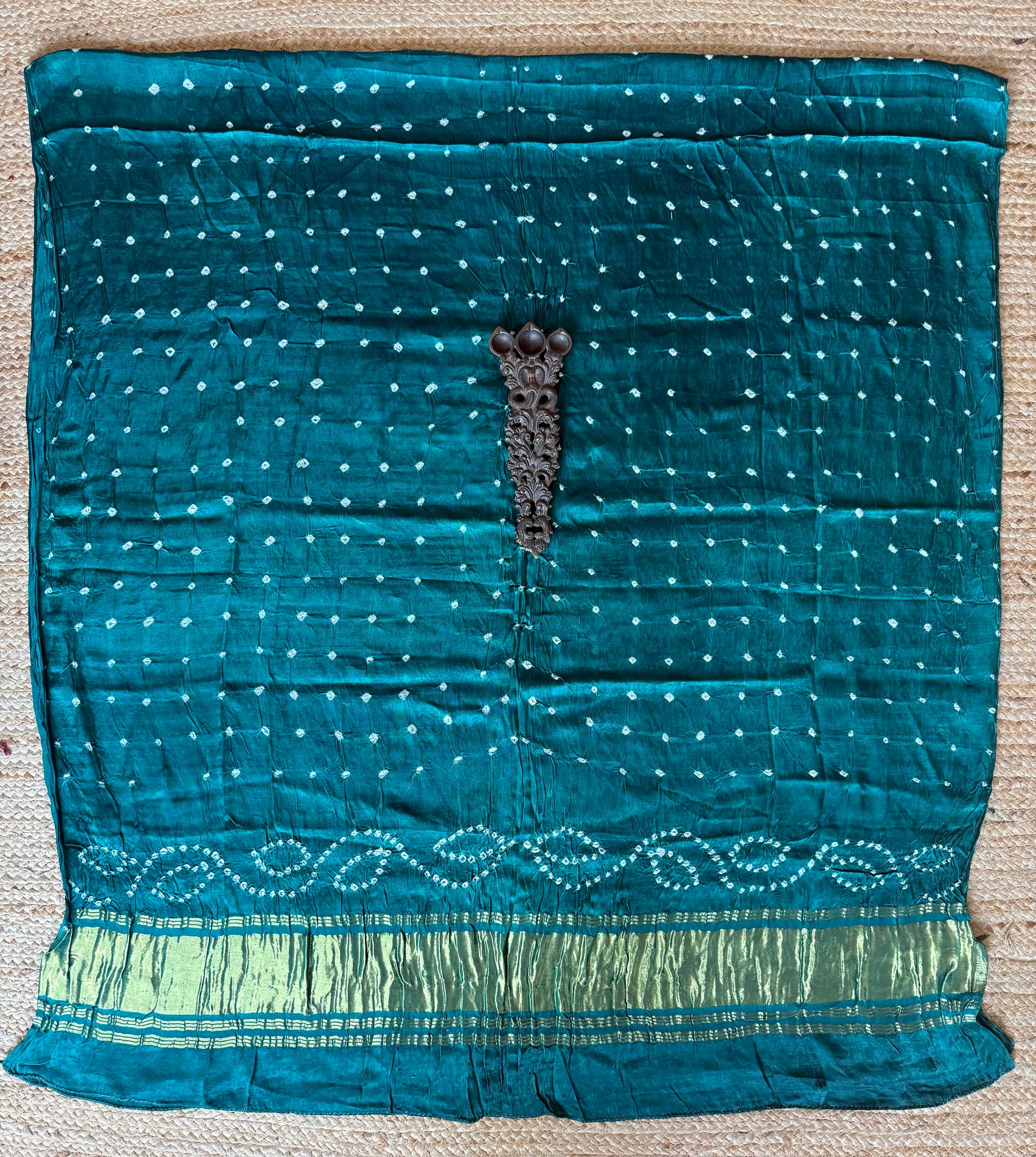 TEAL BLUE MODAL SILK BANDHANI DUPATTA WITH ZARI BORDER