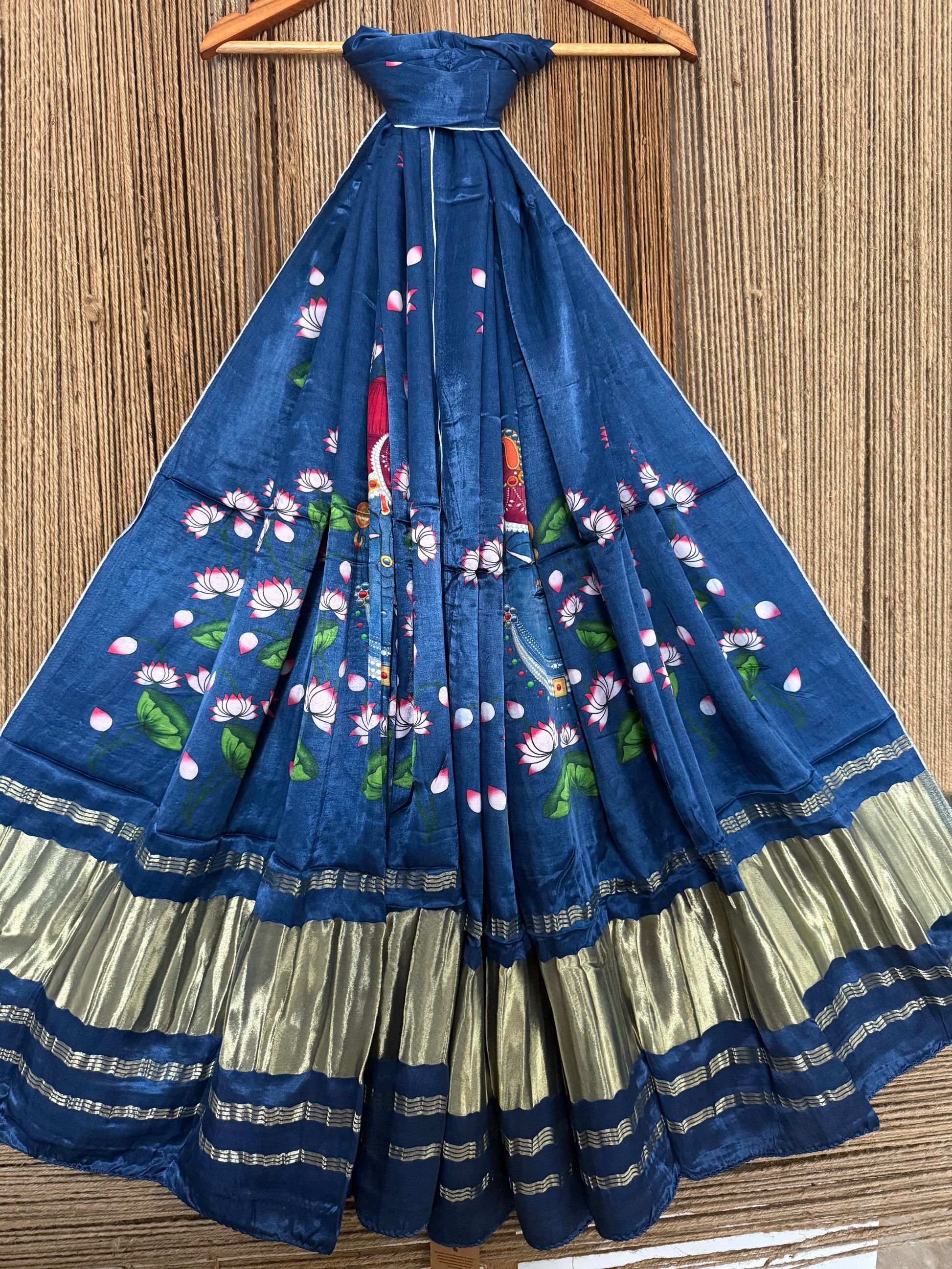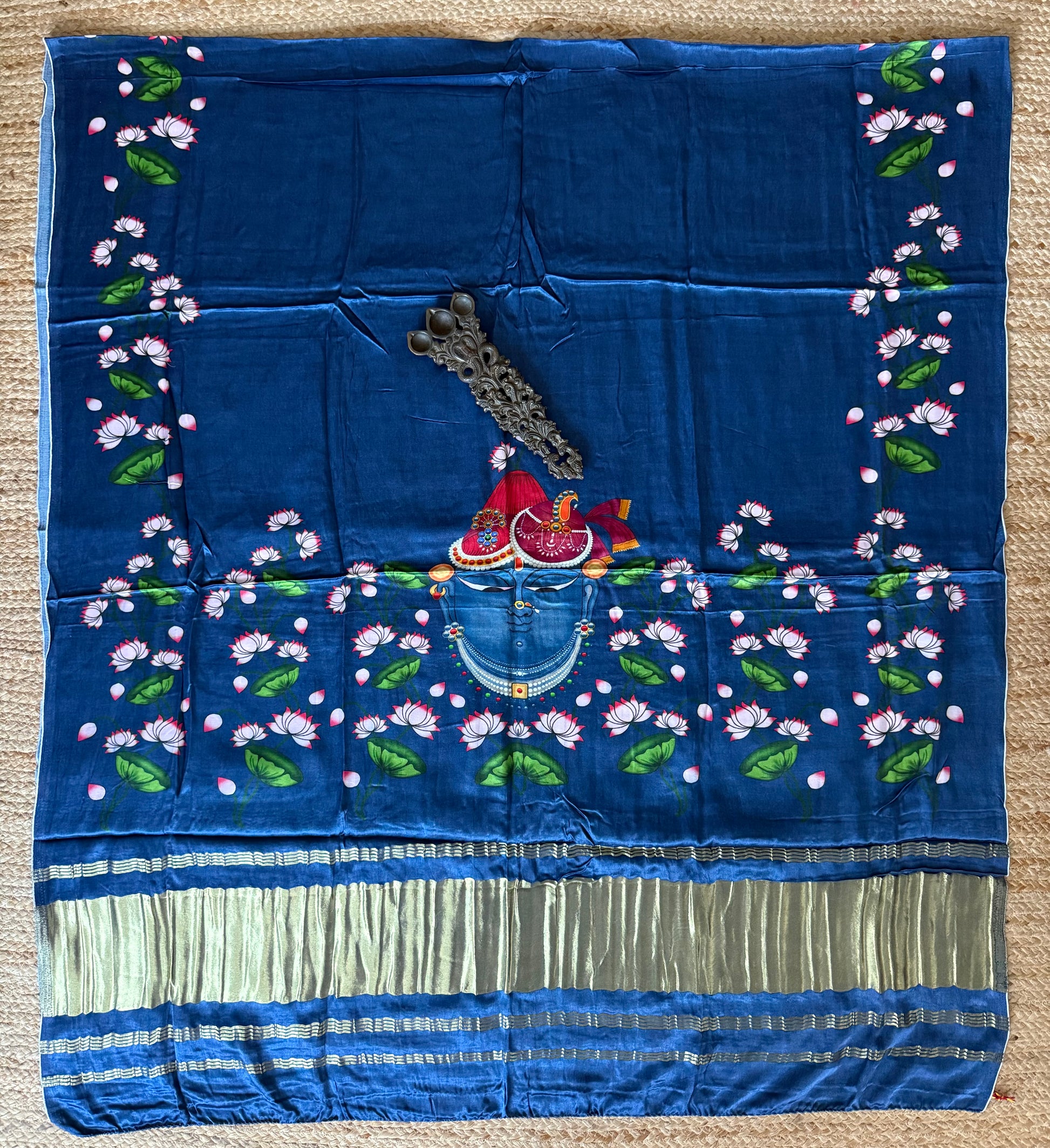 Navy Blue pichwai patola print modal silk zari border dupatta