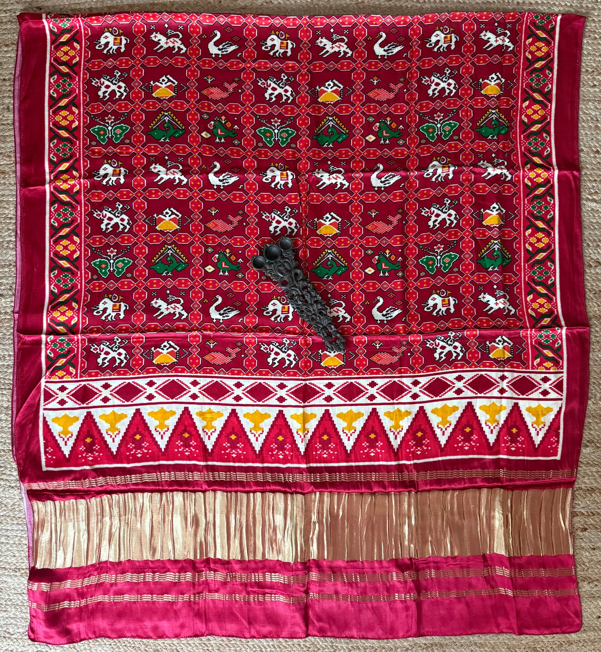 Maroon pichwai patola print modal silk zari border dupatta