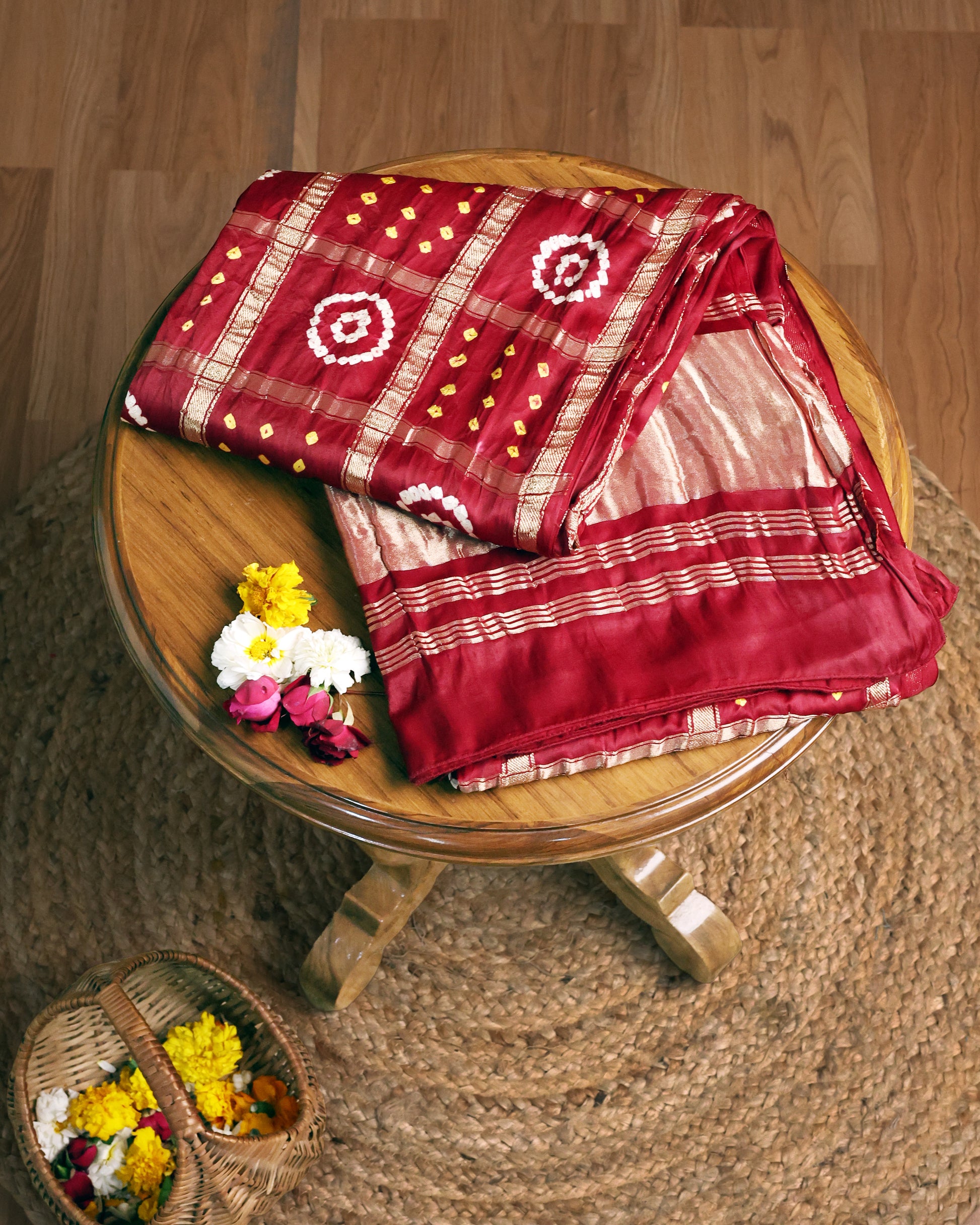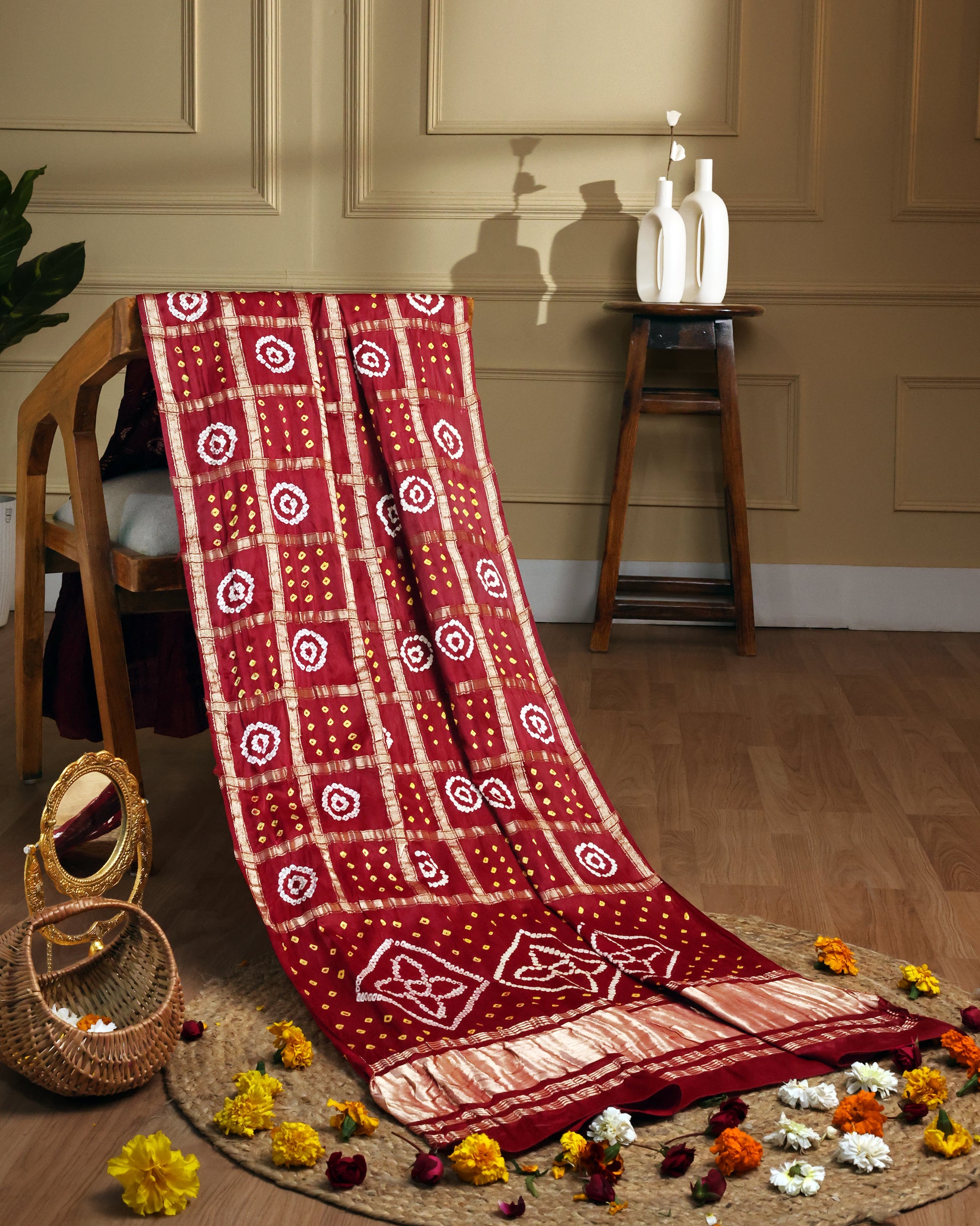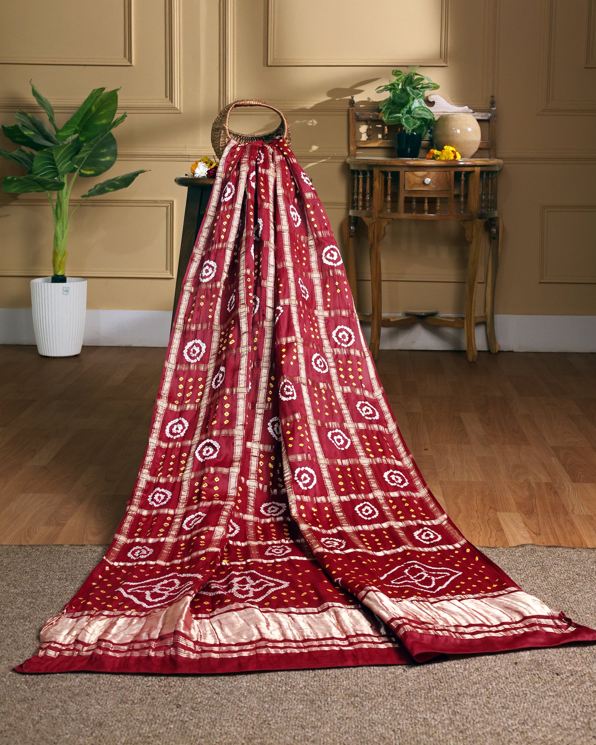 RED MAROON HANDCRAFTED MODAL SILK GHARCHOLA DUPATTA