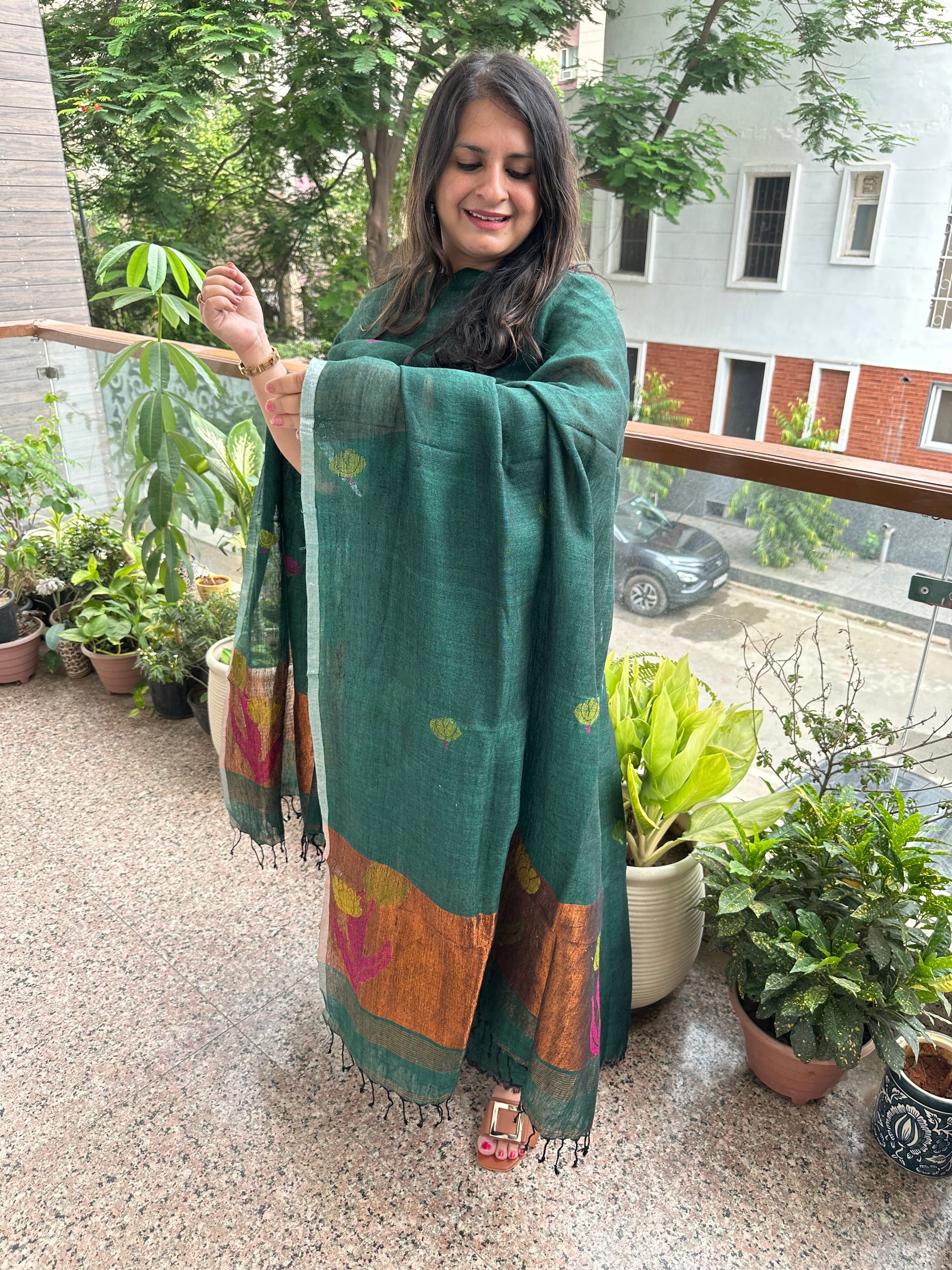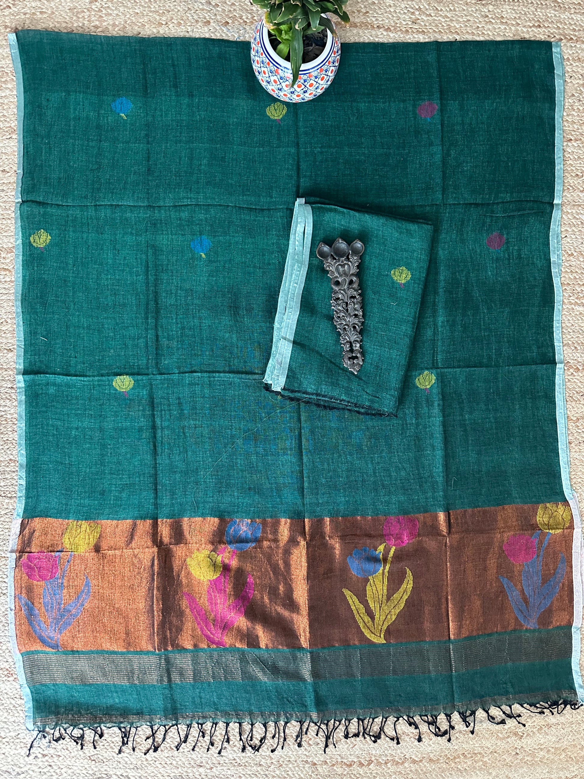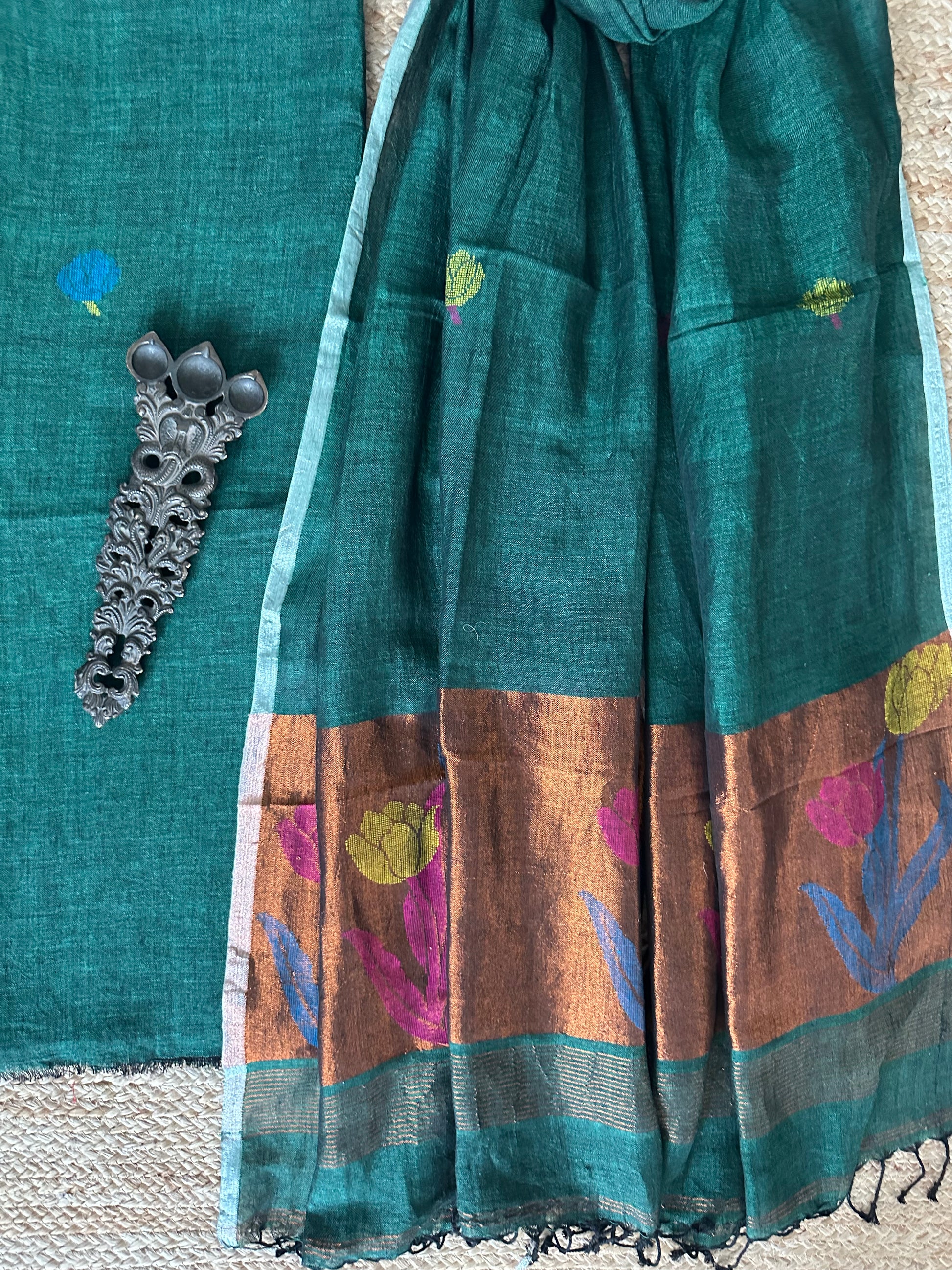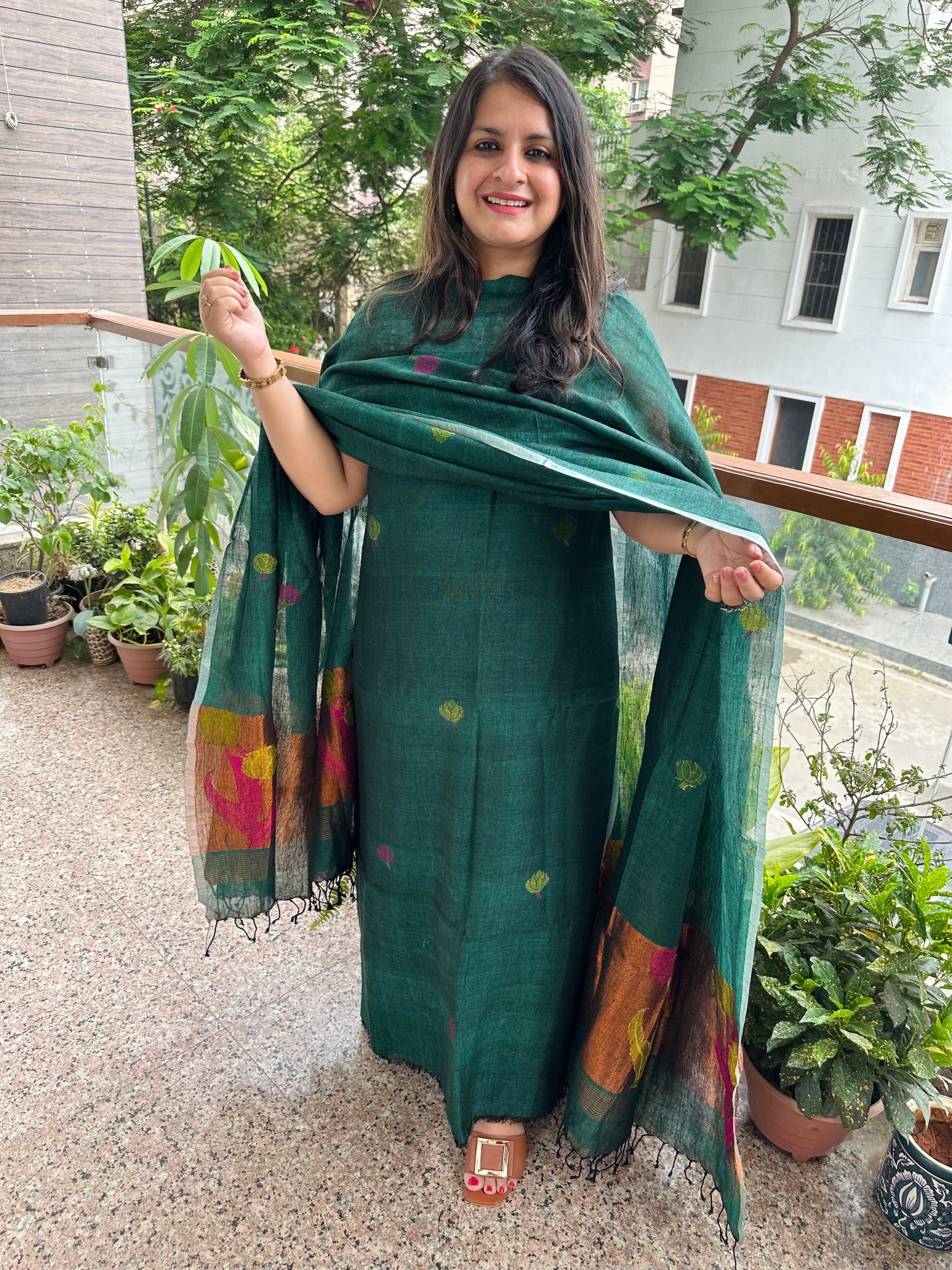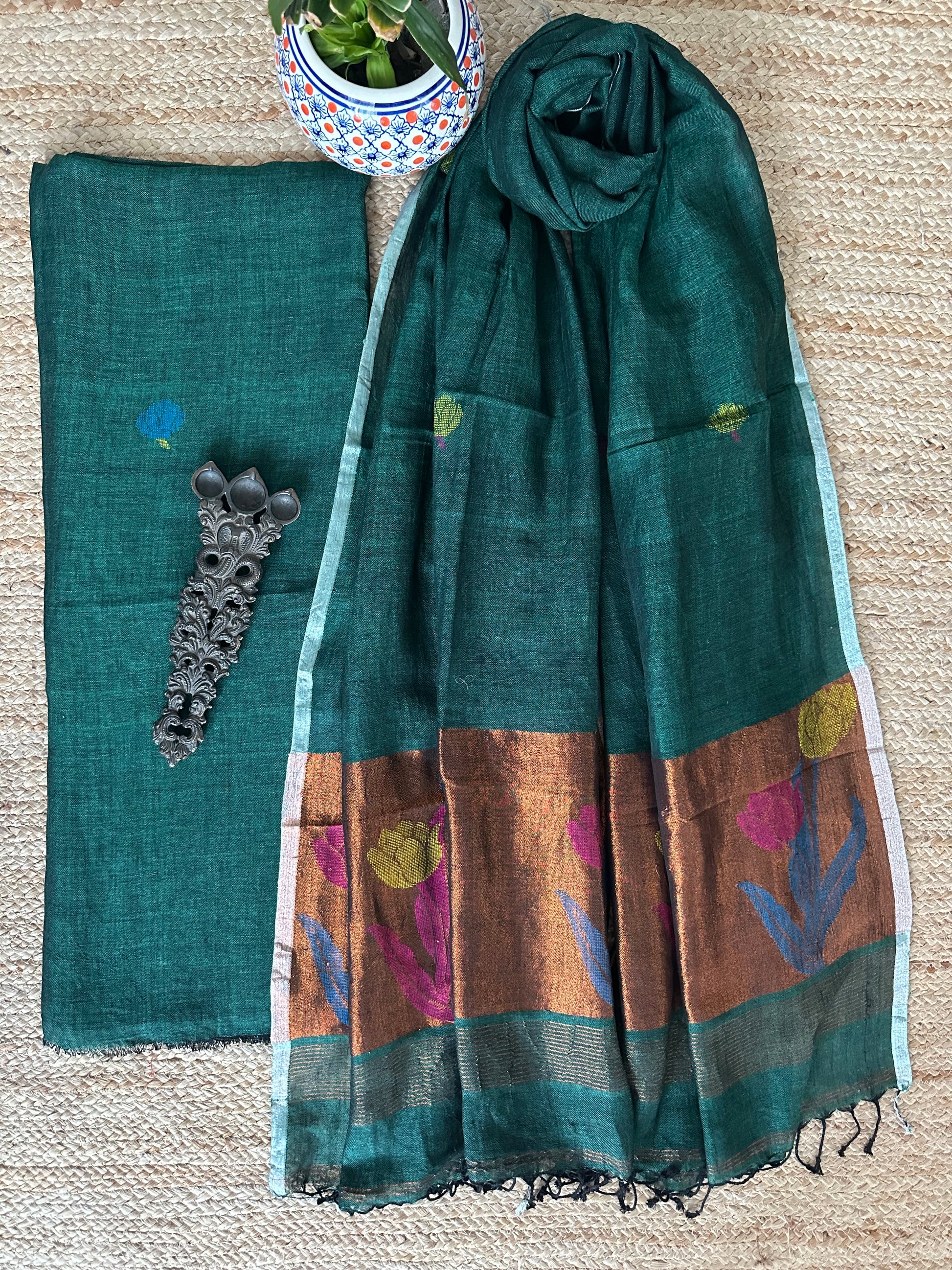 GREEN WOVEN LINEN KURTA SET LJS-1042