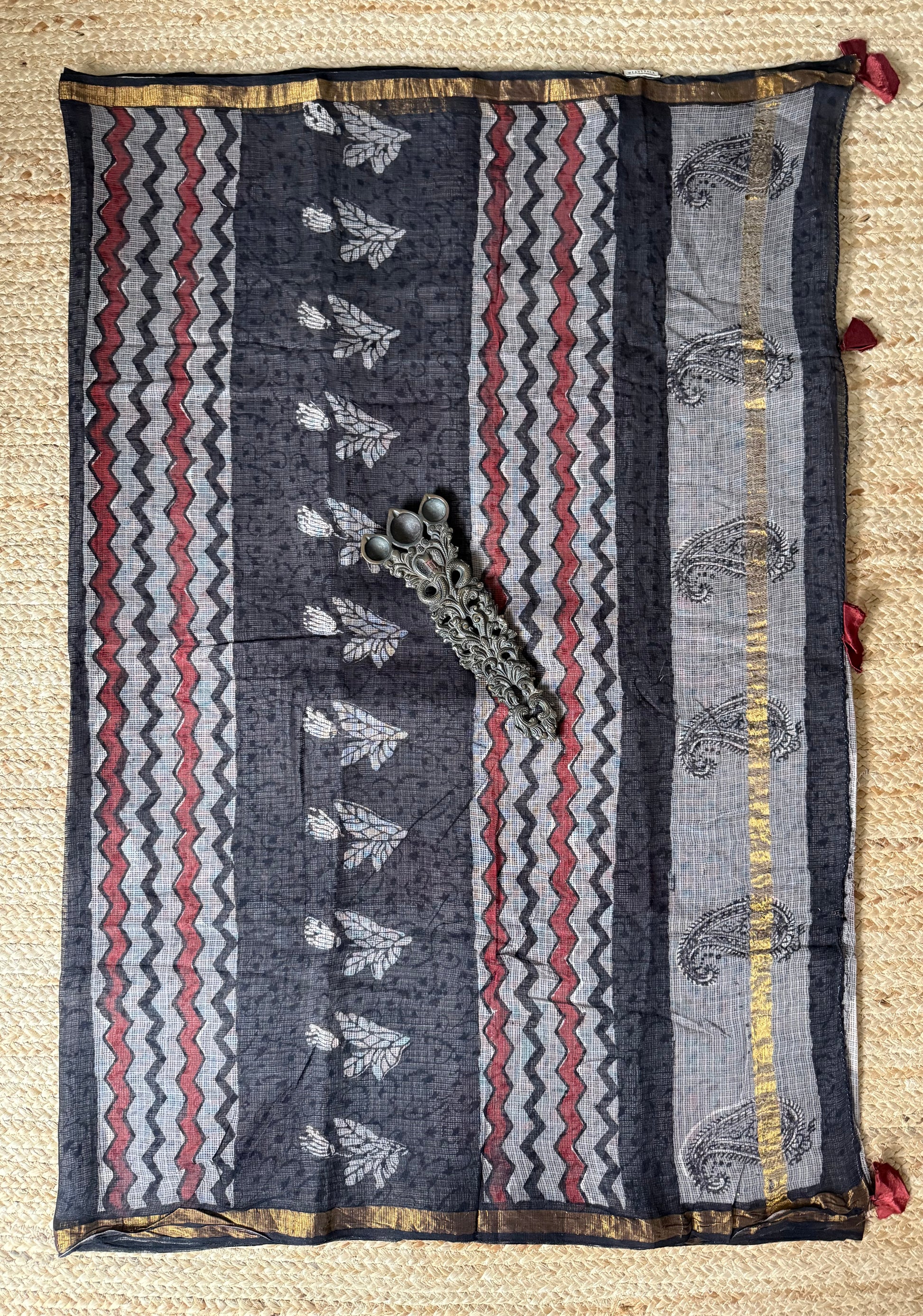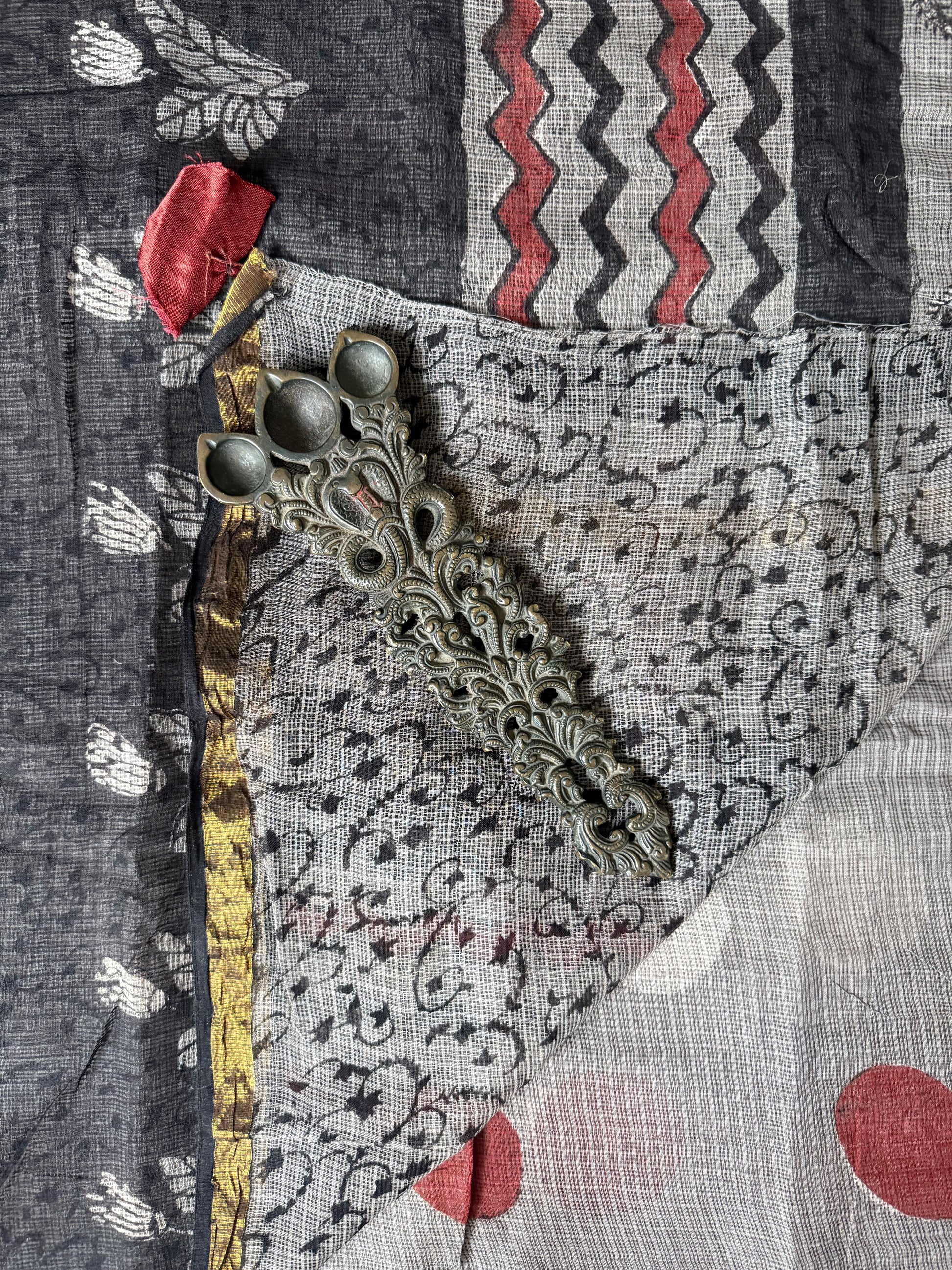 Ash gray cohandcrafted saree, has its own running blouse piece