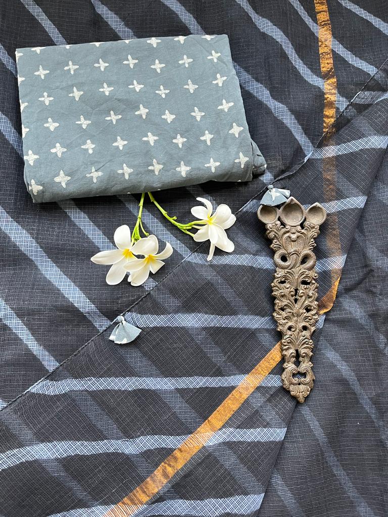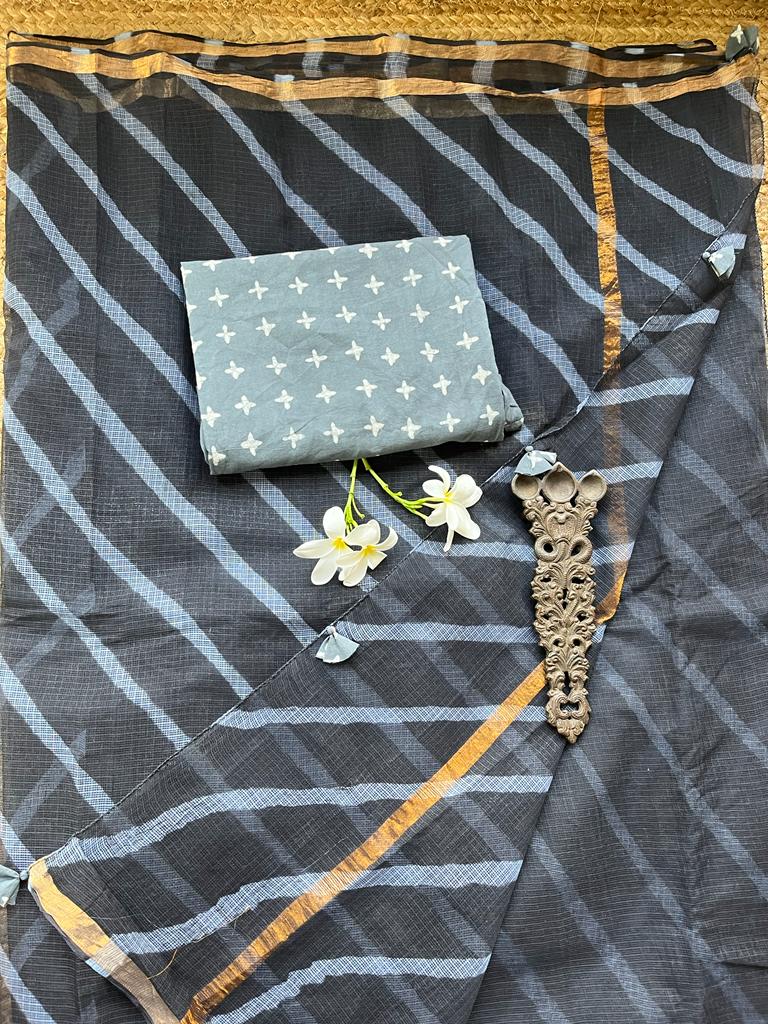 black kota cotton handcrafted leheriya saree, has its own running blouse piece