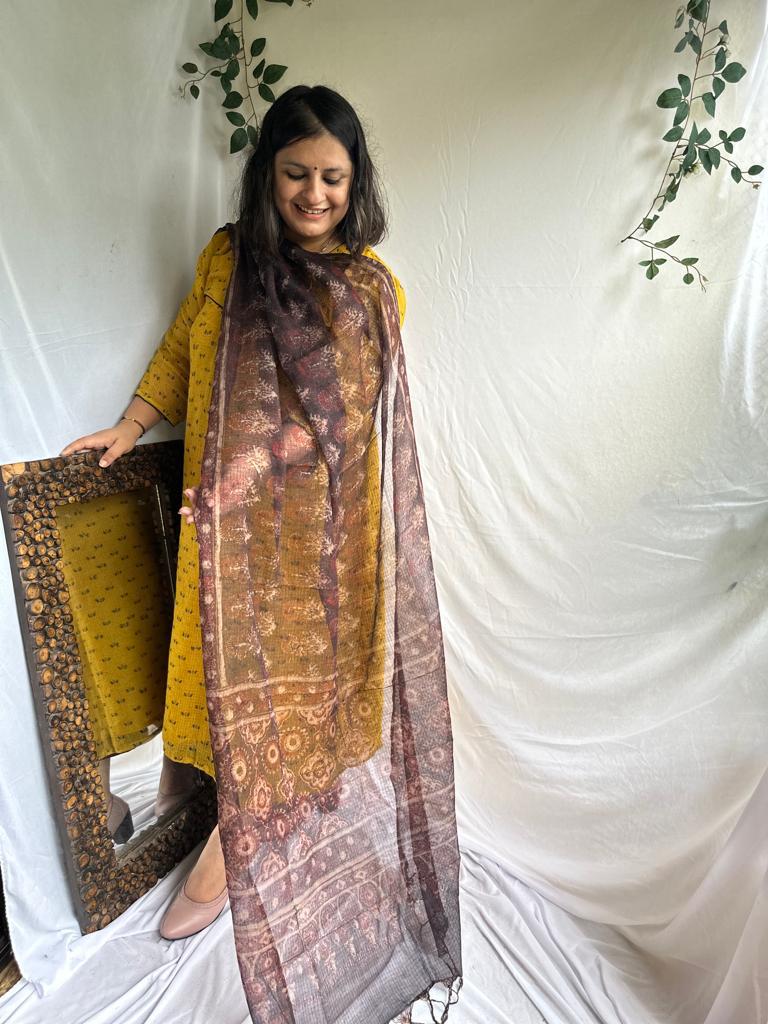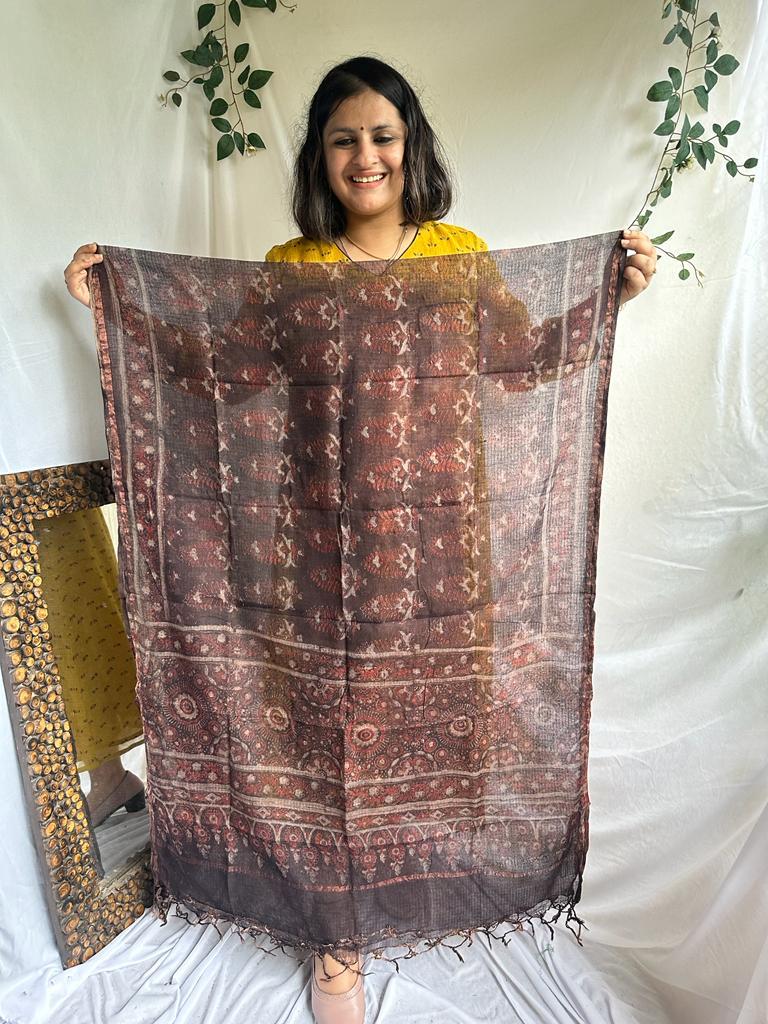 CHIKOO BROWN KOTA AJRAK HANDCRAFTED DUPATTA
