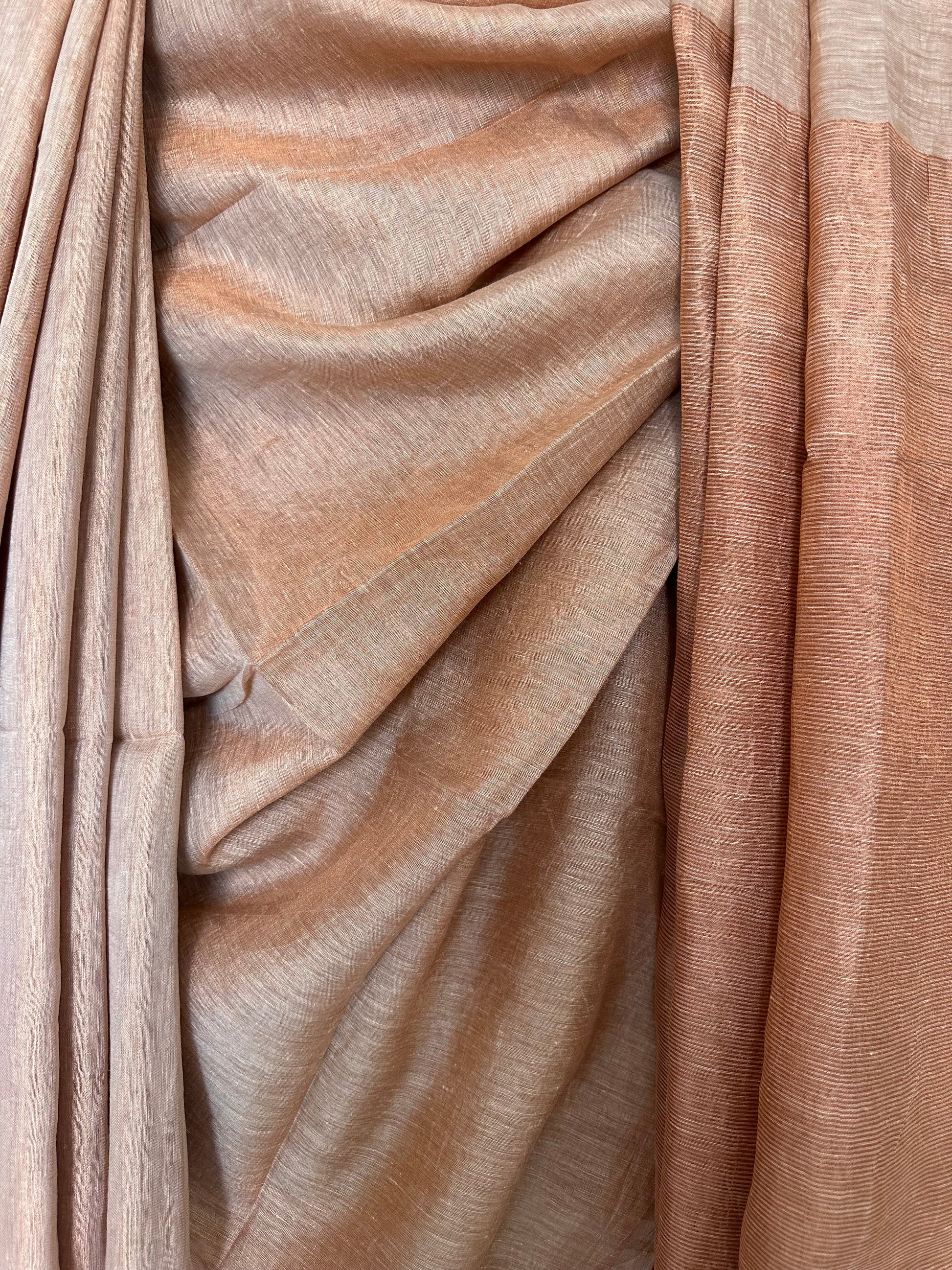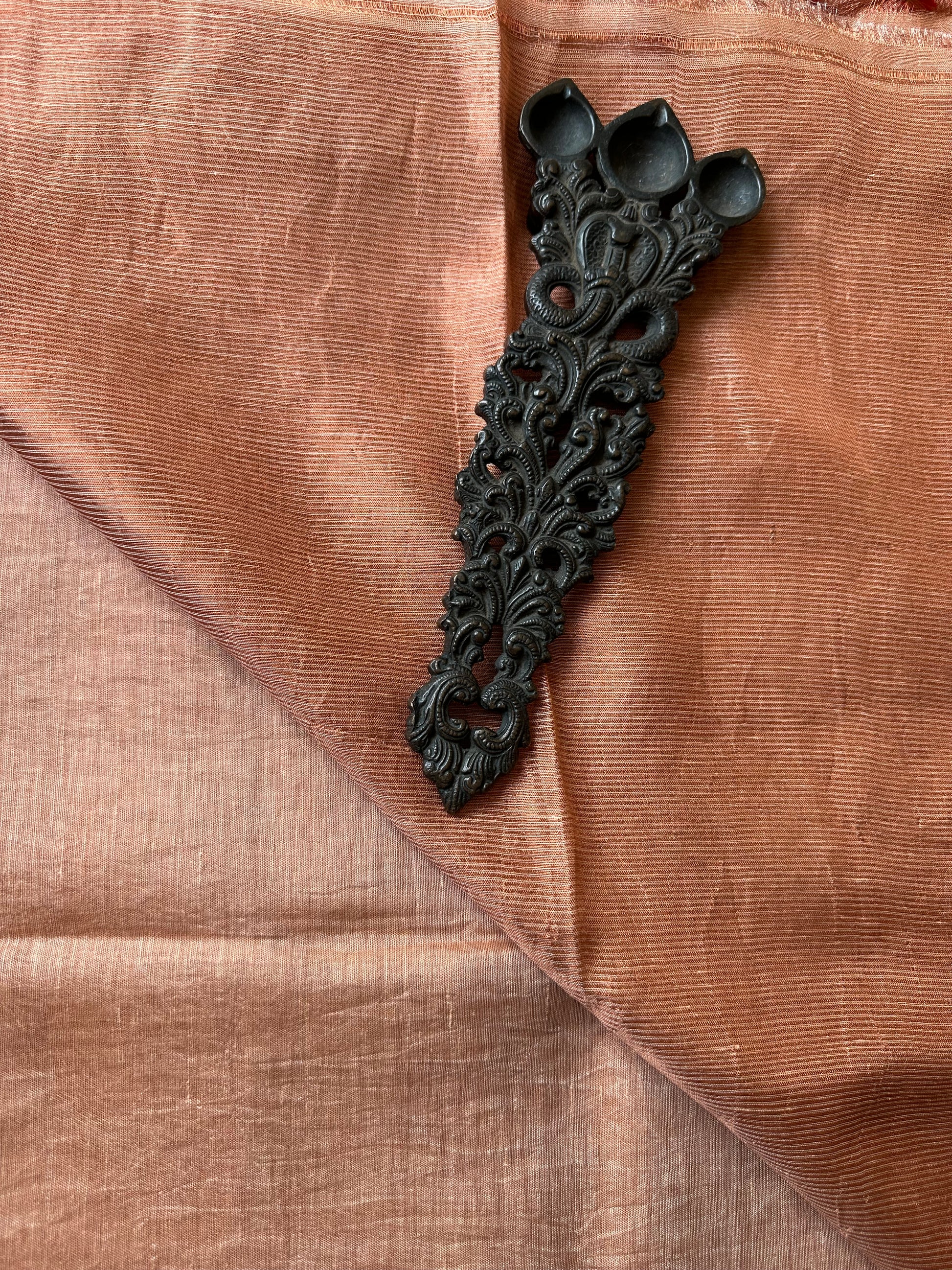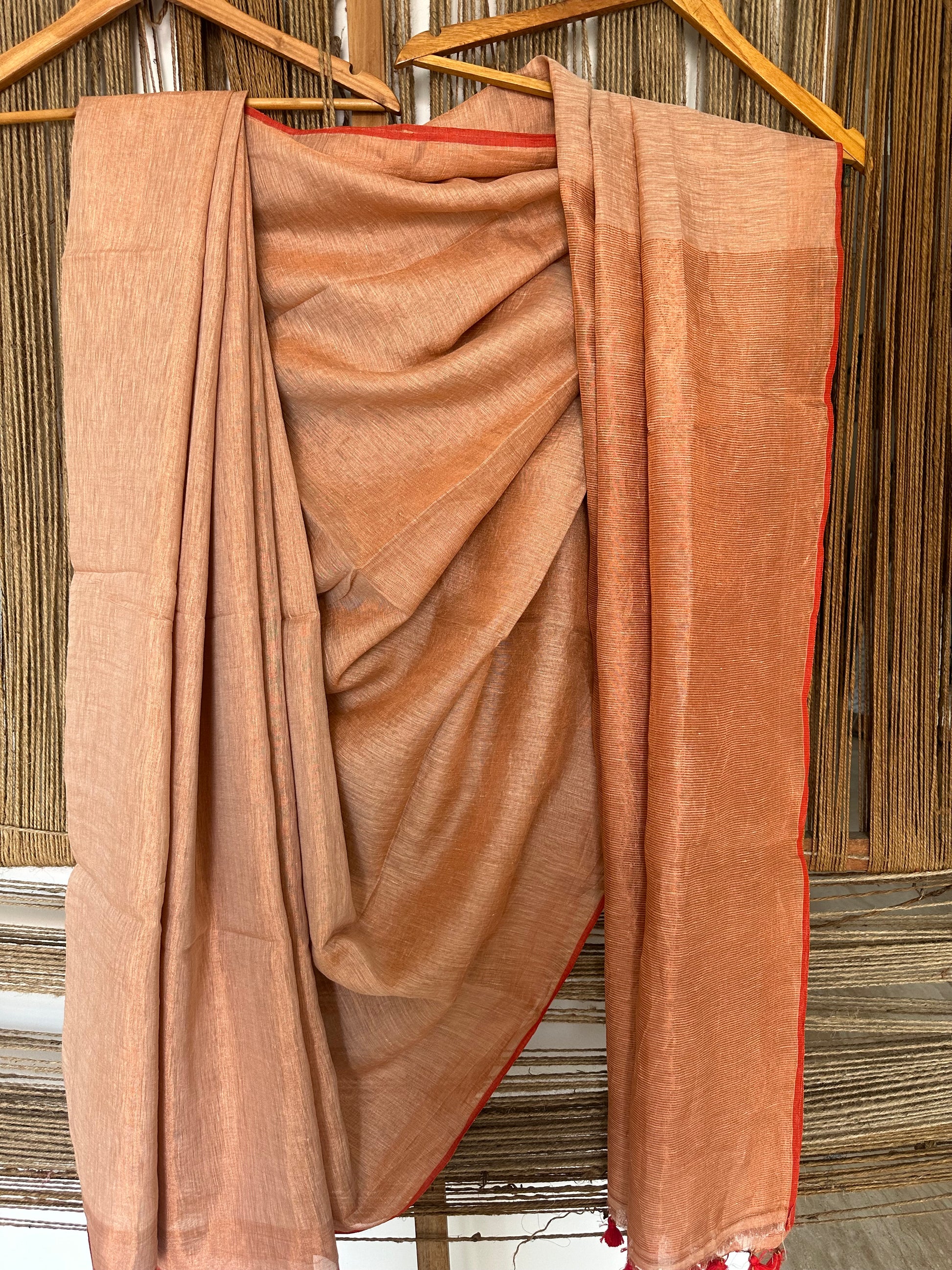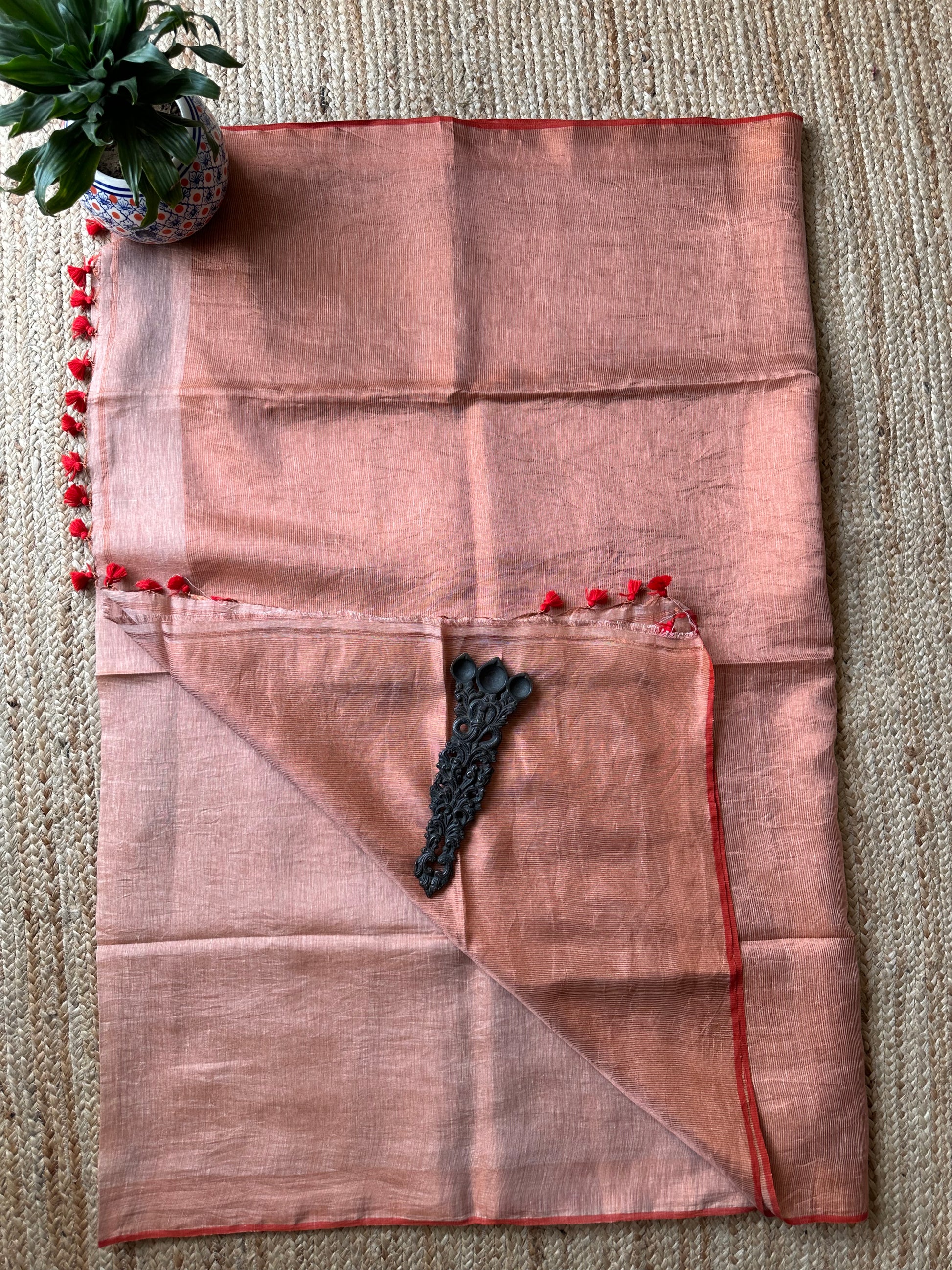 COPPER GOLDEN TISSUE LINEN ZARI SARI WITH WOVEN RED BORDER TL-27