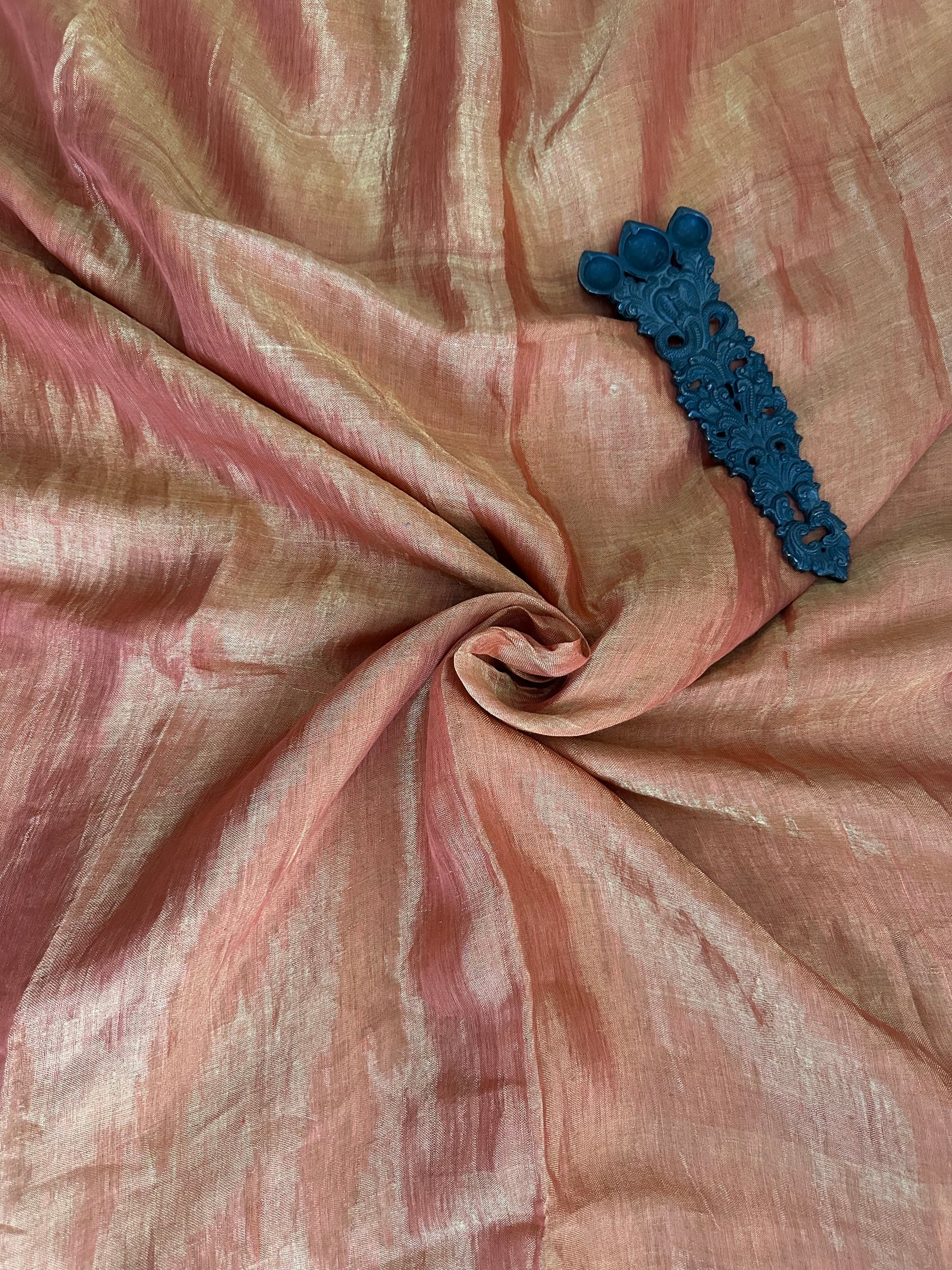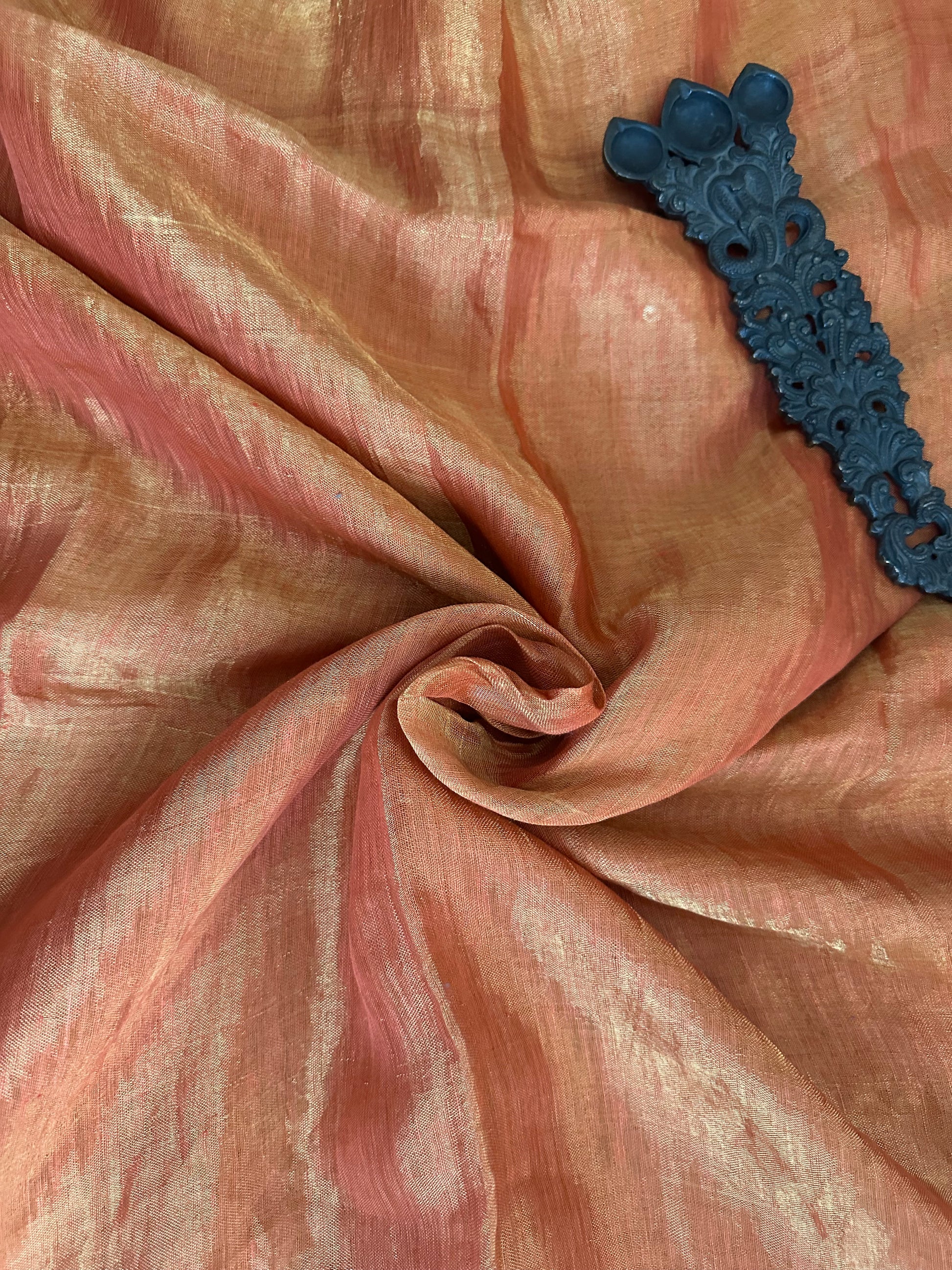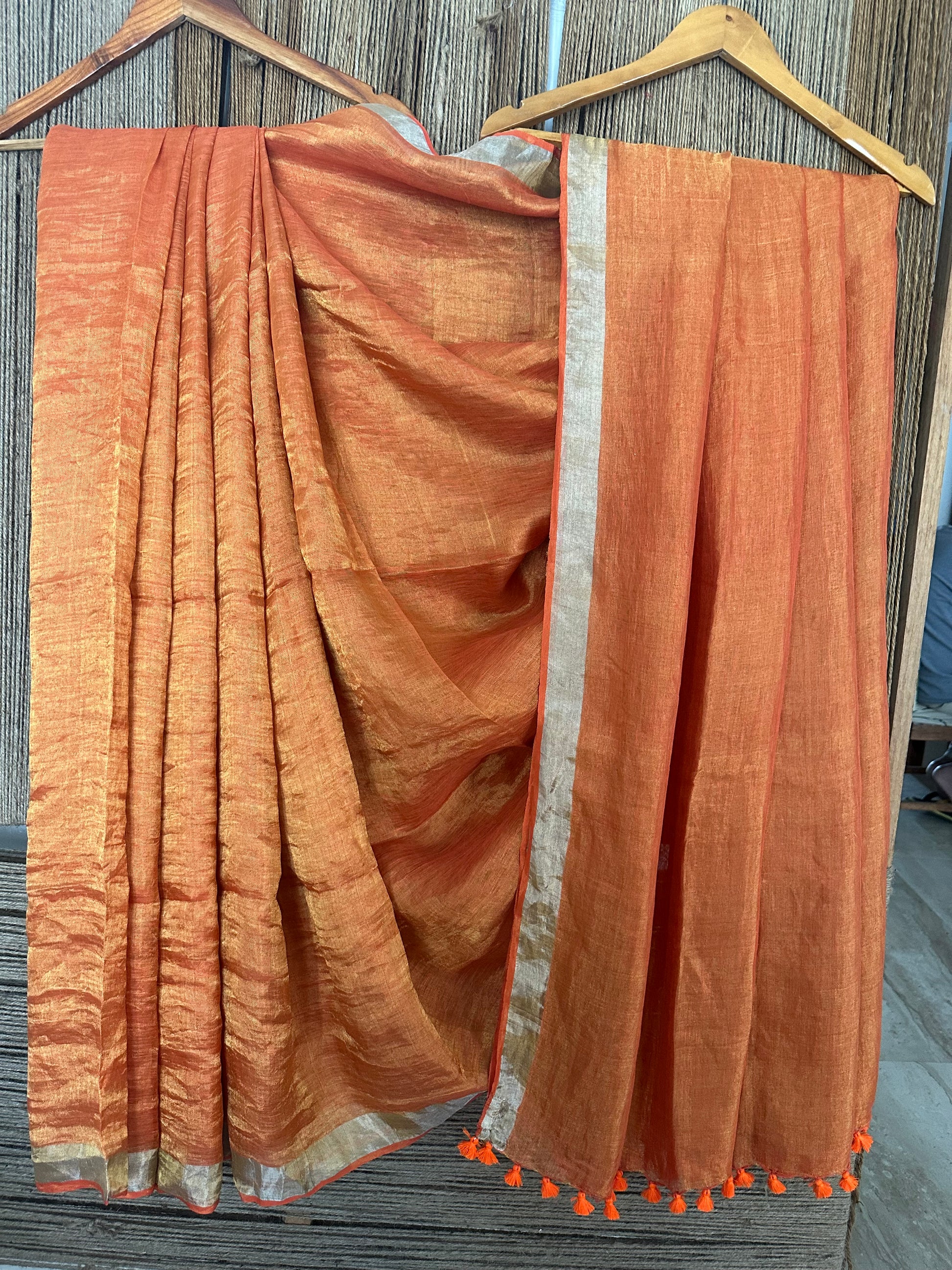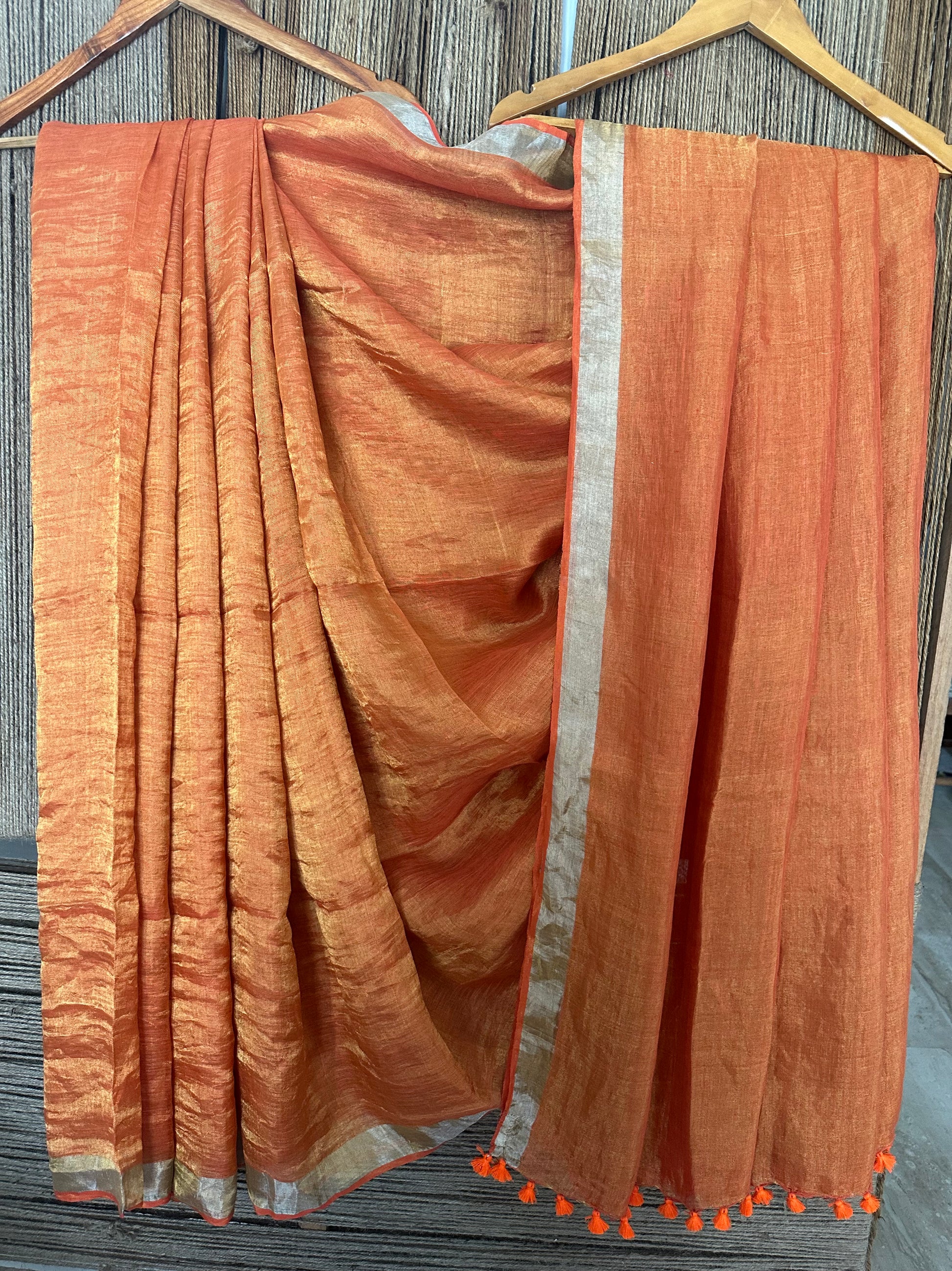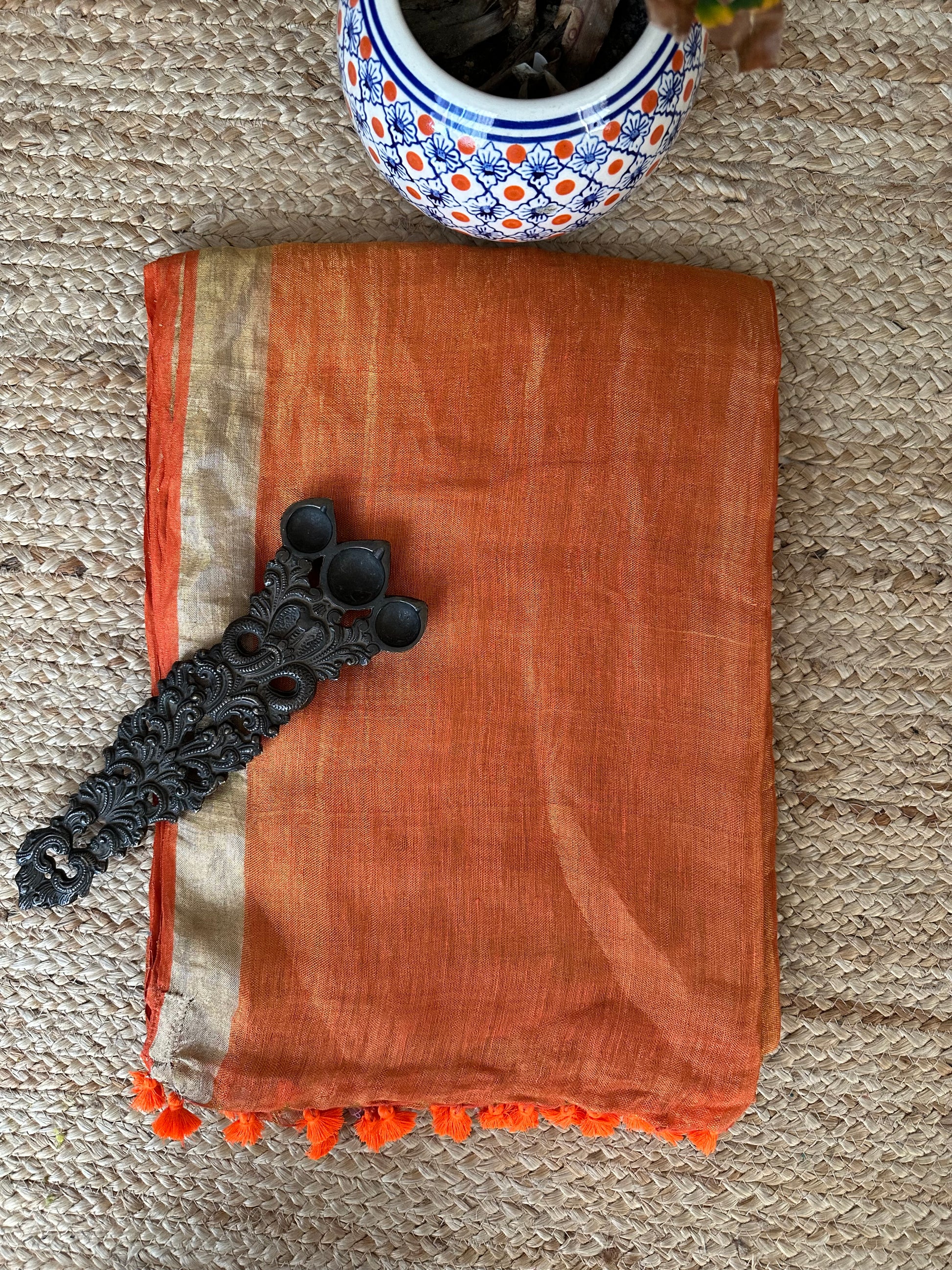 PAPAYA ORANGE GOLD METALLIC LINEN SARI WITH WOVEN BORDER ML-12