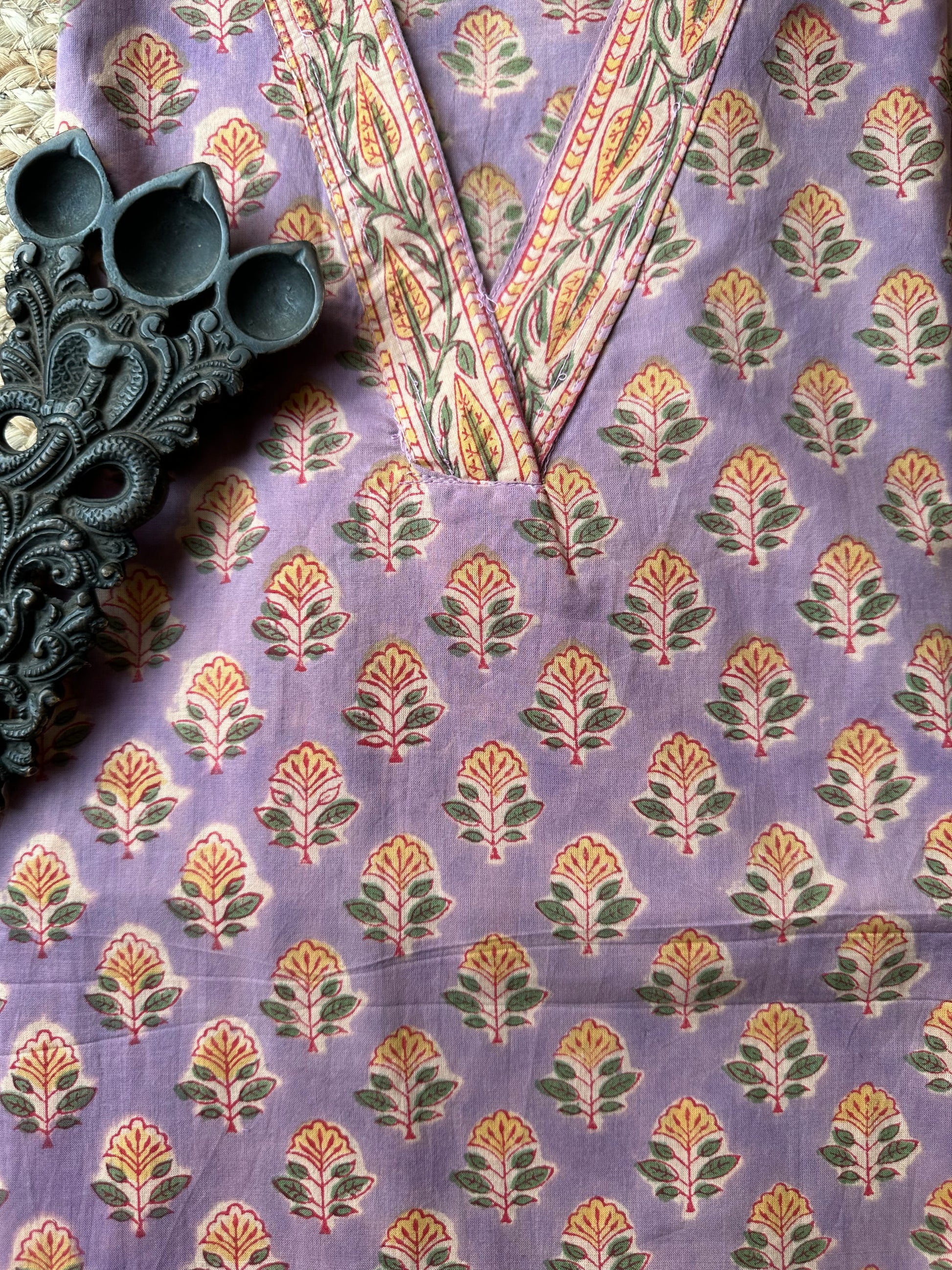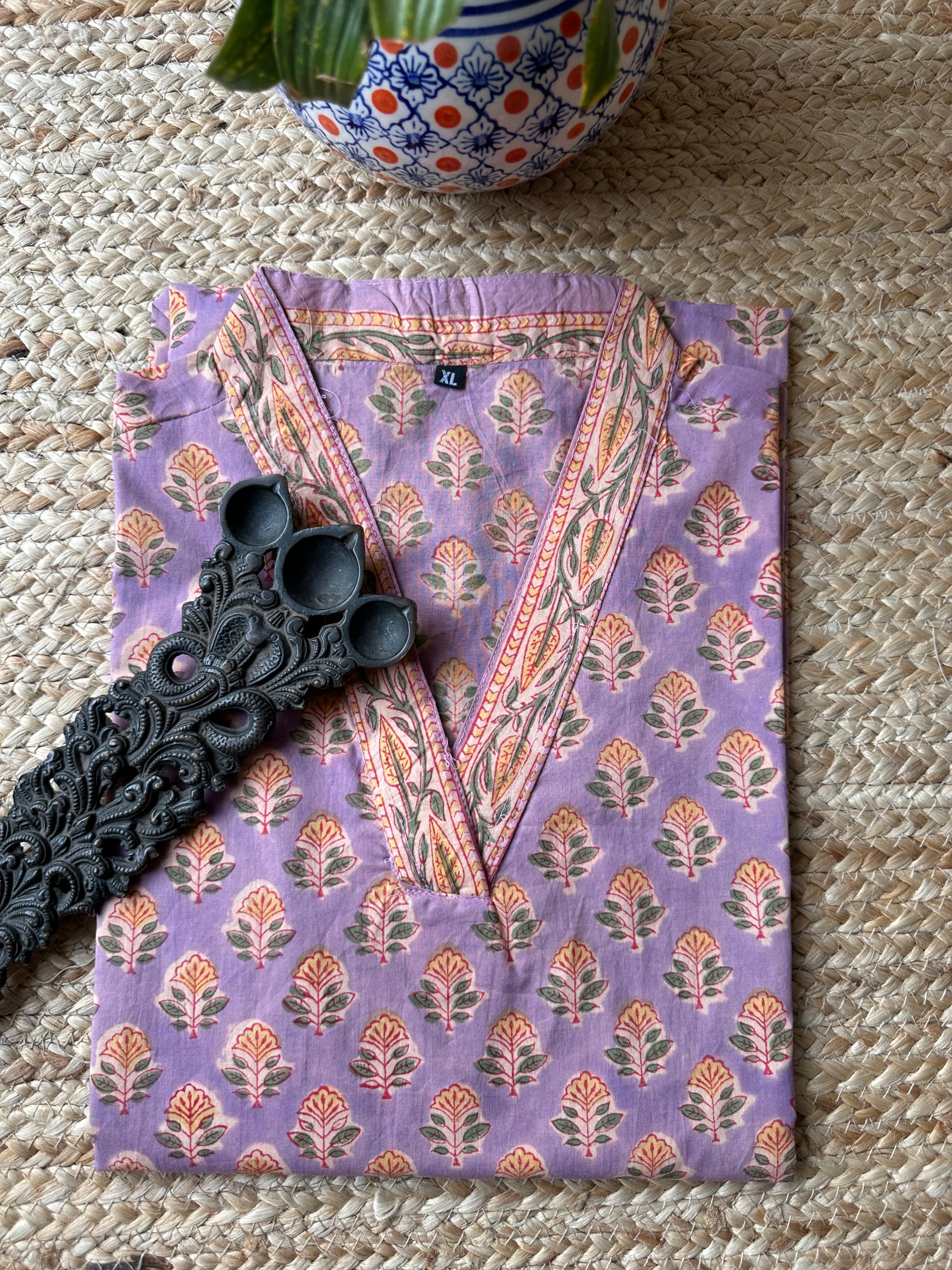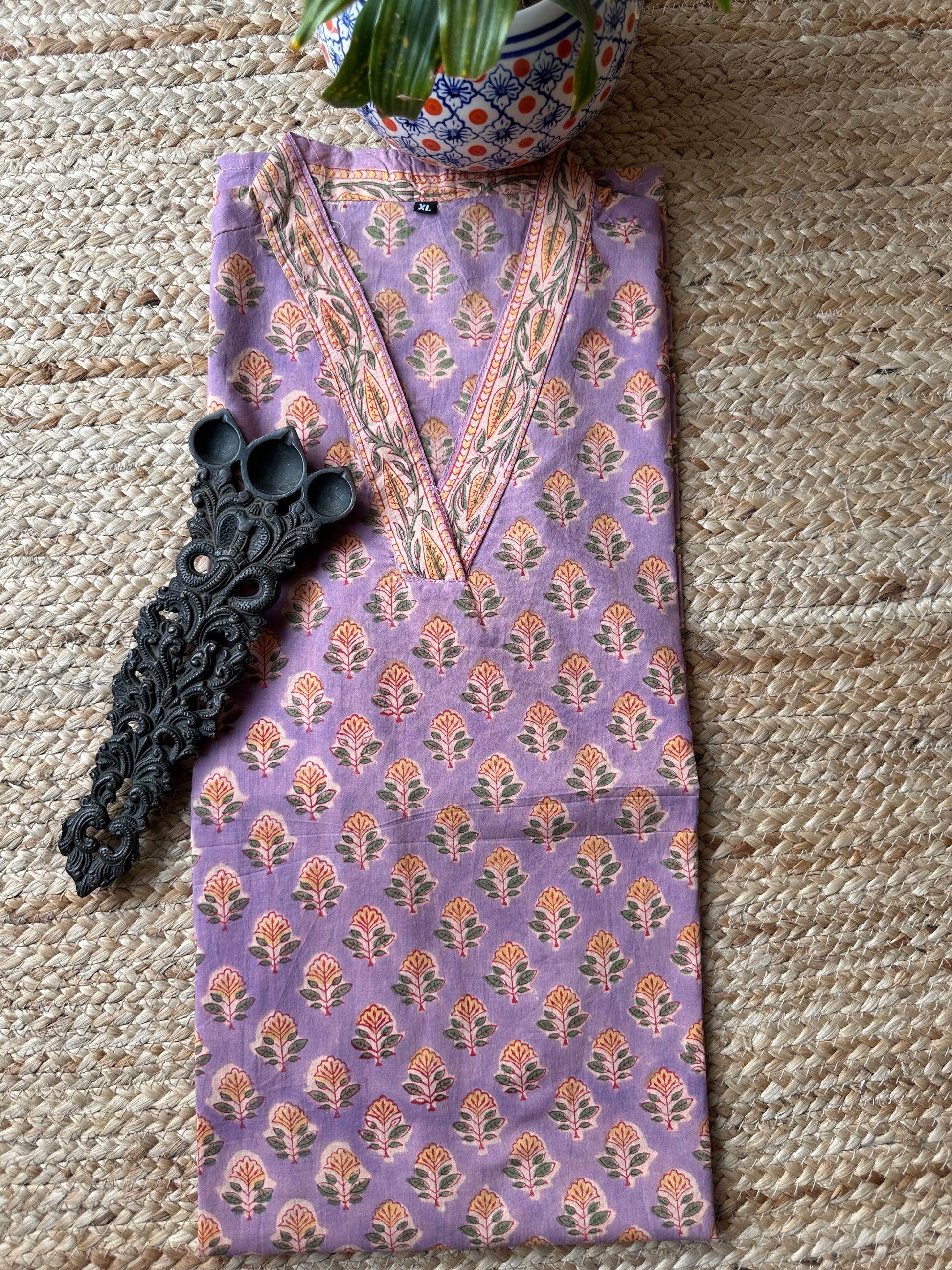 PURPLE COTTON HANDBLOCK HANDCRAFTED KURTA WITH BORDER