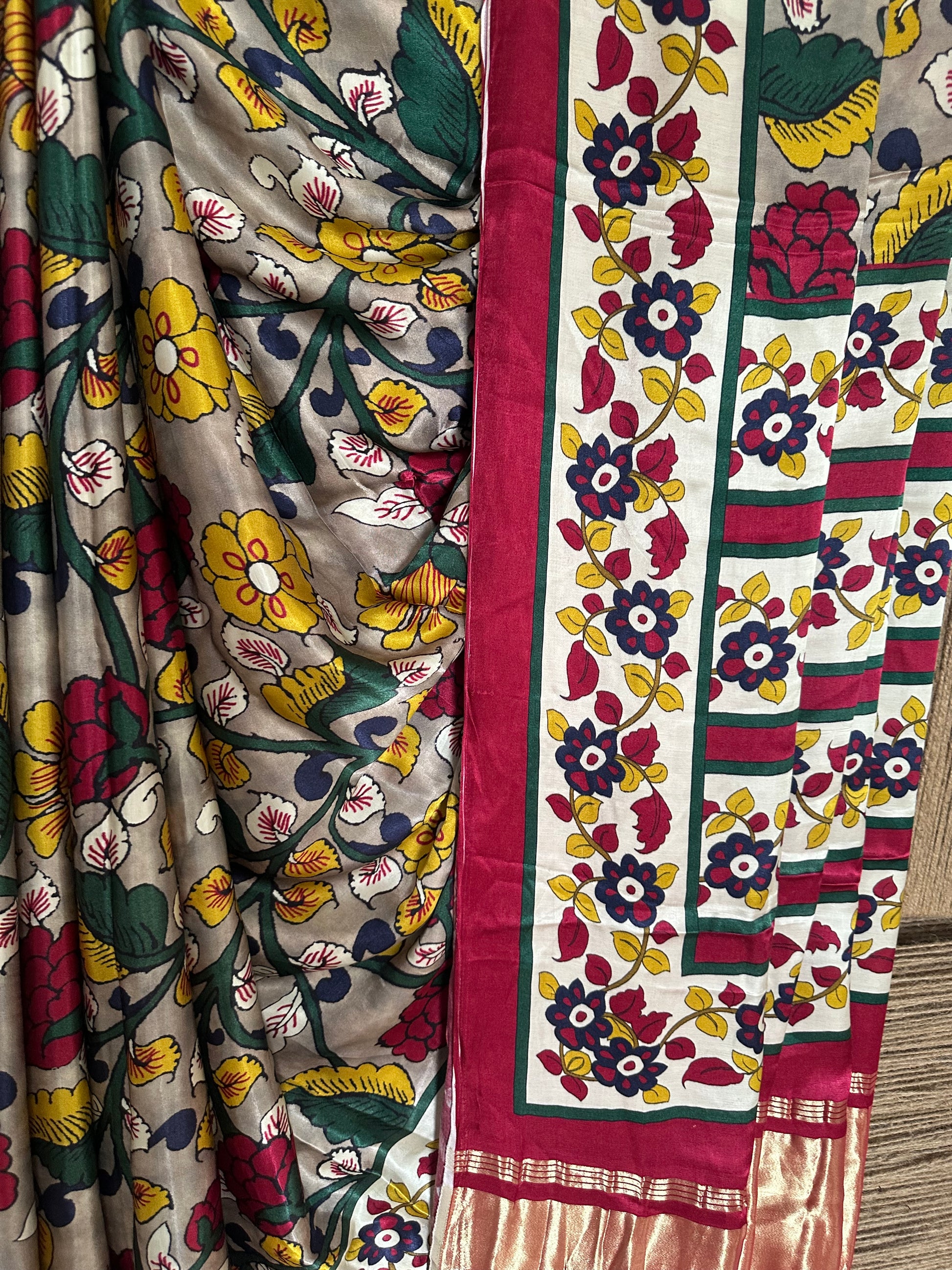 GRAY PATOLA MODAL SILK KALAMKARI PRINT SARI WITH ZARI BORDER PMS-10148