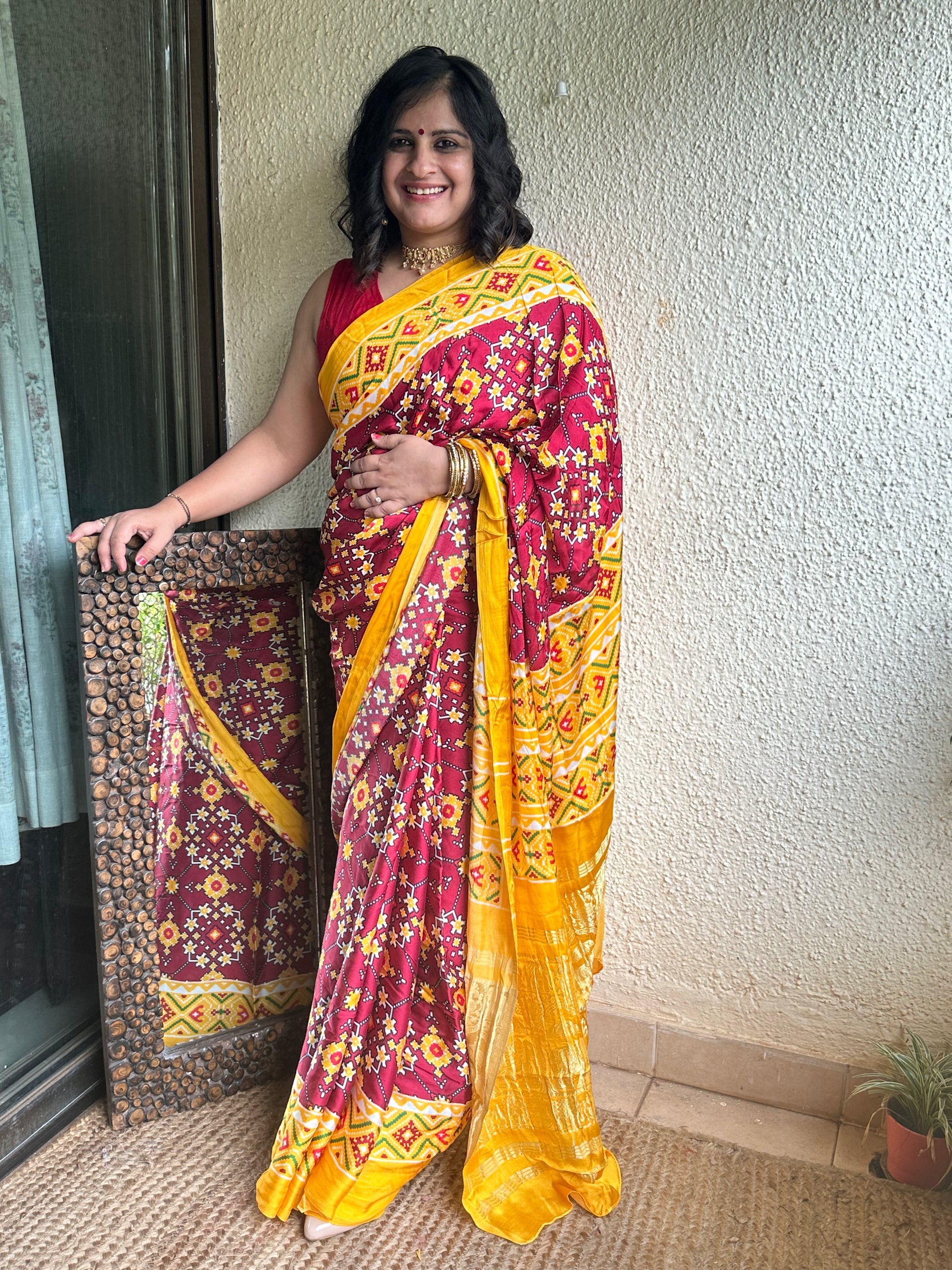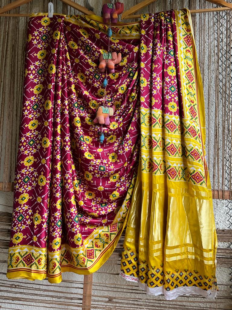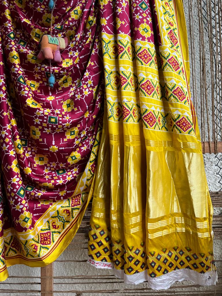 MAROON MUSTARD MODAL SILK PATOLA SARI WITH ZARI BORDER PMS-10120